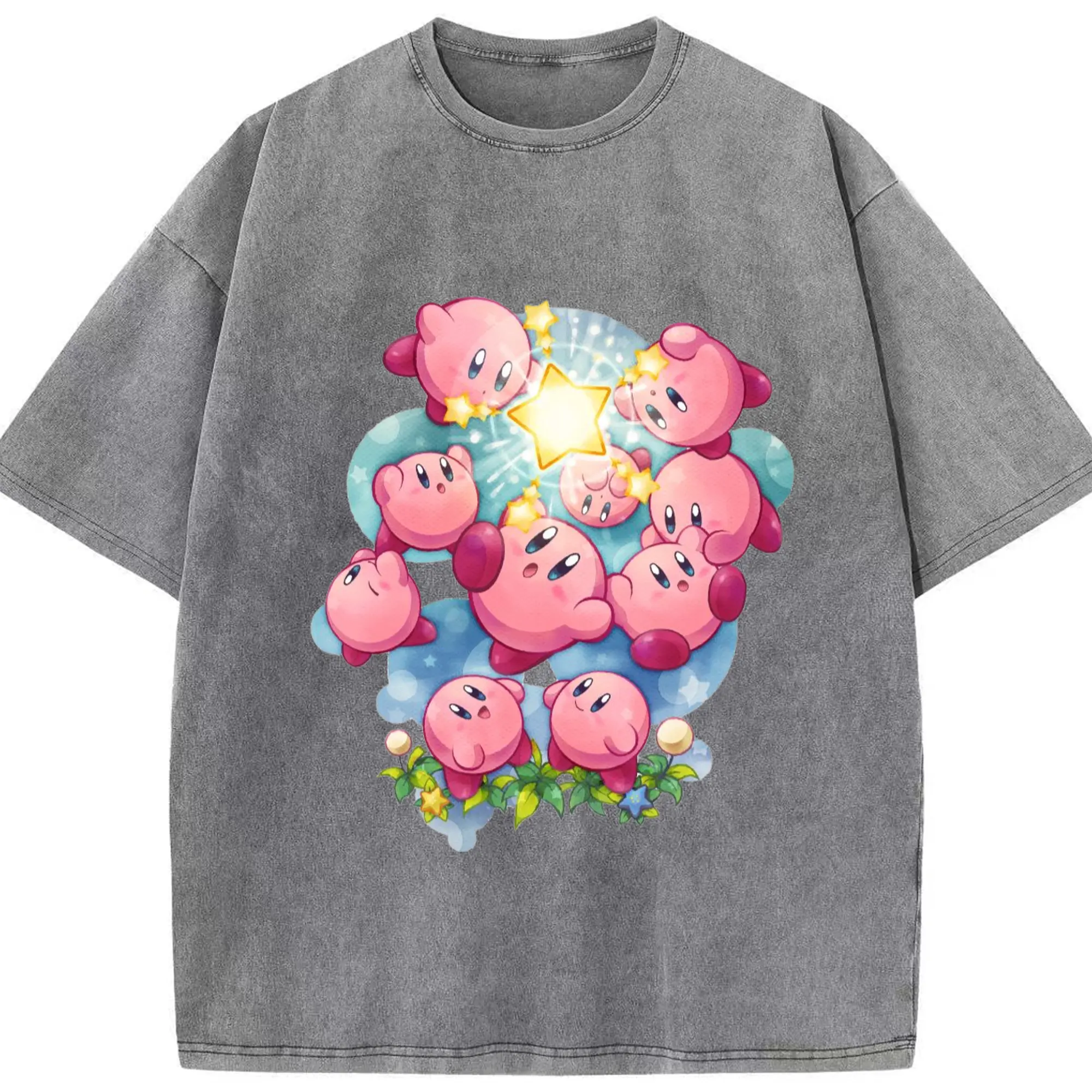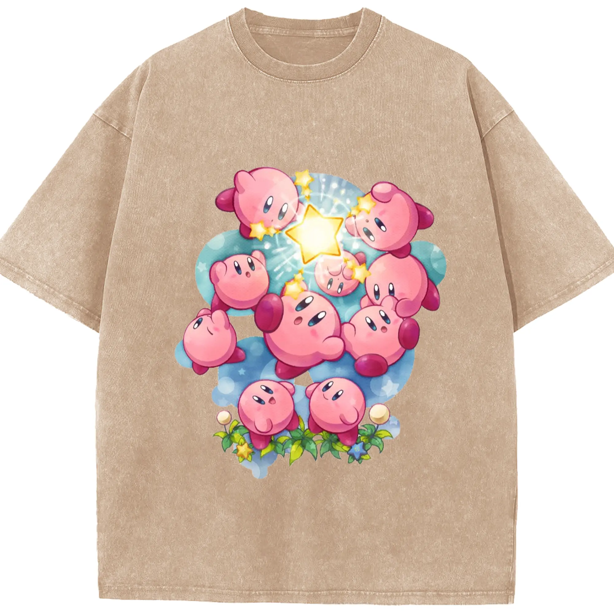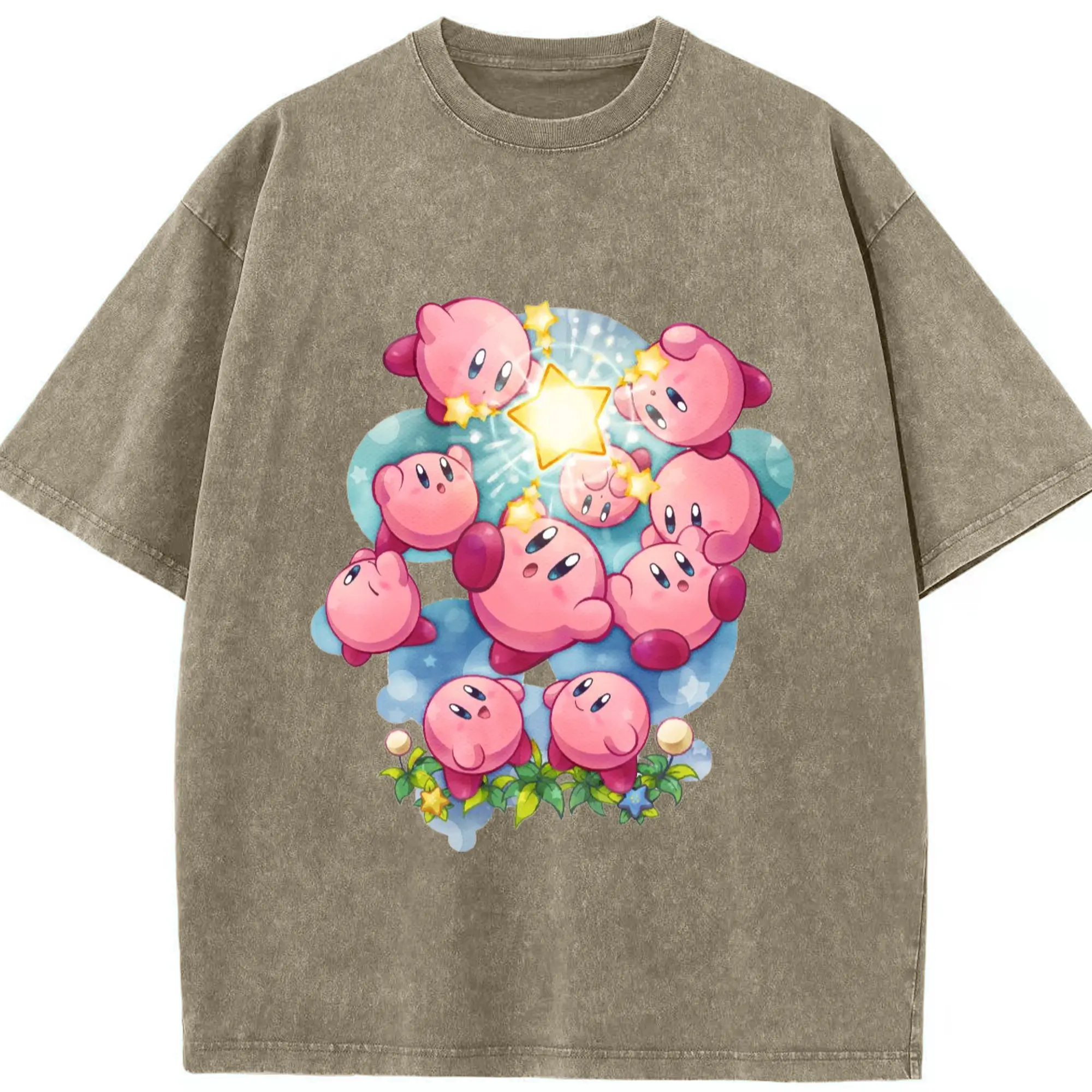 Kirby tee collage shirt - Washed Vintage Look 230g Cotton Oversized T-Shirt With Front Heat Transfer Print – Soft, Lightweight, Stylish Fit – Comfortable Casual Wear For Sports & Everyday Use