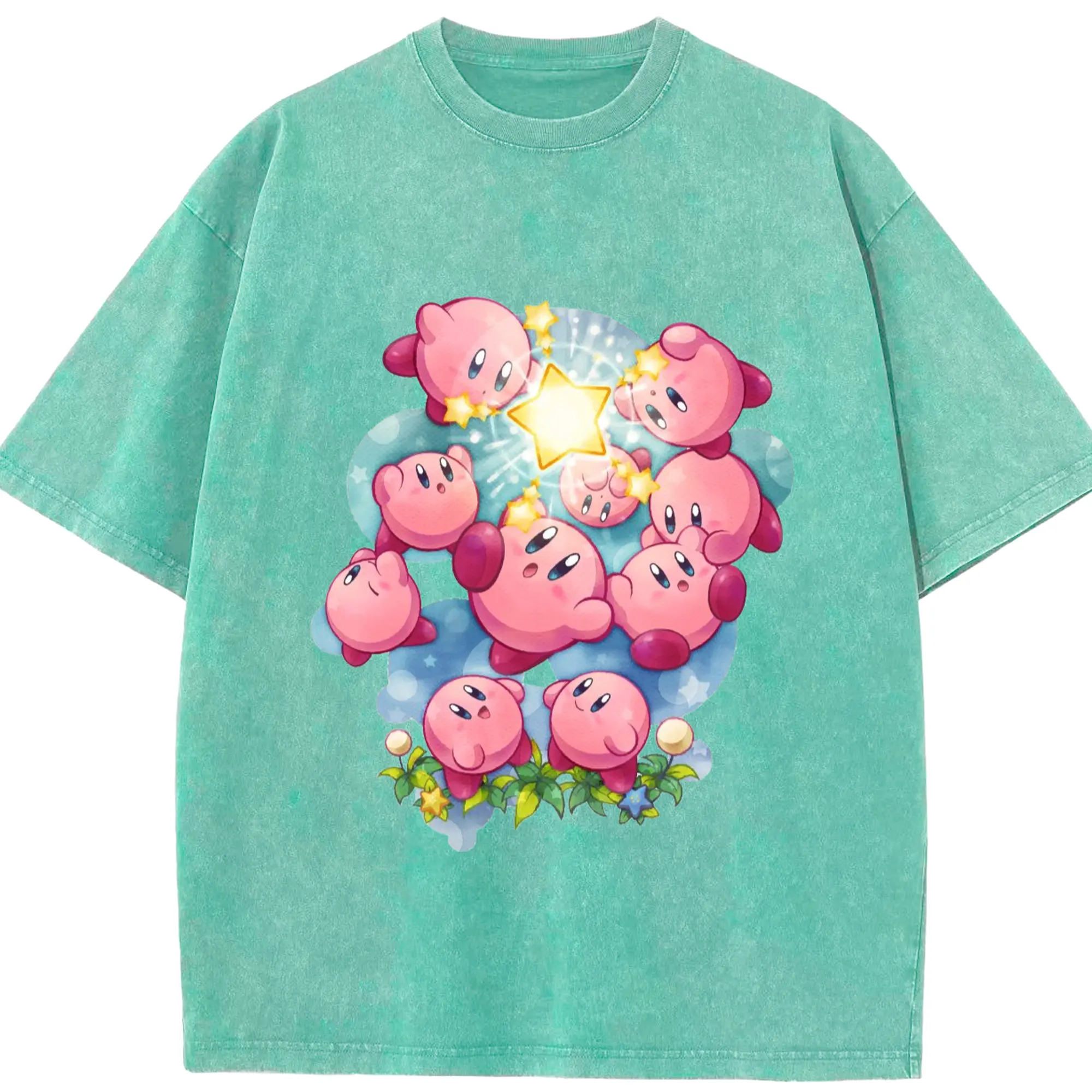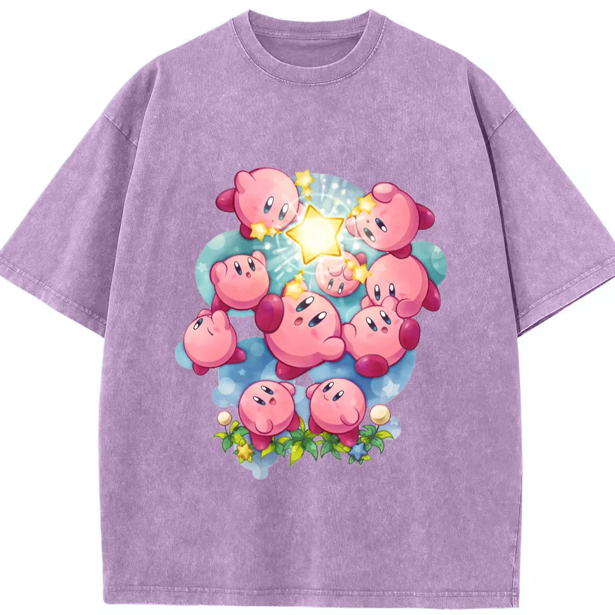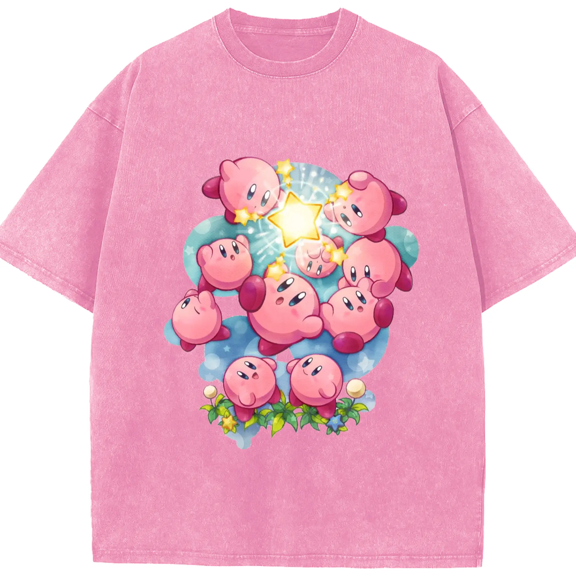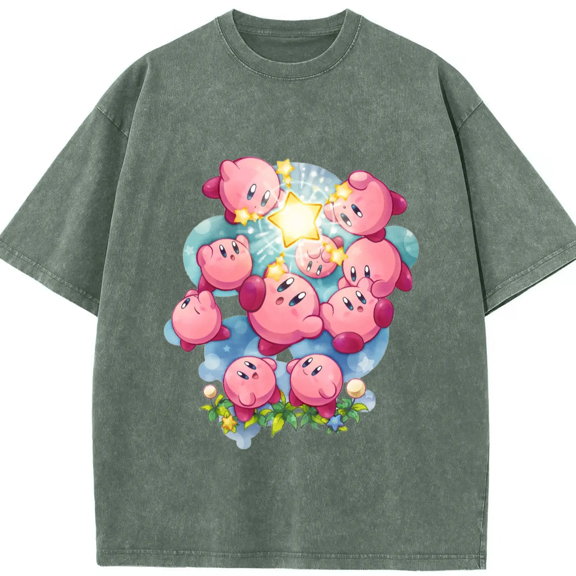 Kirby tee collage shirt - Washed Vintage Look 230g Cotton Oversized T-Shirt With Front Heat Transfer Print – Soft, Lightweight, Stylish Fit – Comfortable Casual Wear For Sports & Everyday Use