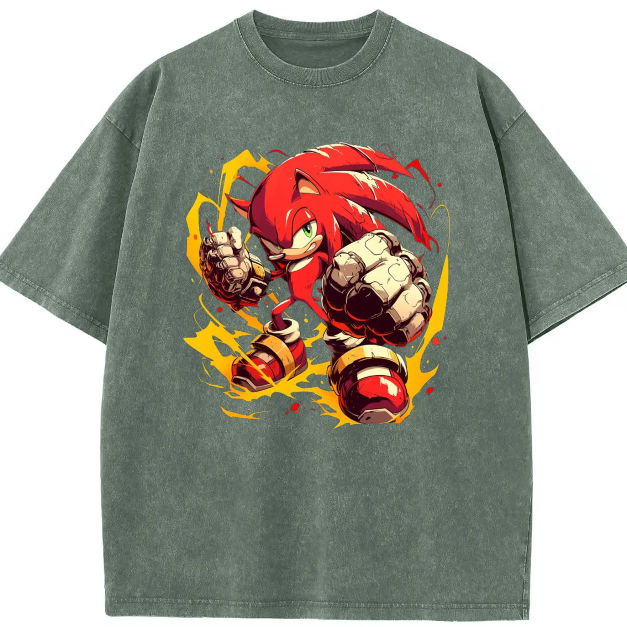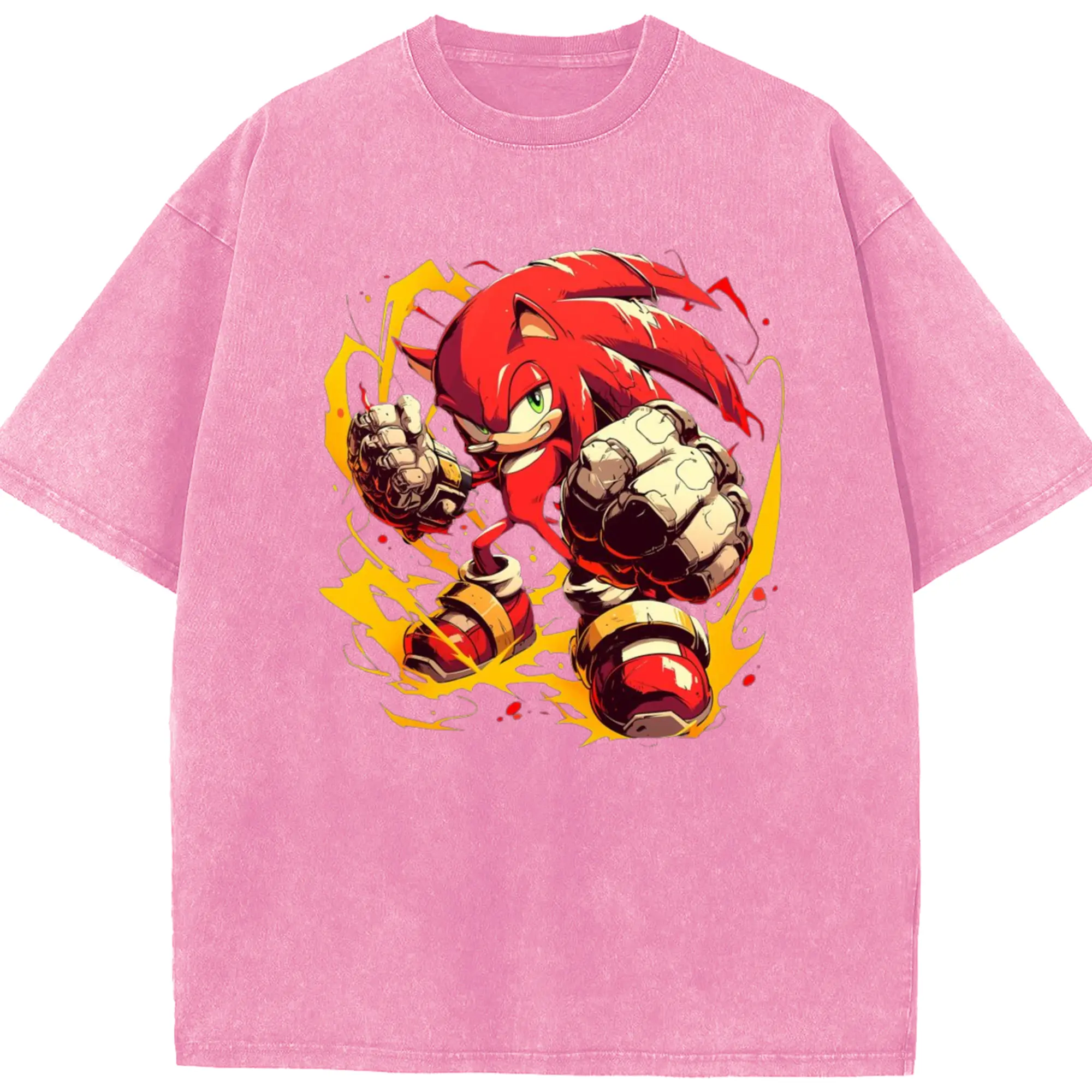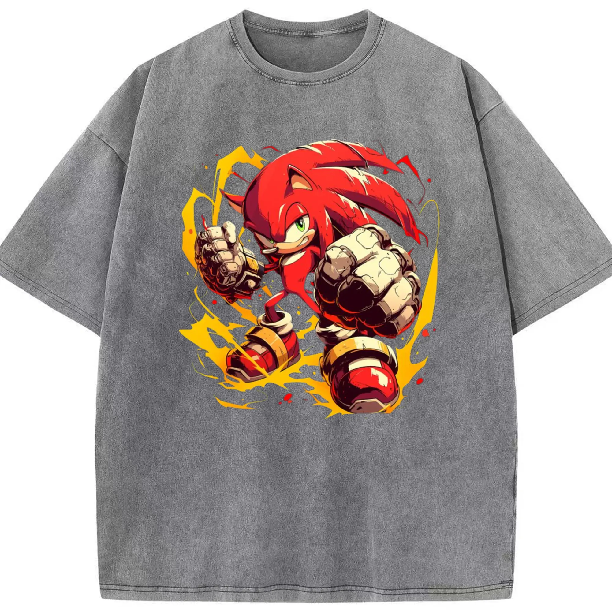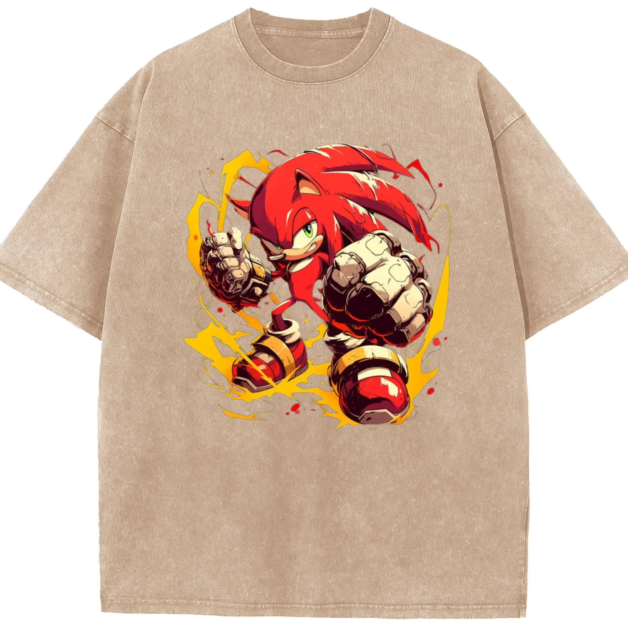 Knuckles classic tee - Washed Vintage Look 230g Cotton Oversized T-Shirt With Front Heat Transfer Print – Soft, Lightweight, Stylish Fit – Comfortable Casual Wear For Sports & Everyday Use
