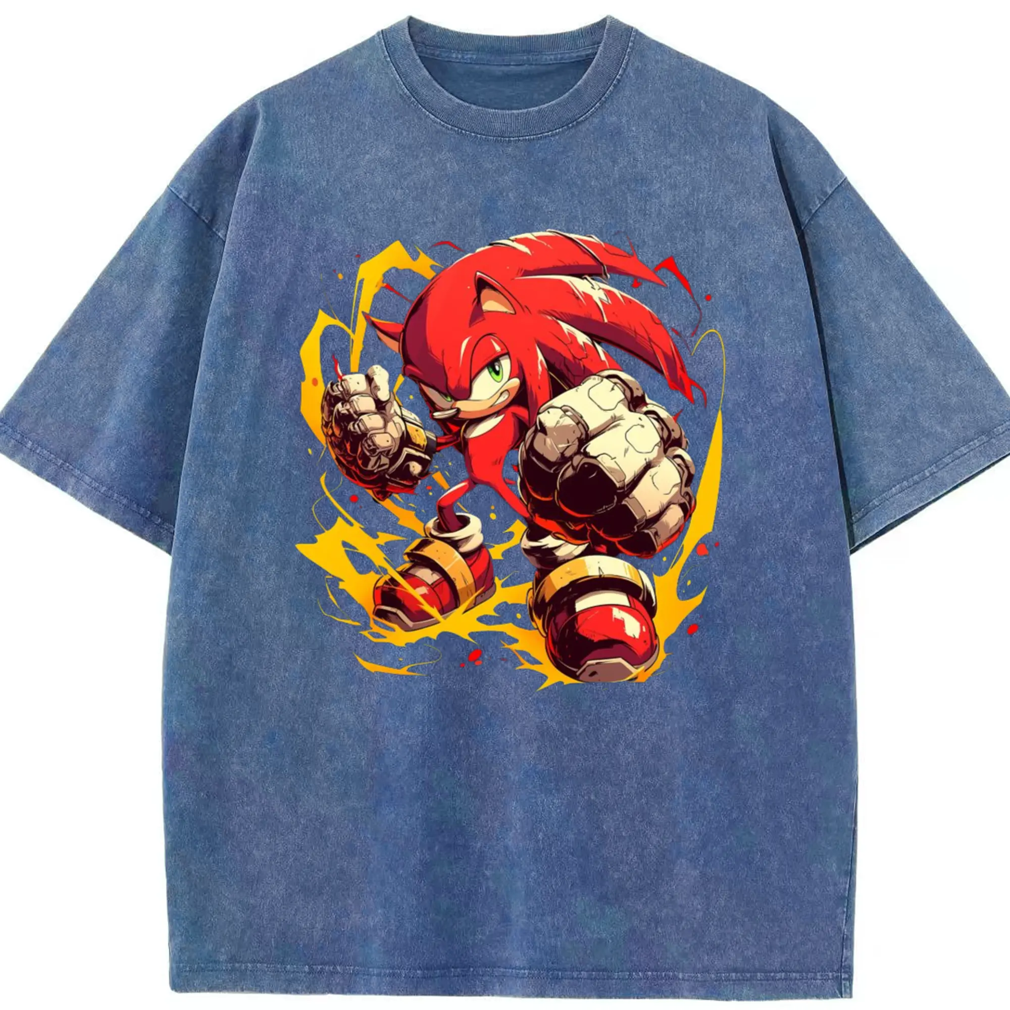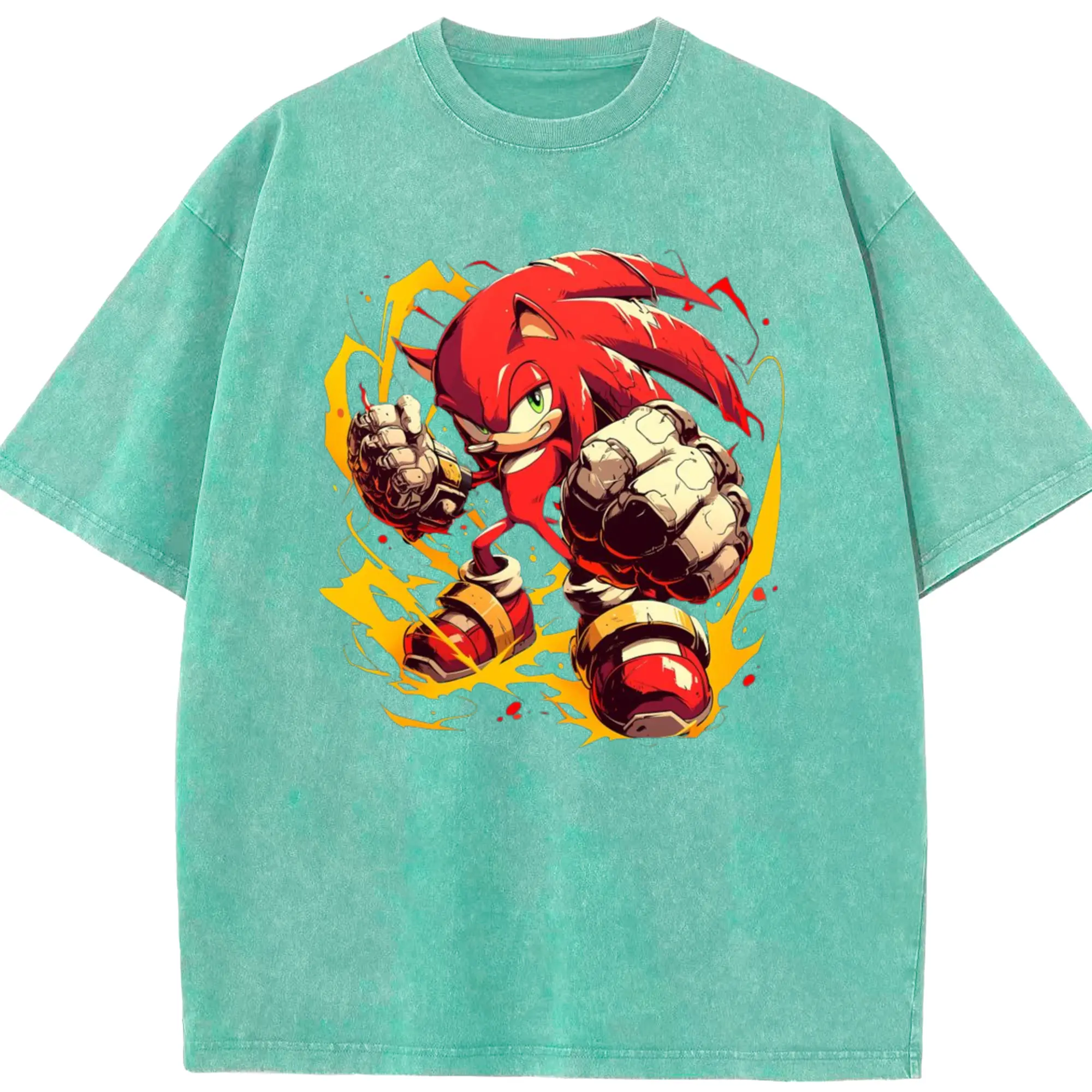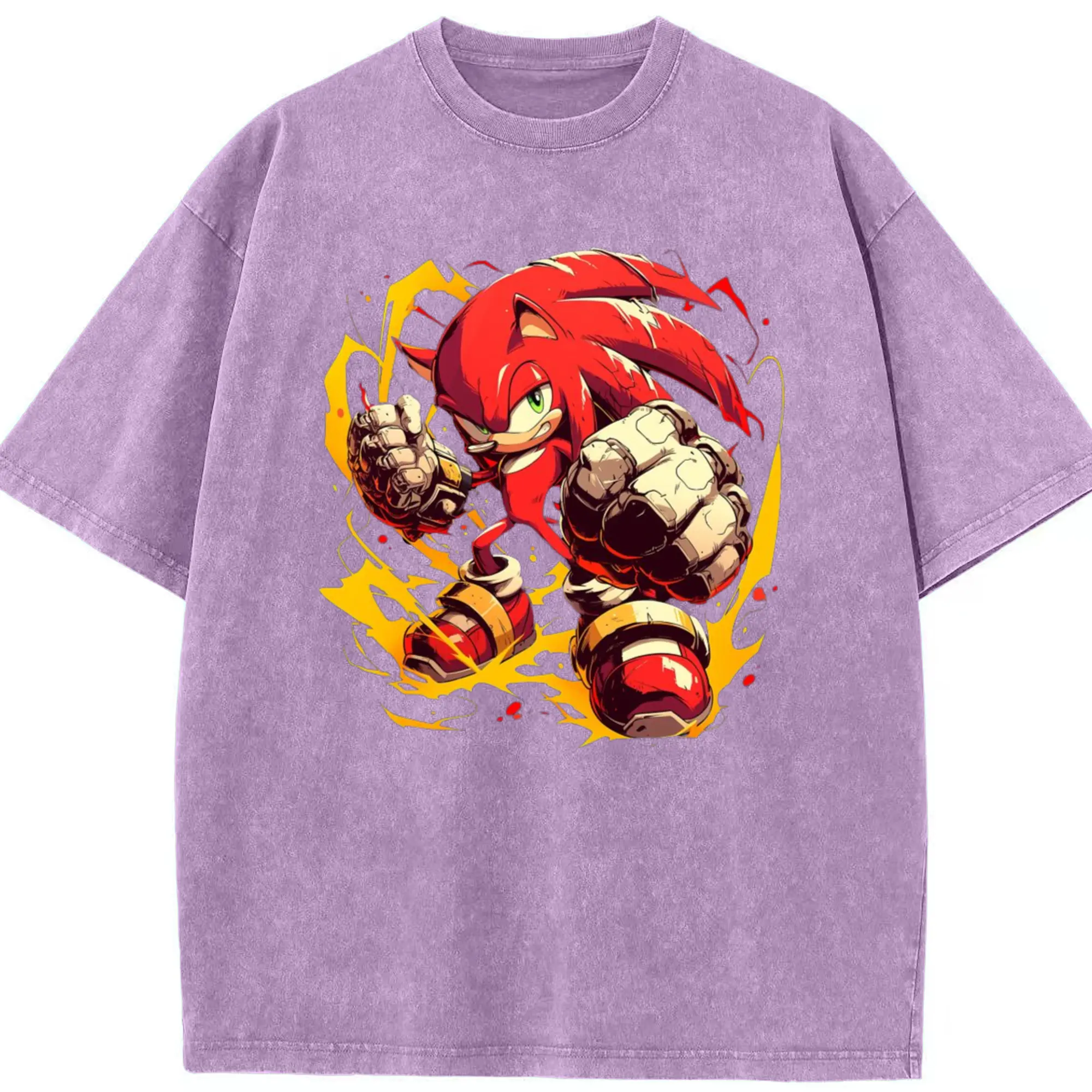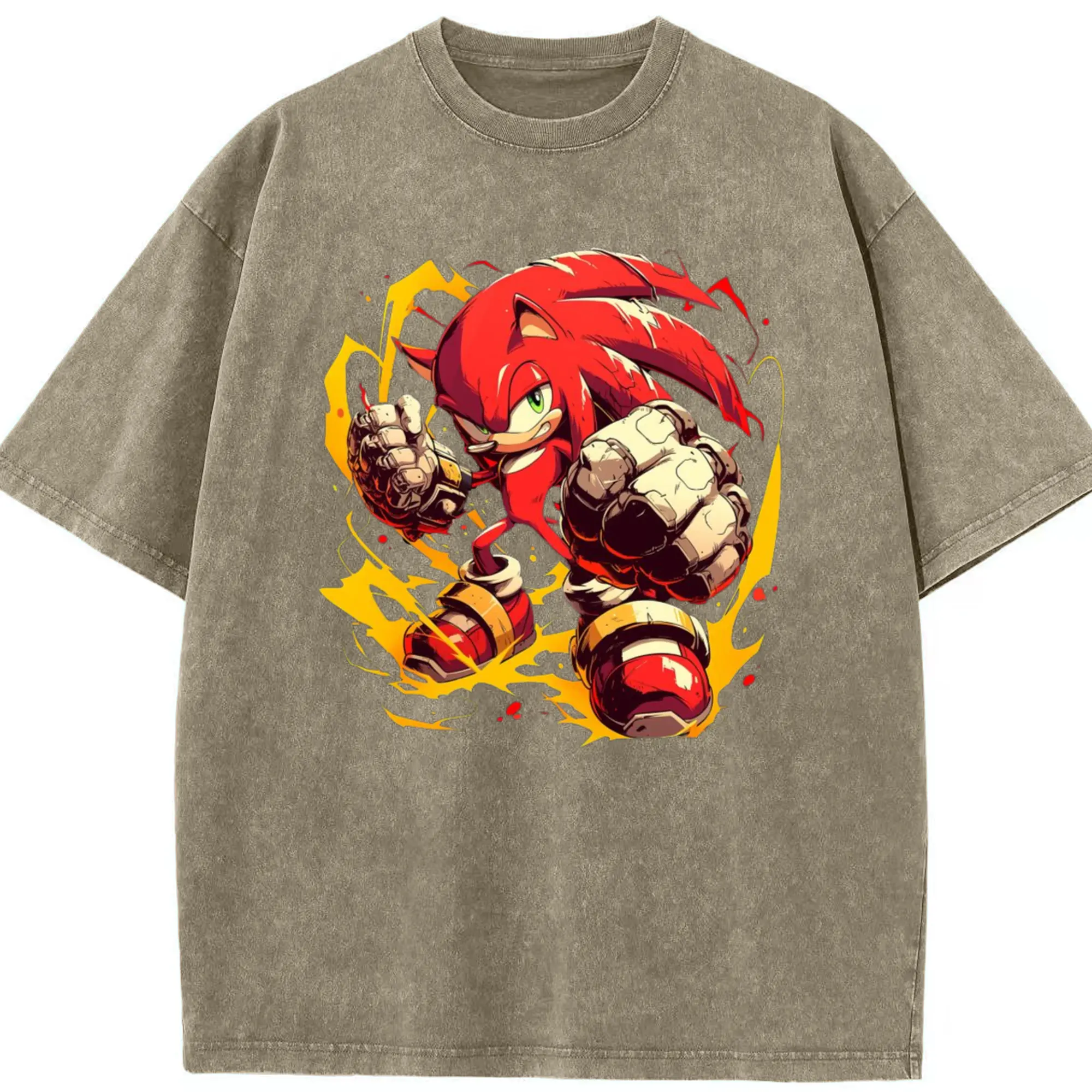 Knuckles classic tee - Washed Vintage Look 230g Cotton Oversized T-Shirt With Front Heat Transfer Print – Soft, Lightweight, Stylish Fit – Comfortable Casual Wear For Sports & Everyday Use