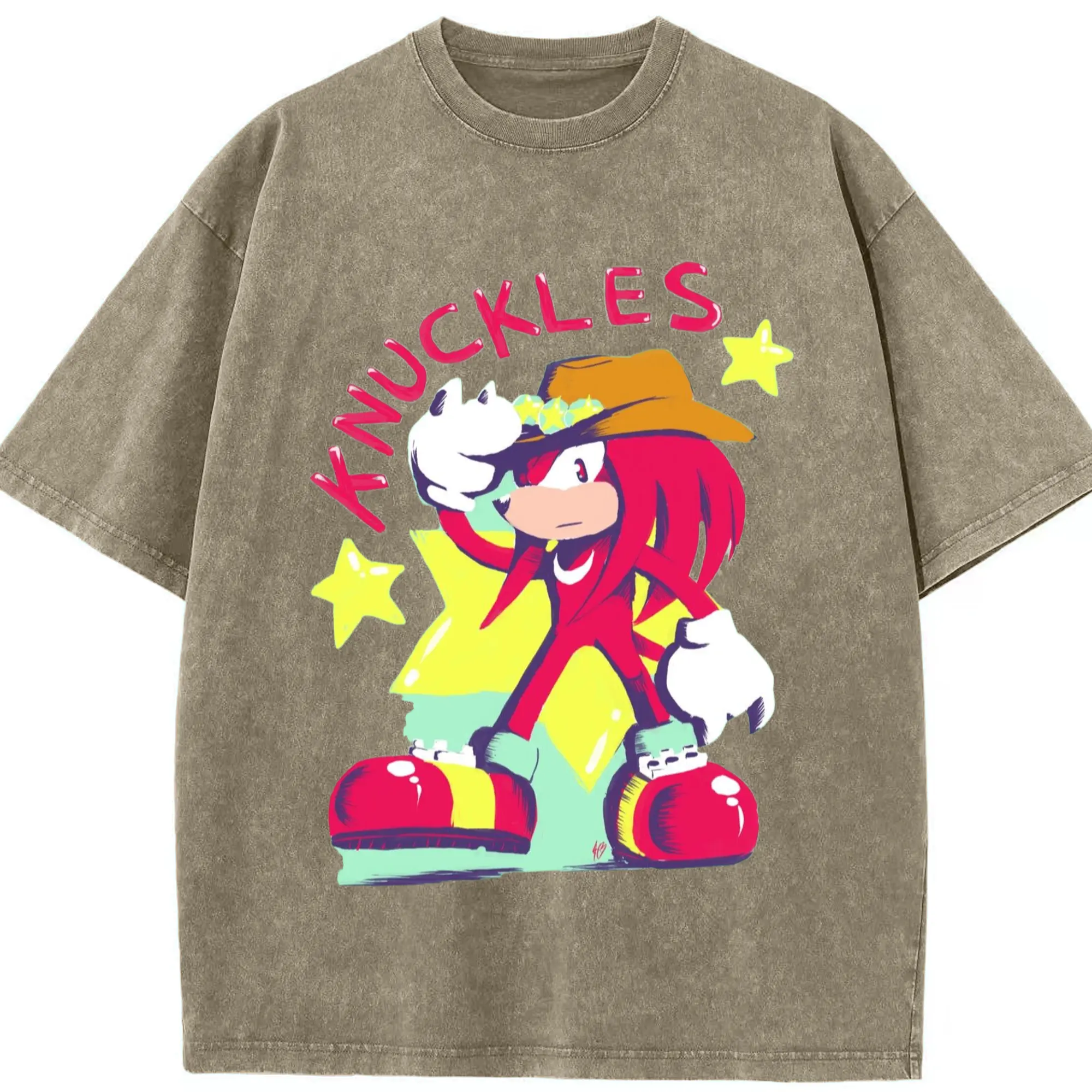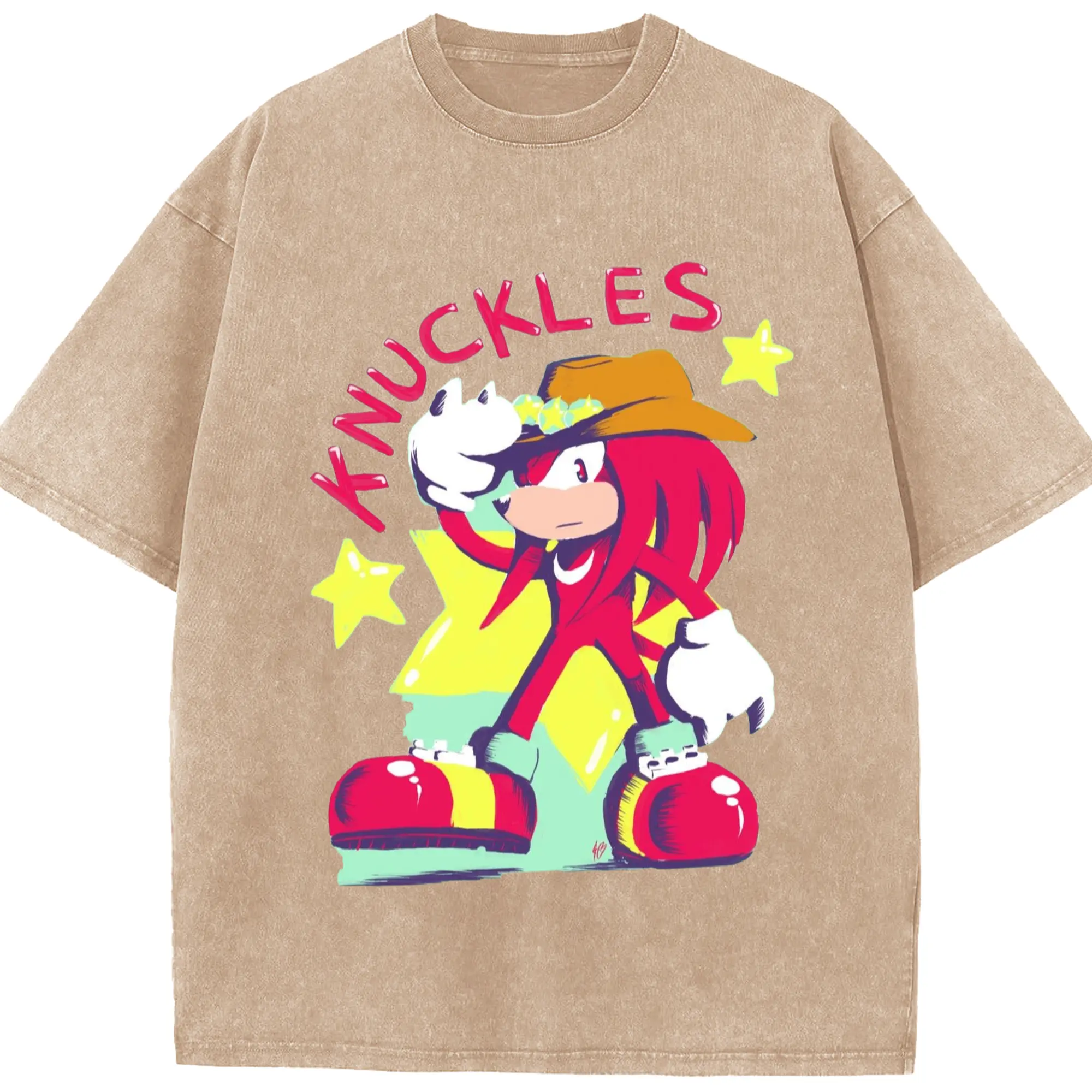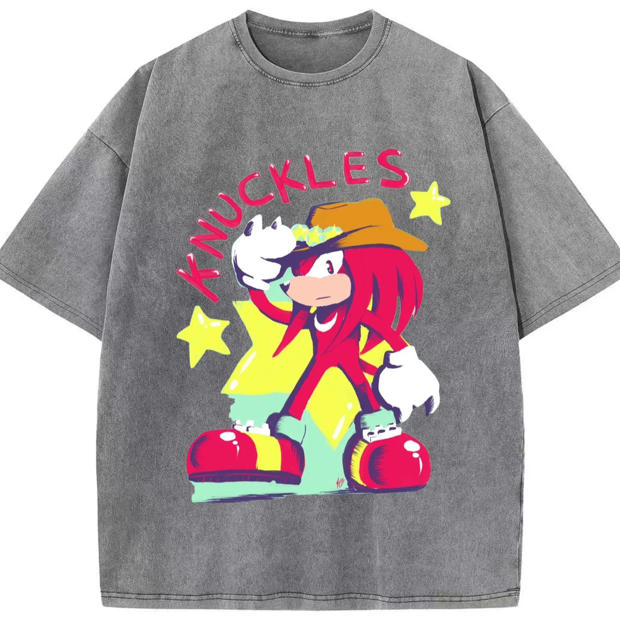 Knuckles graphic t-shirt - Washed Vintage Look 230g Cotton Oversized T-Shirt With Front Heat Transfer Print – Soft, Lightweight, Stylish Fit – Comfortable Casual Wear For Sports & Everyday Use