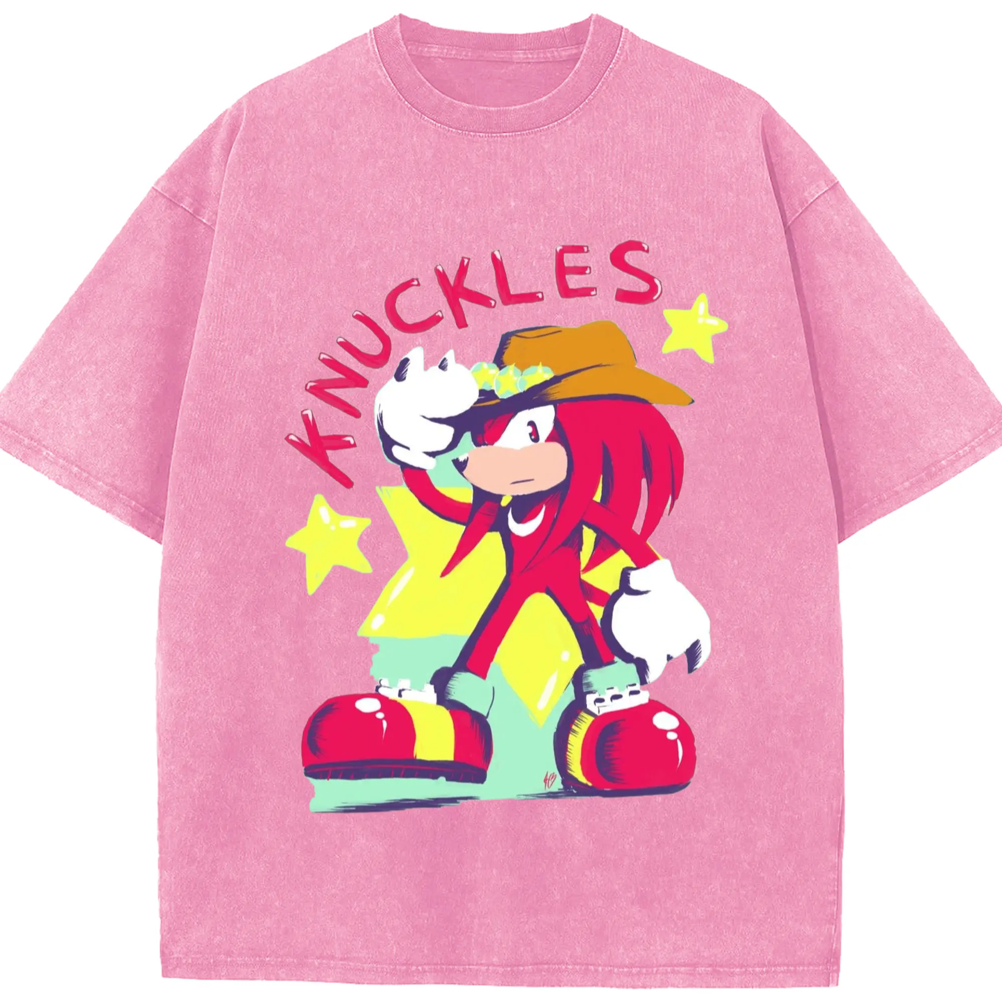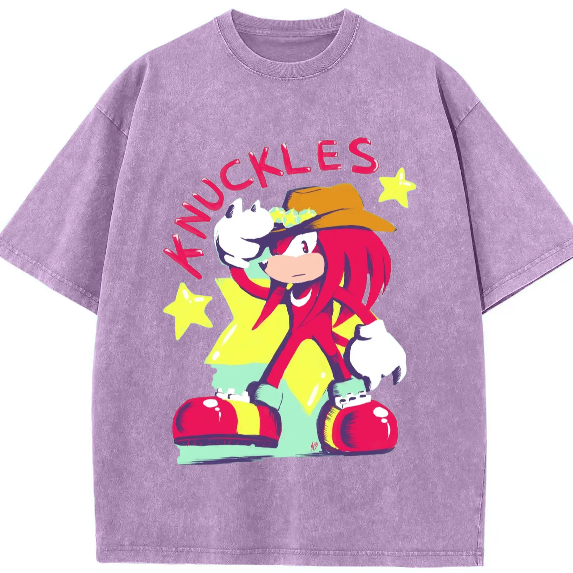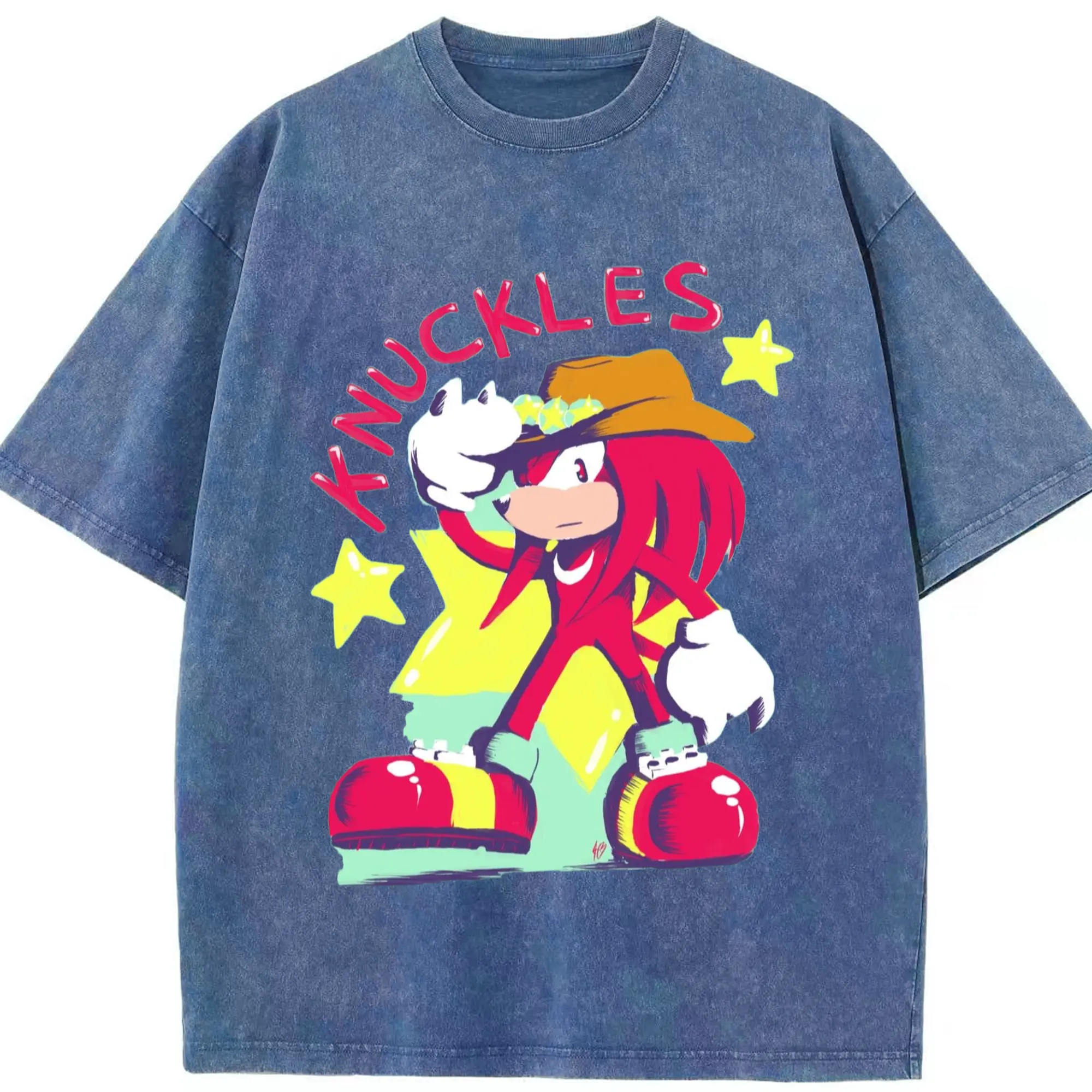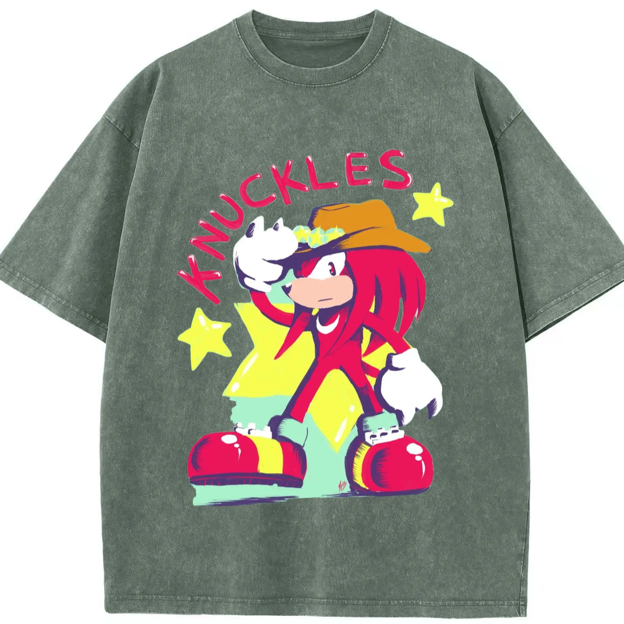 Knuckles graphic t-shirt - Washed Vintage Look 230g Cotton Oversized T-Shirt With Front Heat Transfer Print – Soft, Lightweight, Stylish Fit – Comfortable Casual Wear For Sports & Everyday Use