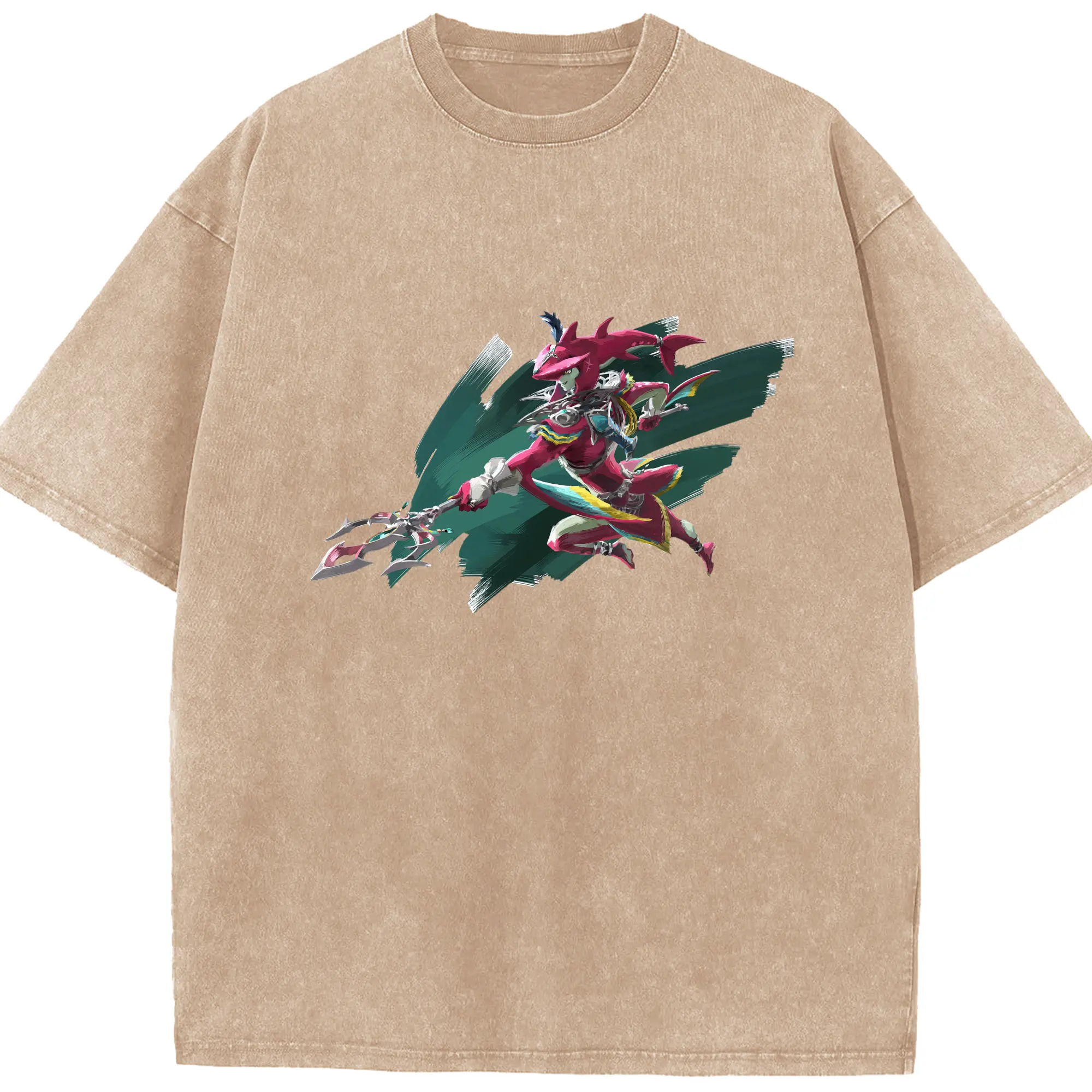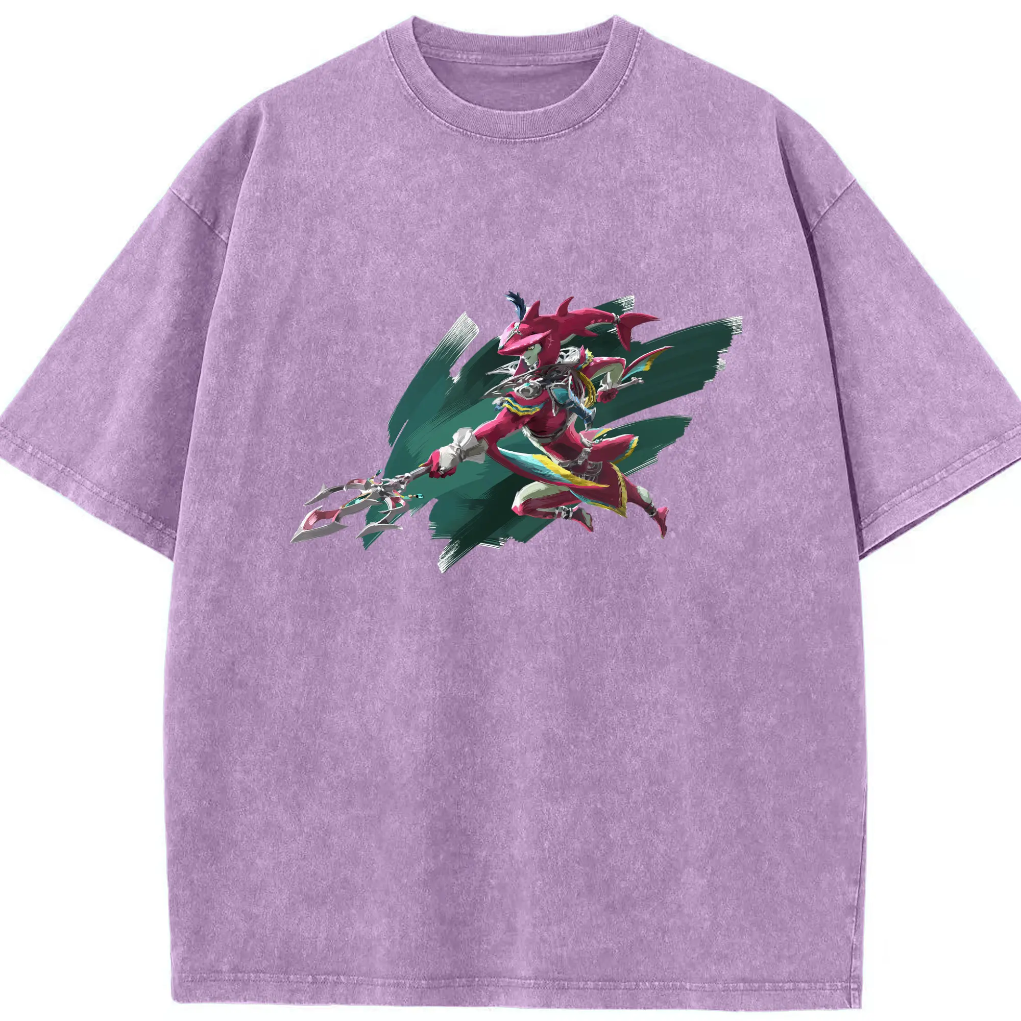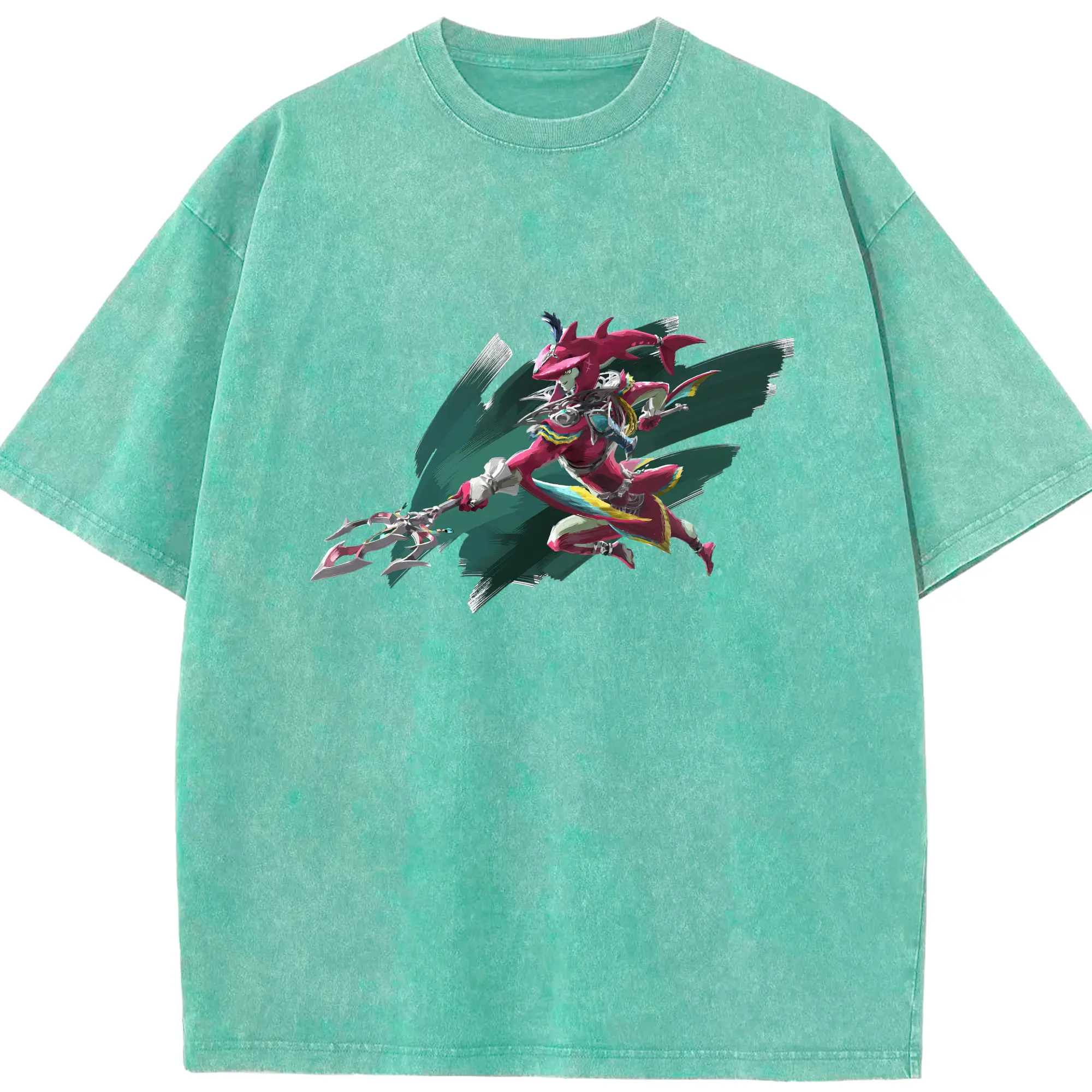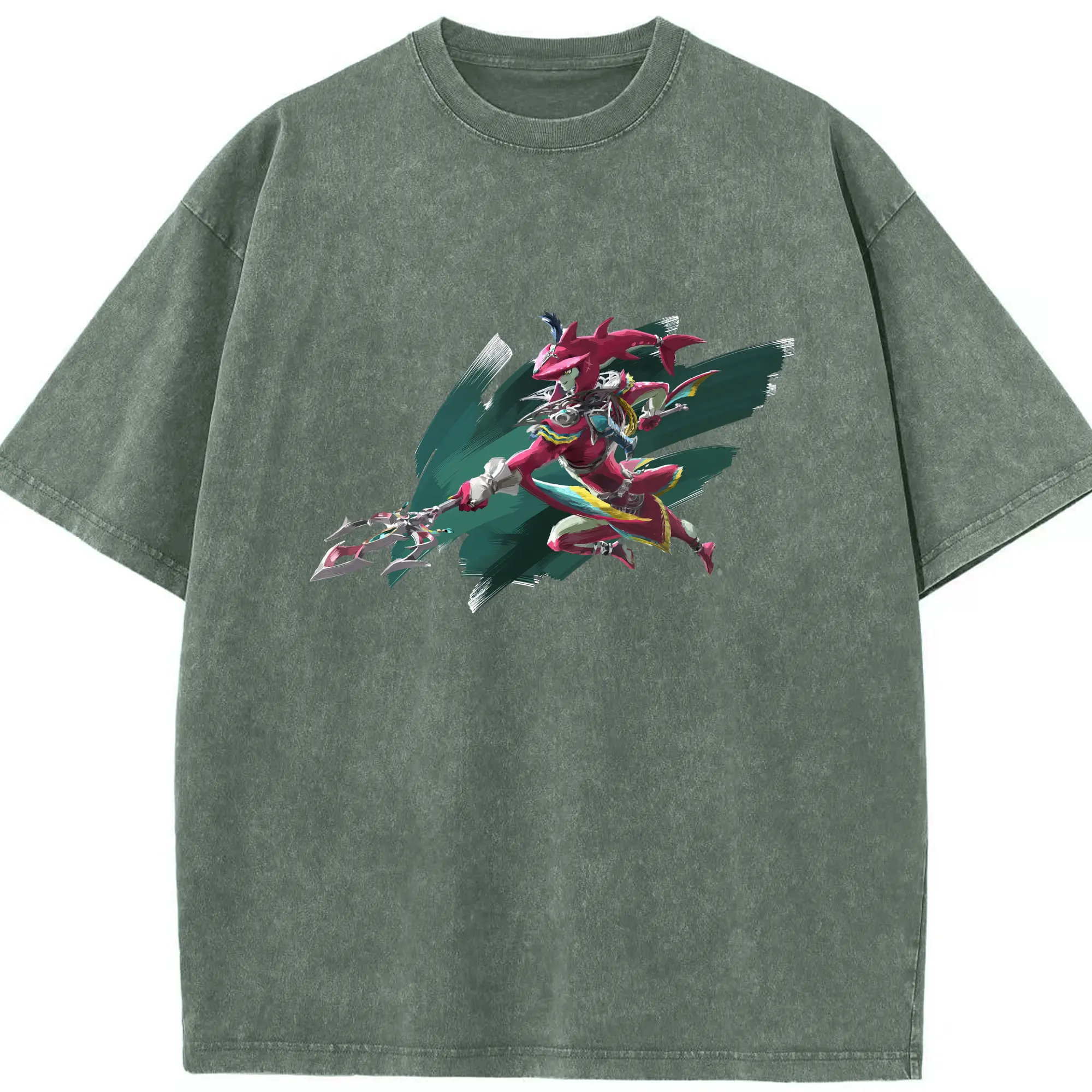 Legend of Zelda Prince Sidon art T-Shirt - Washed Vintage Look 230g Cotton Oversized T-Shirt With Front Heat Transfer Print – Soft, Lightweight, Stylish Fit – Comfortable Casual Wear For Sports & Everyday Use