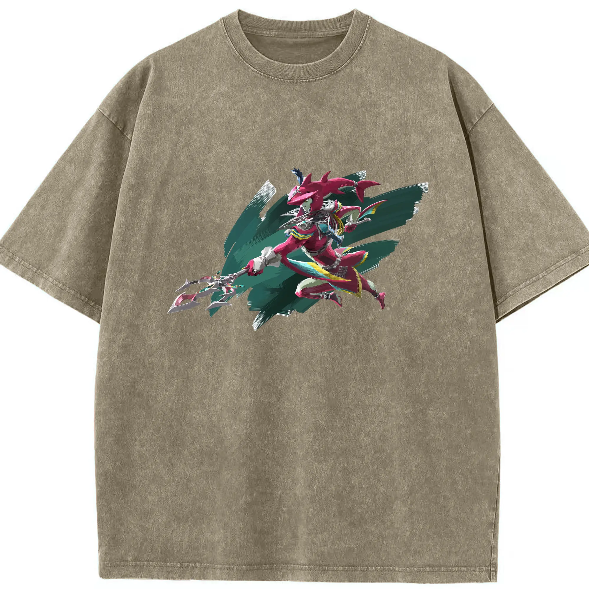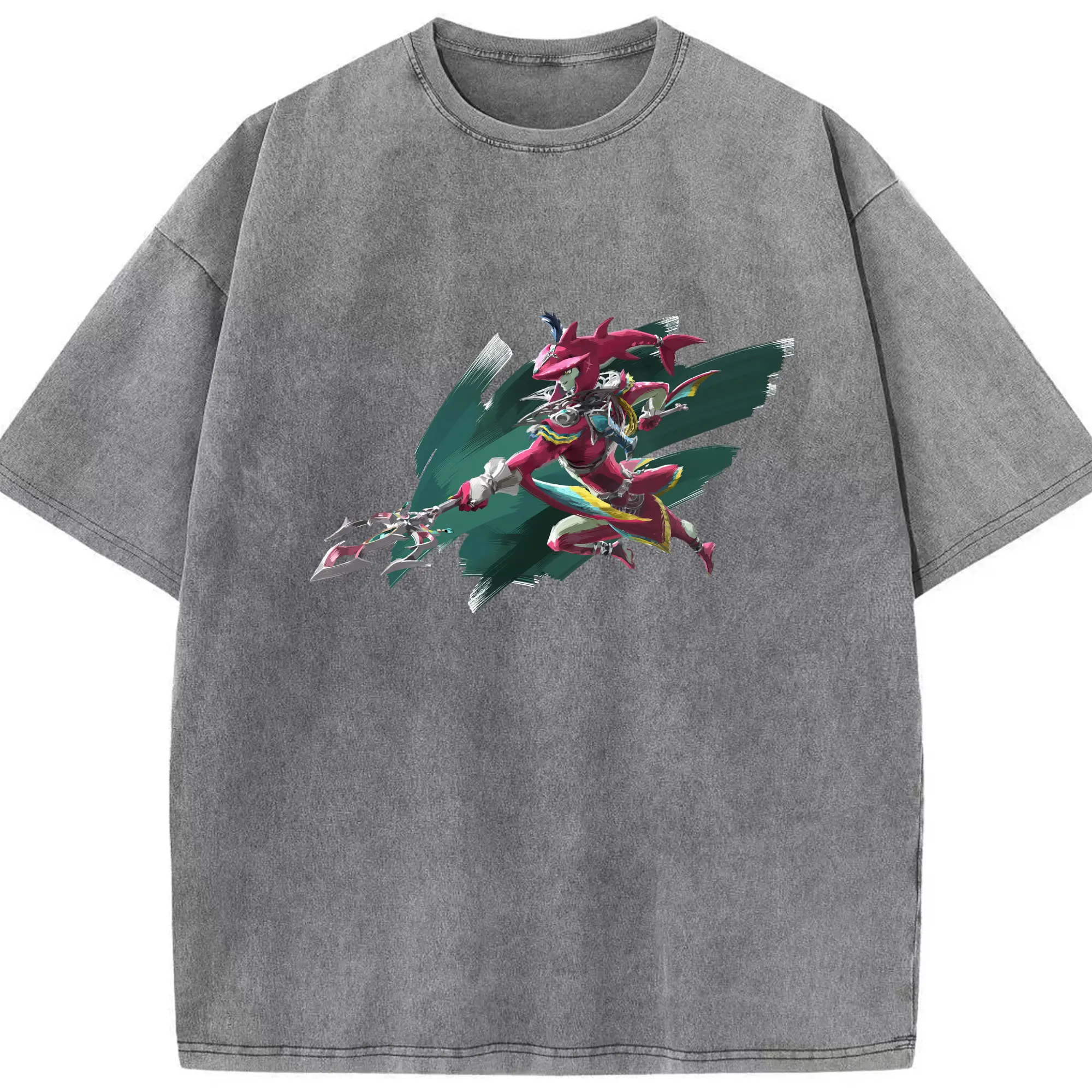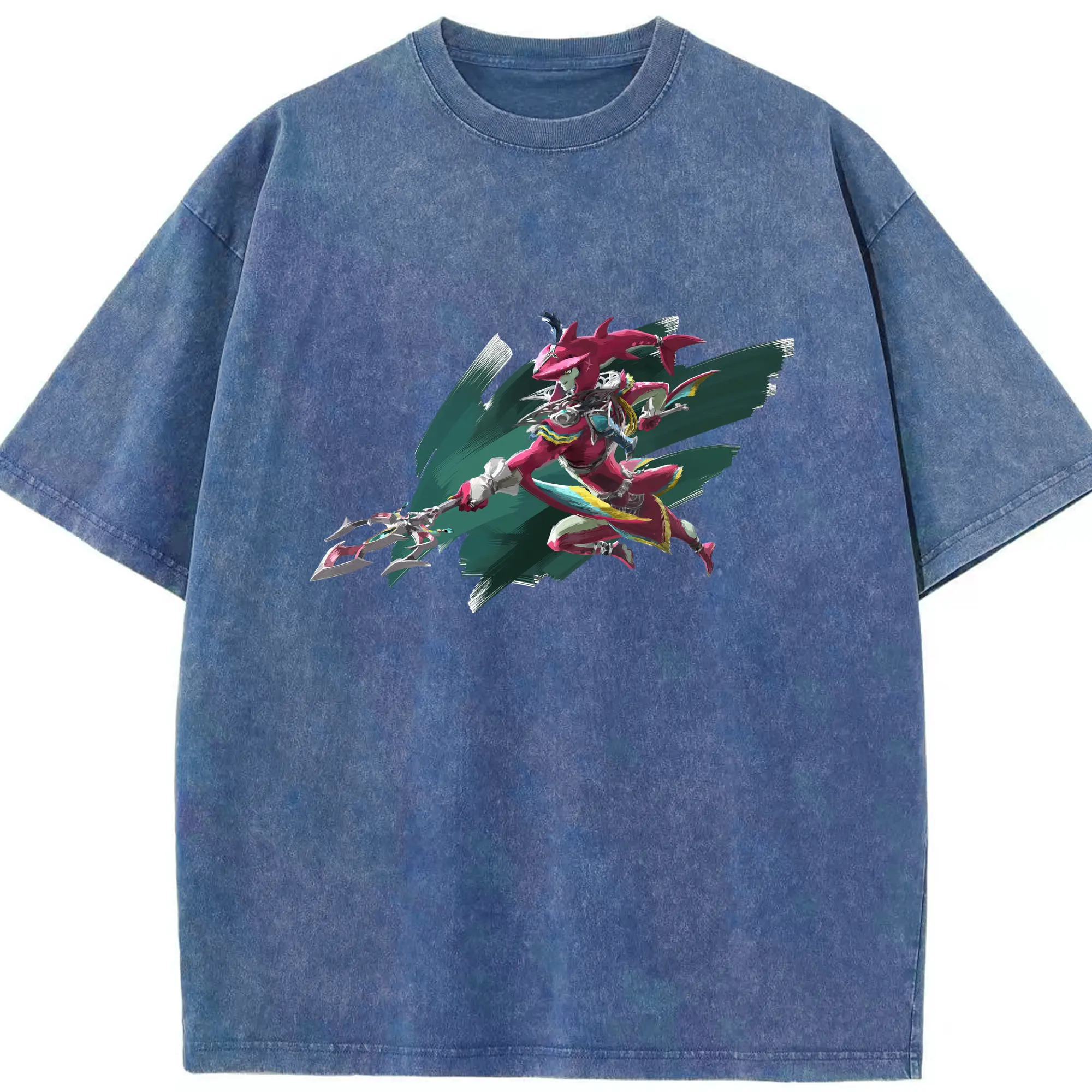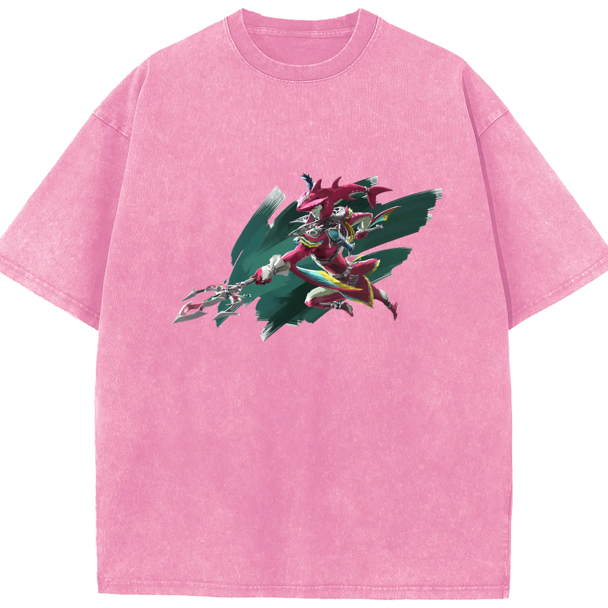 Legend of Zelda Prince Sidon art T-Shirt - Washed Vintage Look 230g Cotton Oversized T-Shirt With Front Heat Transfer Print – Soft, Lightweight, Stylish Fit – Comfortable Casual Wear For Sports & Everyday Use