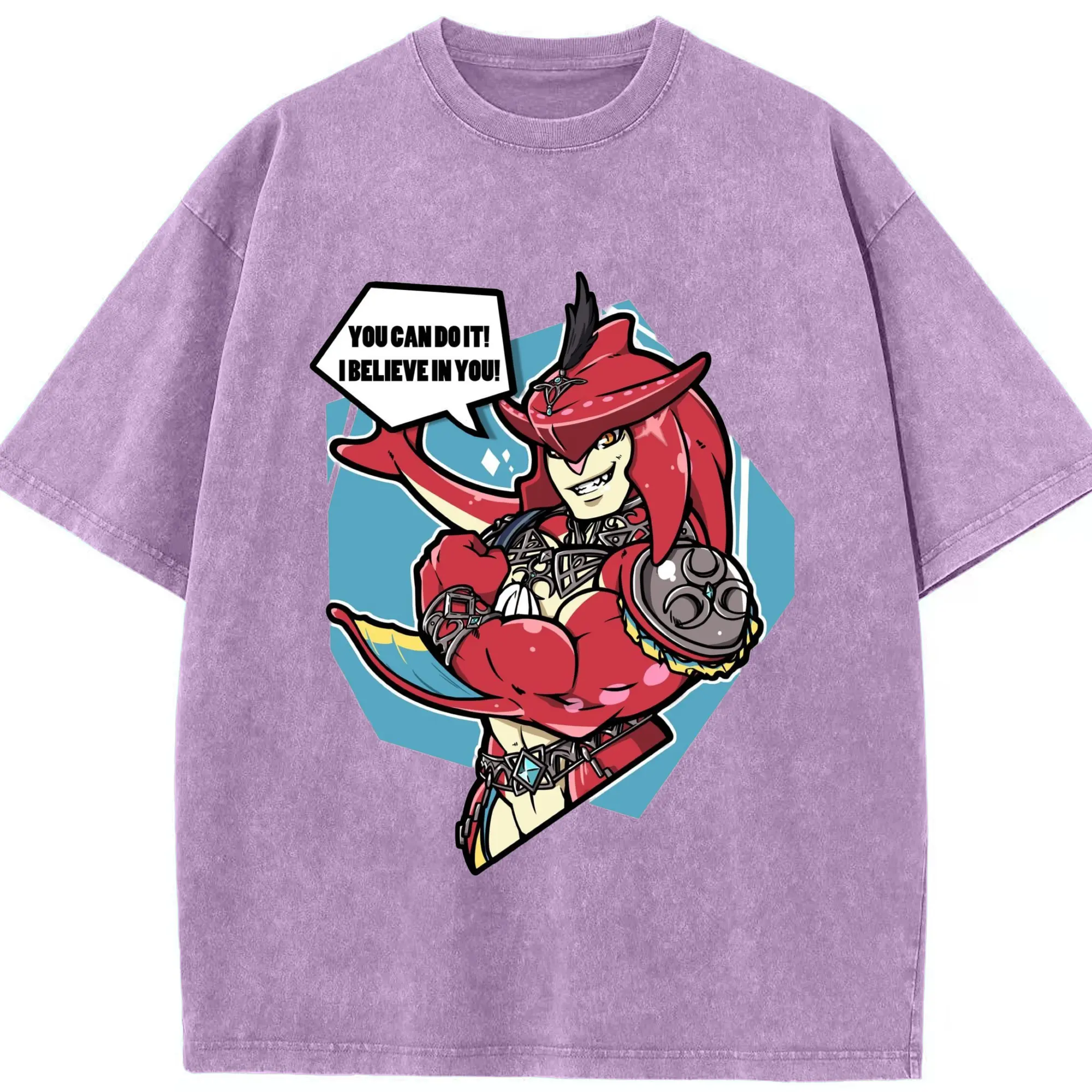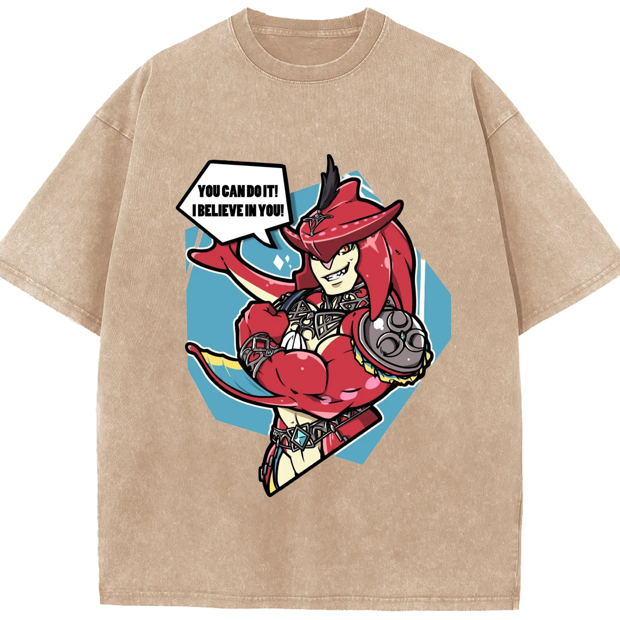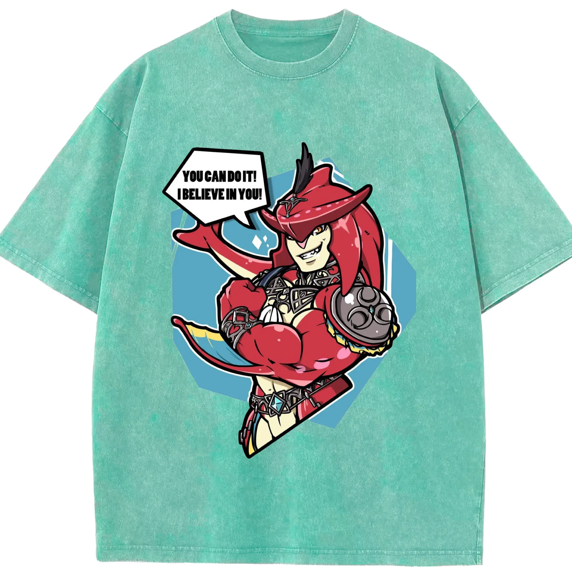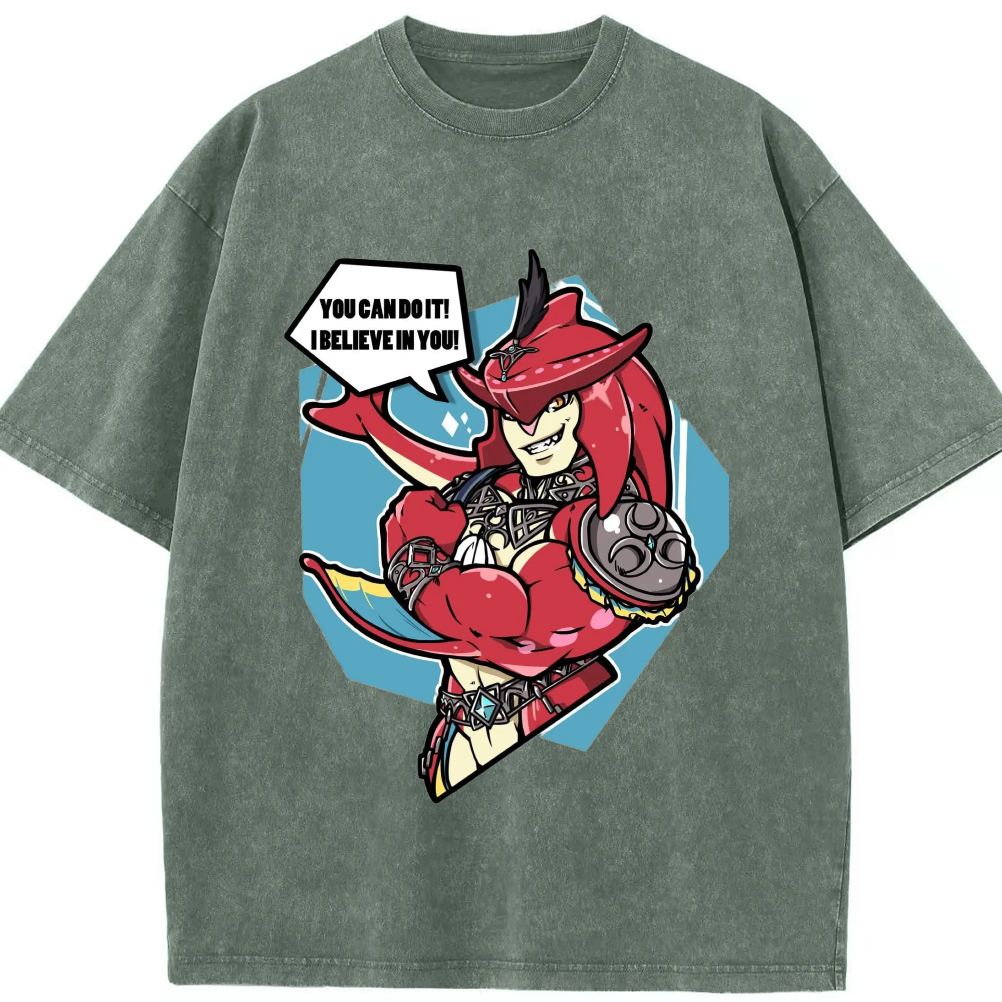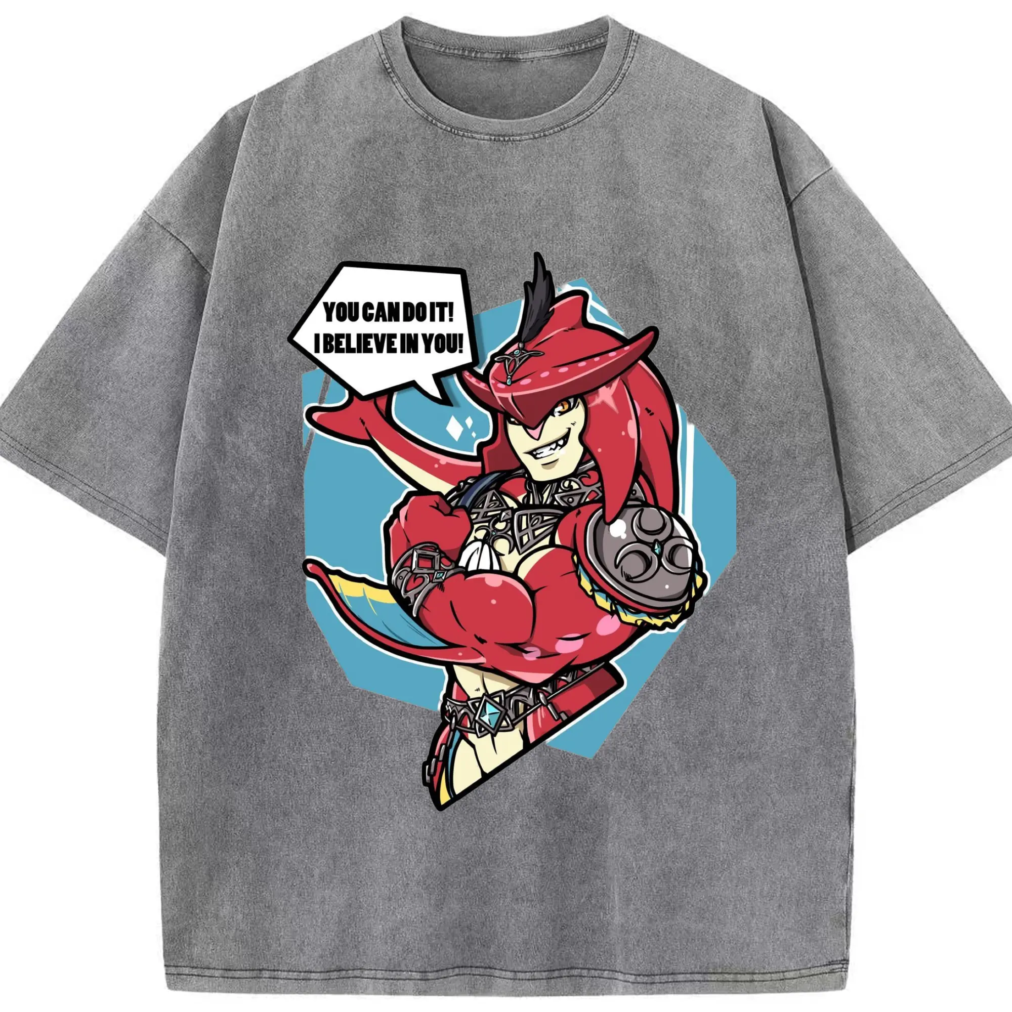Legend of Zelda Prince Sidon Design T-Shirt - Washed Vintage Look 230g Cotton Oversized T-Shirt With Front Heat Transfer Print – Soft, Lightweight, Stylish Fit – Comfortable Casual Wear For Sports & Everyday Use