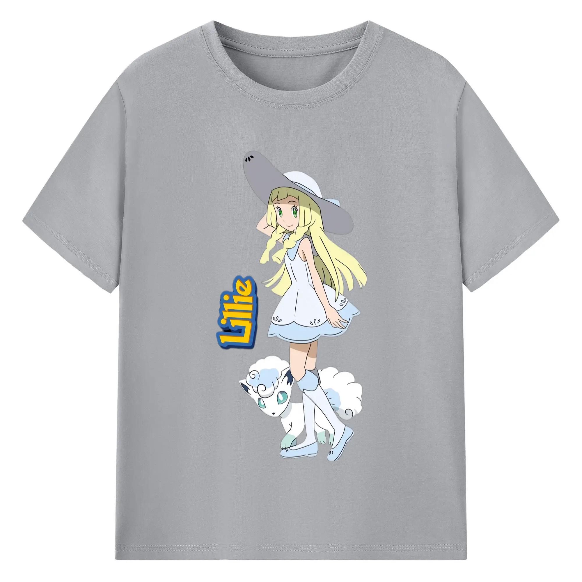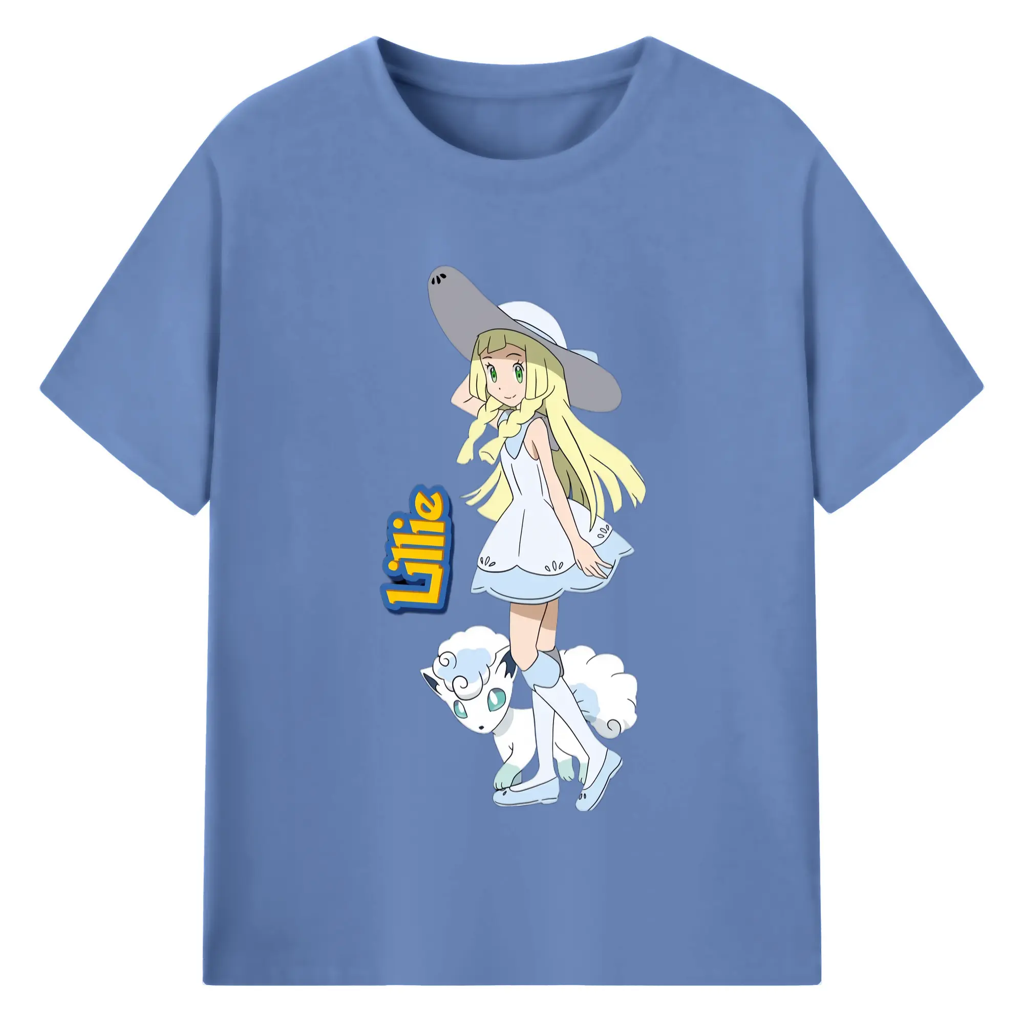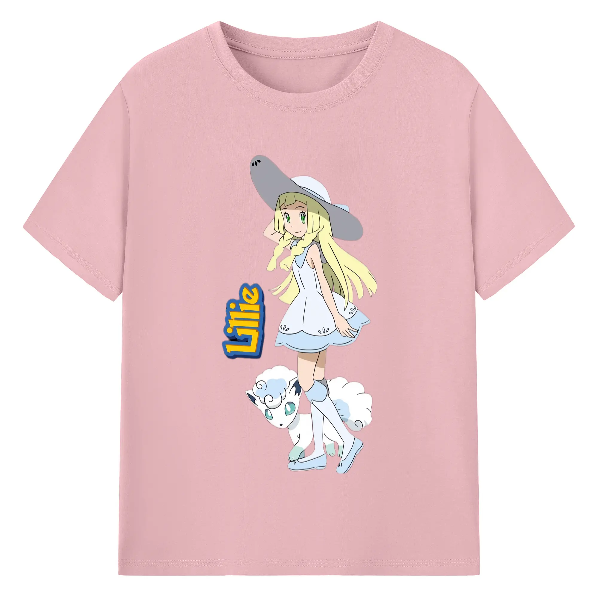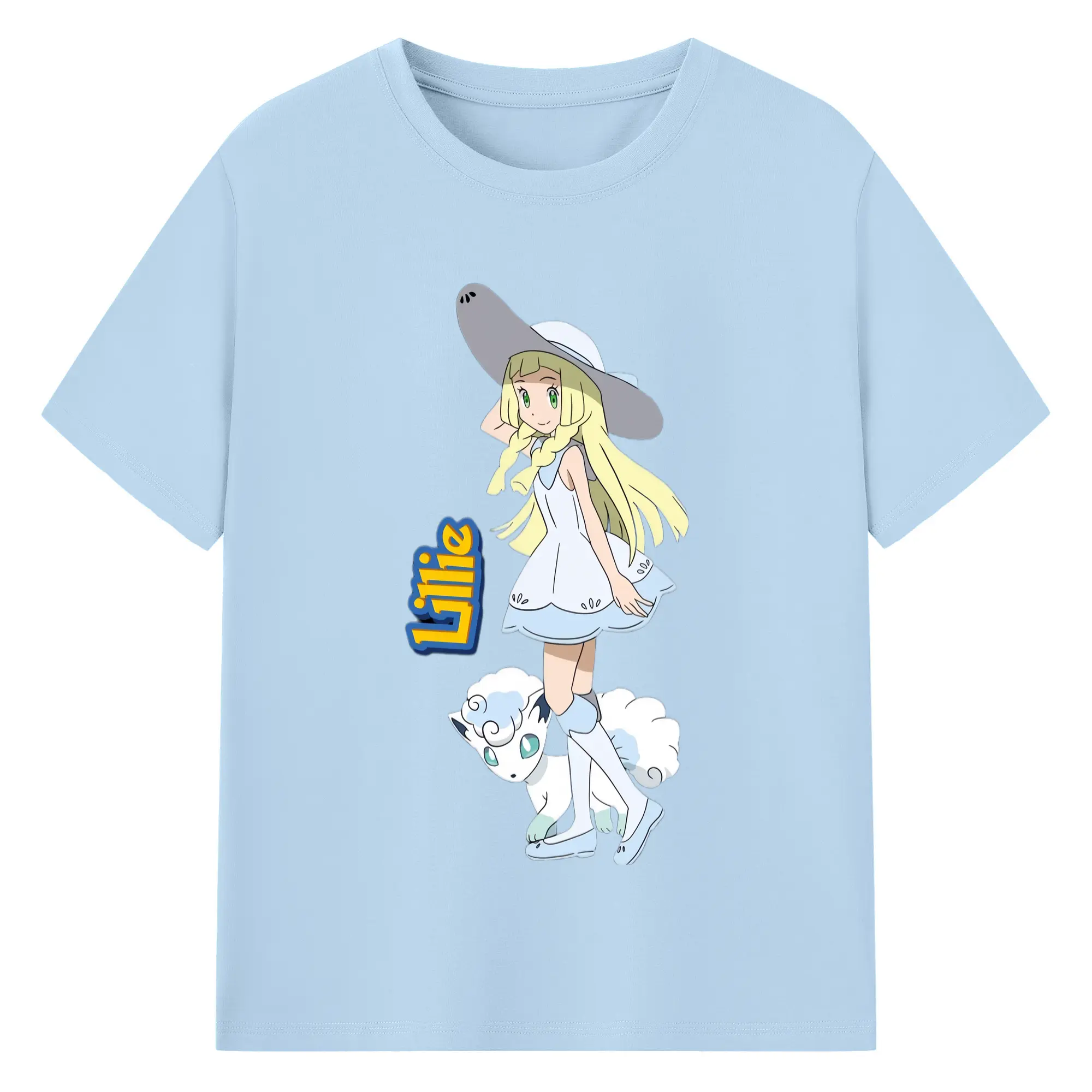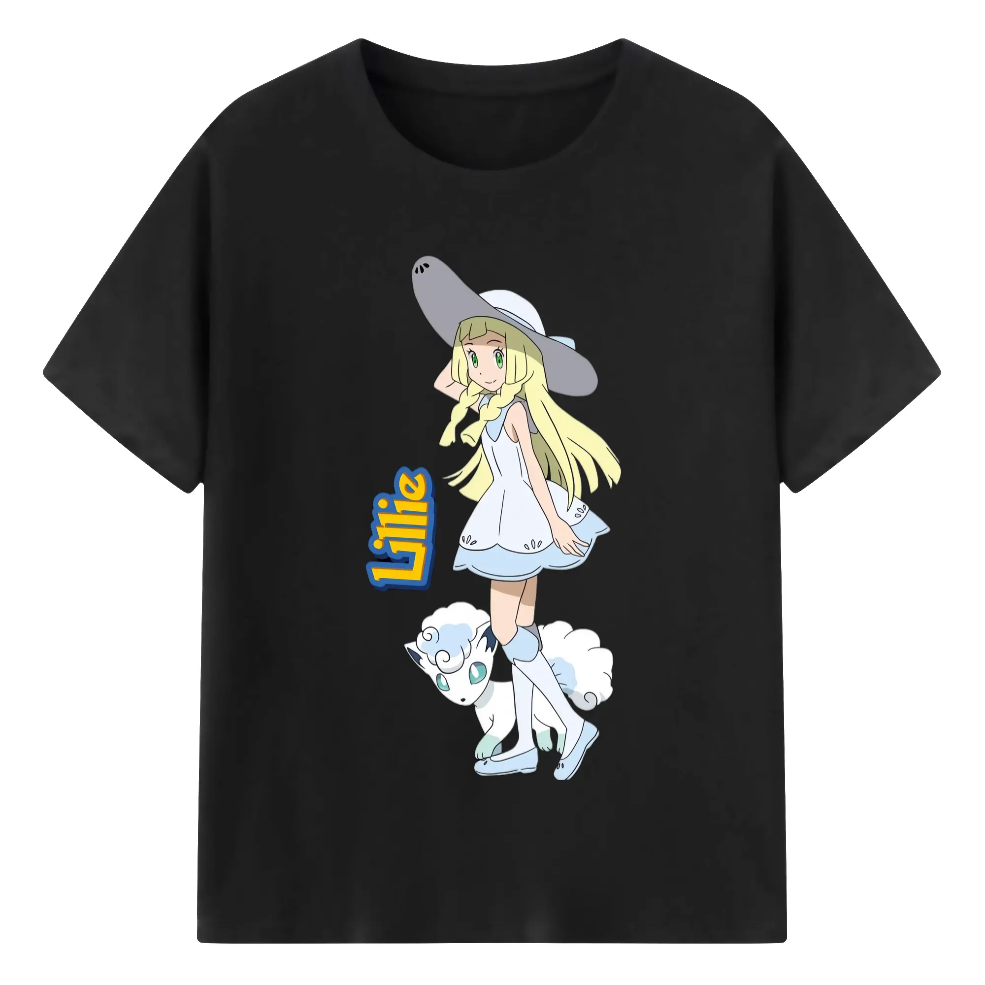 Lillie Pokemon graphic t-shirt - 180g Cotton T-Shirt With Front Heat Transfer Print – Soft, Lightweight, Fitted Design – Comfortable Casual Wear For Sports & Everyday Use
