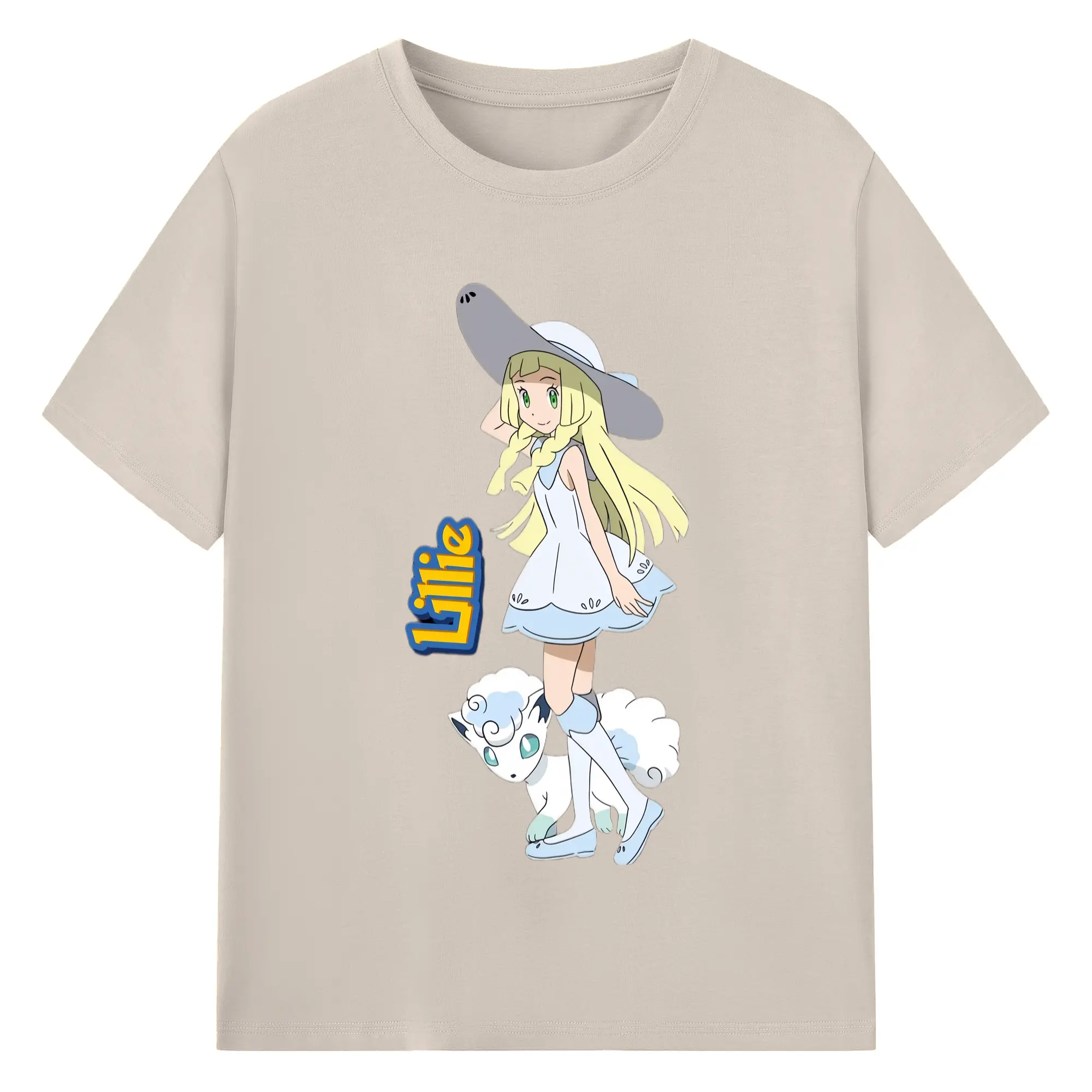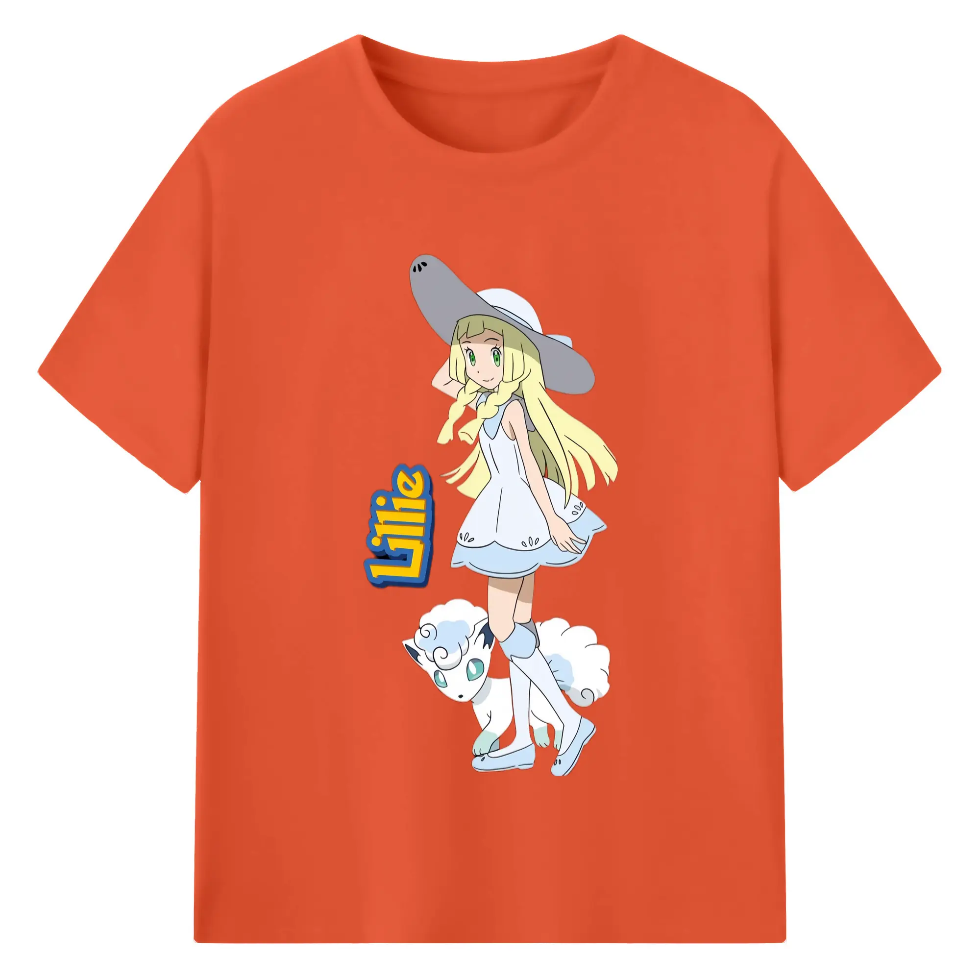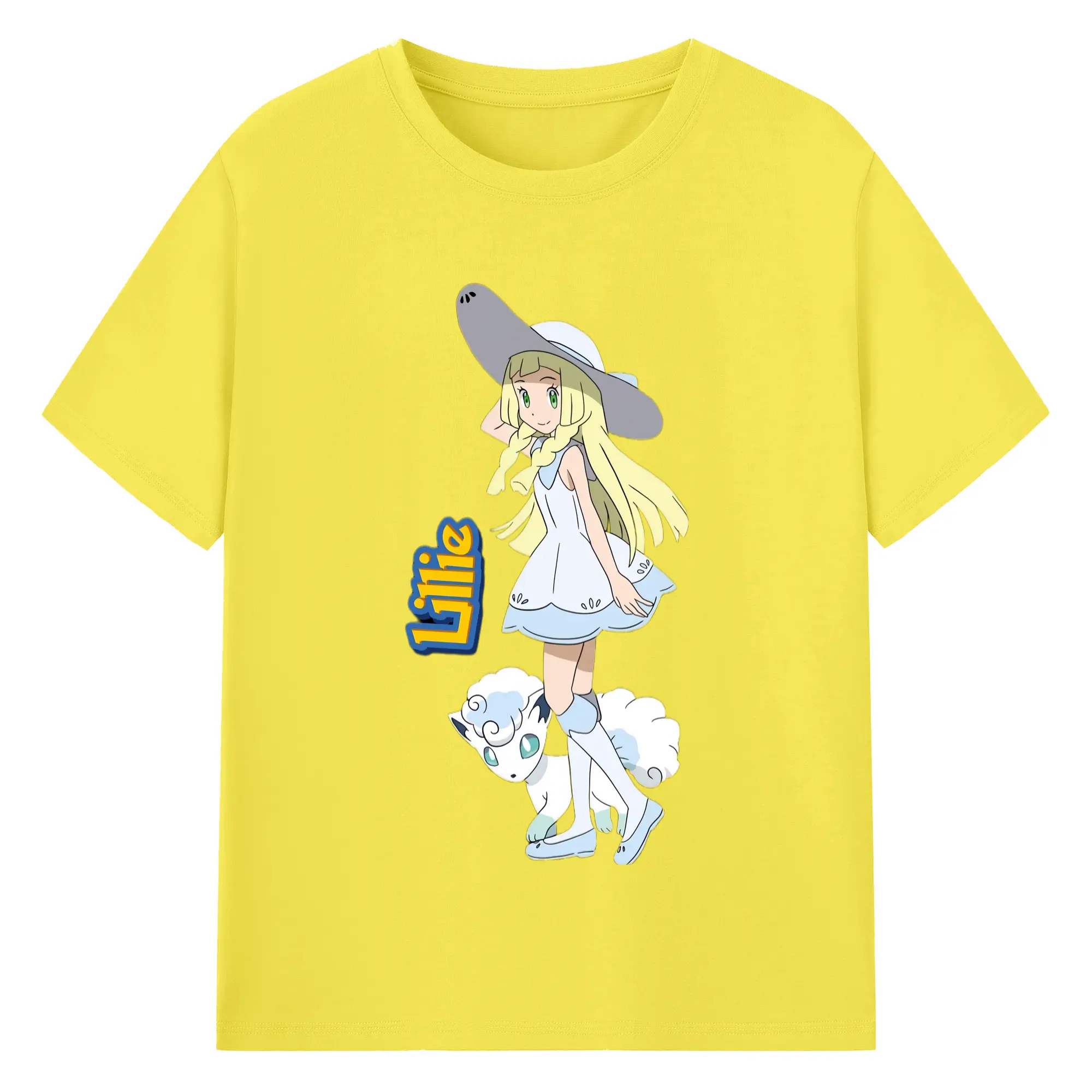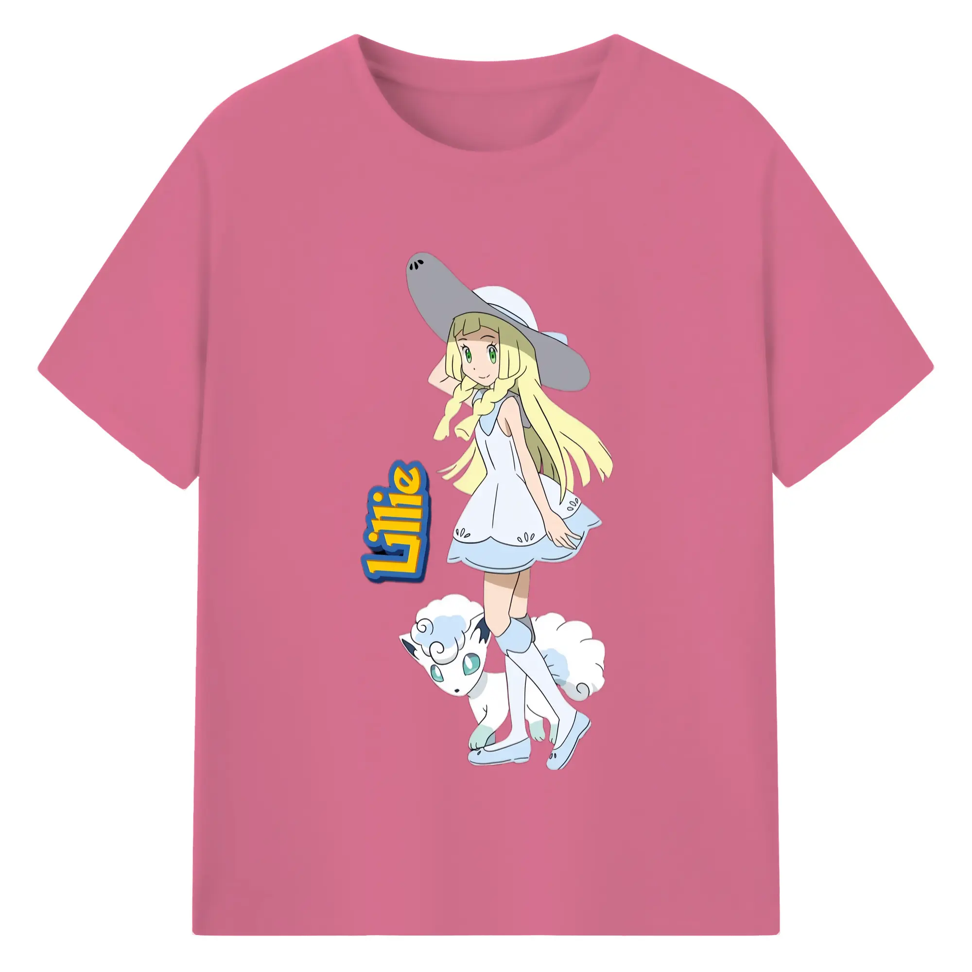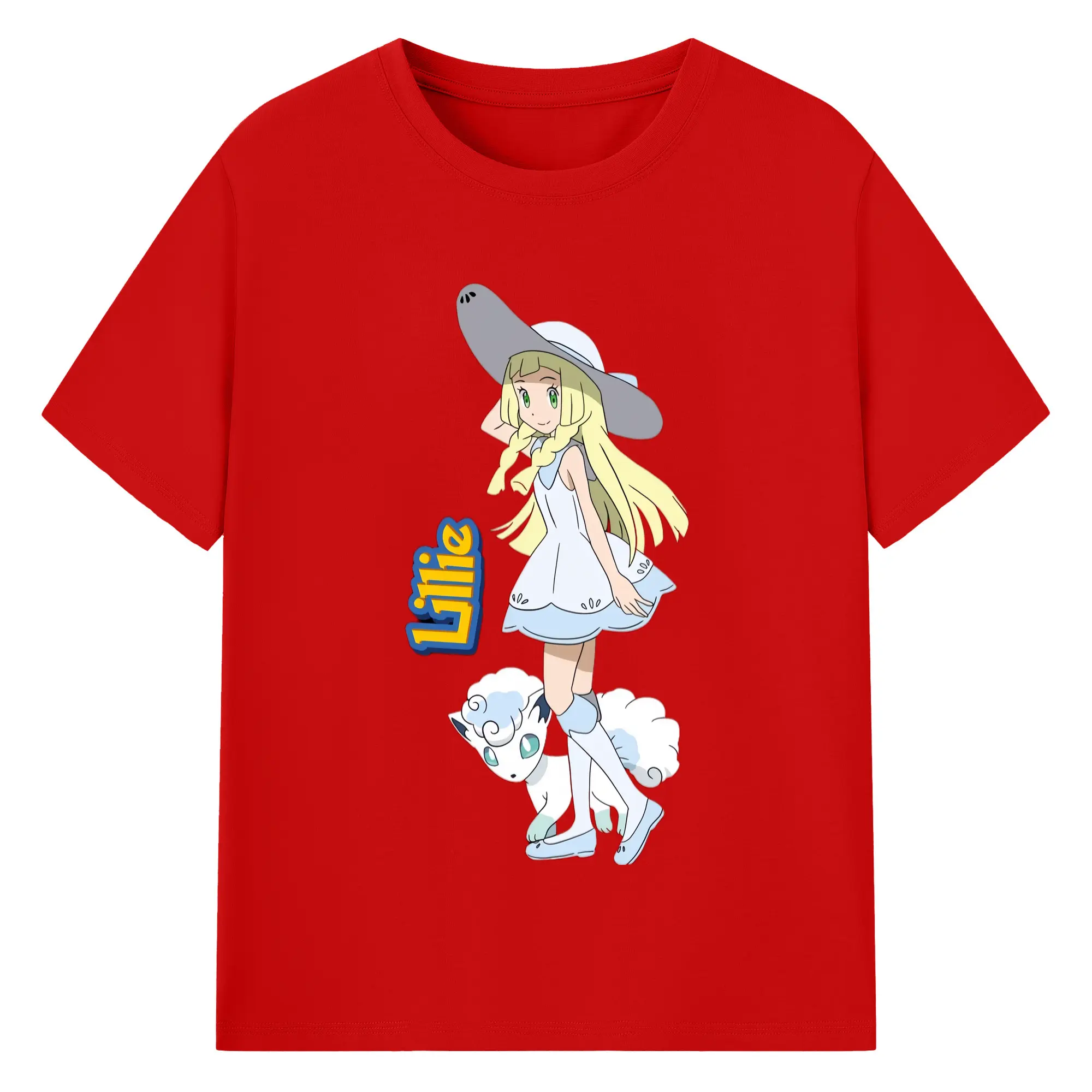 Lillie Pokemon graphic t-shirt - 180g Cotton T-Shirt With Front Heat Transfer Print – Soft, Lightweight, Fitted Design – Comfortable Casual Wear For Sports & Everyday Use