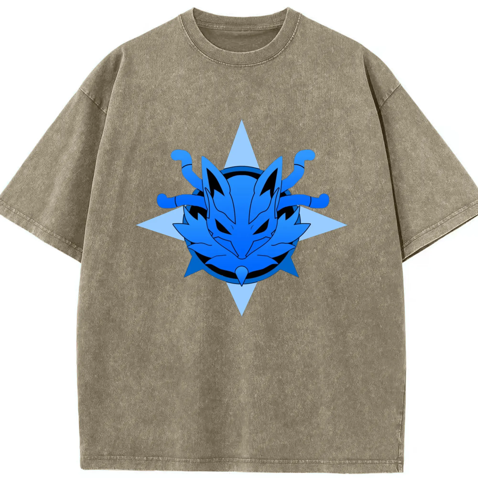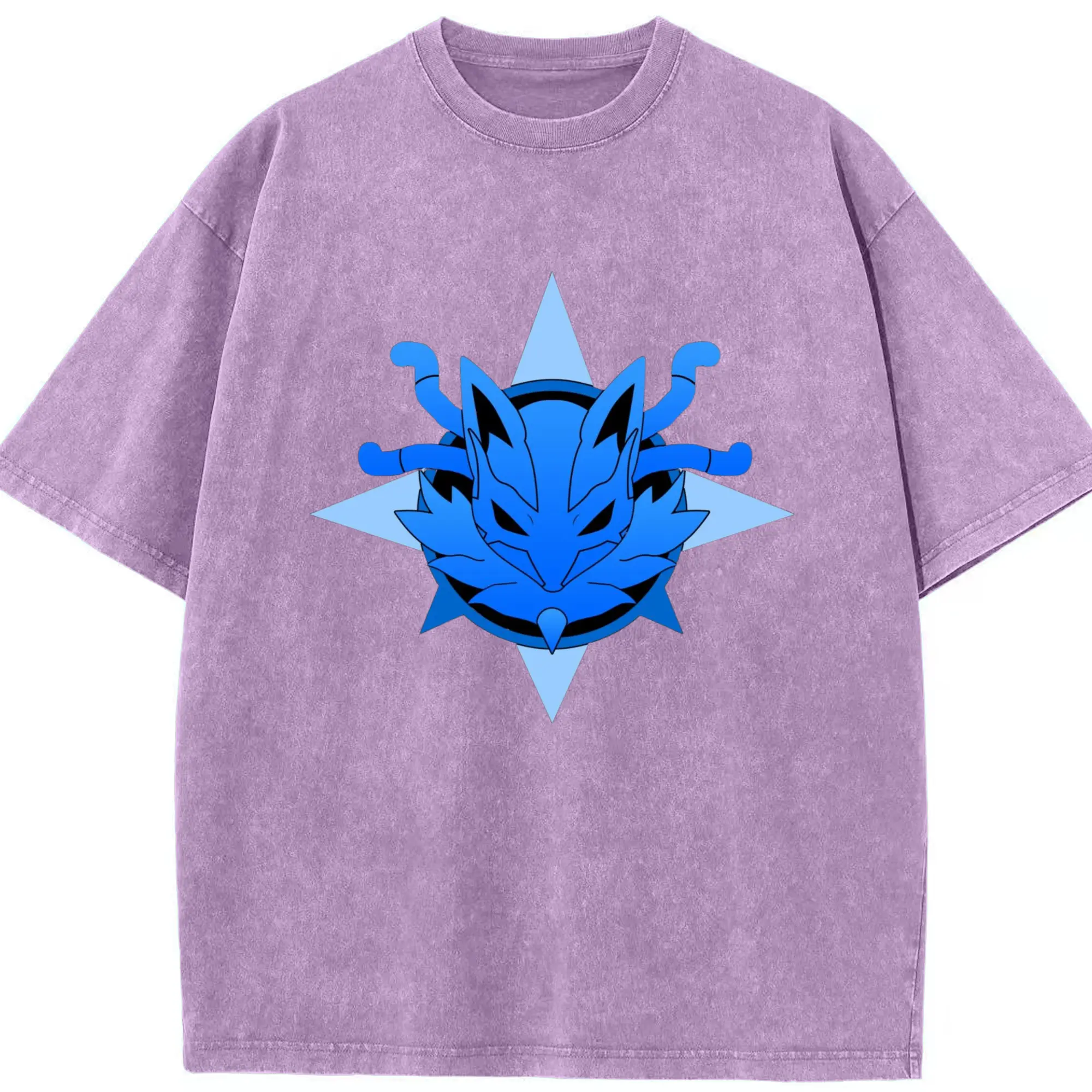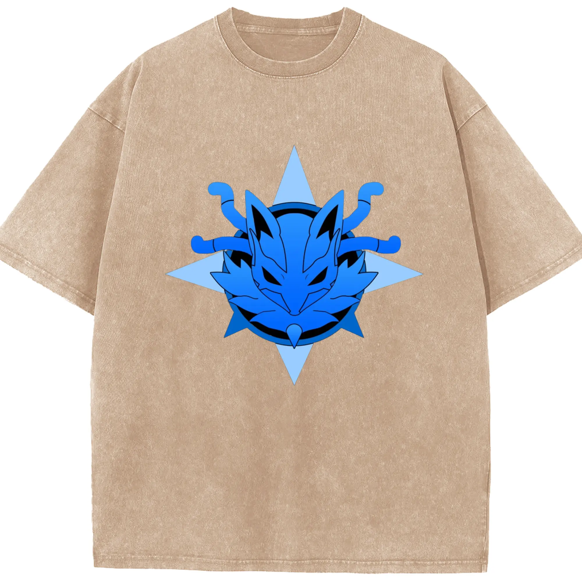 Lucario shirt design​ - Washed Vintage Look 230g Cotton Oversized T-Shirt With Front Heat Transfer Print – Soft, Lightweight, Stylish Fit – Comfortable Casual Wear For Sports & Everyday Use