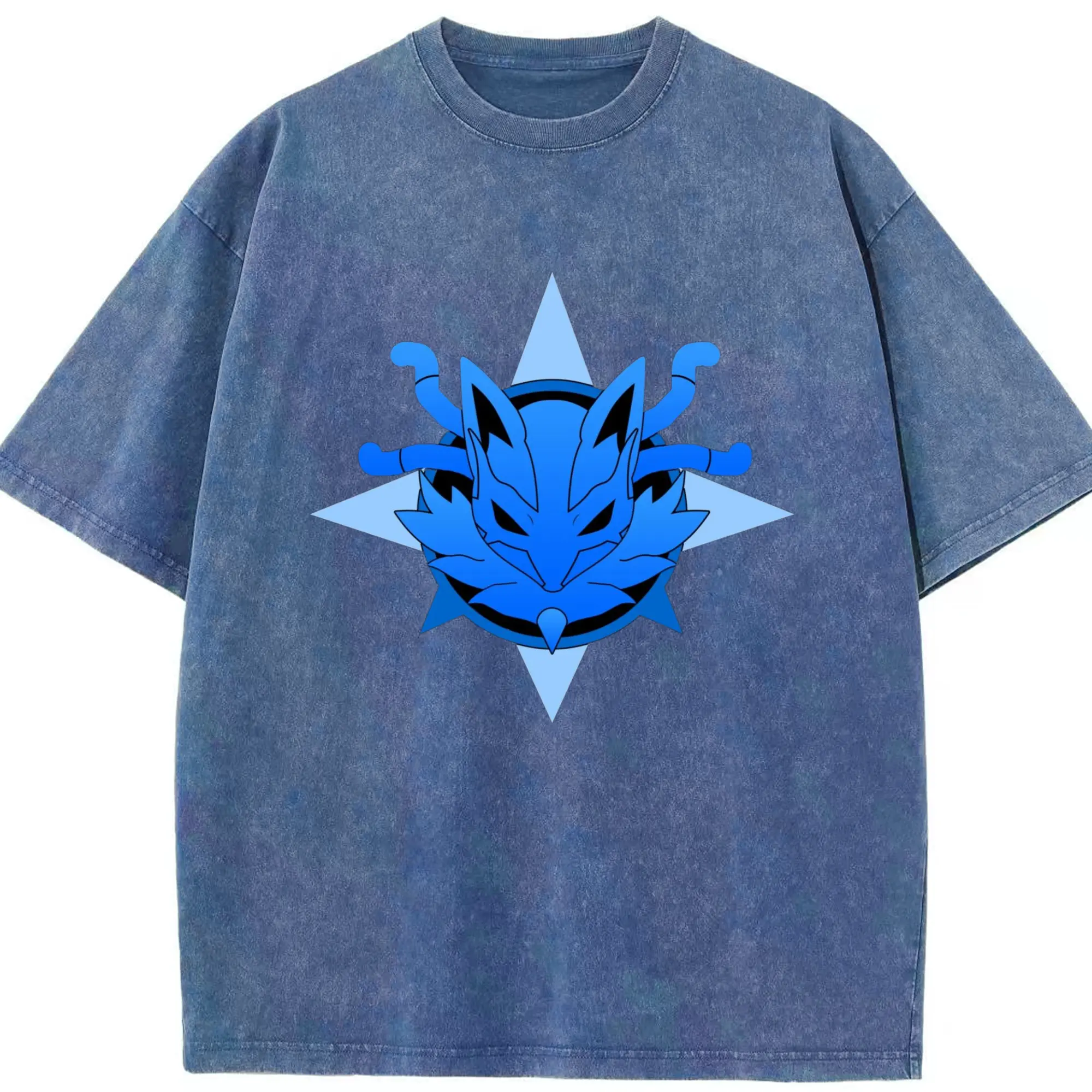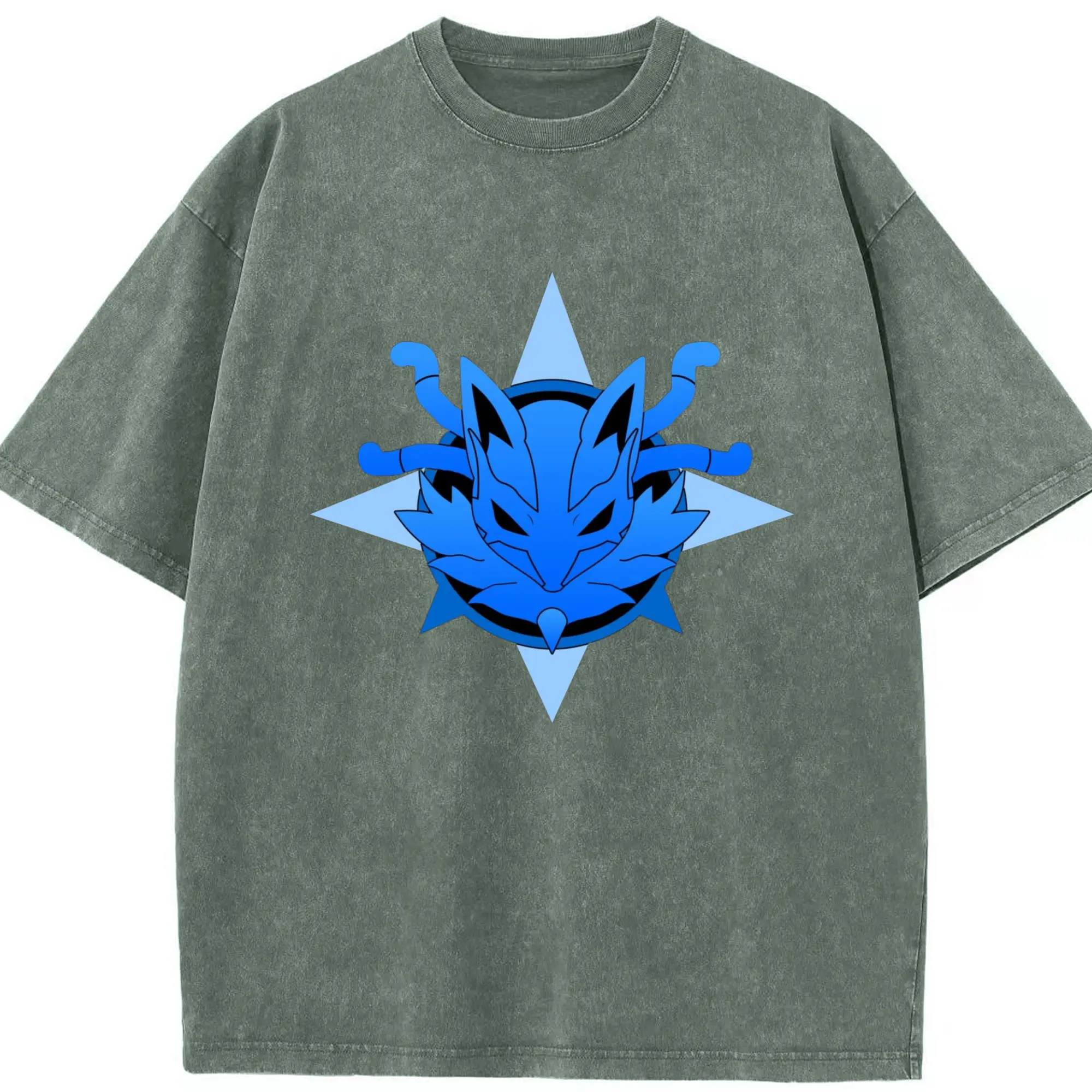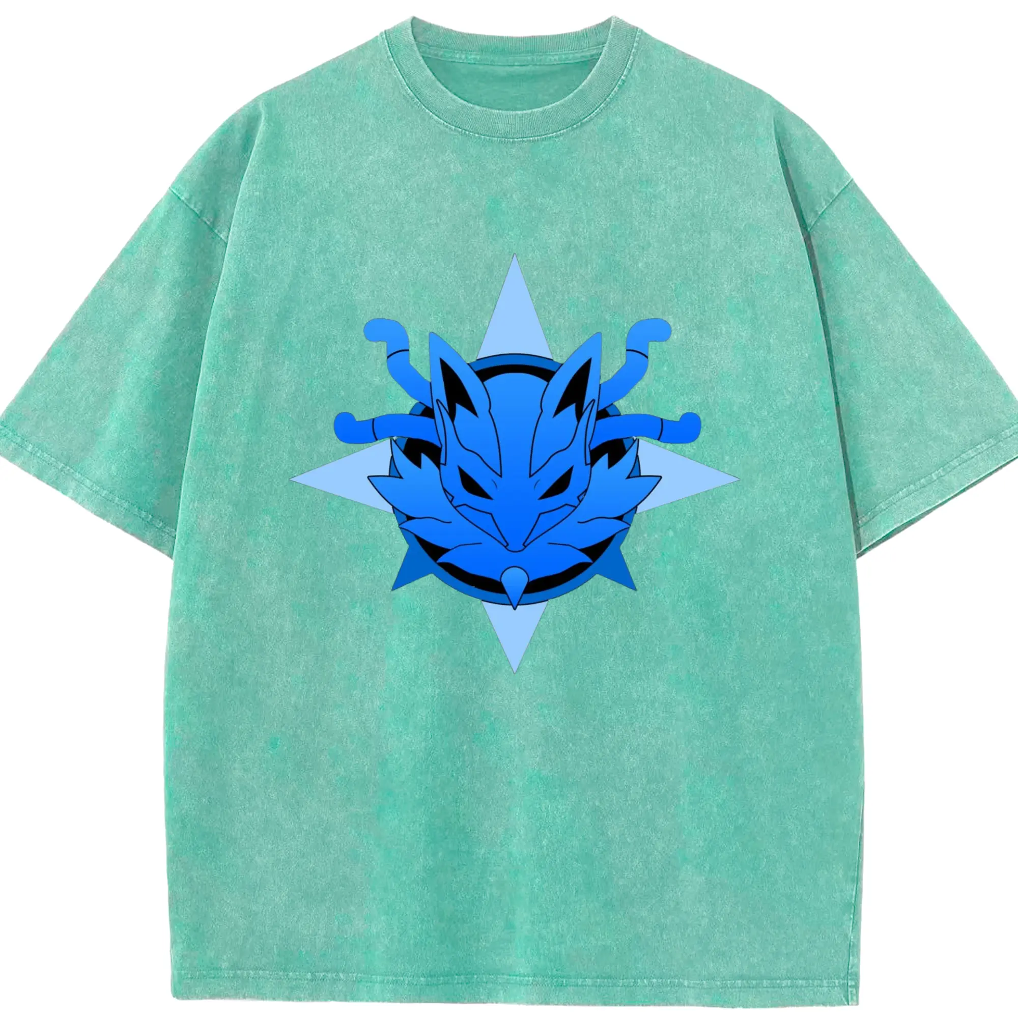 Lucario shirt design​ - Washed Vintage Look 230g Cotton Oversized T-Shirt With Front Heat Transfer Print – Soft, Lightweight, Stylish Fit – Comfortable Casual Wear For Sports & Everyday Use