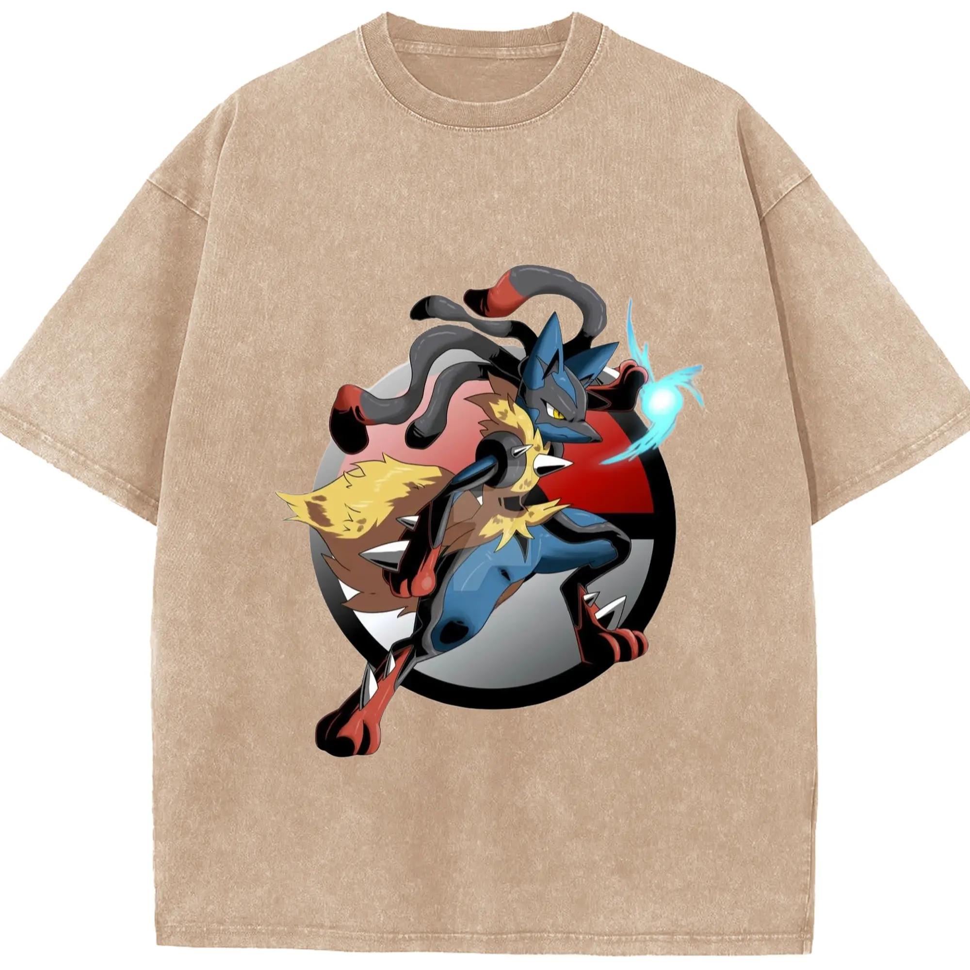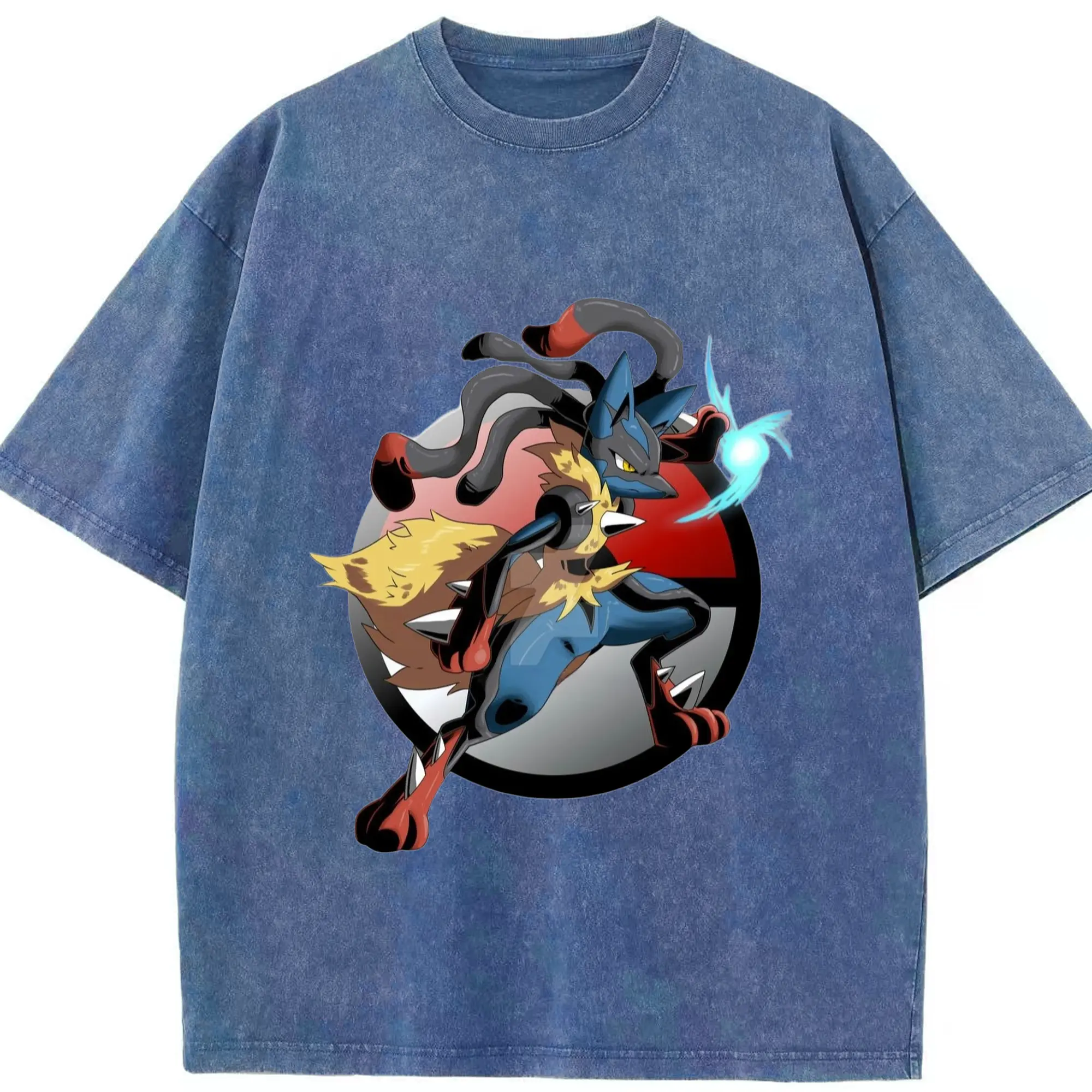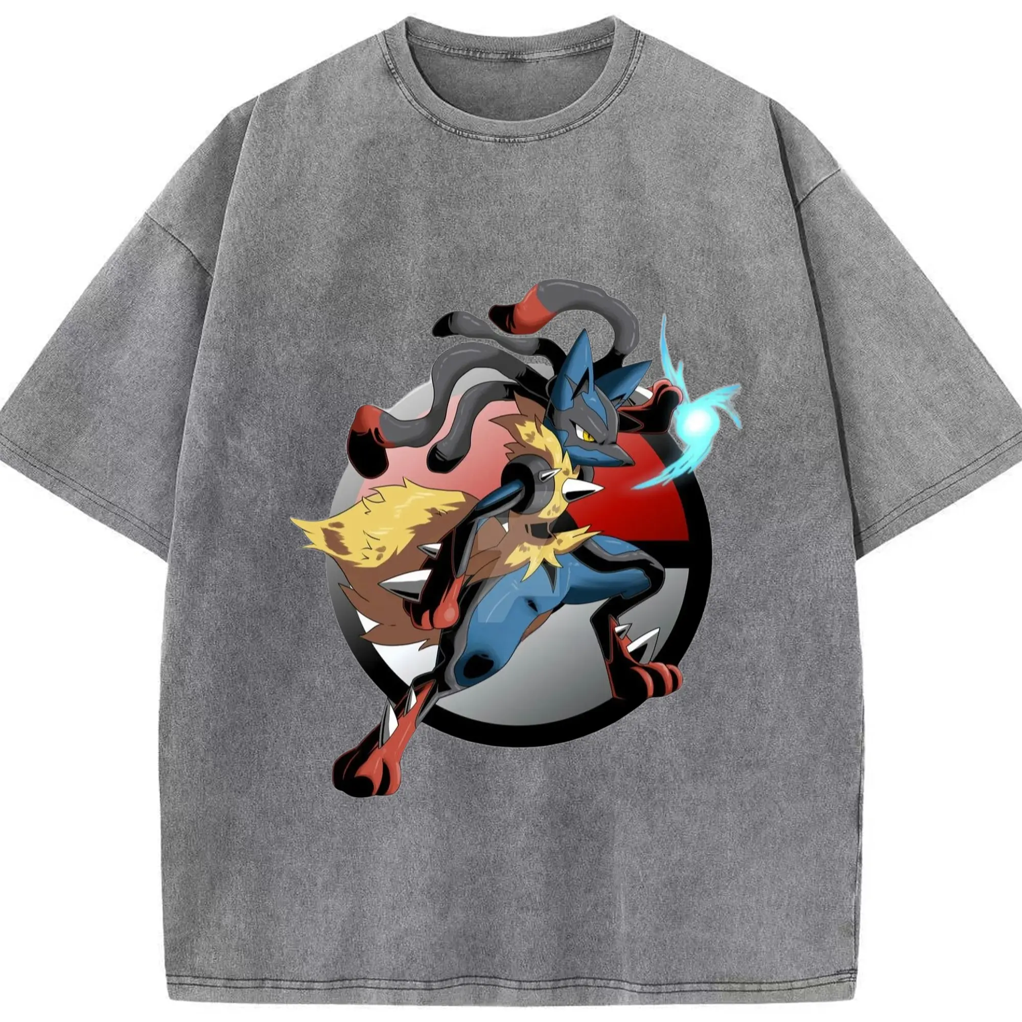 Lucario tee shirt - Washed Vintage Look 230g Cotton Oversized T-Shirt With Front Heat Transfer Print – Soft, Lightweight, Stylish Fit – Comfortable Casual Wear For Sports & Everyday Use