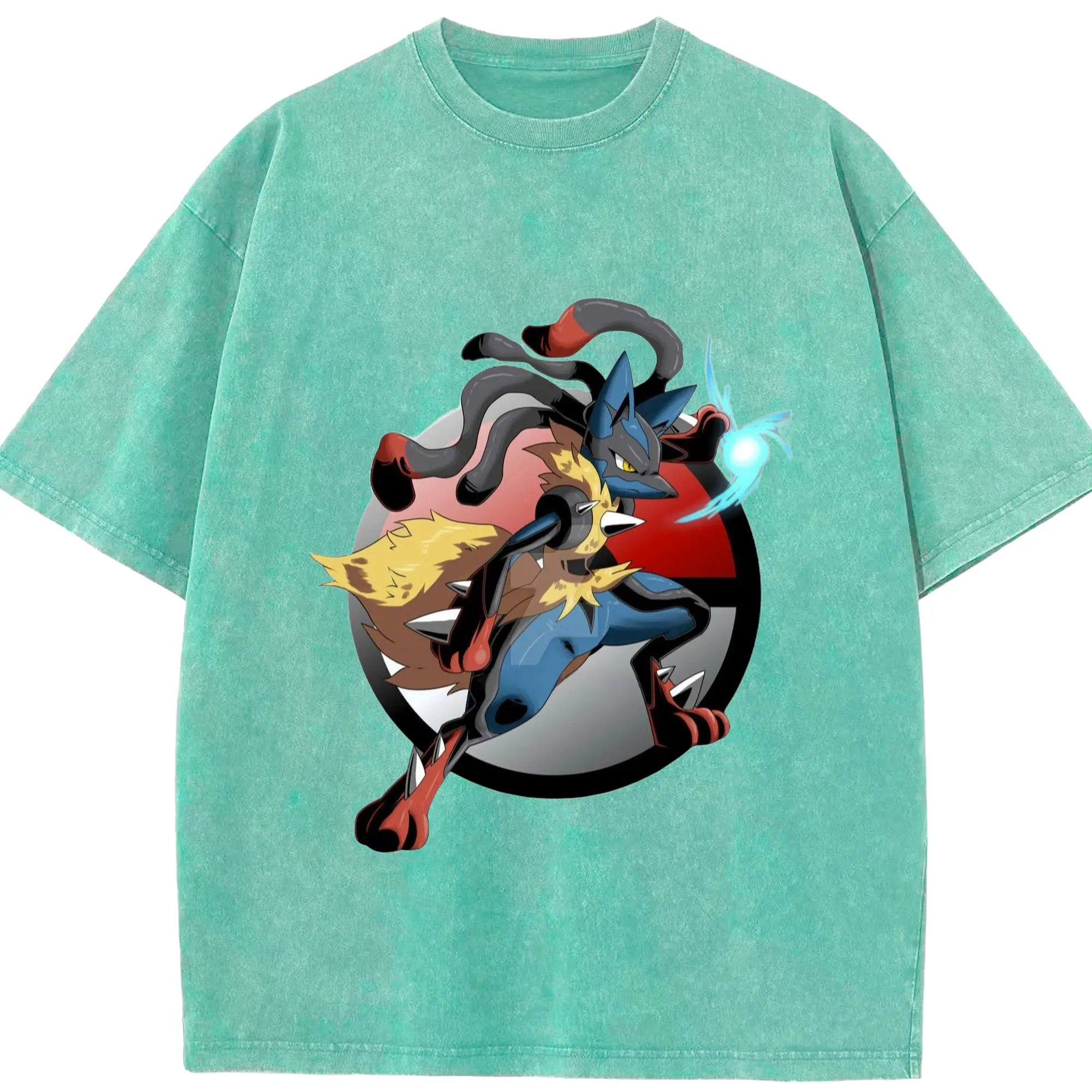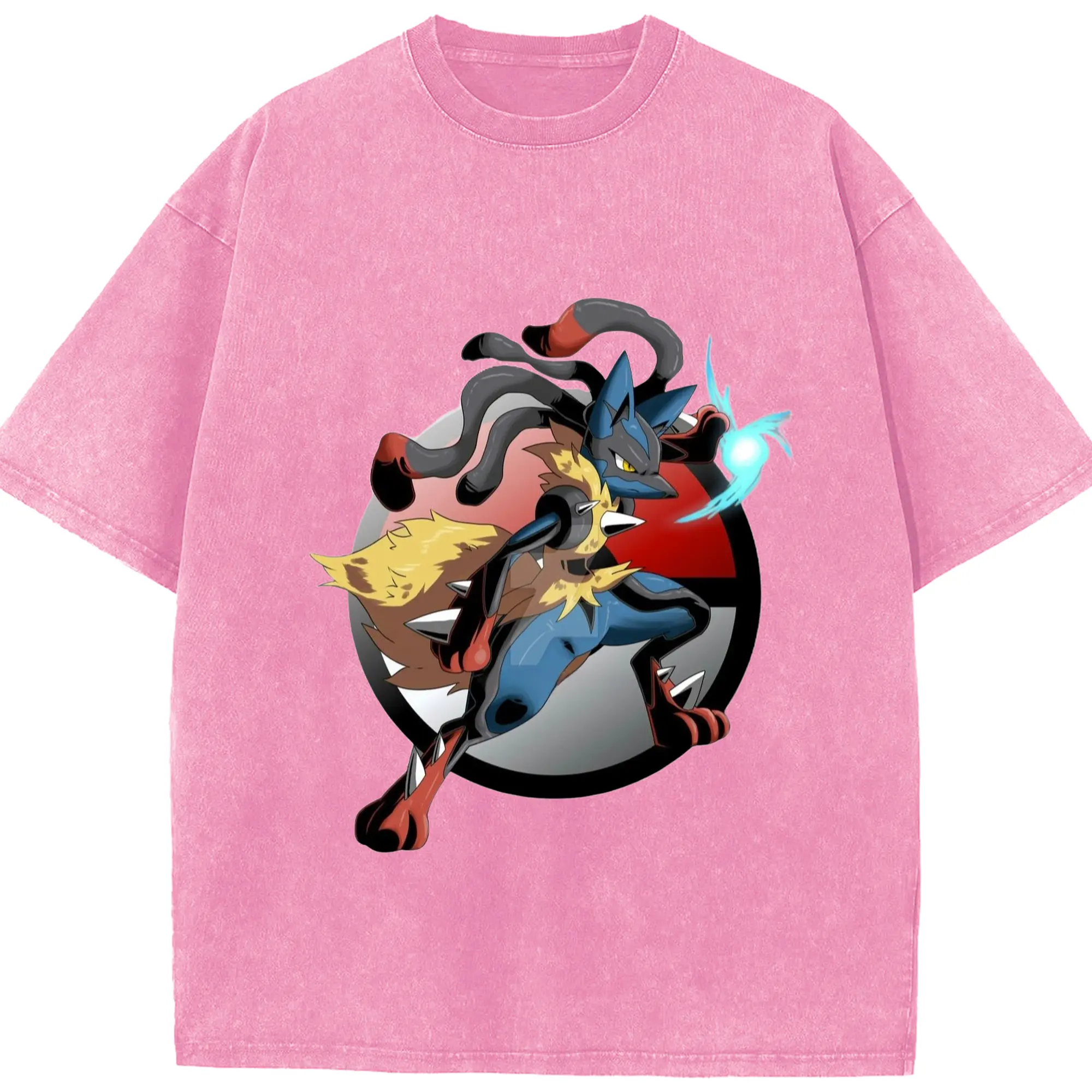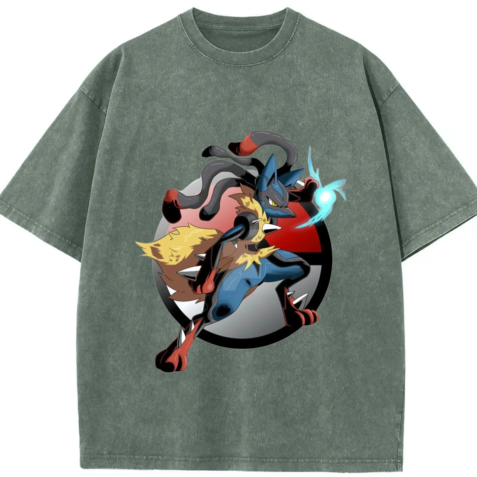 Lucario tee shirt - Washed Vintage Look 230g Cotton Oversized T-Shirt With Front Heat Transfer Print – Soft, Lightweight, Stylish Fit – Comfortable Casual Wear For Sports & Everyday Use