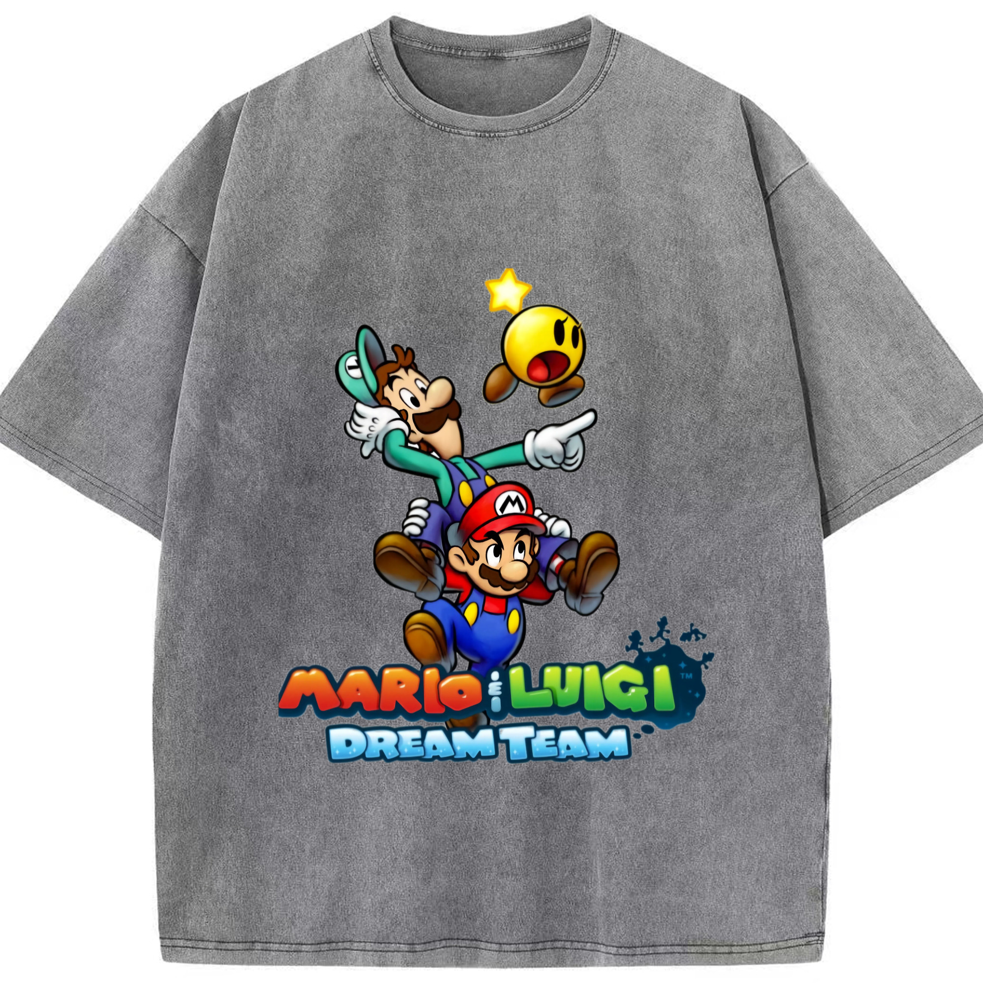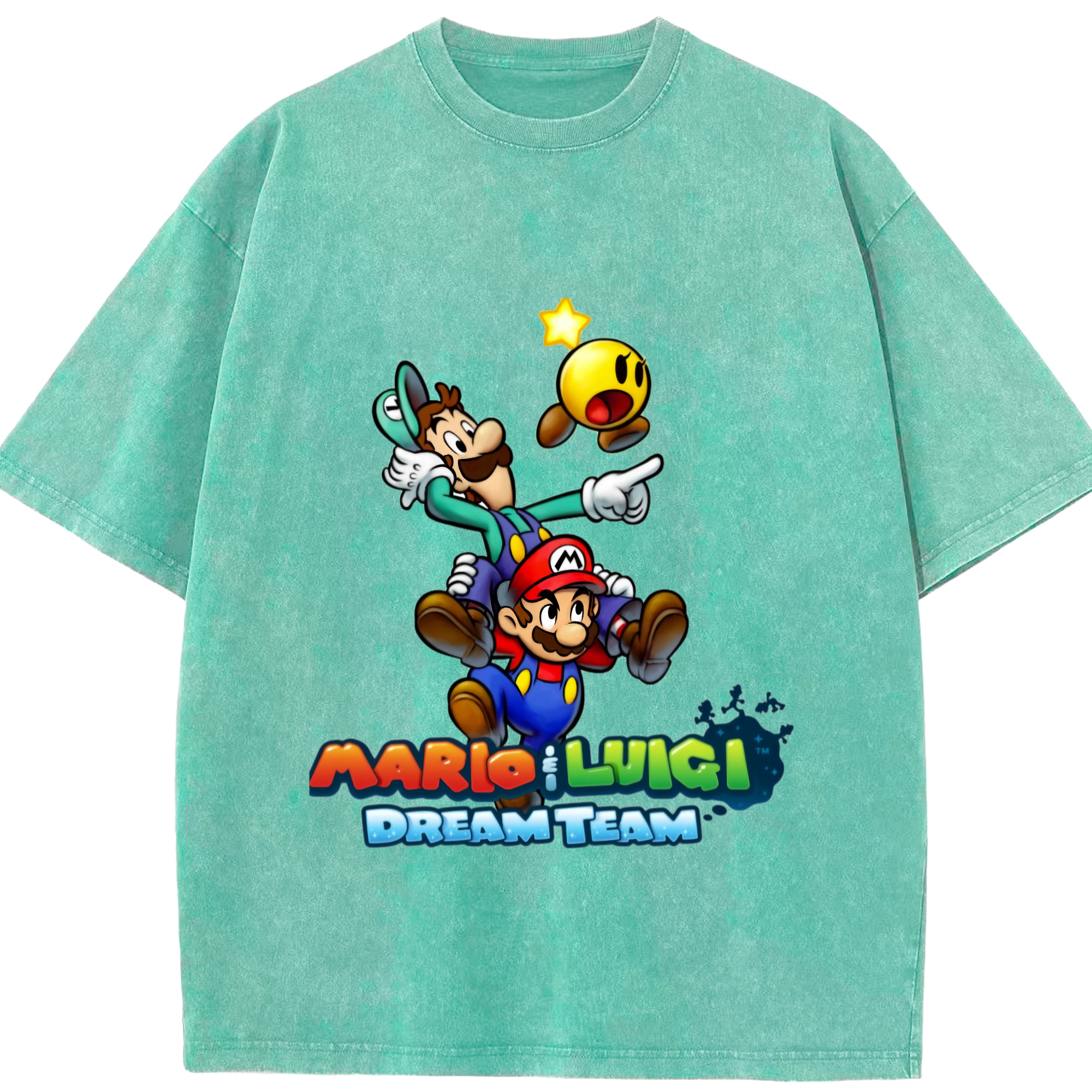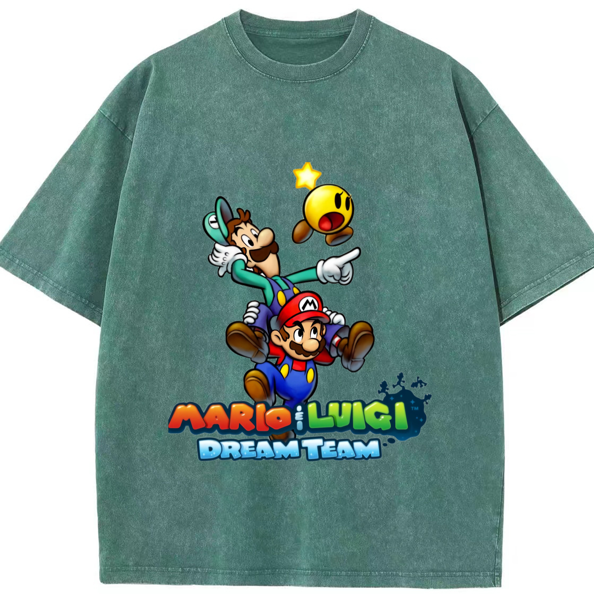 Mario and luigi t dream team shirts - Washed Vintage Look 230g Cotton Oversized T-Shirt With Front Heat Transfer Print – Soft, Lightweight, Stylish Fit – Comfortable Casual Wear For Sports & Everyday Use