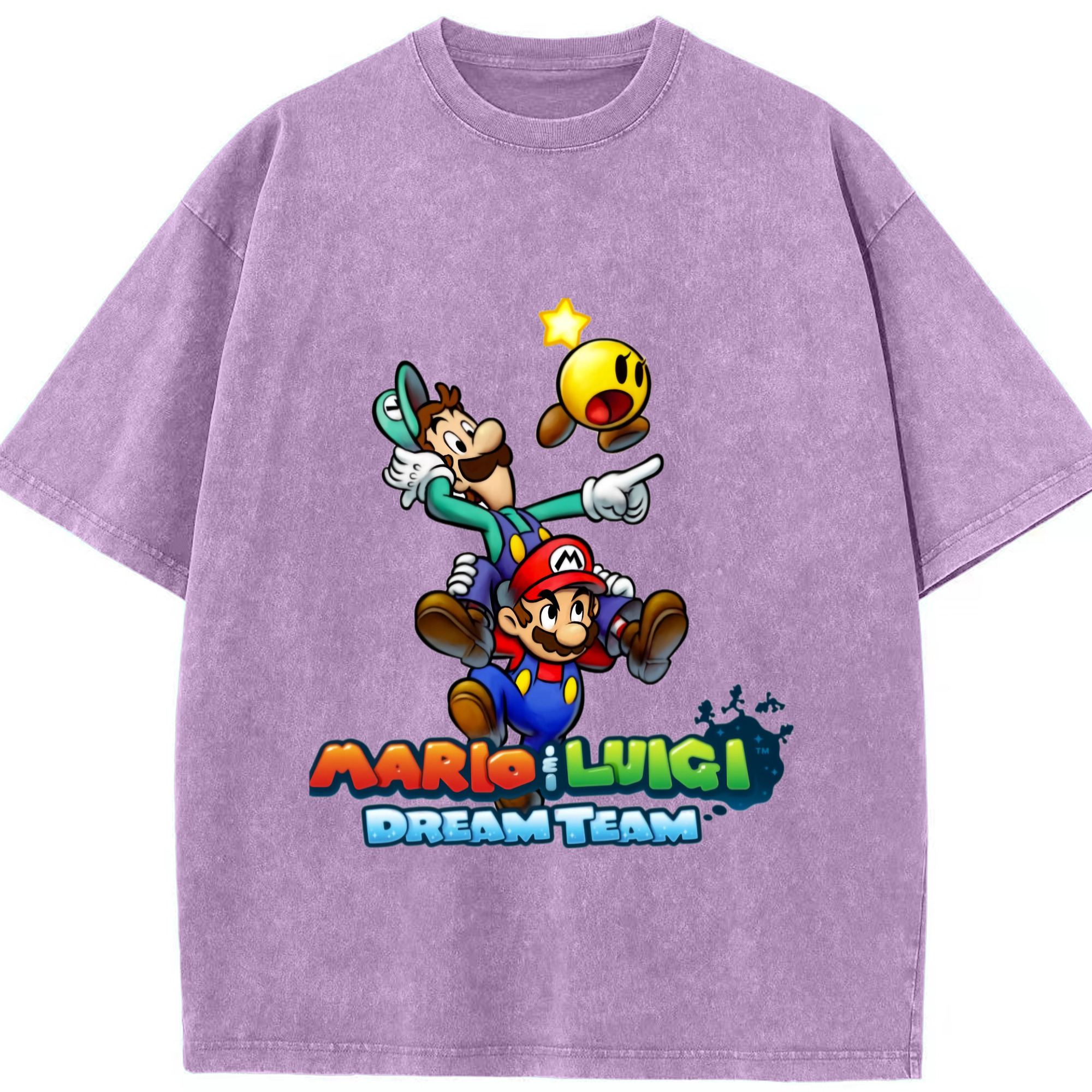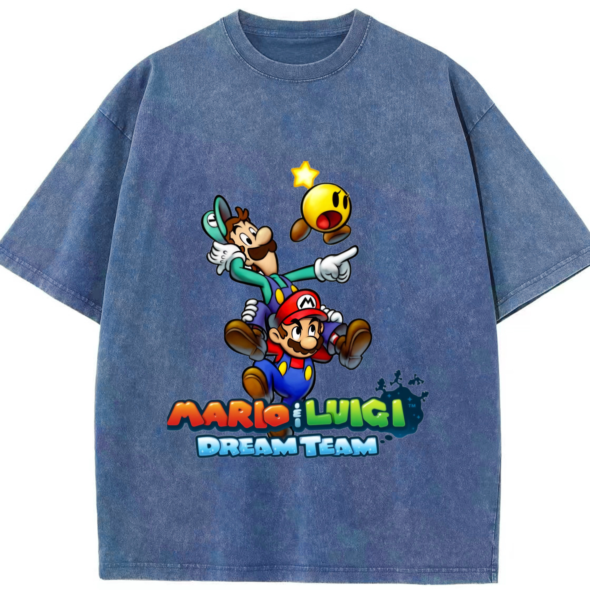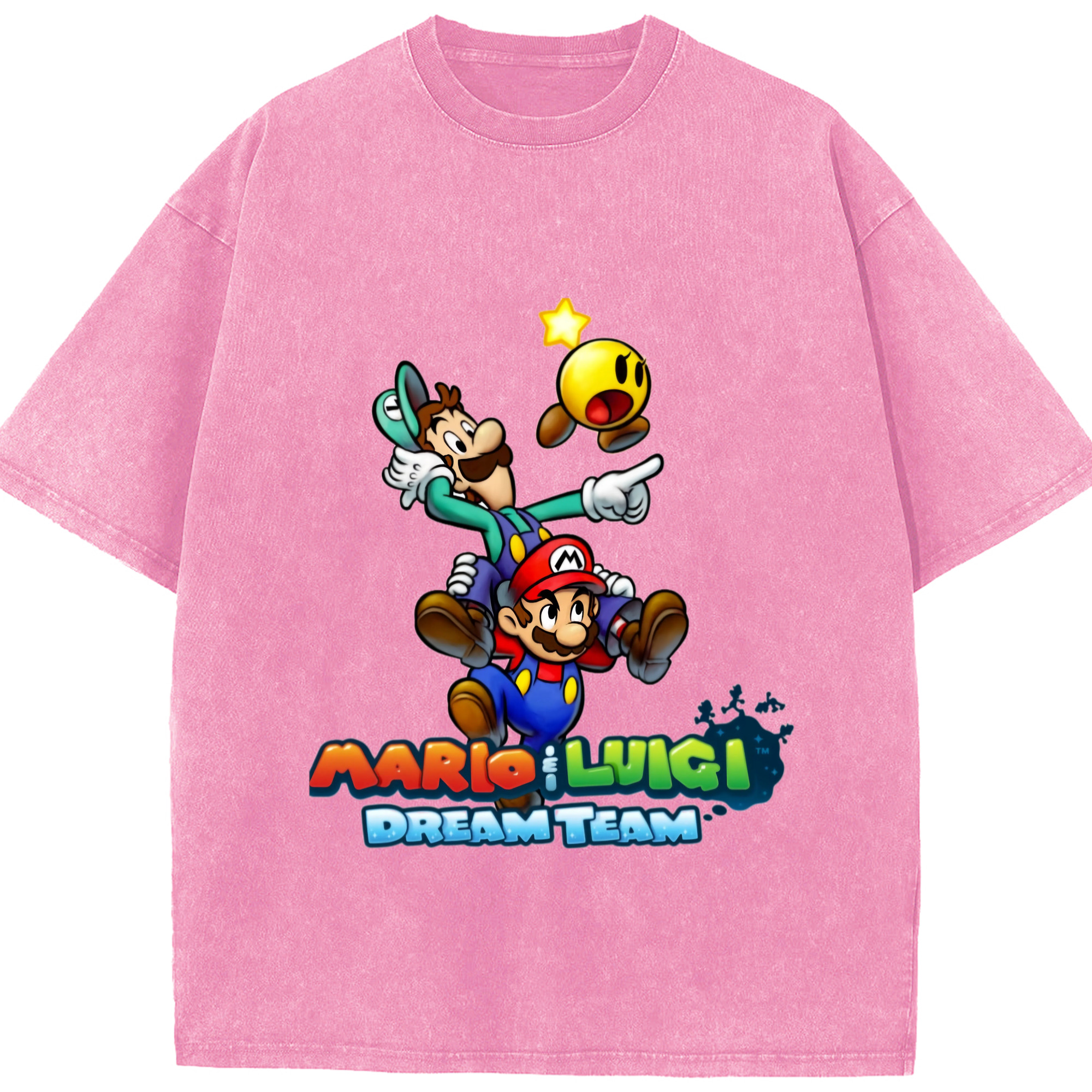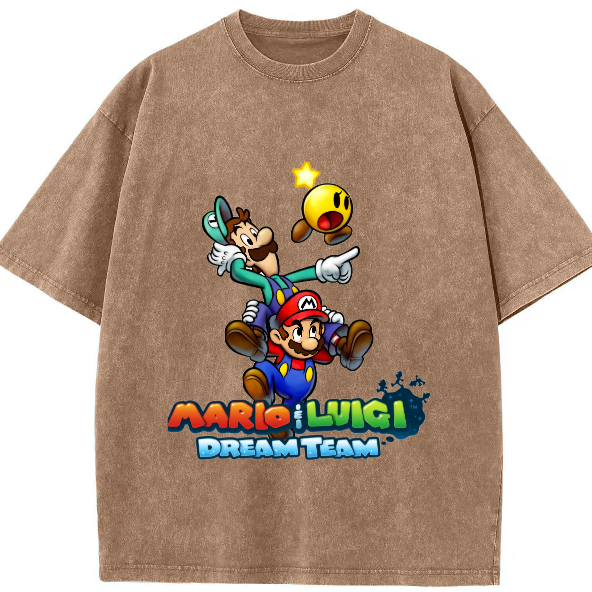 Mario and luigi t dream team shirts - Washed Vintage Look 230g Cotton Oversized T-Shirt With Front Heat Transfer Print – Soft, Lightweight, Stylish Fit – Comfortable Casual Wear For Sports & Everyday Use