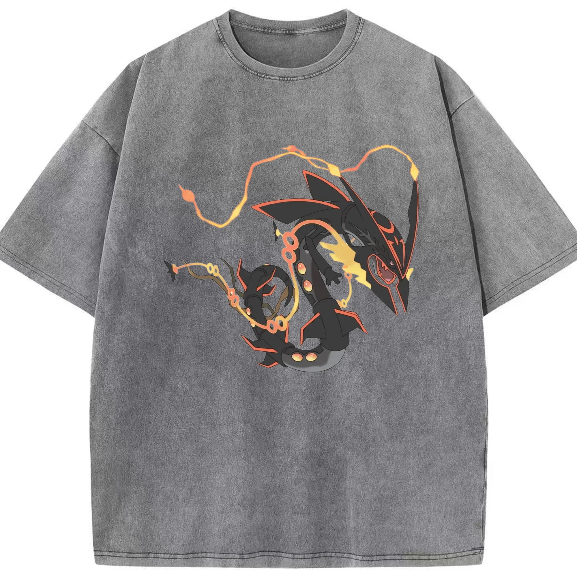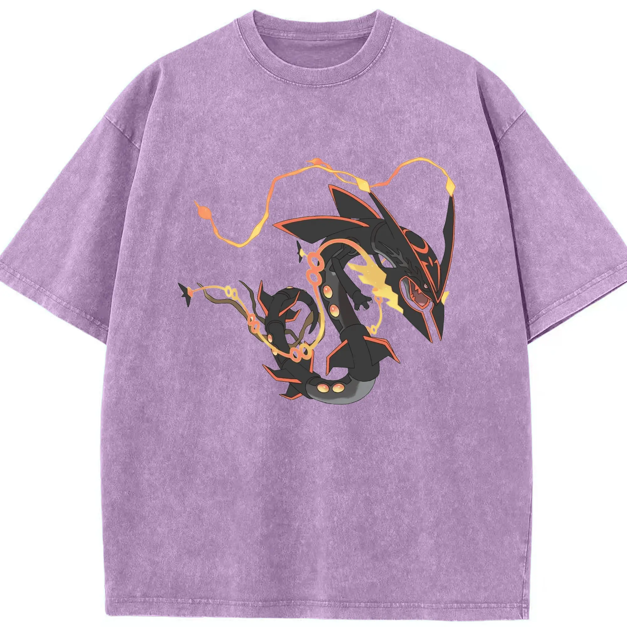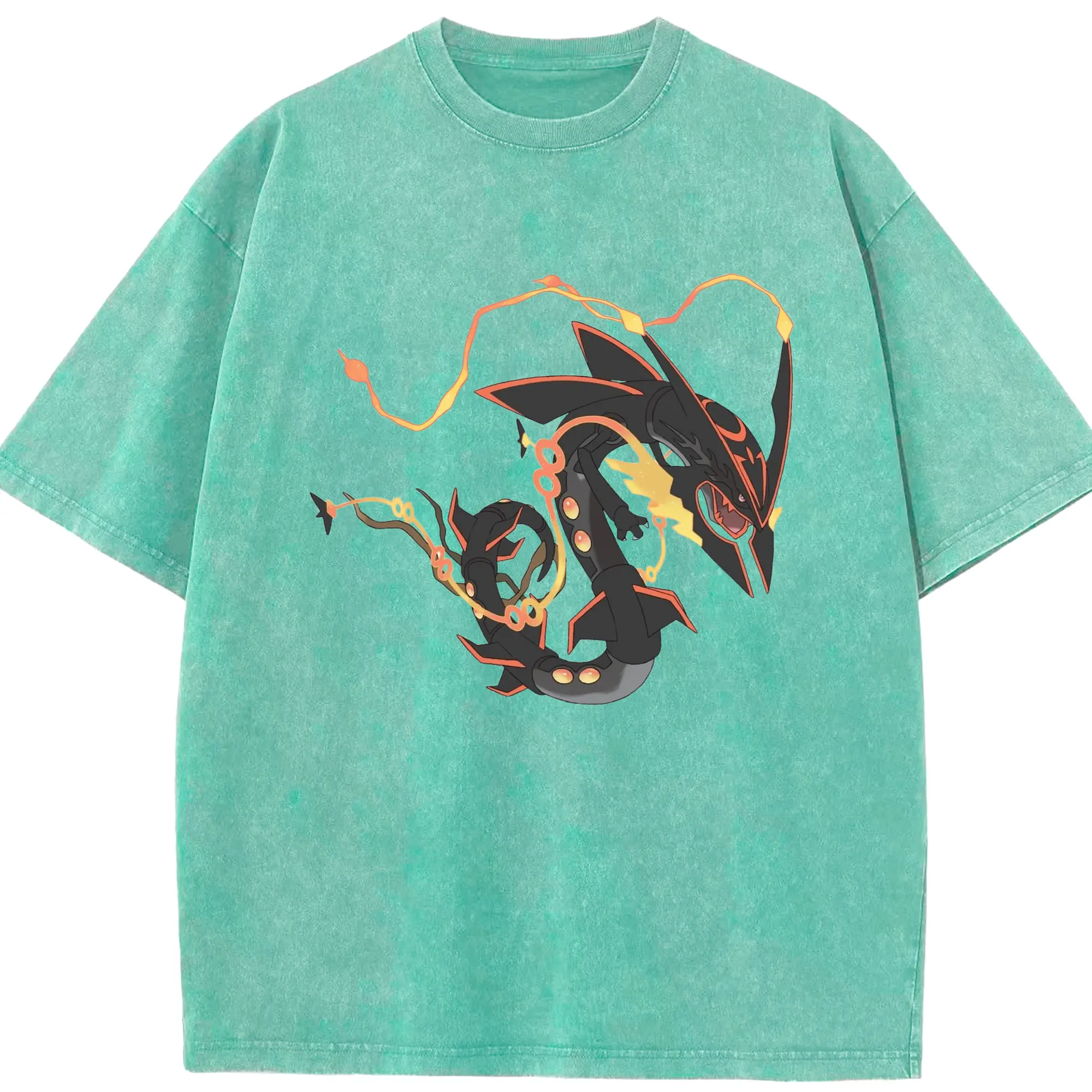 Mega rayquaza t shirt​ - Washed Vintage Look 230g Cotton Oversized T-Shirt With Front Heat Transfer Print – Soft, Lightweight, Stylish Fit – Comfortable Casual Wear For Sports & Everyday Use