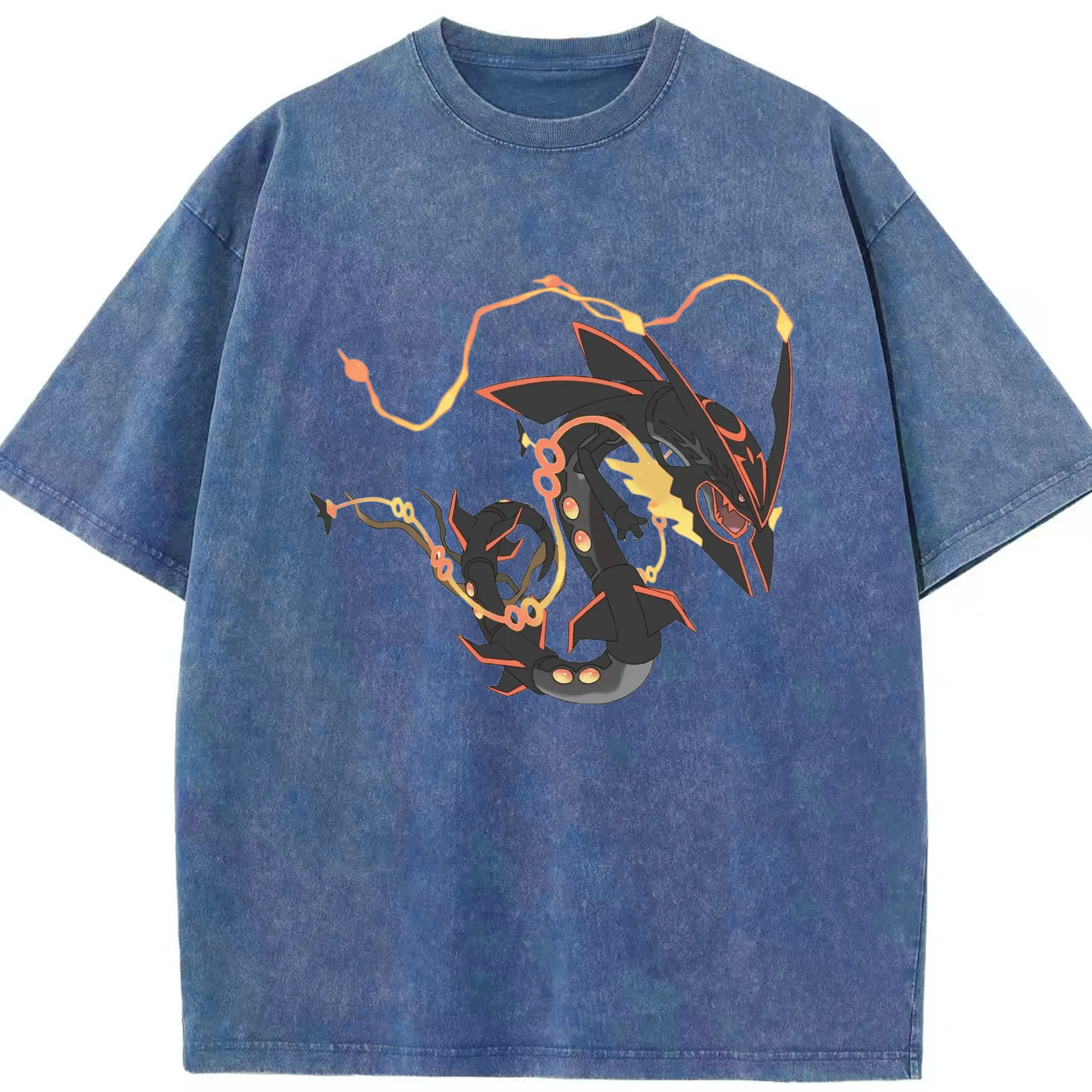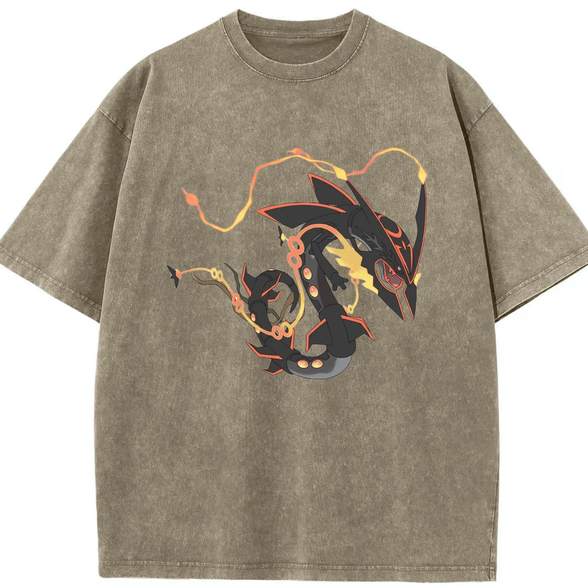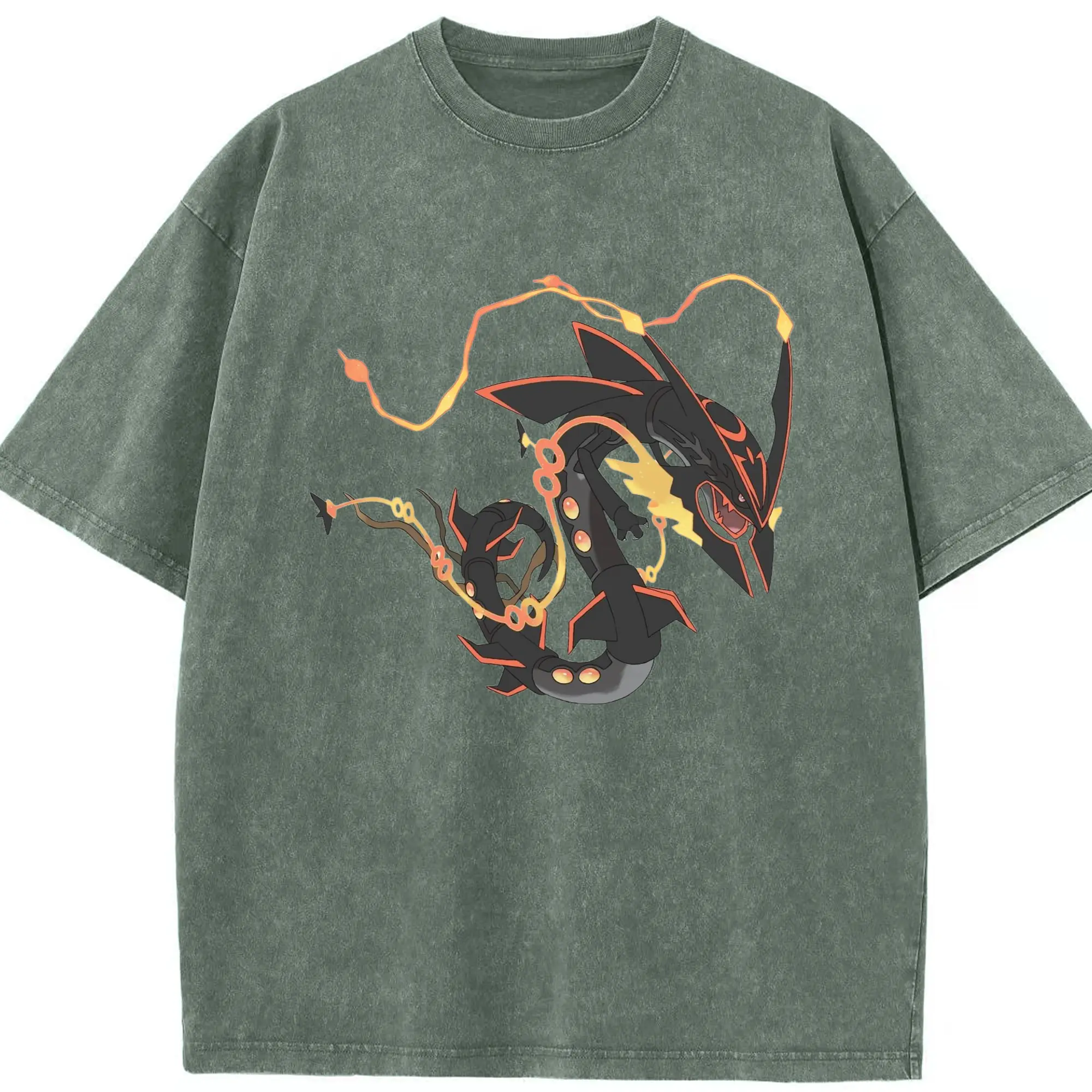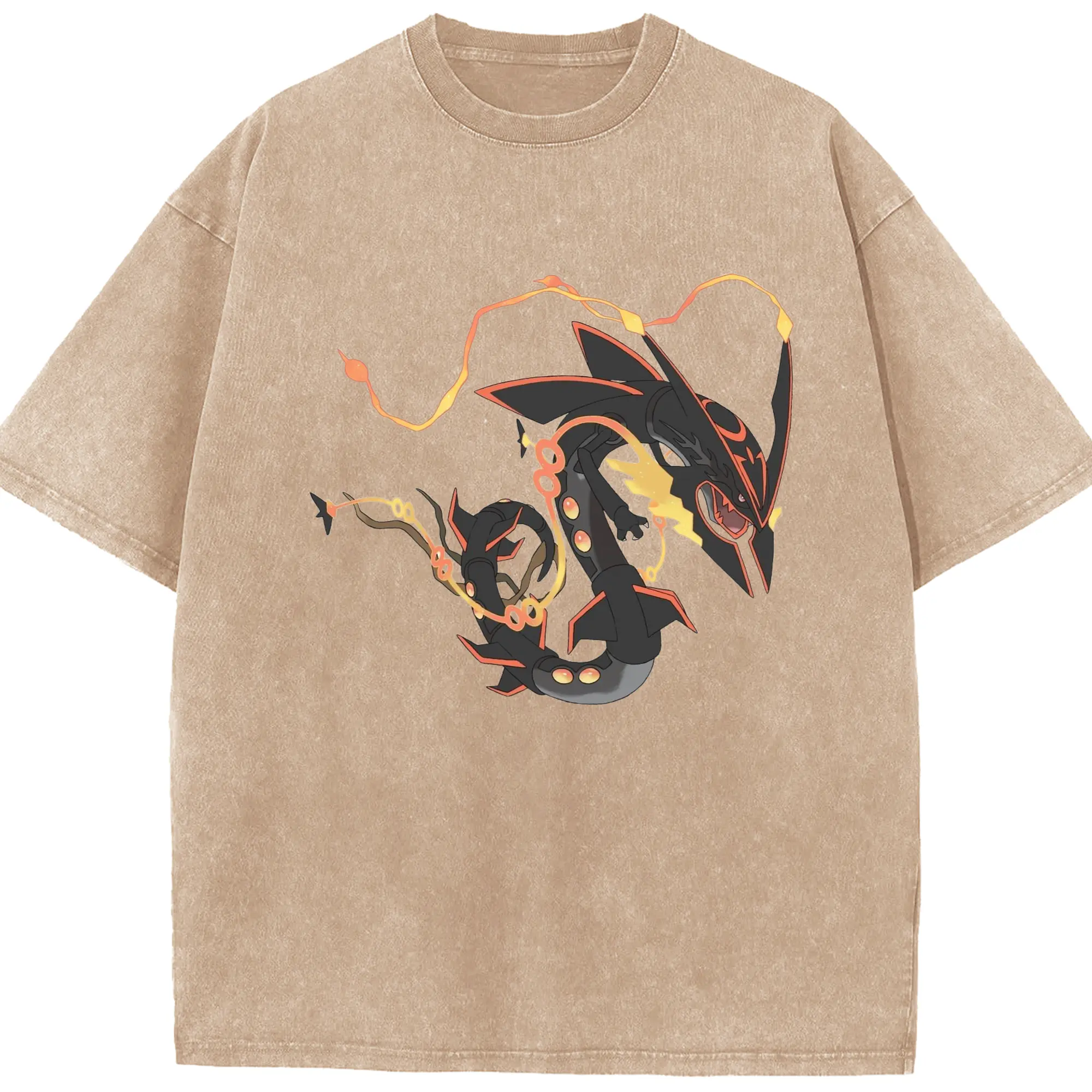 Mega rayquaza t shirt​ - Washed Vintage Look 230g Cotton Oversized T-Shirt With Front Heat Transfer Print – Soft, Lightweight, Stylish Fit – Comfortable Casual Wear For Sports & Everyday Use