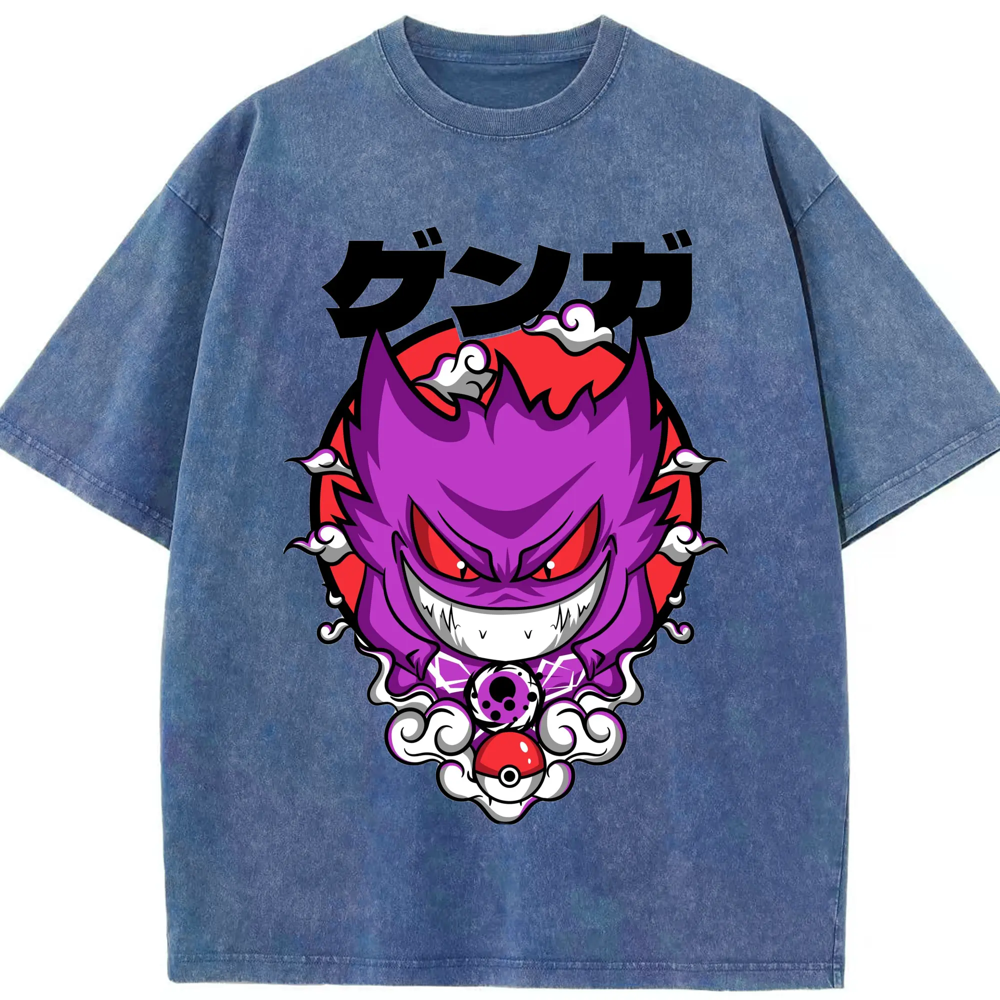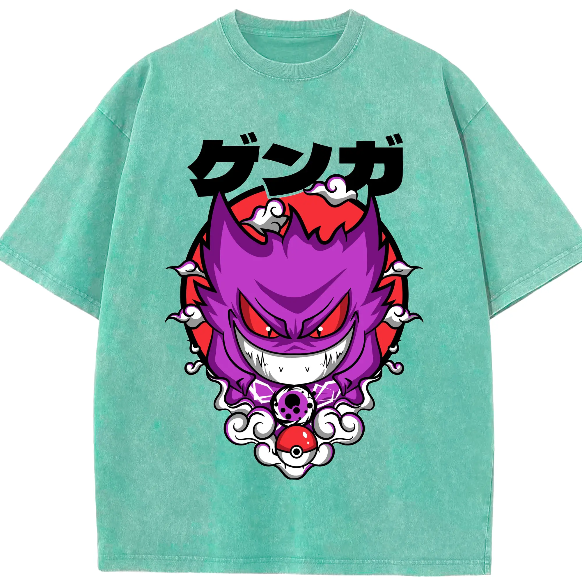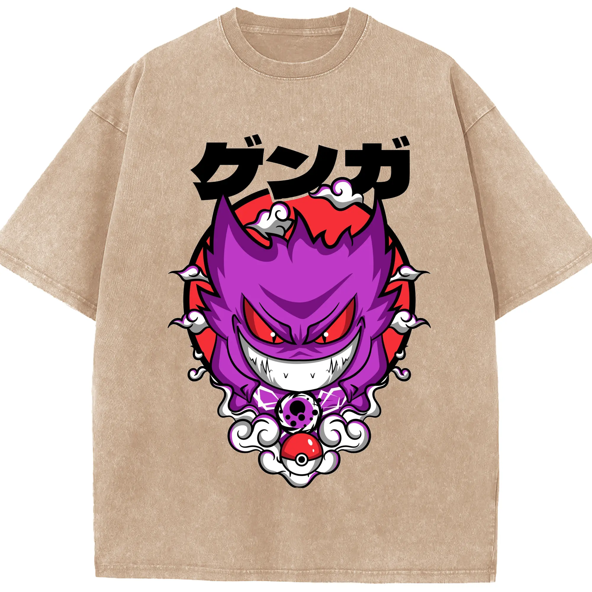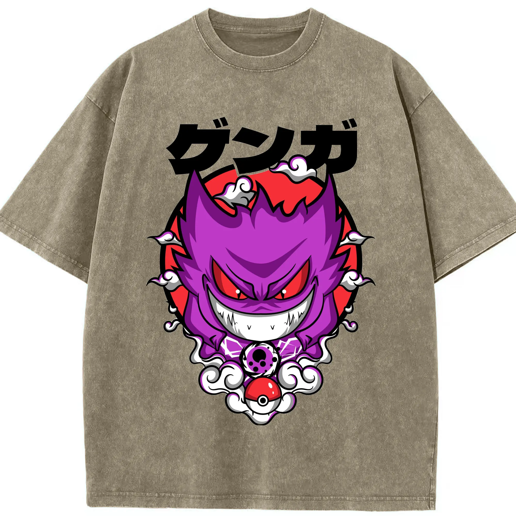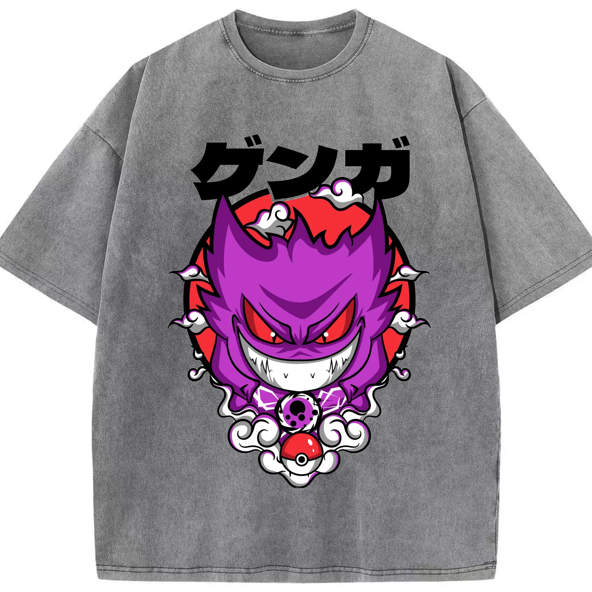 Men pokemen gengar t shirt - Washed Vintage Look 230g Cotton Oversized T-Shirt With Front Heat Transfer Print – Soft, Lightweight, Stylish Fit – Comfortable Casual Wear For Sports & Everyday Use