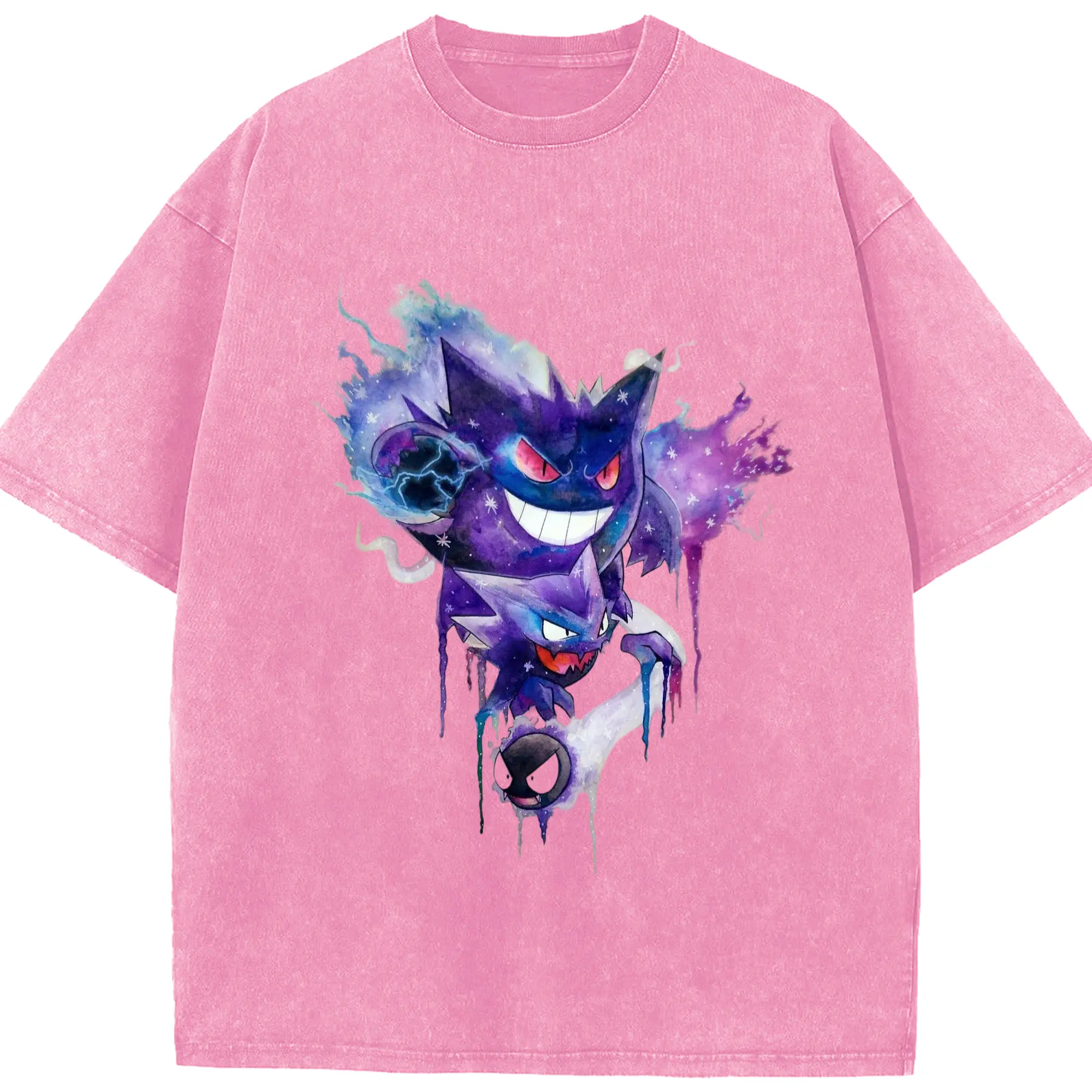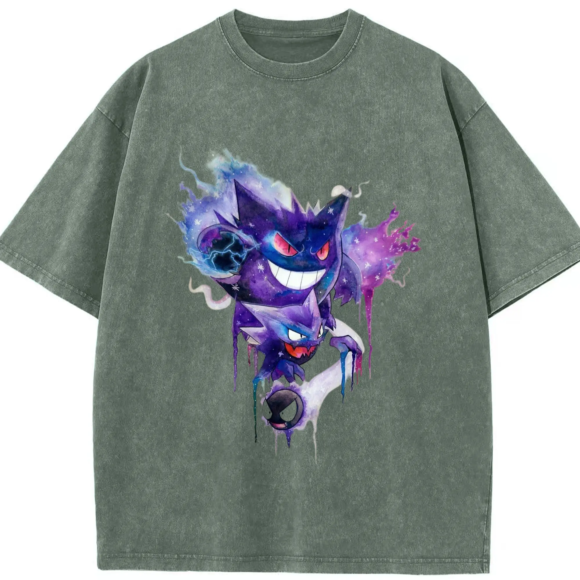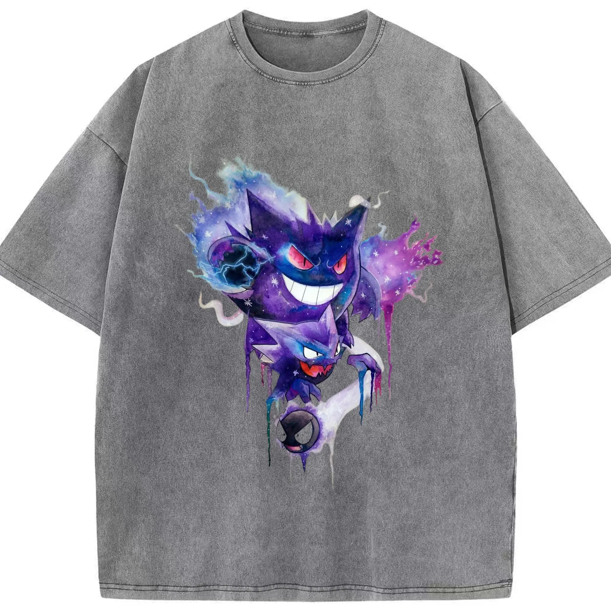 Men pokemen gengar tee - Washed Vintage Look 230g Cotton Oversized T-Shirt With Front Heat Transfer Print – Soft, Lightweight, Stylish Fit – Comfortable Casual Wear For Sports & Everyday Use