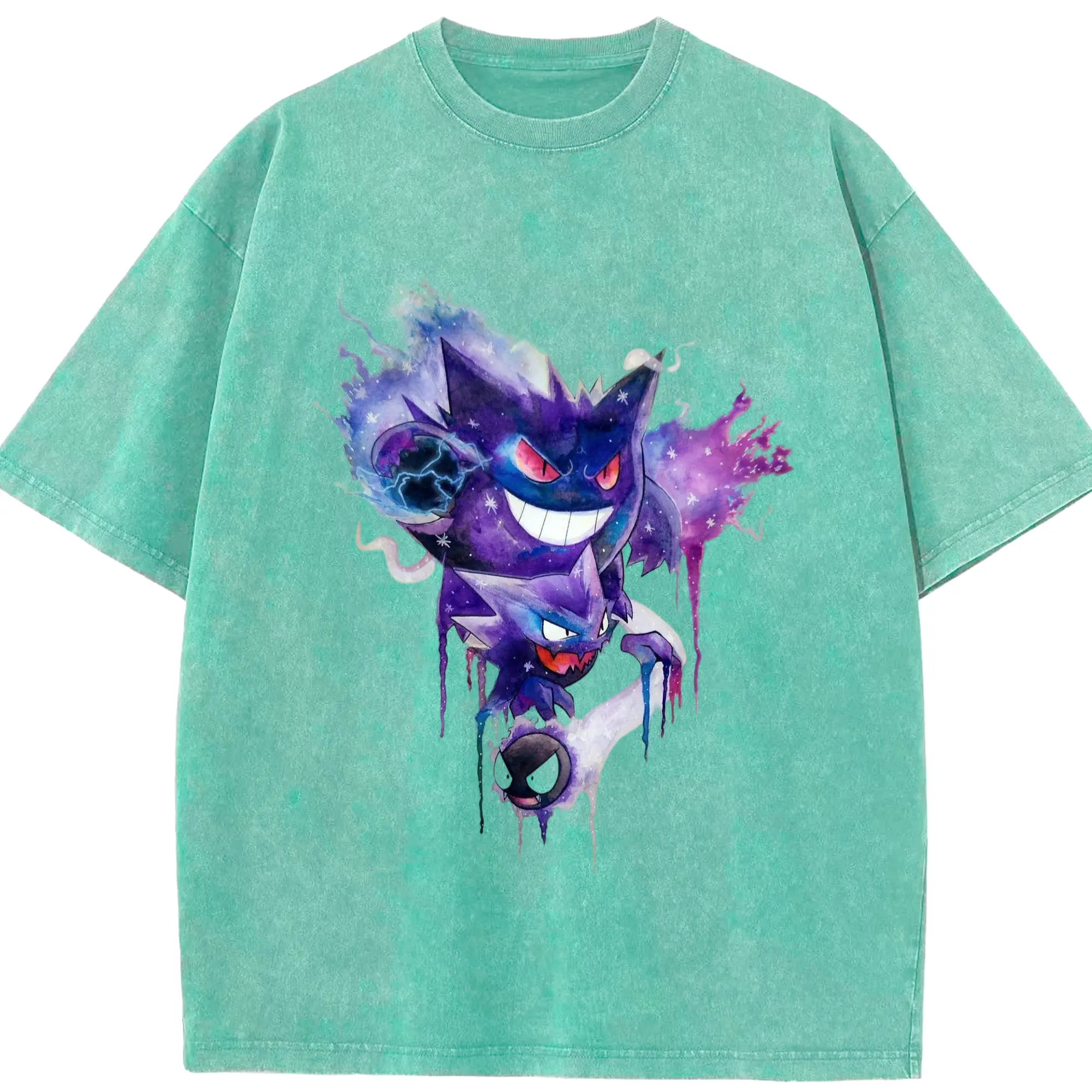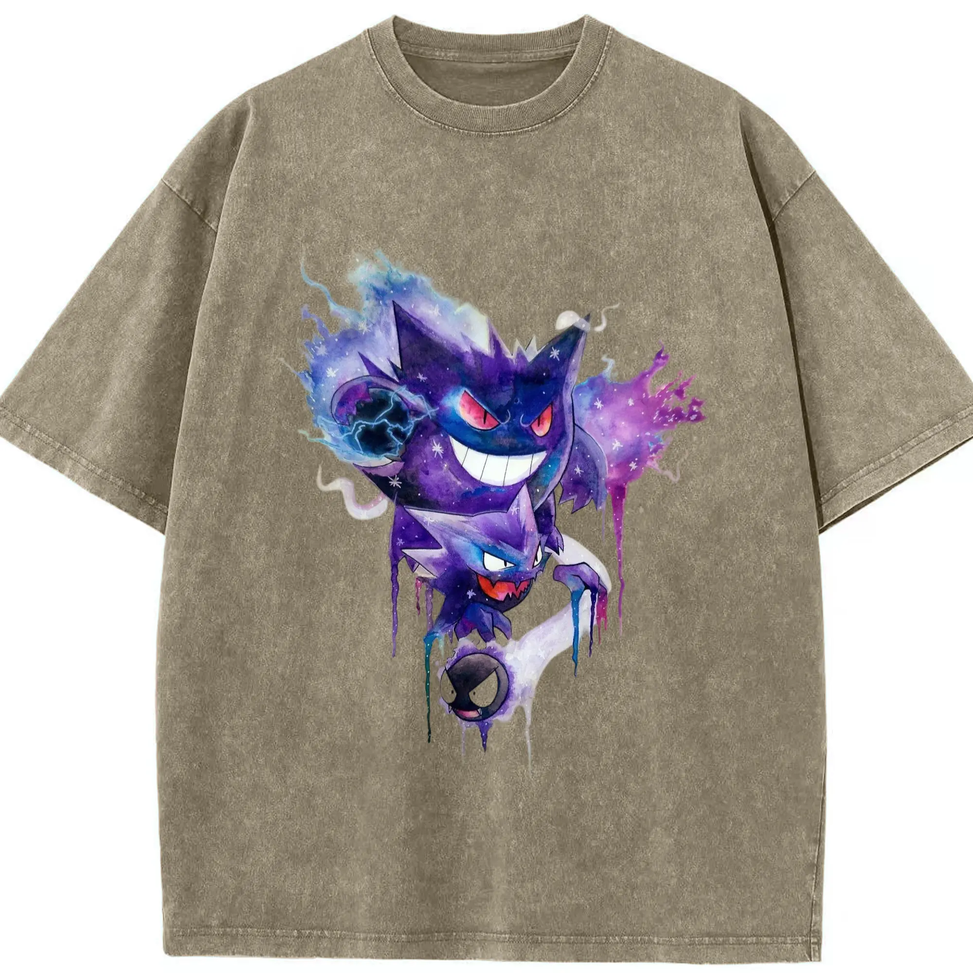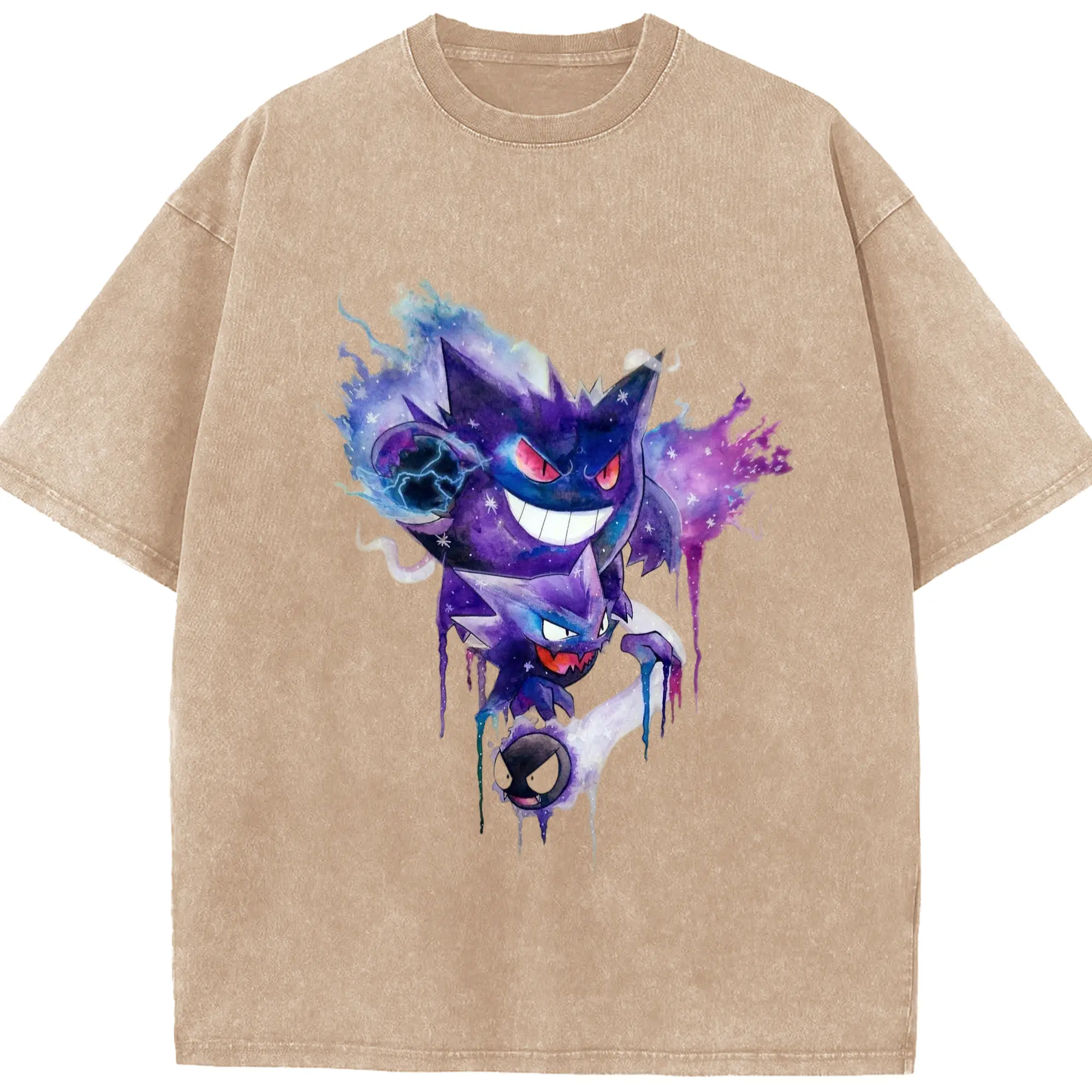 Men pokemen gengar tee - Washed Vintage Look 230g Cotton Oversized T-Shirt With Front Heat Transfer Print – Soft, Lightweight, Stylish Fit – Comfortable Casual Wear For Sports & Everyday Use