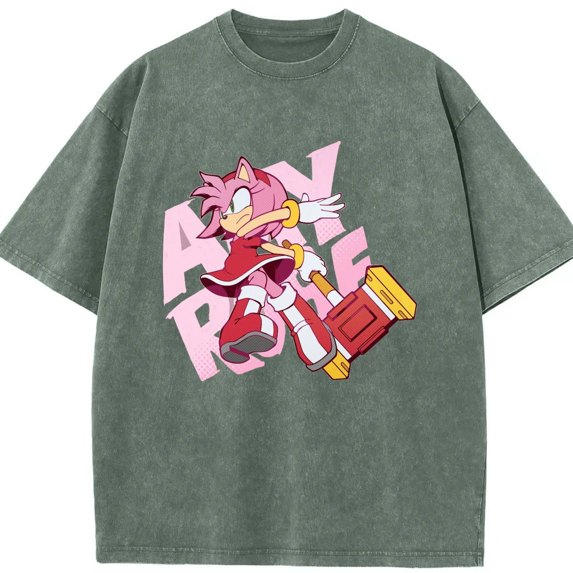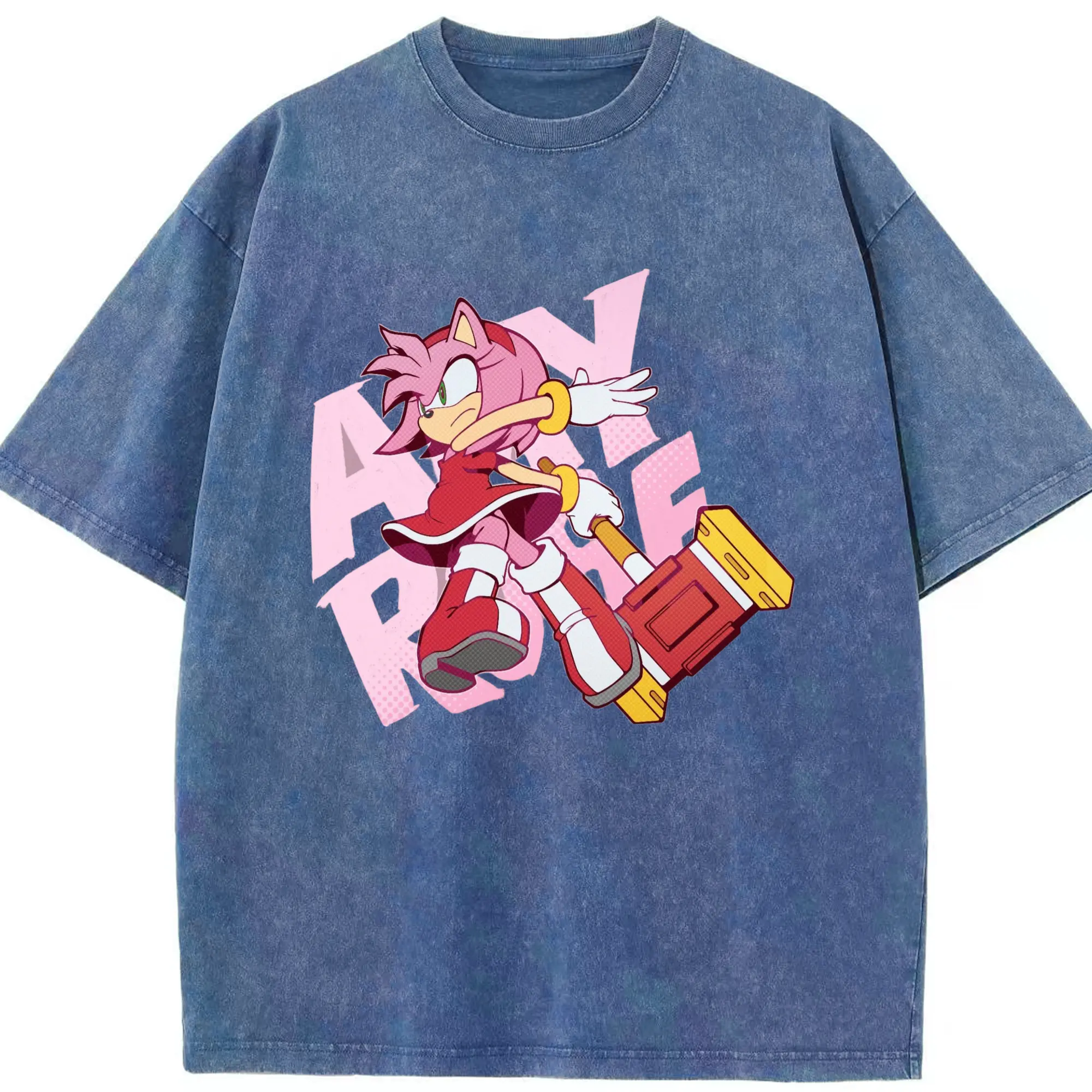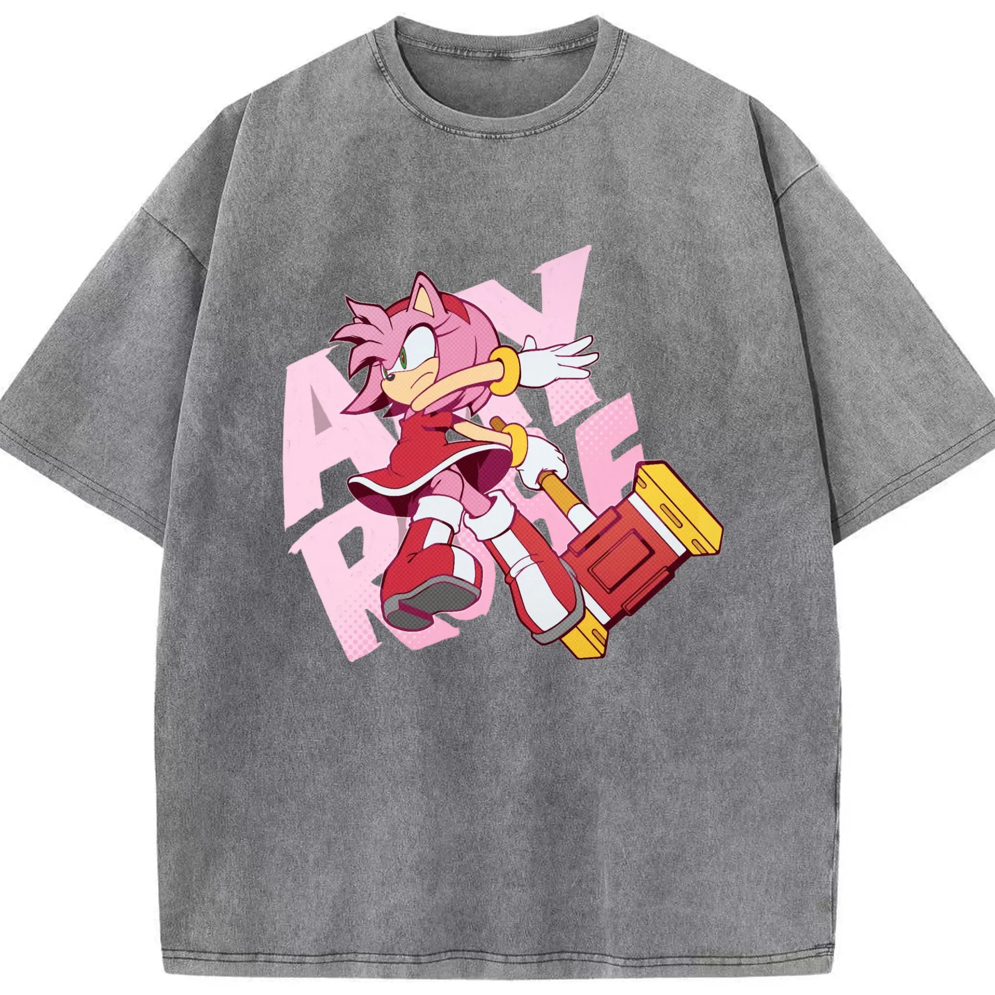 Men's Amy Rose art shirt - Washed Vintage Look 230g Cotton Oversized T-Shirt With Front Heat Transfer Print – Soft, Lightweight, Stylish Fit – Comfortable Casual Wear For Sports & Everyday Use