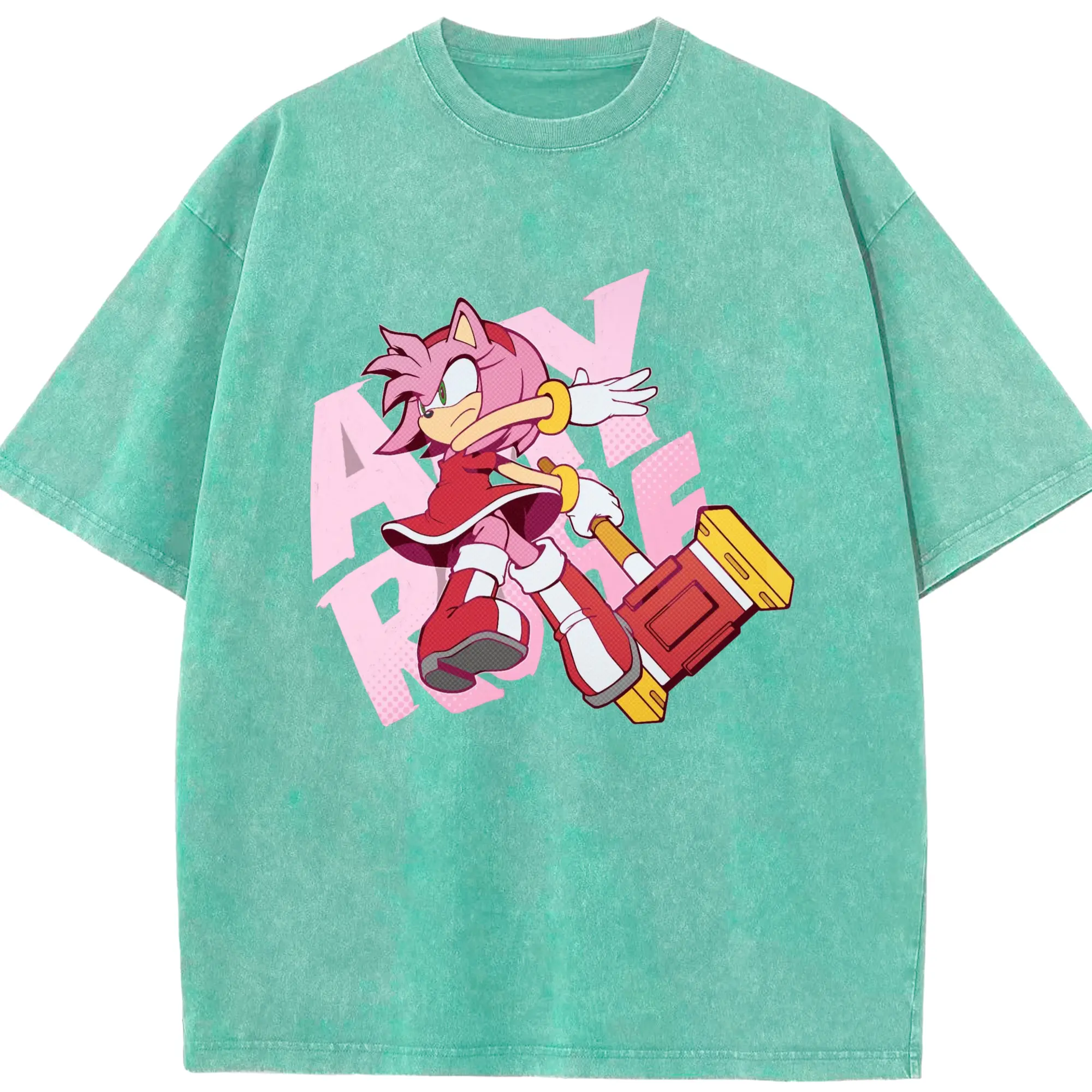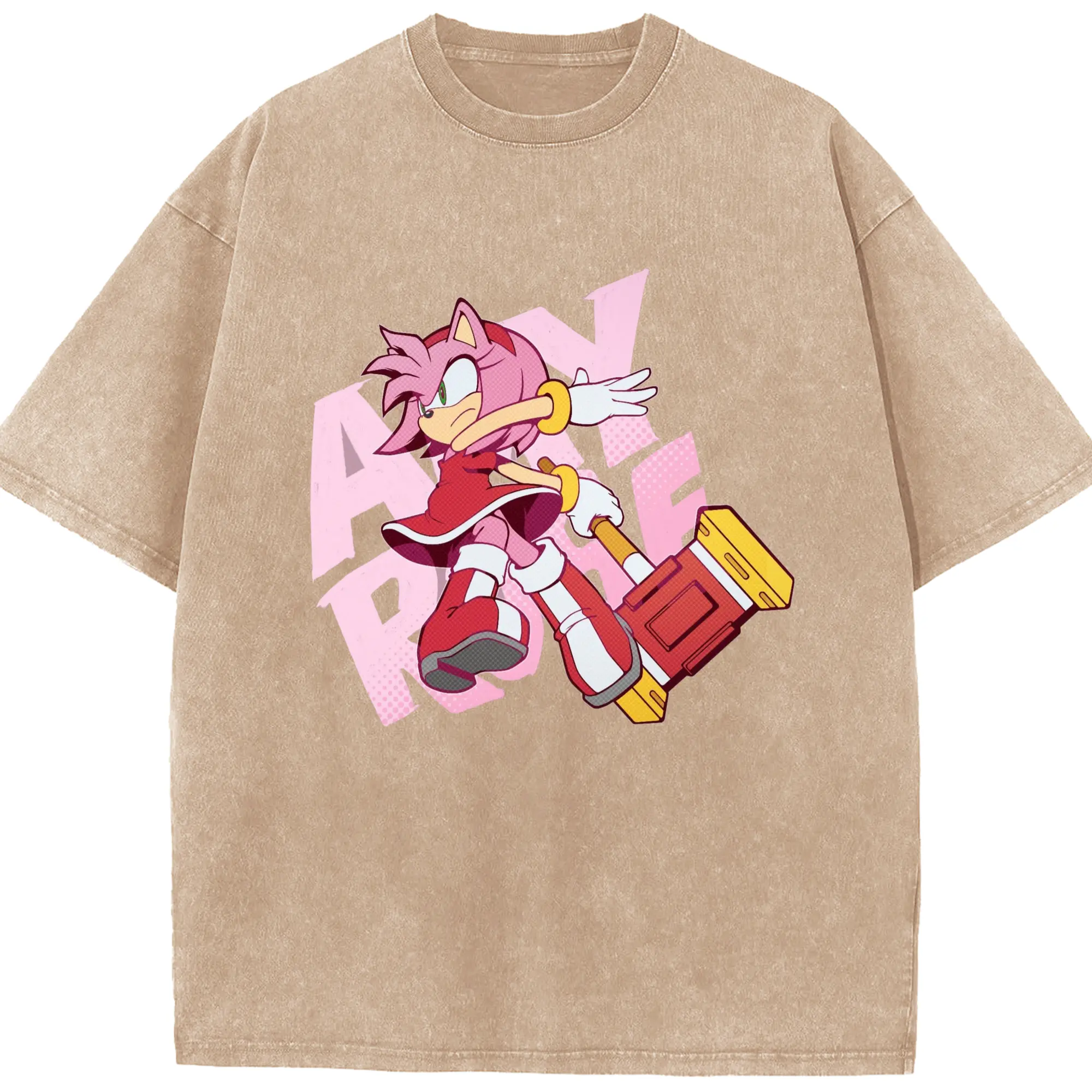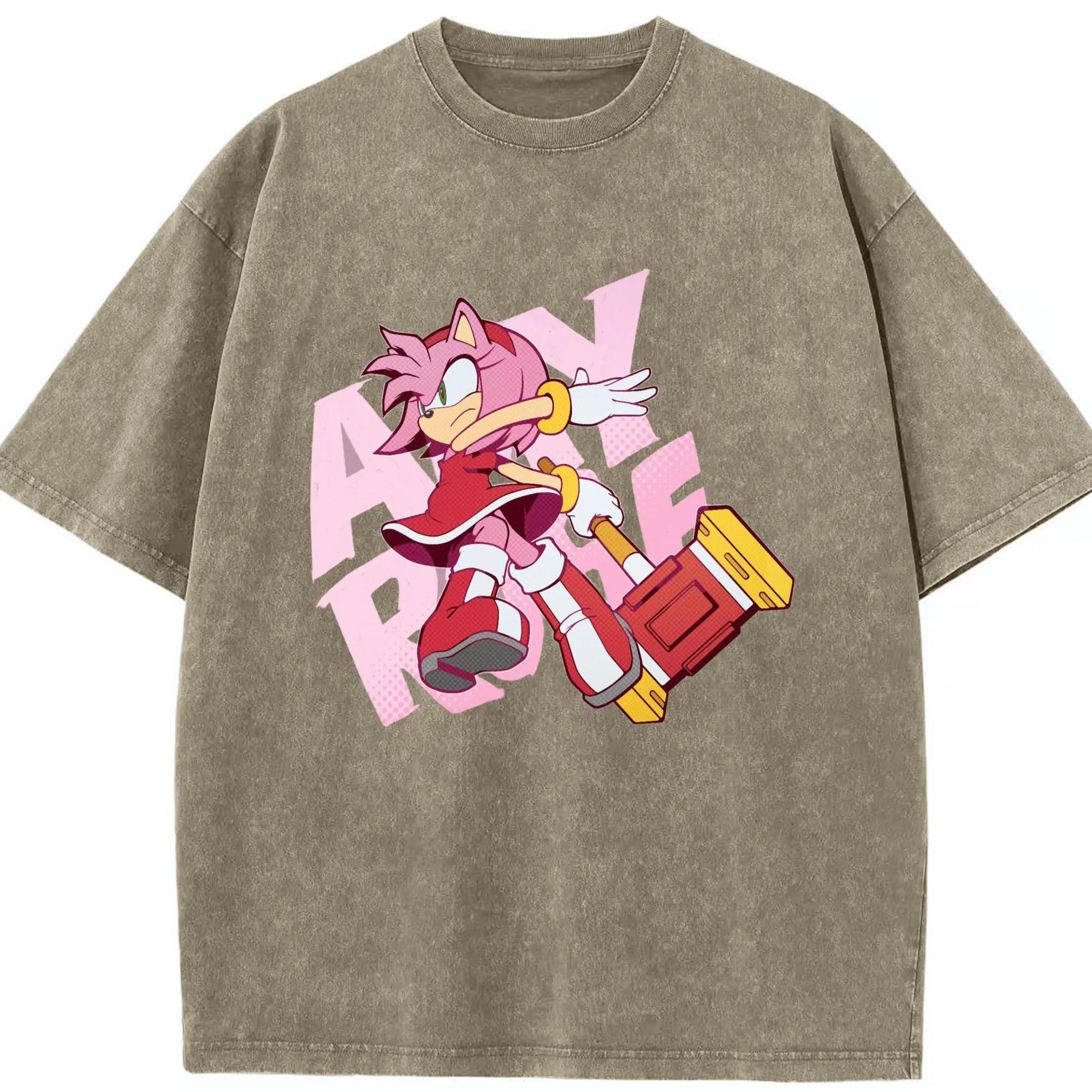 Men's Amy Rose art shirt - Washed Vintage Look 230g Cotton Oversized T-Shirt With Front Heat Transfer Print – Soft, Lightweight, Stylish Fit – Comfortable Casual Wear For Sports & Everyday Use