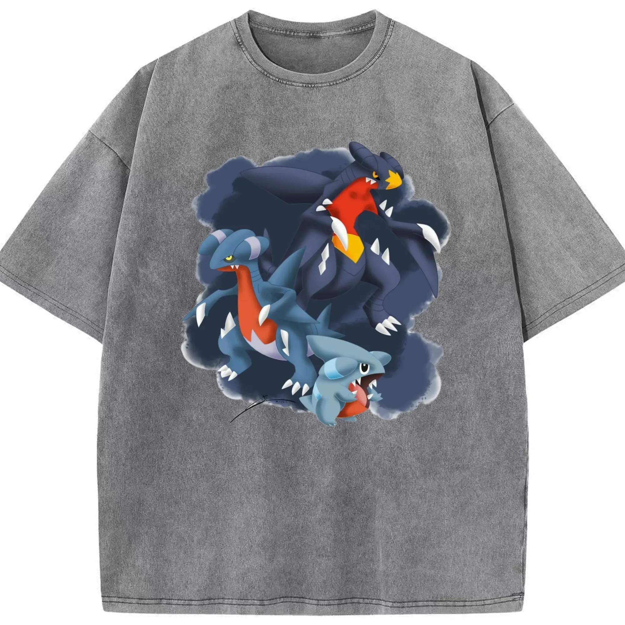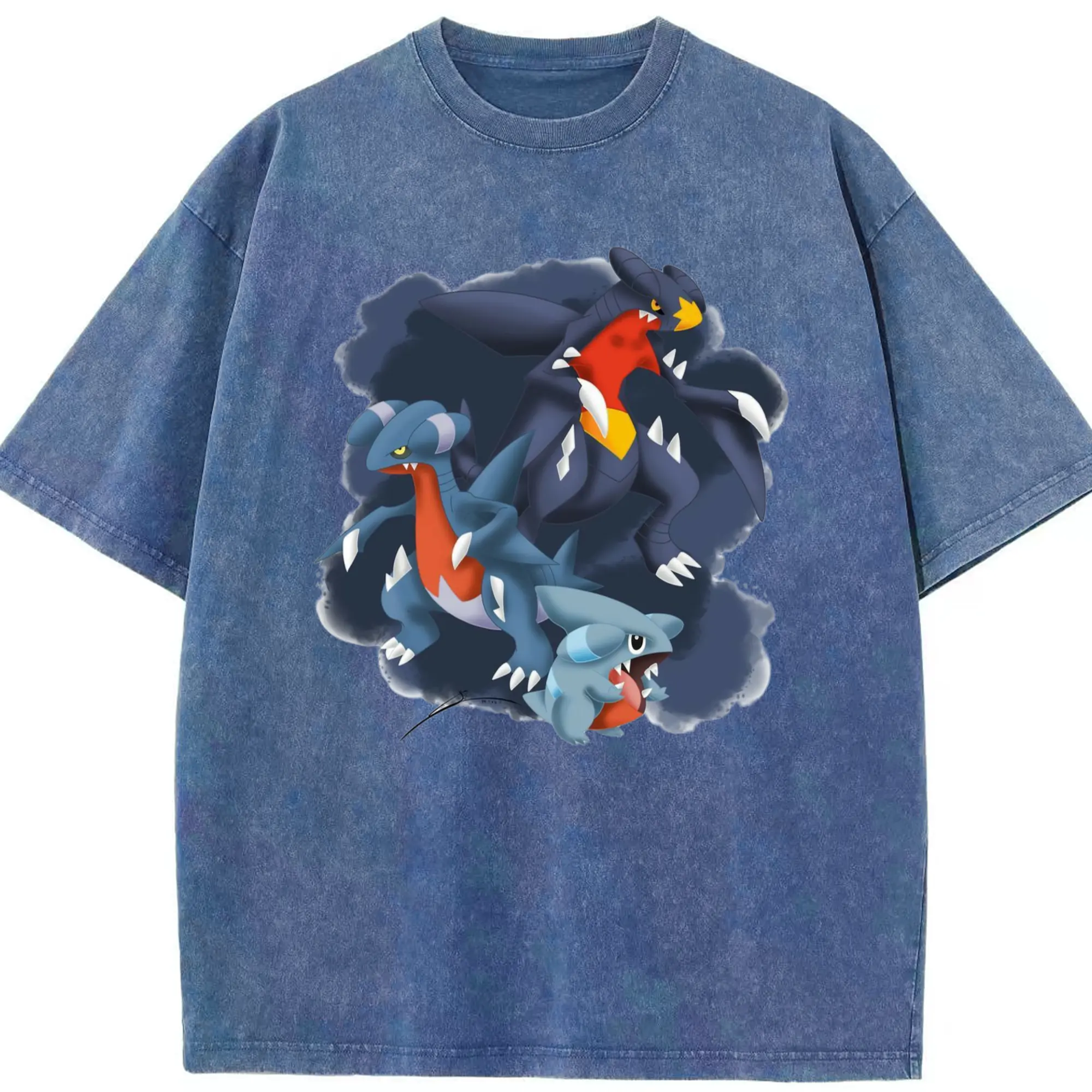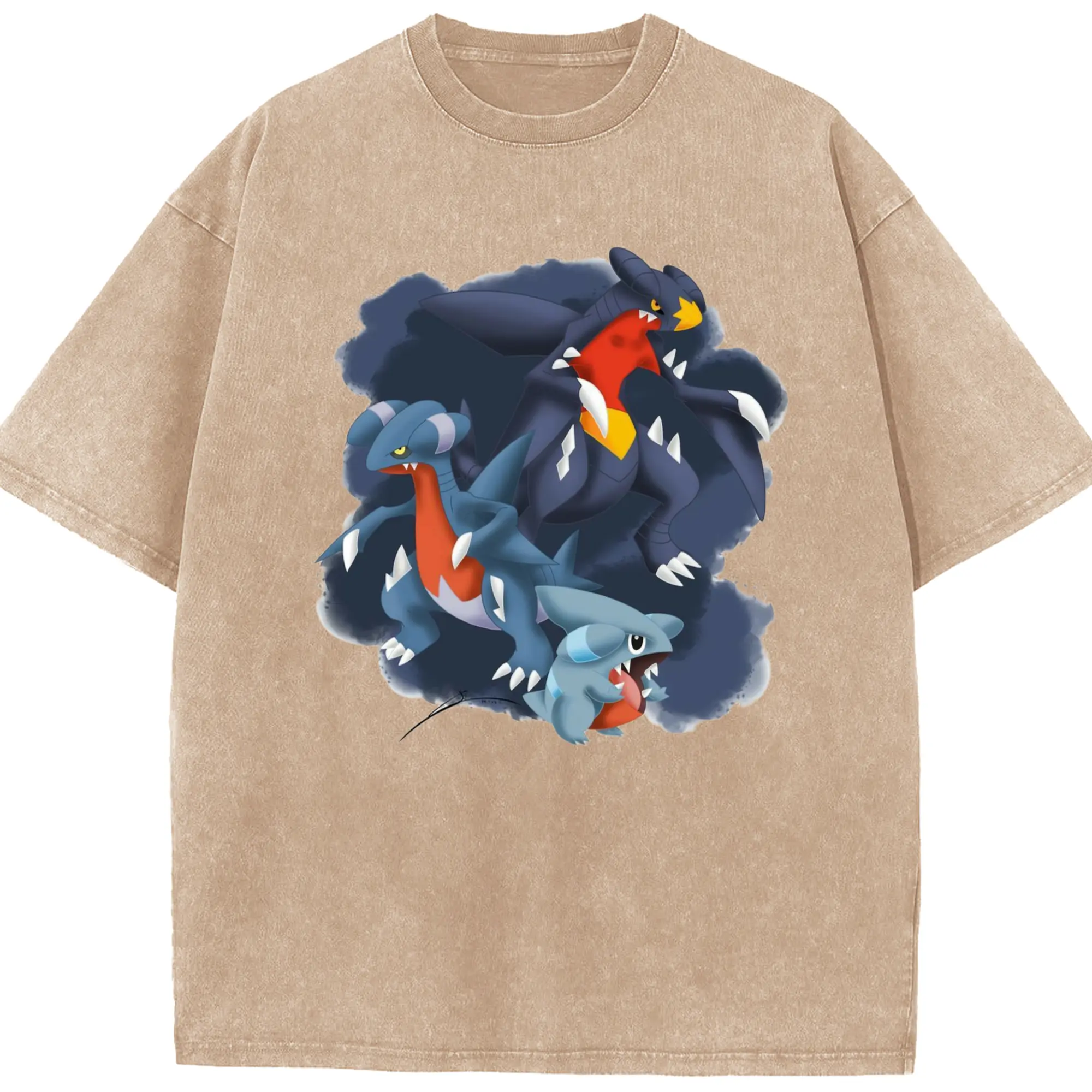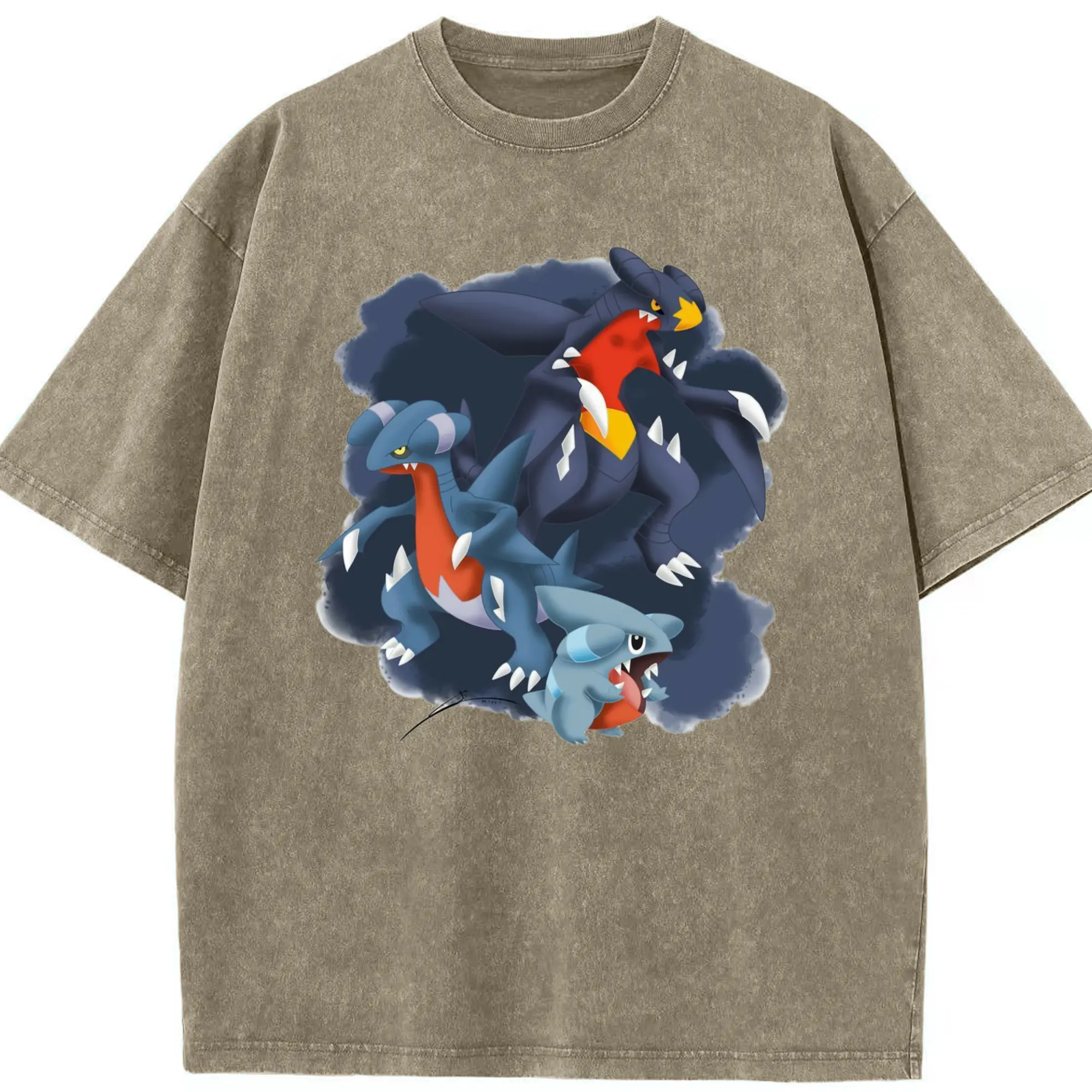 Men's Garchomp graphic t shirt​ - Washed Vintage Look 230g Cotton Oversized T-Shirt With Front Heat Transfer Print – Soft, Lightweight, Stylish Fit – Comfortable Casual Wear For Sports & Everyday Use