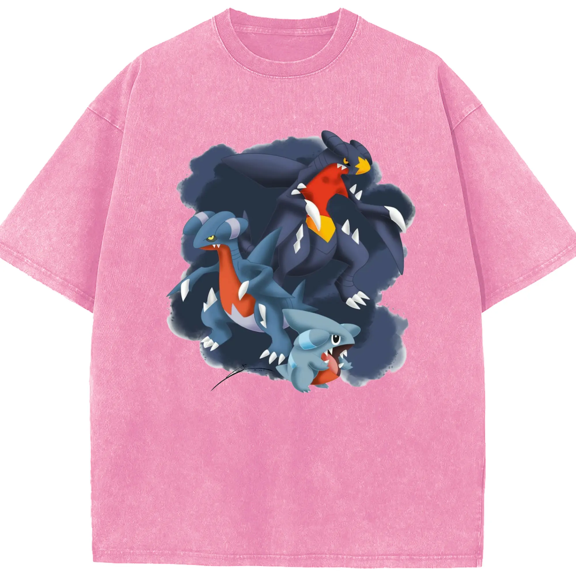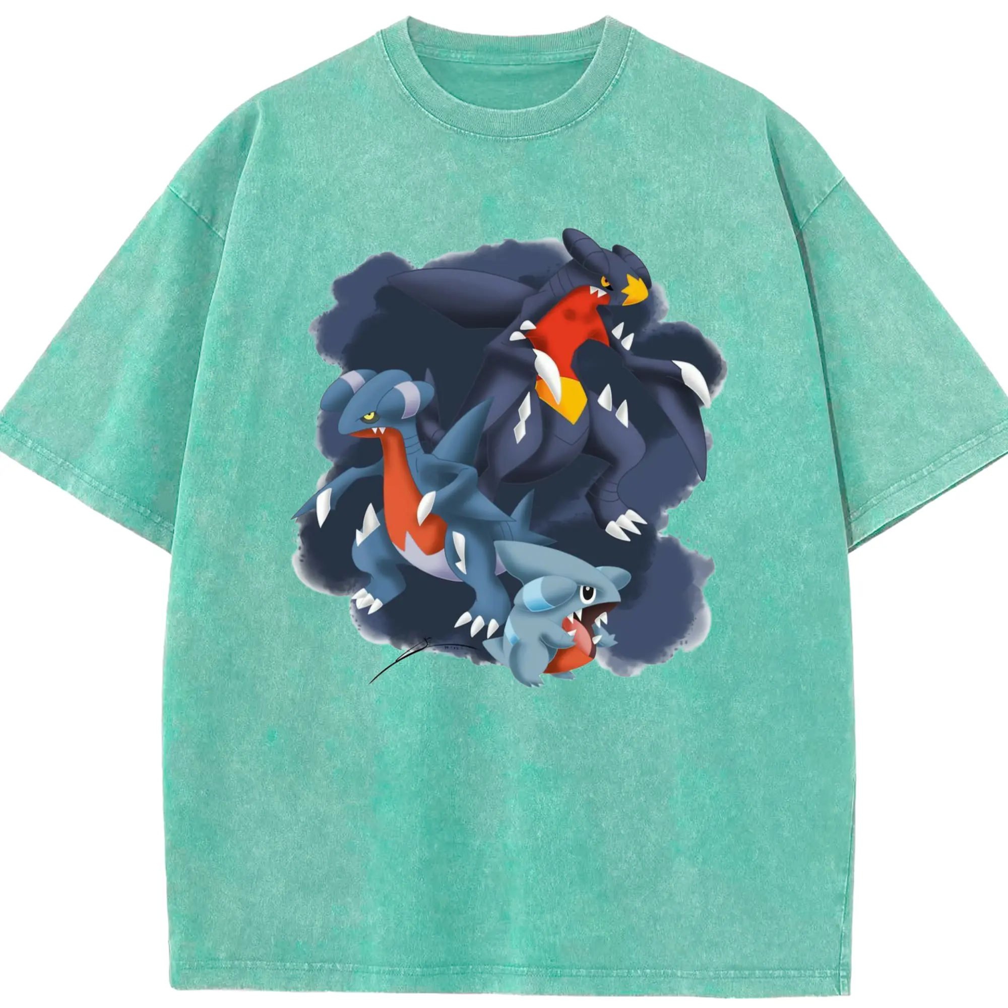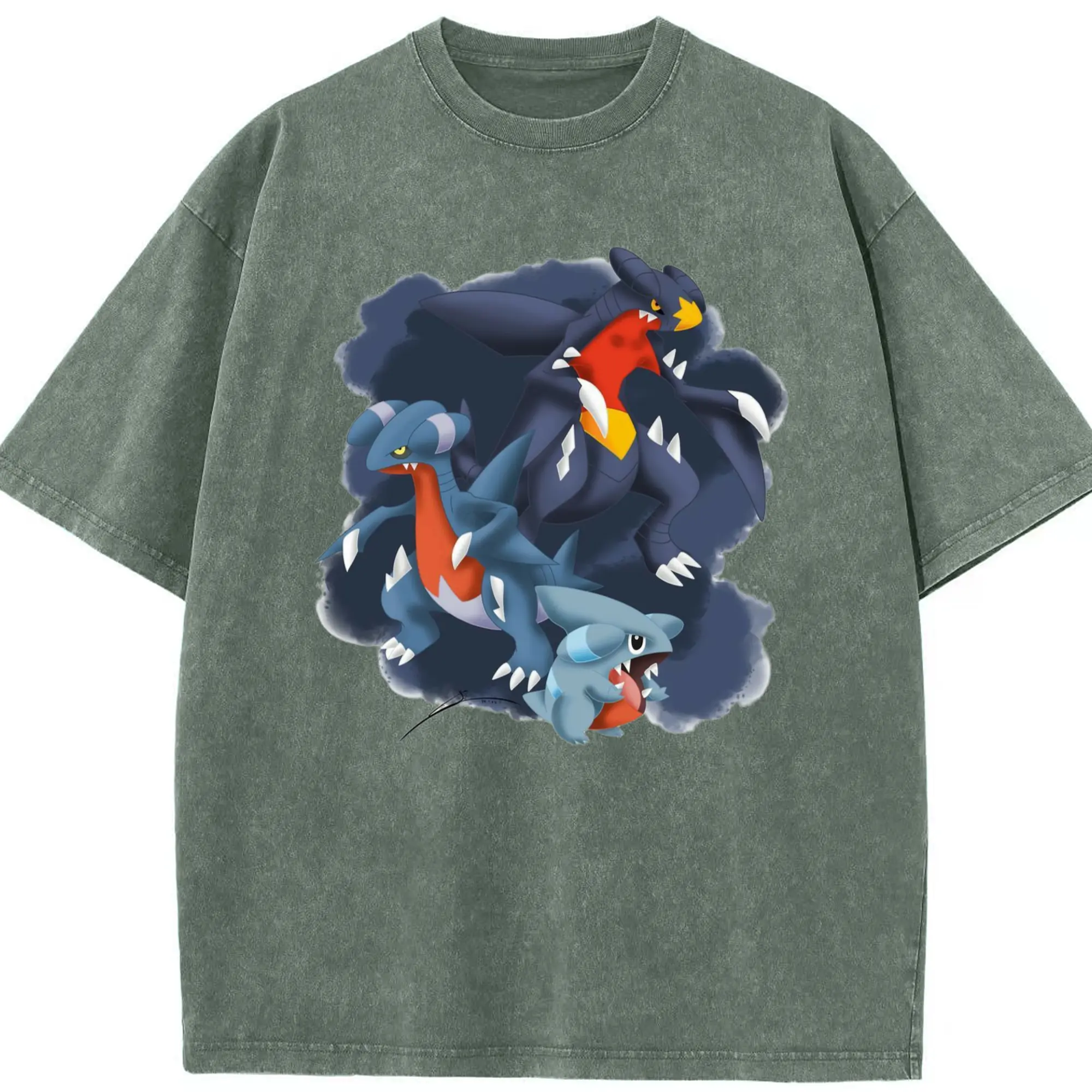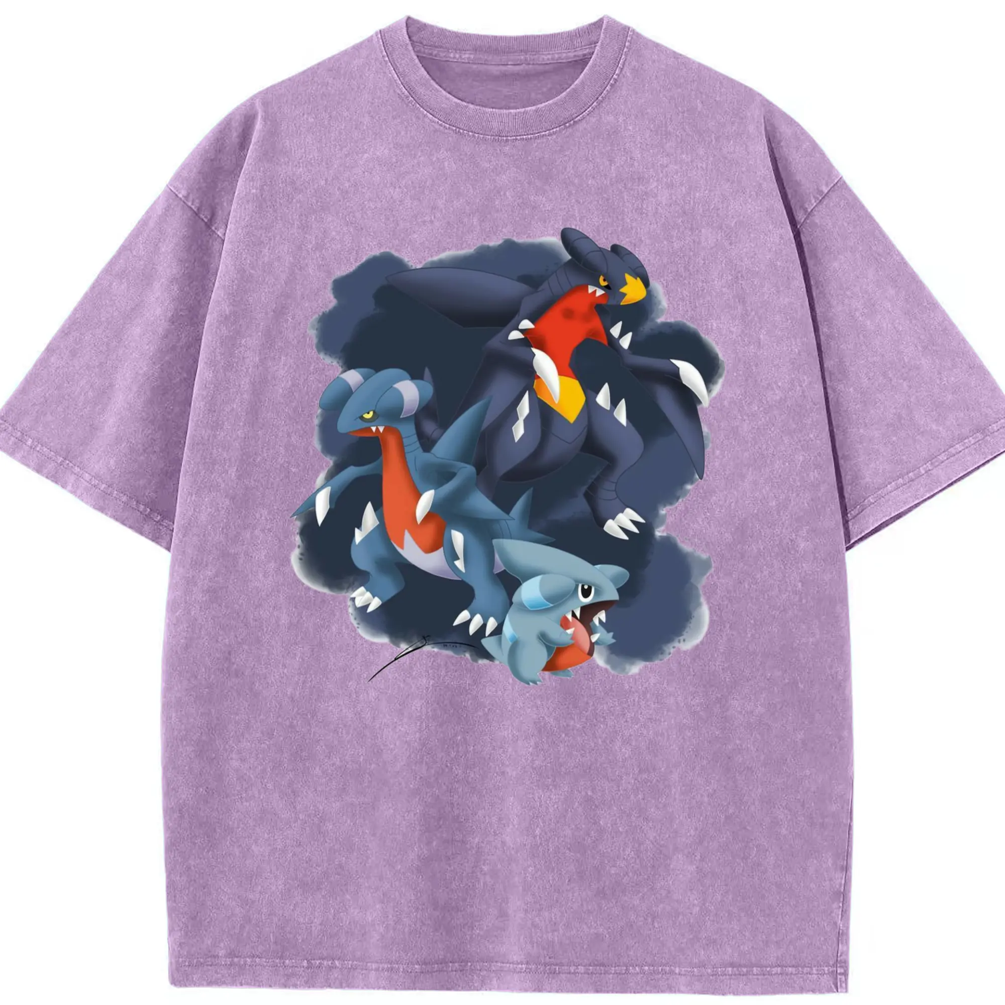 Men's Garchomp graphic t shirt​ - Washed Vintage Look 230g Cotton Oversized T-Shirt With Front Heat Transfer Print – Soft, Lightweight, Stylish Fit – Comfortable Casual Wear For Sports & Everyday Use