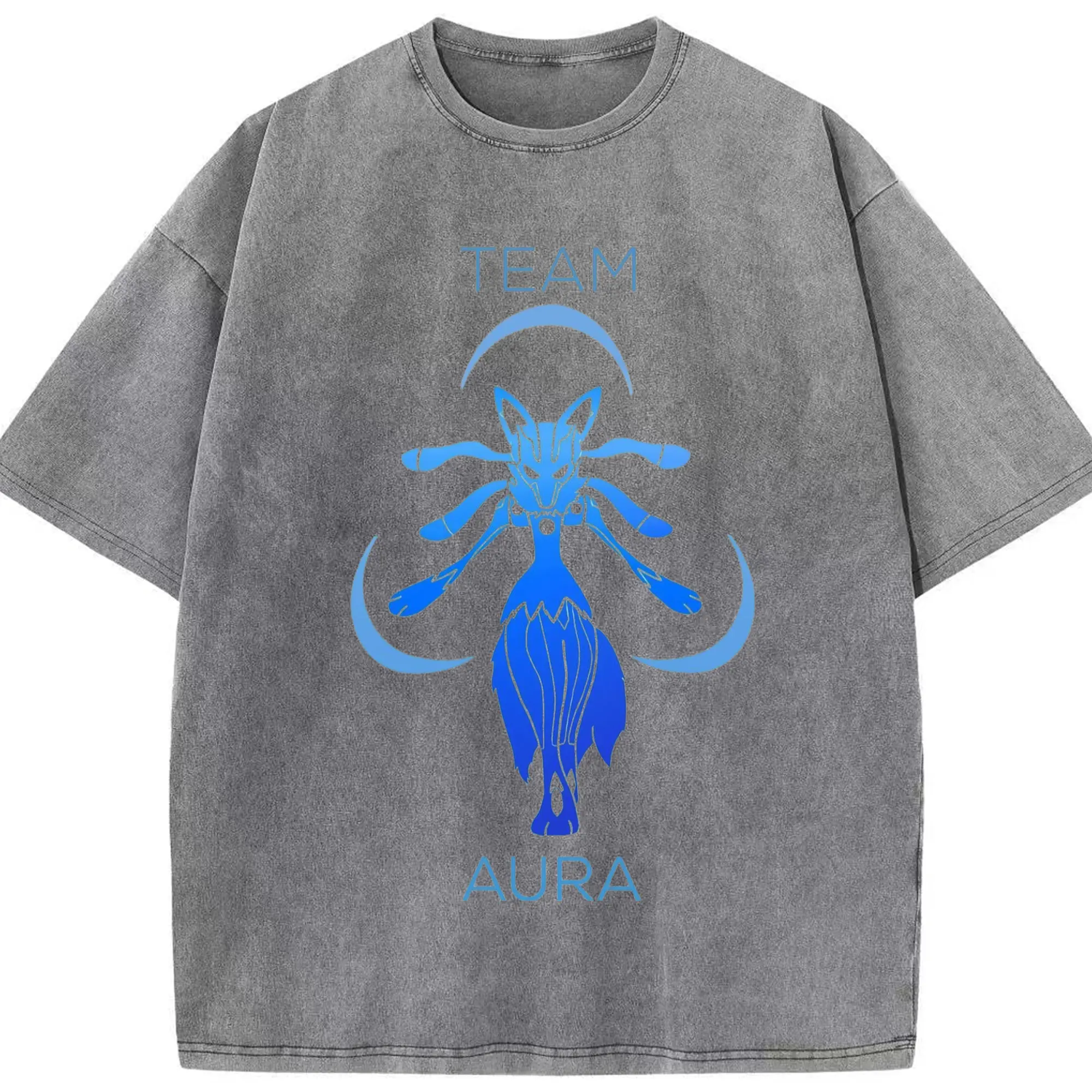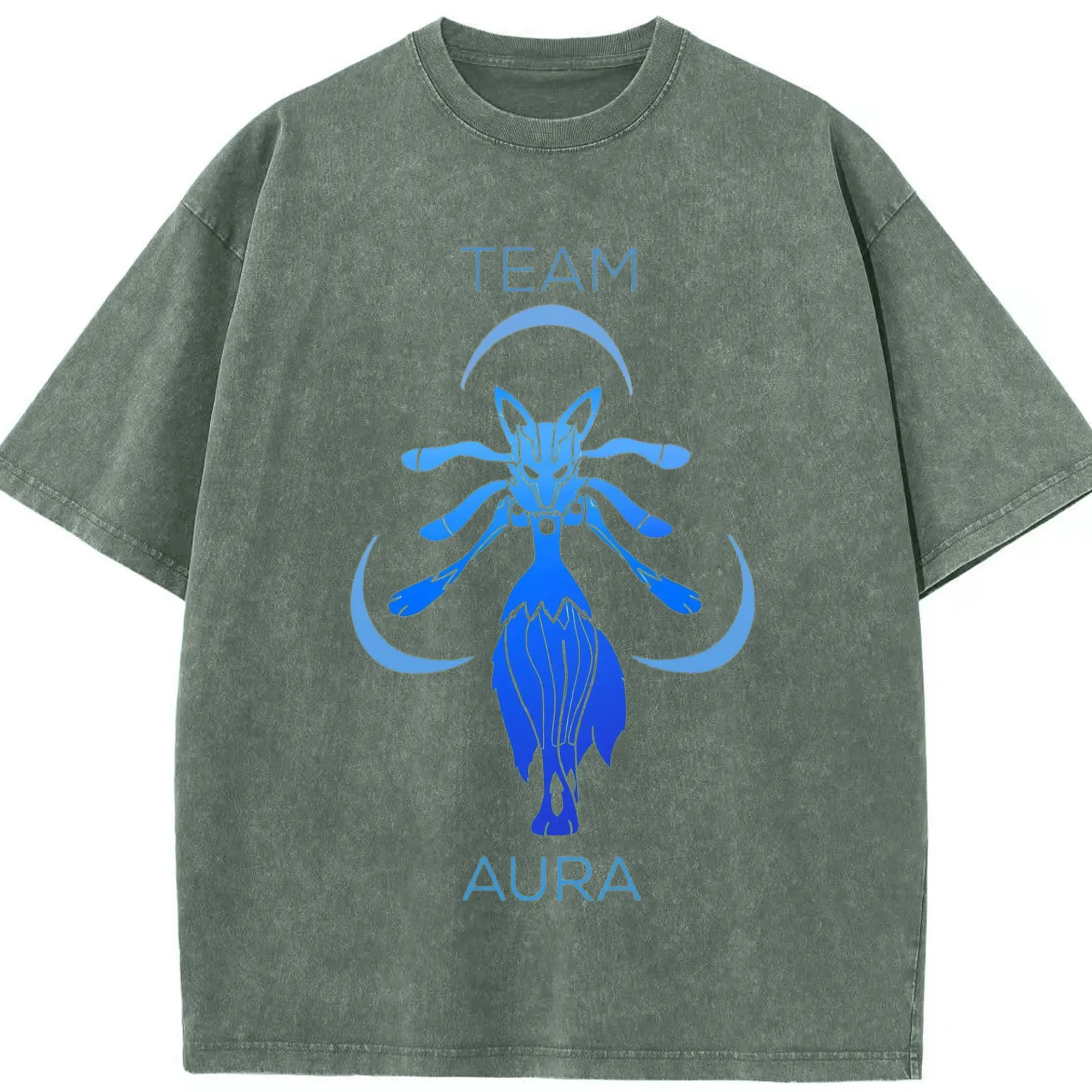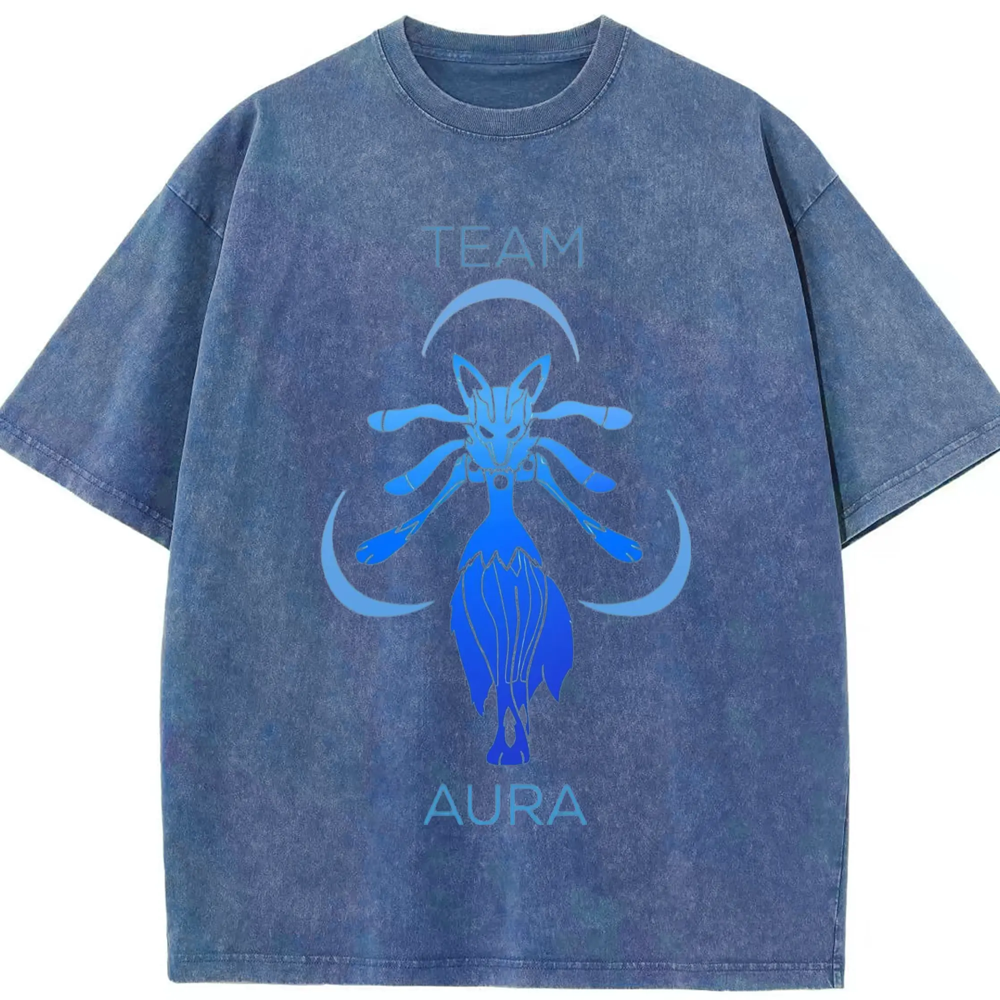 Men's Lucario icon t shirt - Washed Vintage Look 230g Cotton Oversized T-Shirt With Front Heat Transfer Print – Soft, Lightweight, Stylish Fit – Comfortable Casual Wear For Sports & Everyday Use