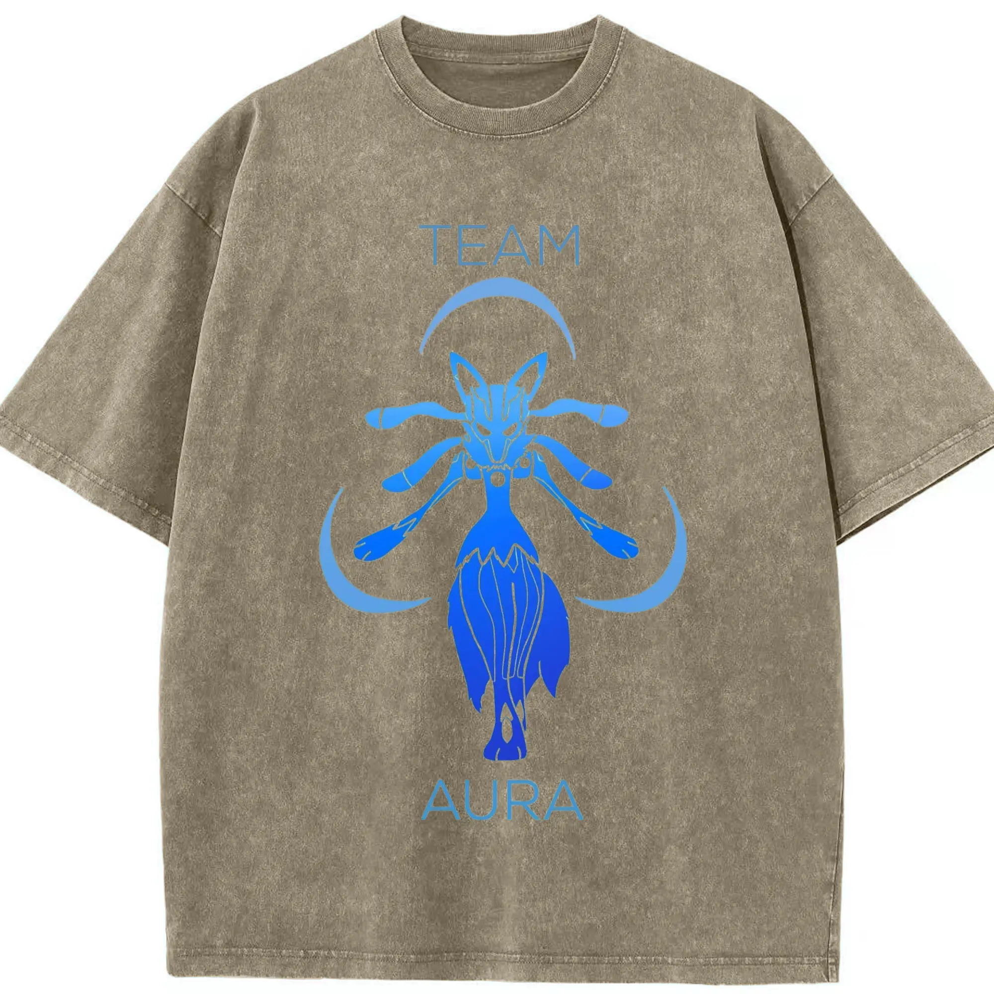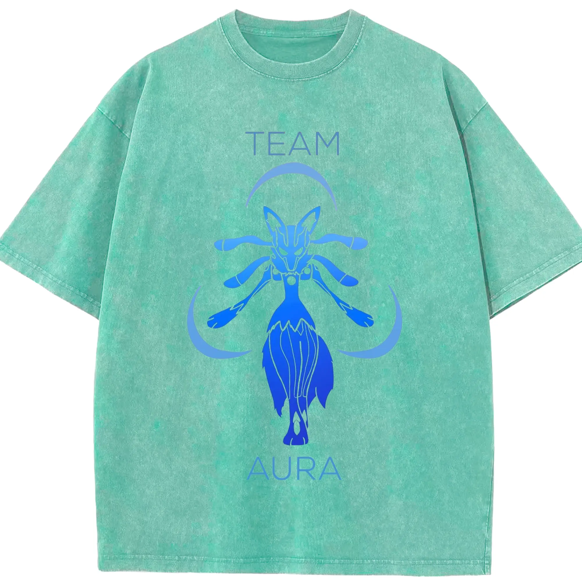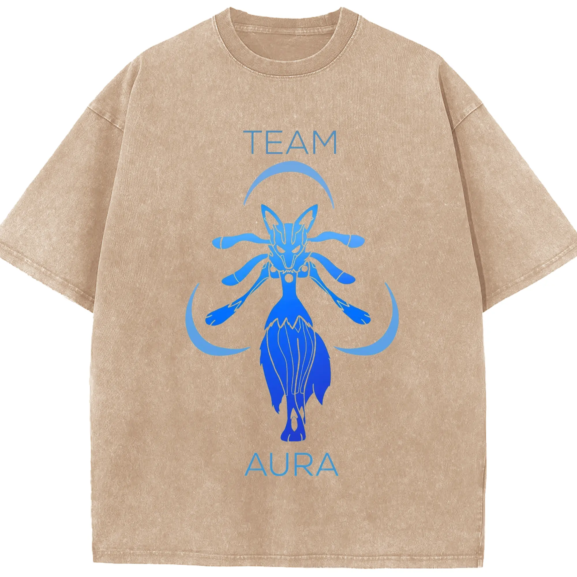 Men's Lucario icon t shirt - Washed Vintage Look 230g Cotton Oversized T-Shirt With Front Heat Transfer Print – Soft, Lightweight, Stylish Fit – Comfortable Casual Wear For Sports & Everyday Use