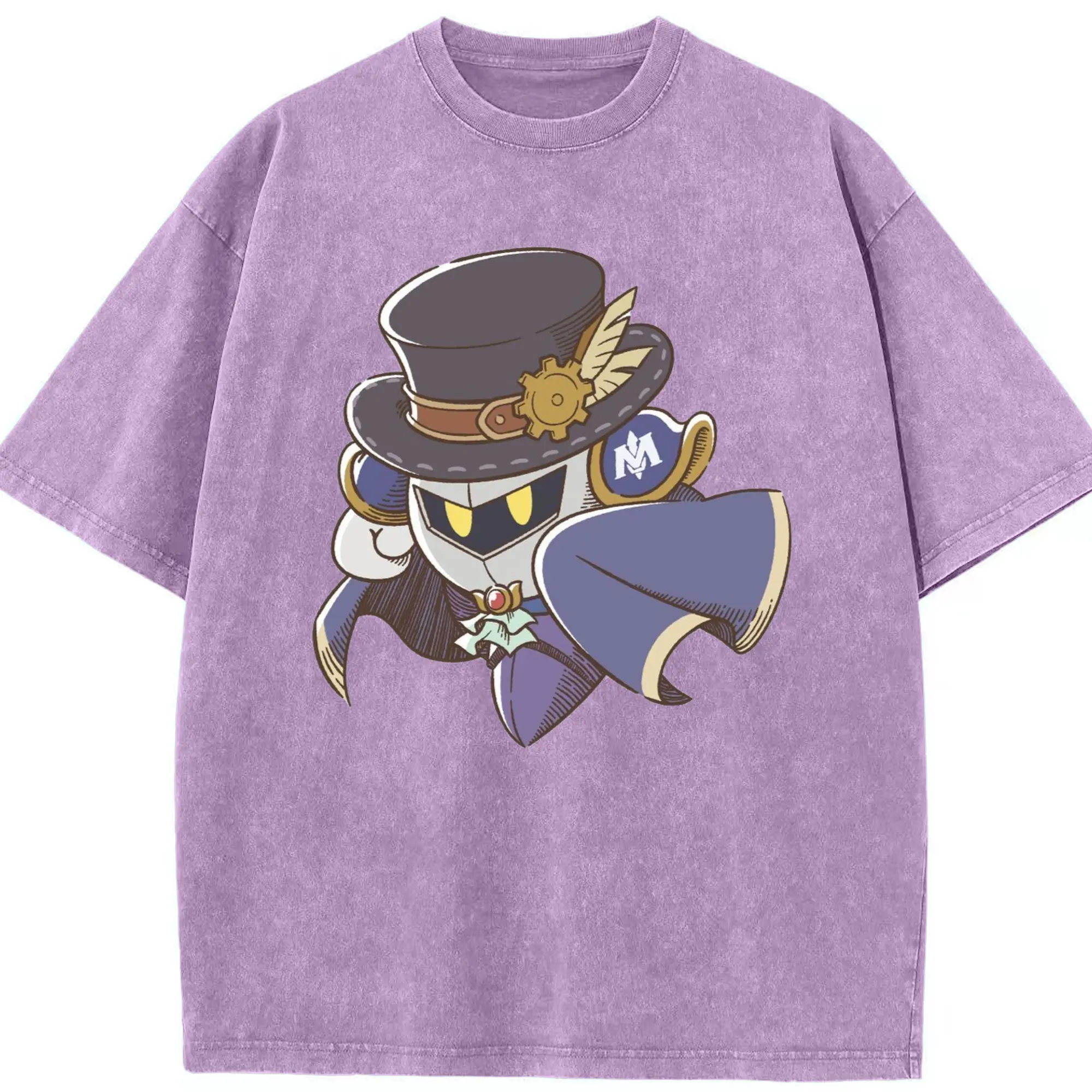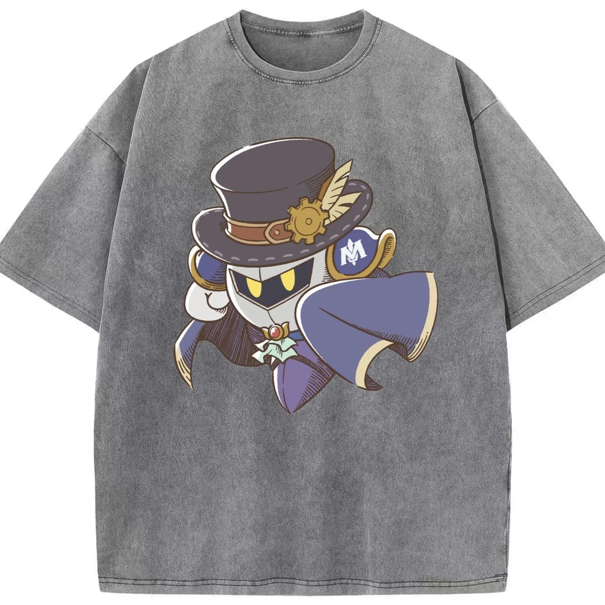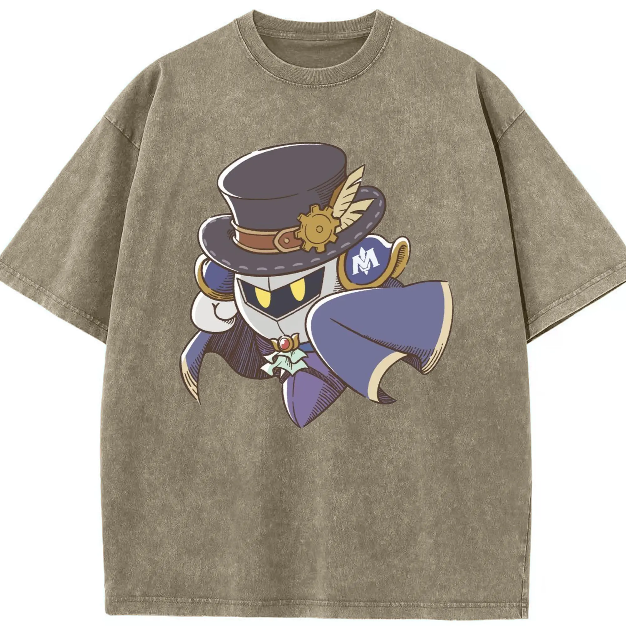 Men's Meta Knight graphic t shirt - Washed Vintage Look 230g Cotton Oversized T-Shirt With Front Heat Transfer Print – Soft, Lightweight, Stylish Fit – Comfortable Casual Wear For Sports & Everyday Use