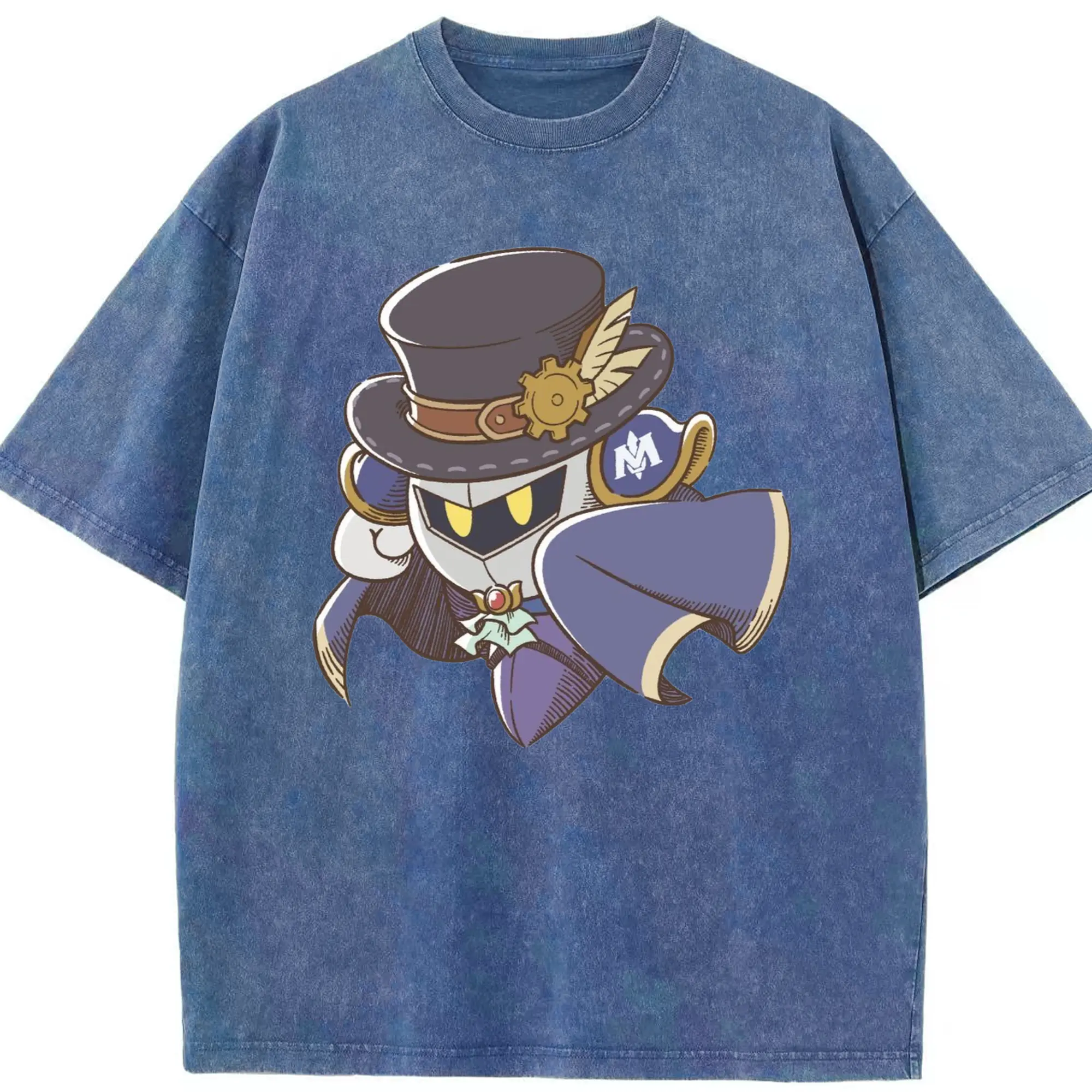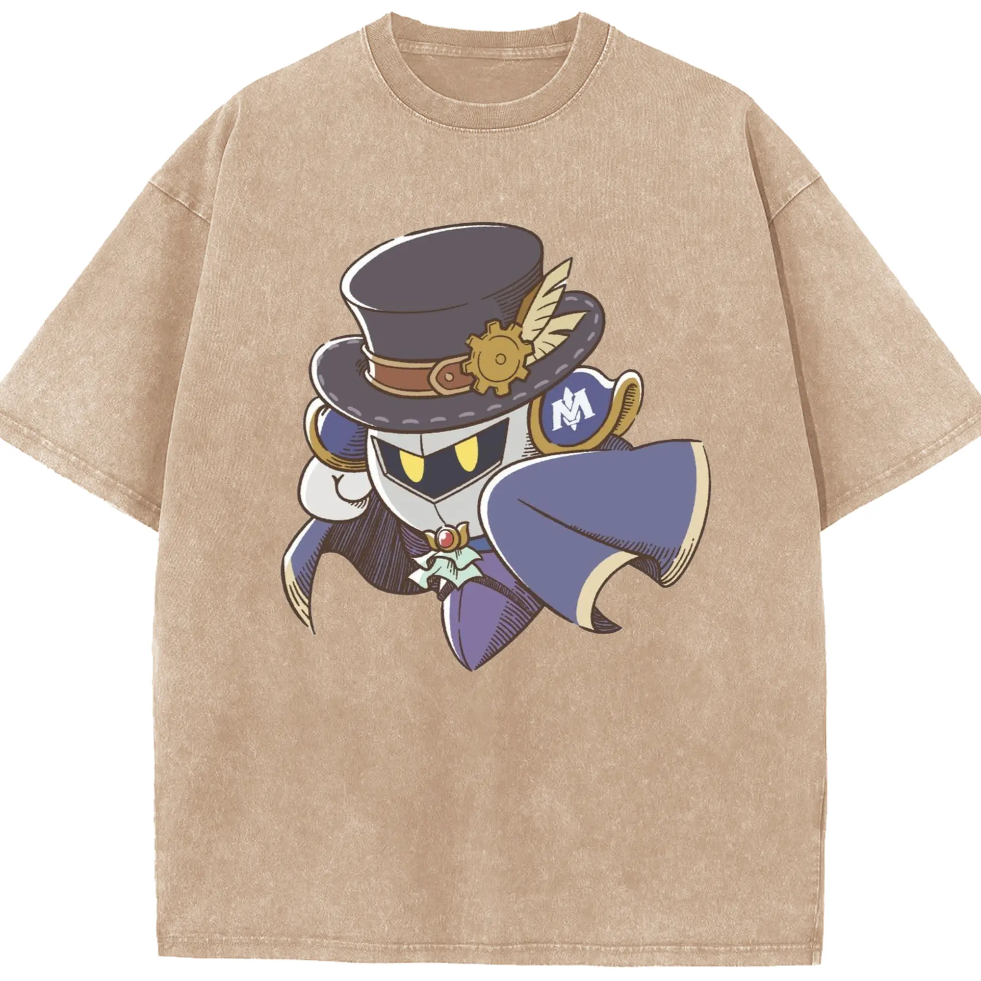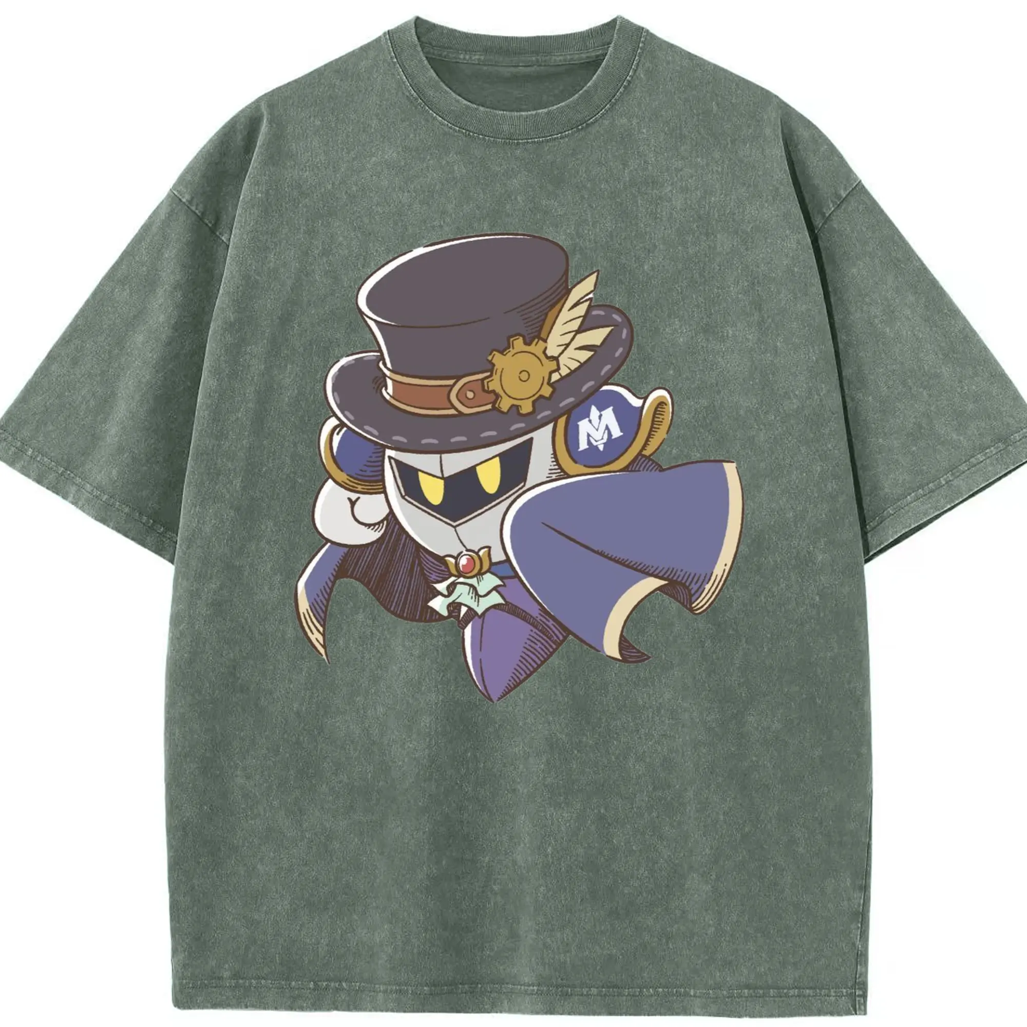 Men's Meta Knight graphic t shirt - Washed Vintage Look 230g Cotton Oversized T-Shirt With Front Heat Transfer Print – Soft, Lightweight, Stylish Fit – Comfortable Casual Wear For Sports & Everyday Use