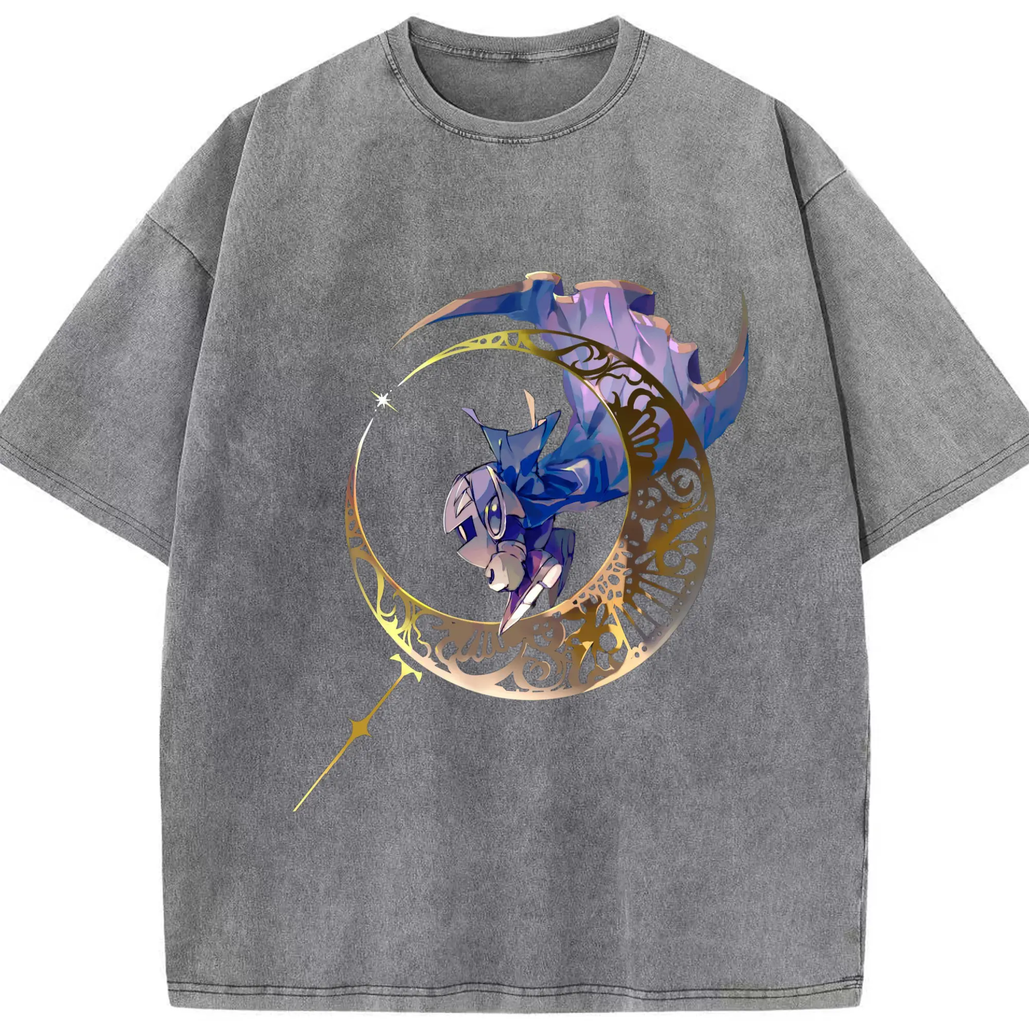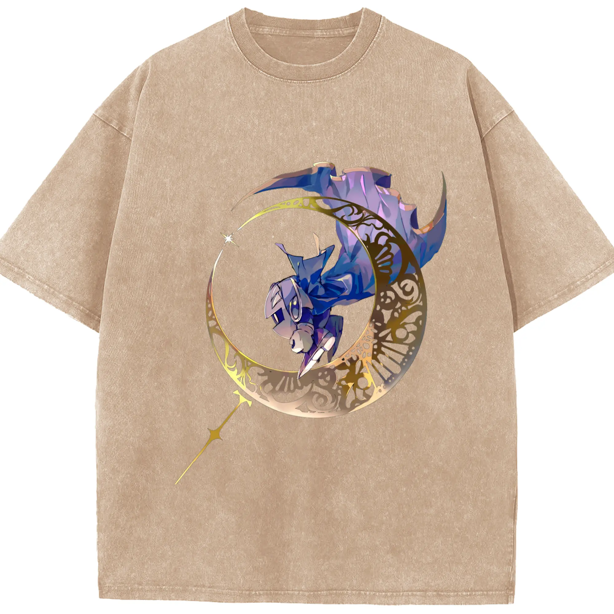 Men's Meta Knight t shirt - Washed Vintage Look 230g Cotton Oversized T-Shirt With Front Heat Transfer Print – Soft, Lightweight, Stylish Fit – Comfortable Casual Wear For Sports & Everyday Use