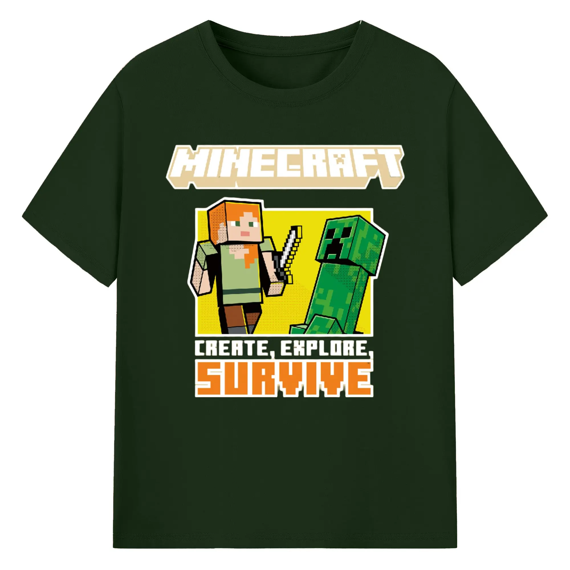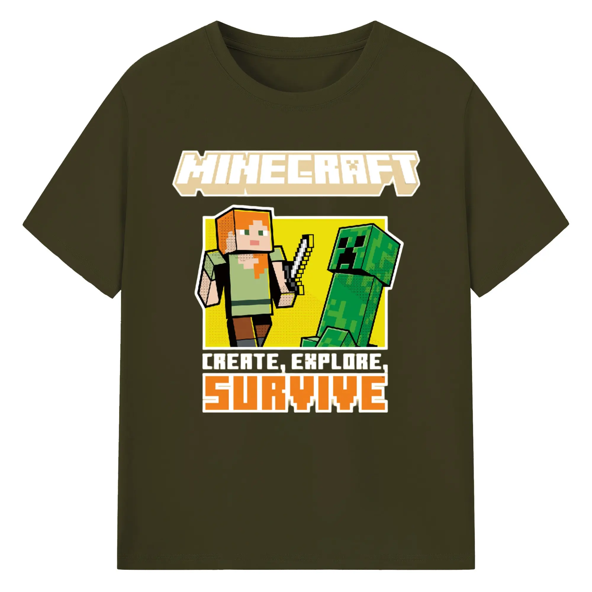 Men's minecraft alex tee - 180g Cotton T-Shirt With Front Heat Transfer Print – Soft, Lightweight, Fitted Design – Comfortable Casual Wear For Sports & Everyday Use