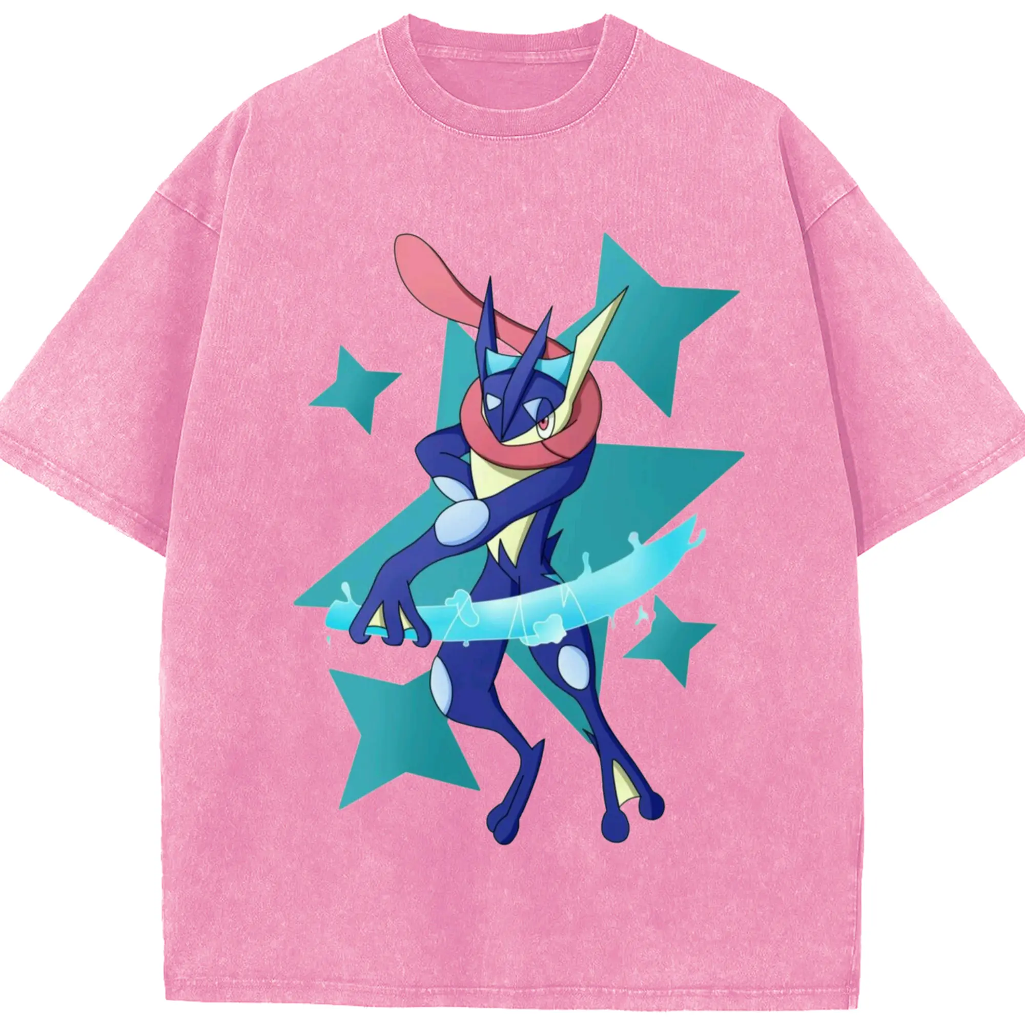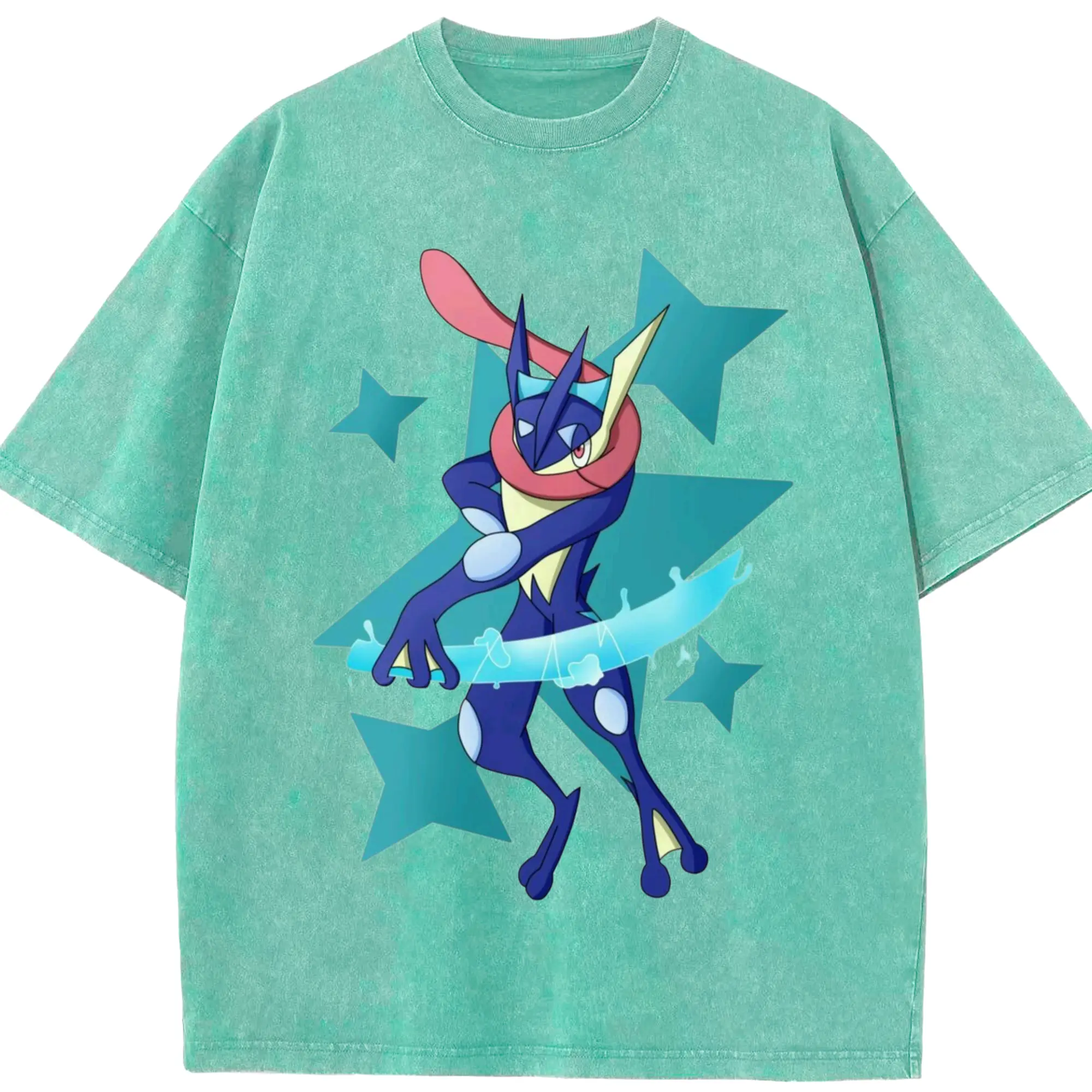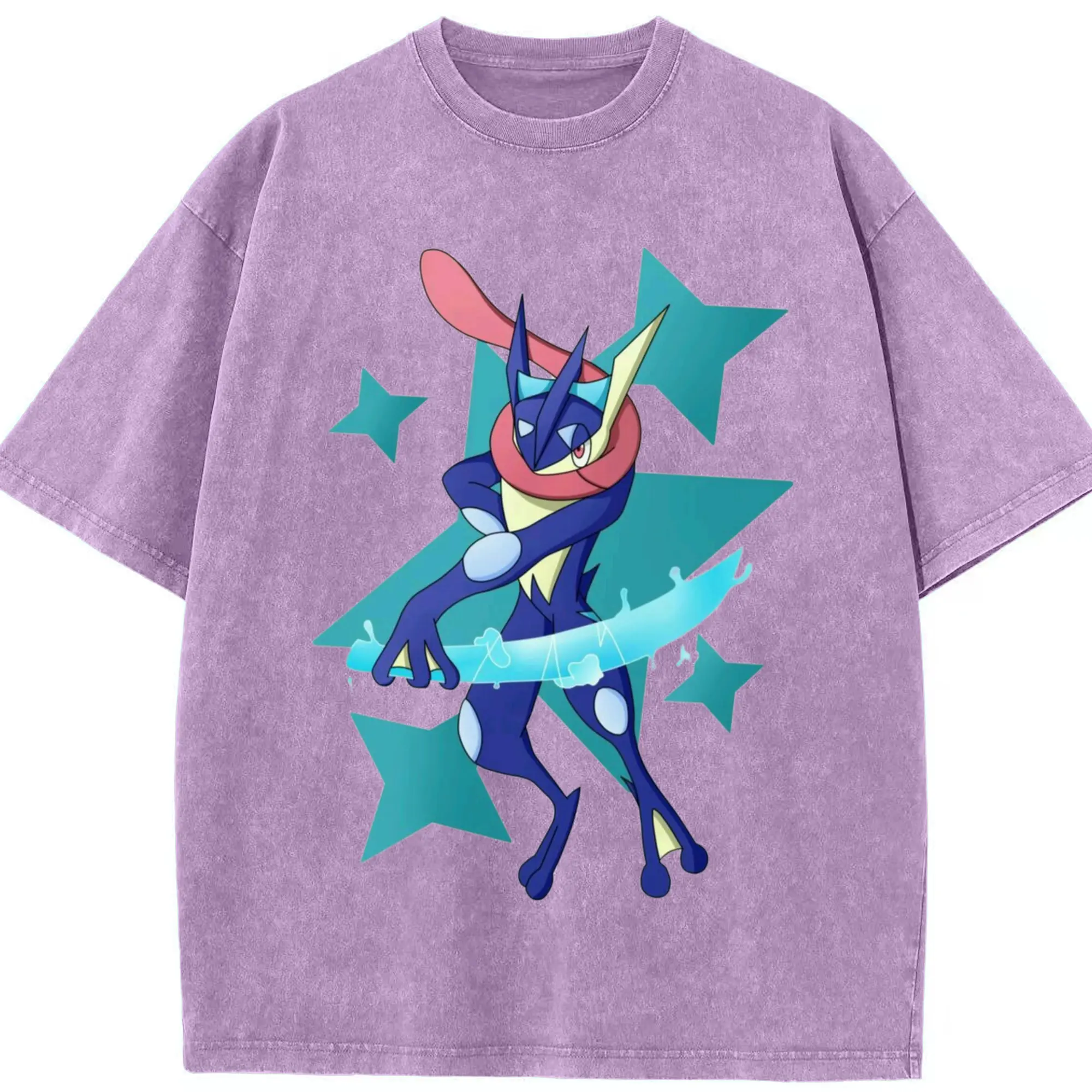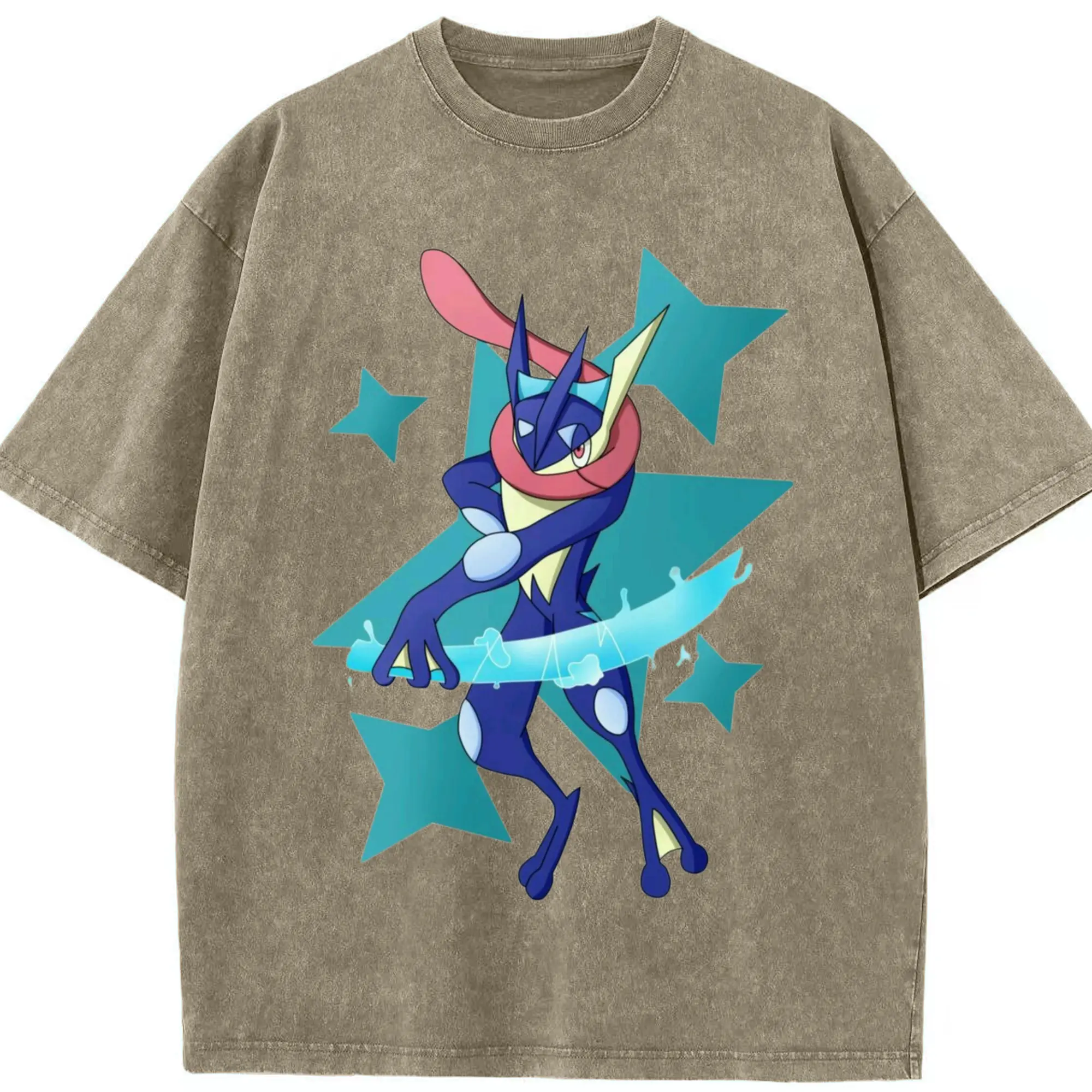 Men's Pokémon Greninja graphic shirt - Washed Vintage Look 230g Cotton Oversized T-Shirt With Front Heat Transfer Print – Soft, Lightweight, Stylish Fit – Comfortable Casual Wear For Sports & Everyday Use
