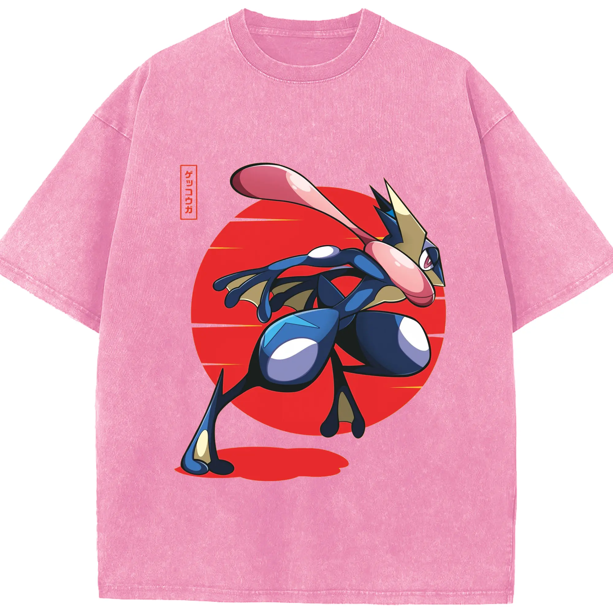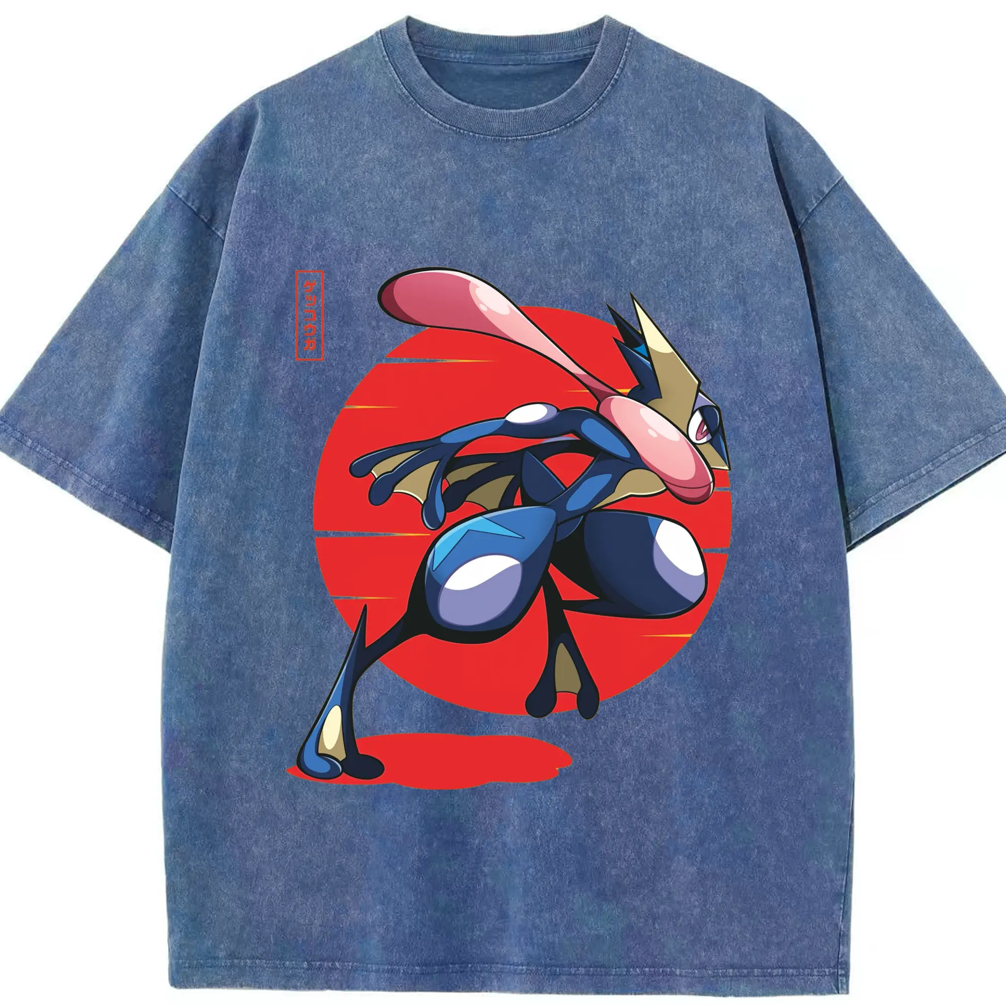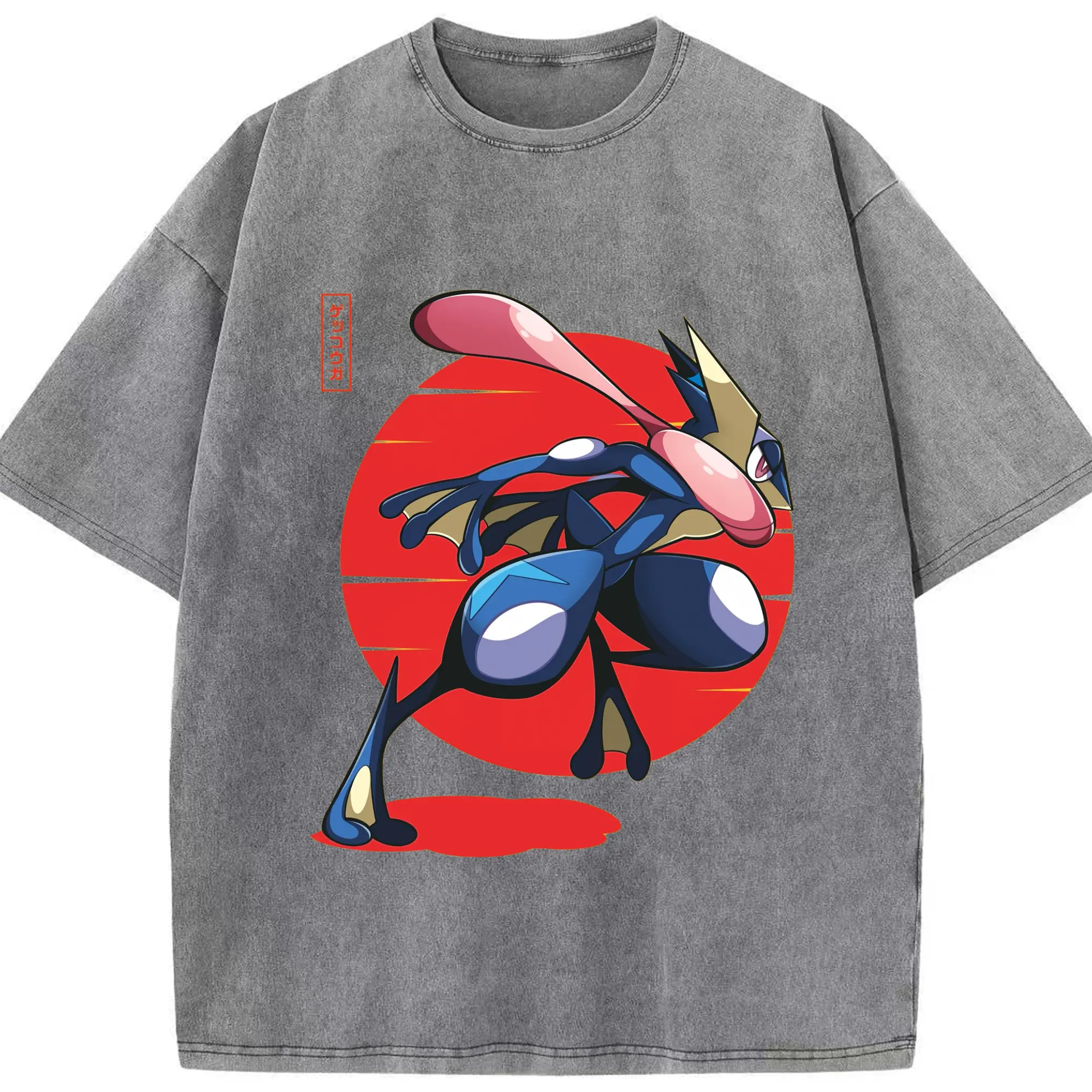 Men's Pokémon Greninja shirt - Washed Vintage Look 230g Cotton Oversized T-Shirt With Front Heat Transfer Print – Soft, Lightweight, Stylish Fit – Comfortable Casual Wear For Sports & Everyday Use