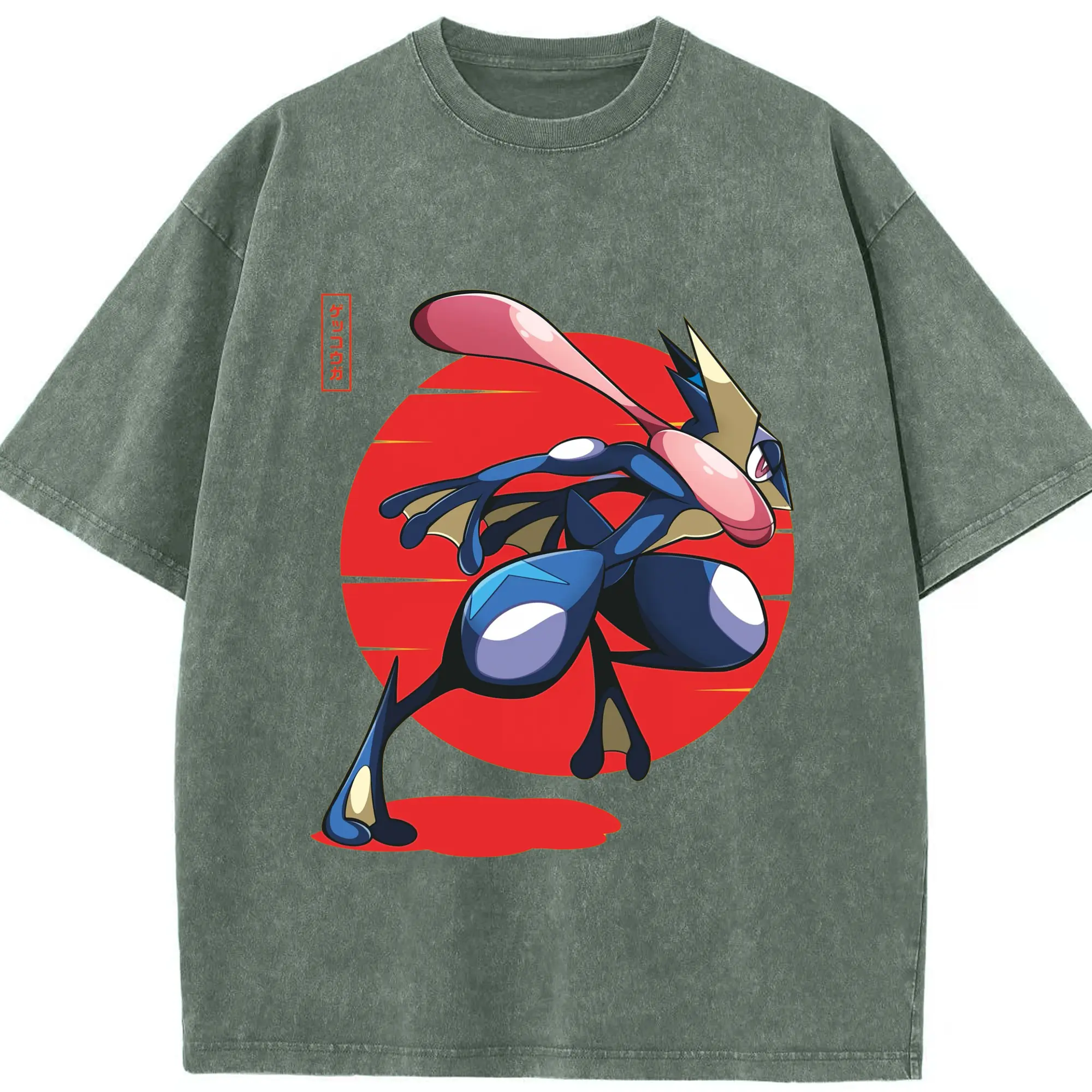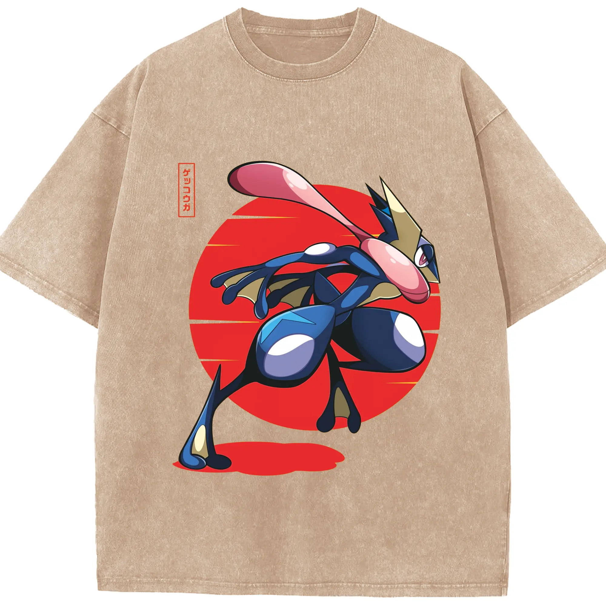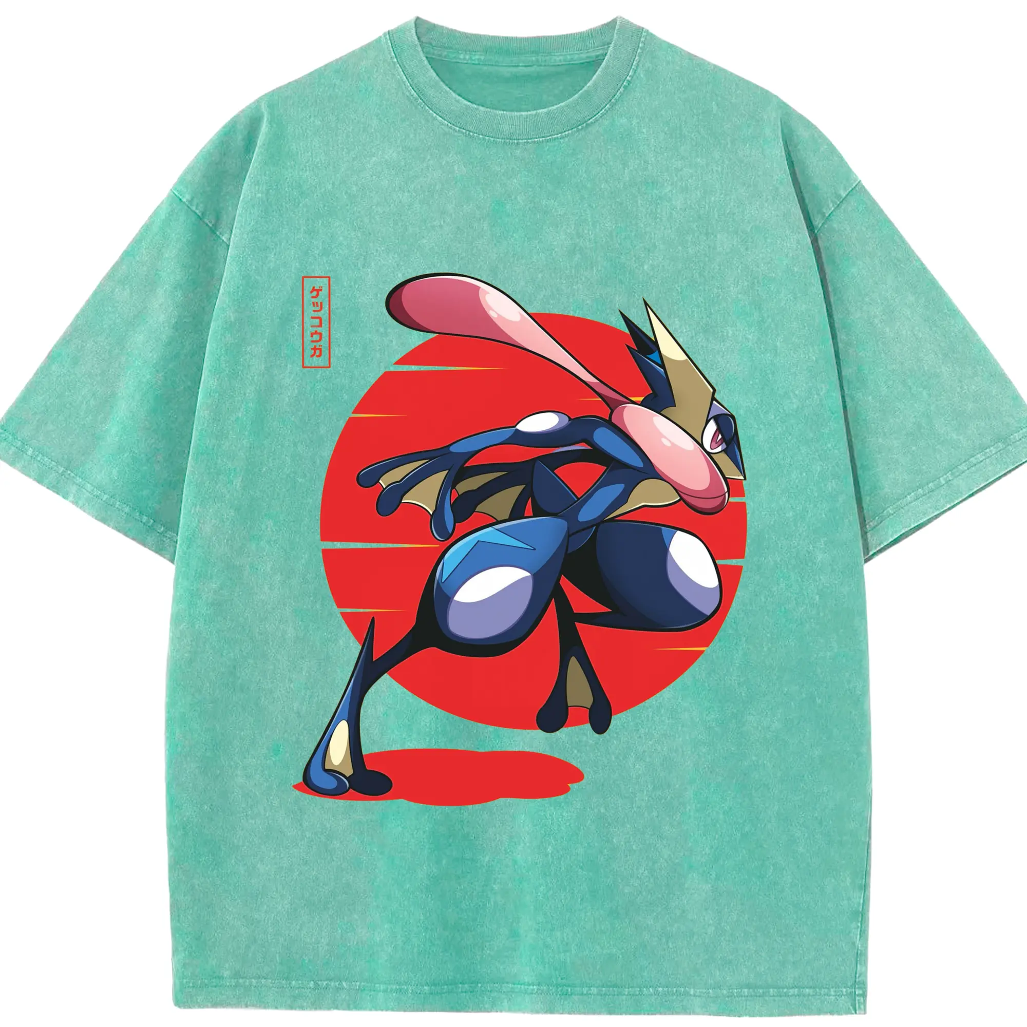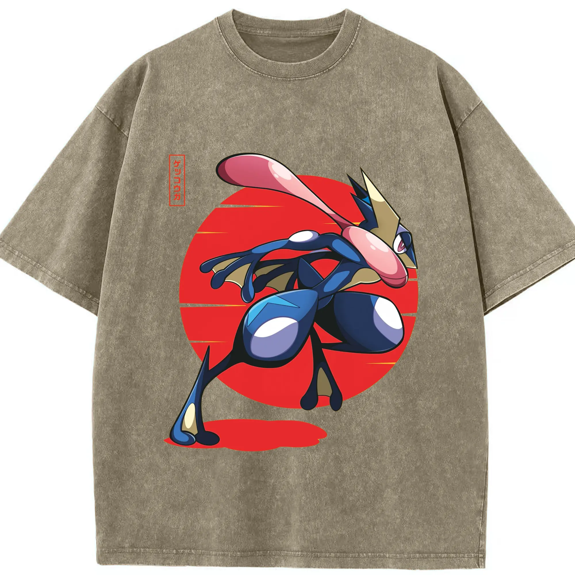 Men's Pokémon Greninja shirt - Washed Vintage Look 230g Cotton Oversized T-Shirt With Front Heat Transfer Print – Soft, Lightweight, Stylish Fit – Comfortable Casual Wear For Sports & Everyday Use