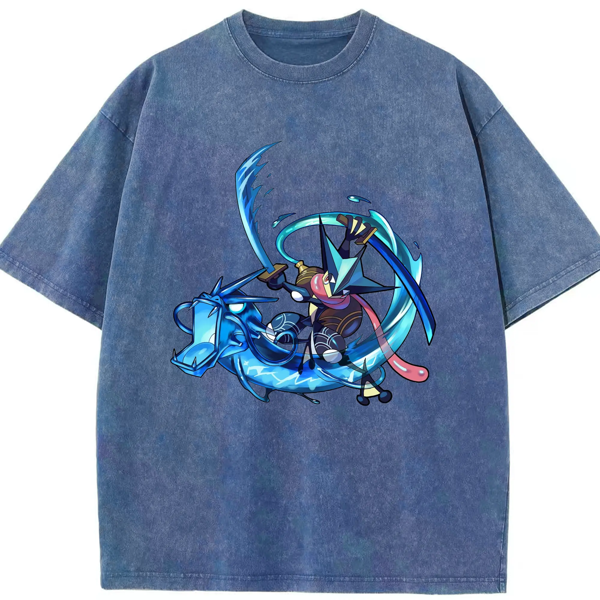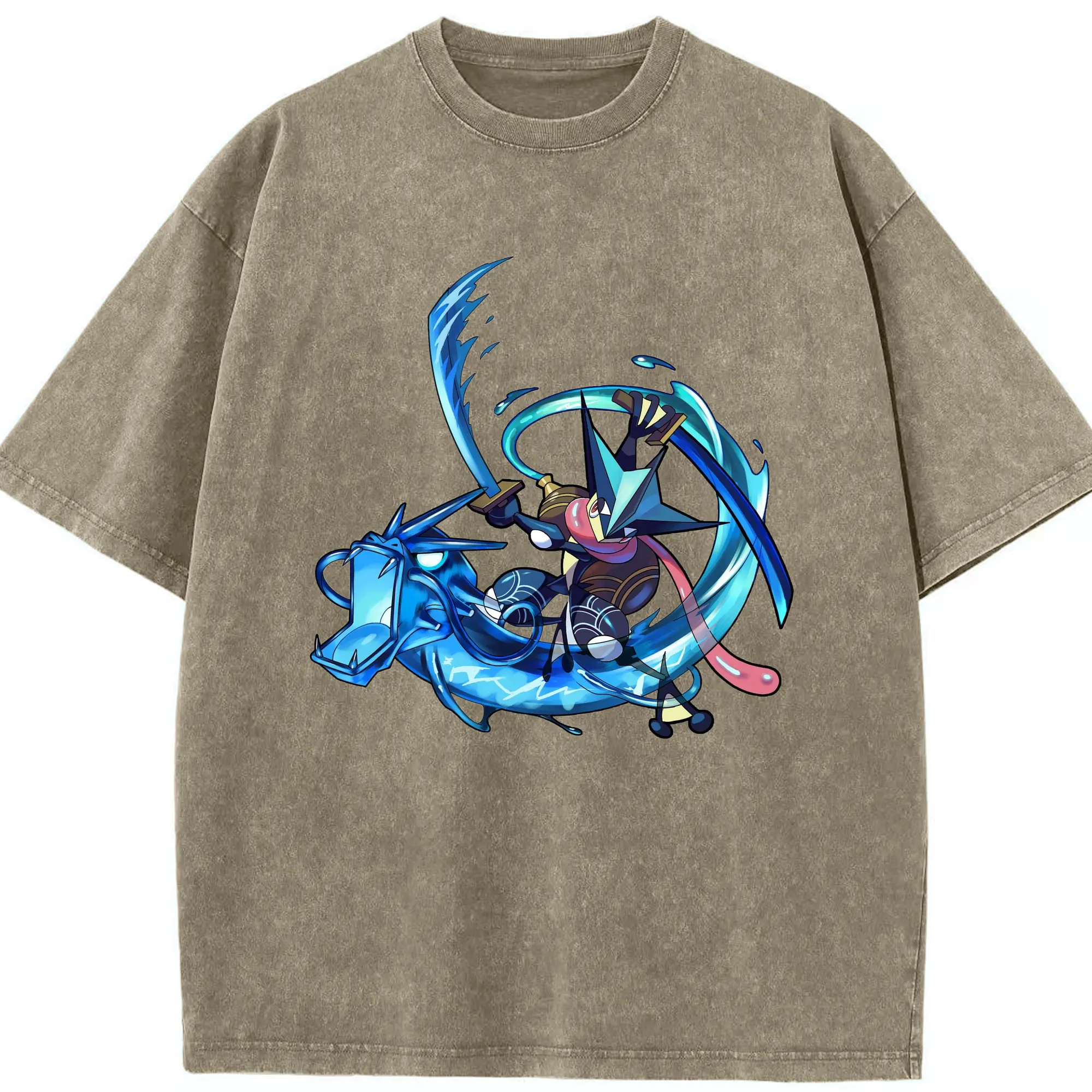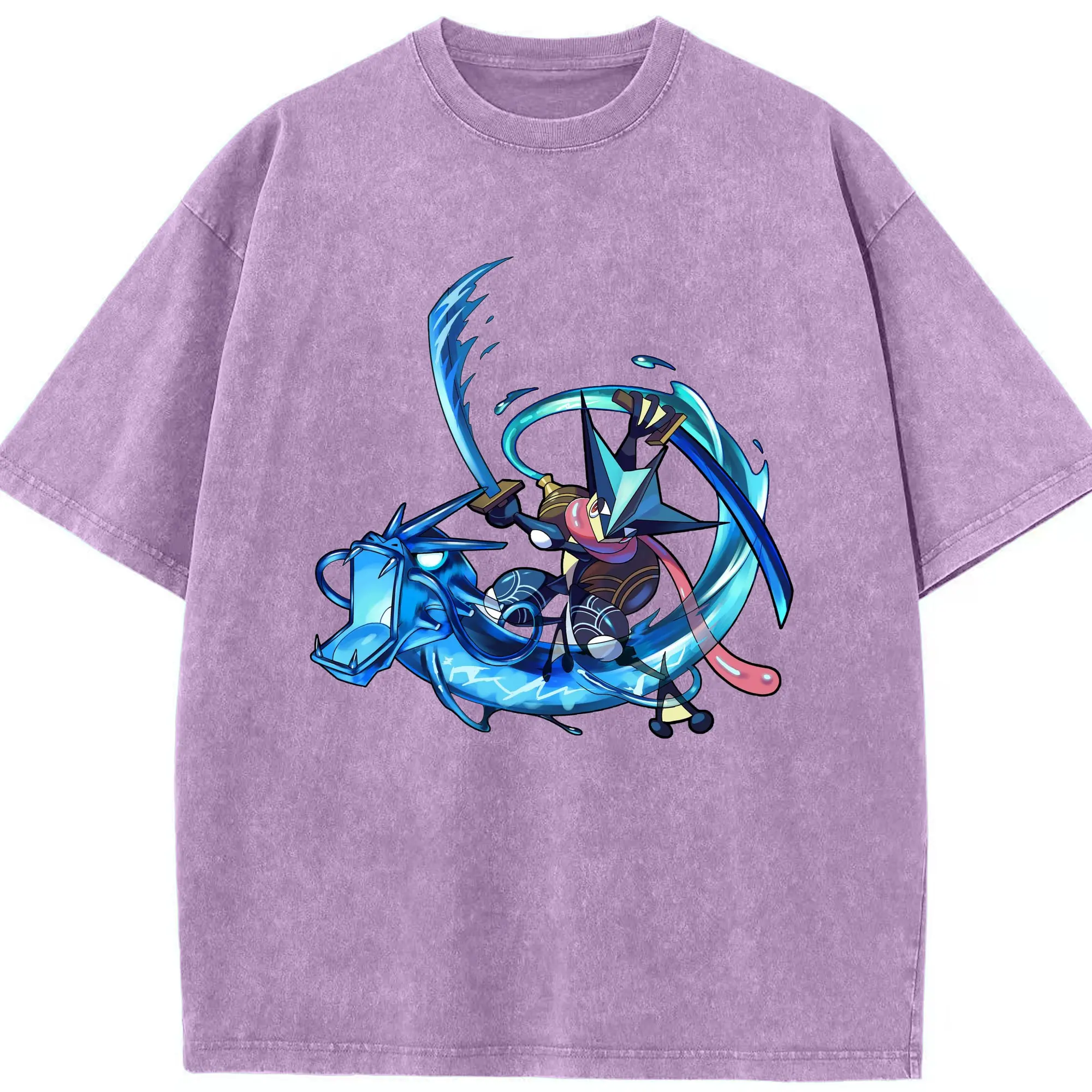 Men's Pokémon Greninja tee - Washed Vintage Look 230g Cotton Oversized T-Shirt With Front Heat Transfer Print – Soft, Lightweight, Stylish Fit – Comfortable Casual Wear For Sports & Everyday Use