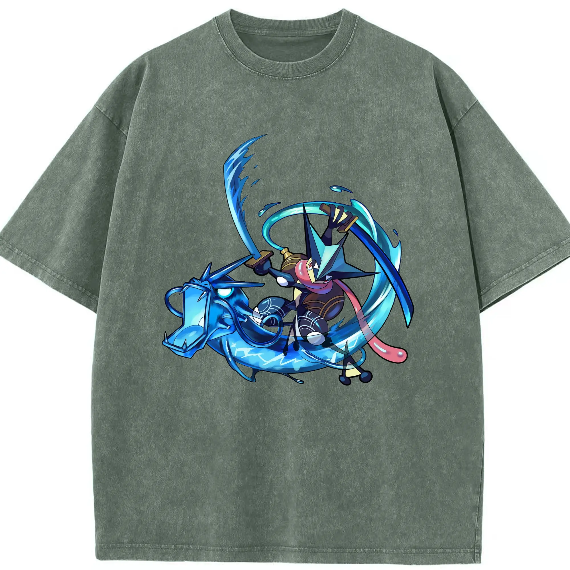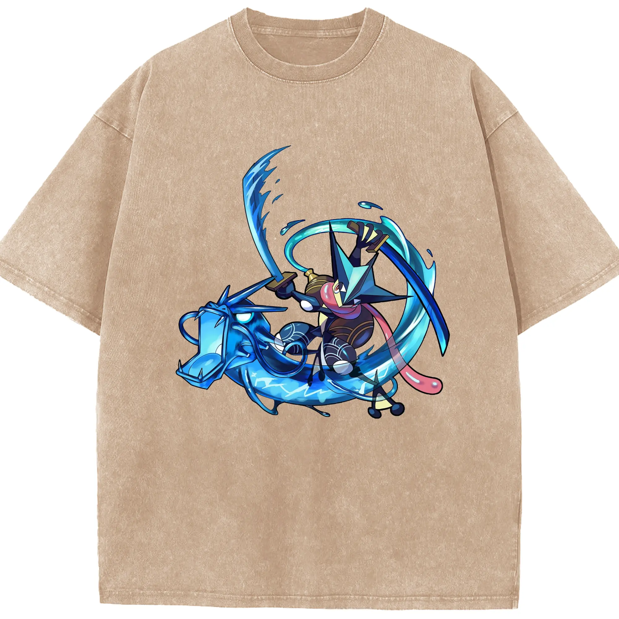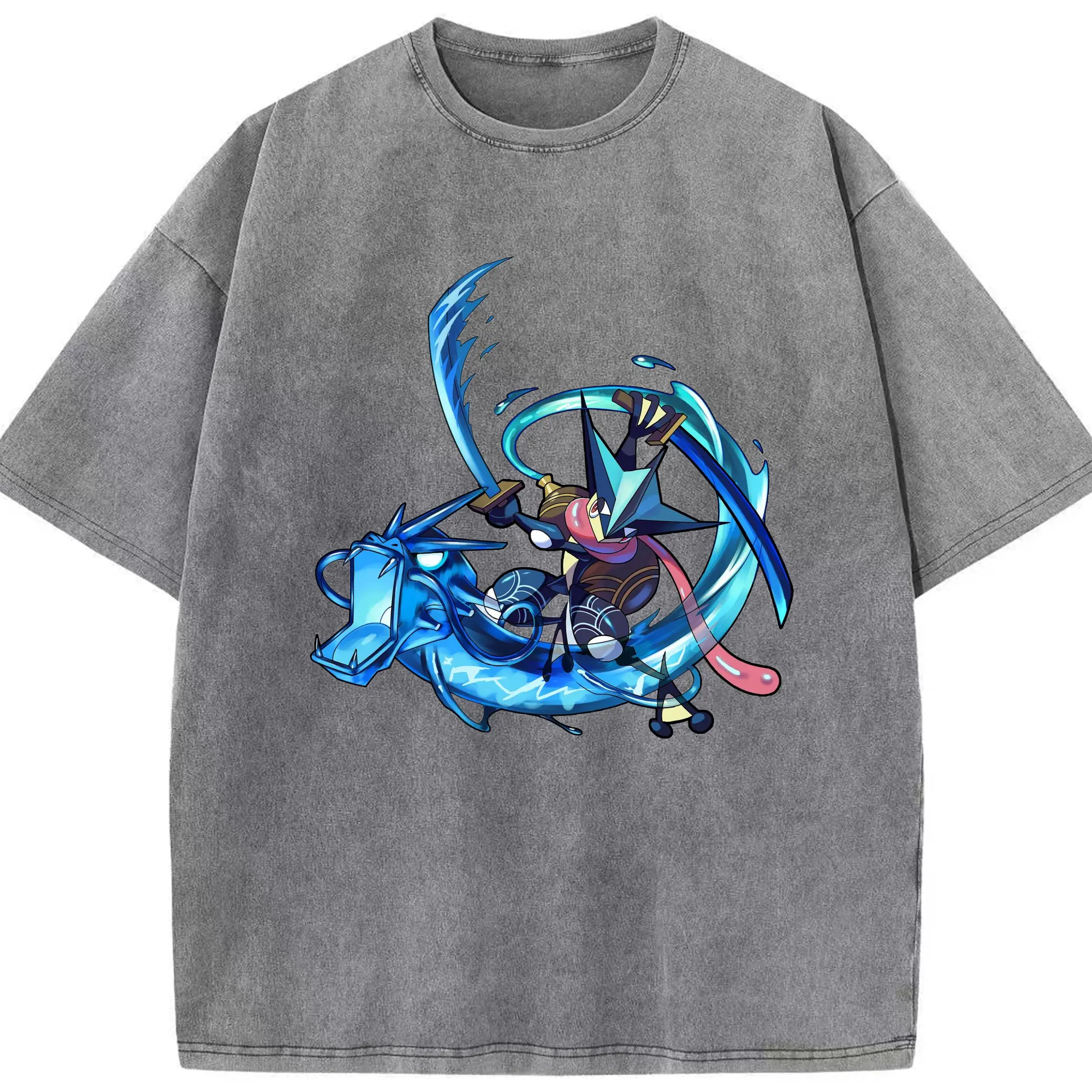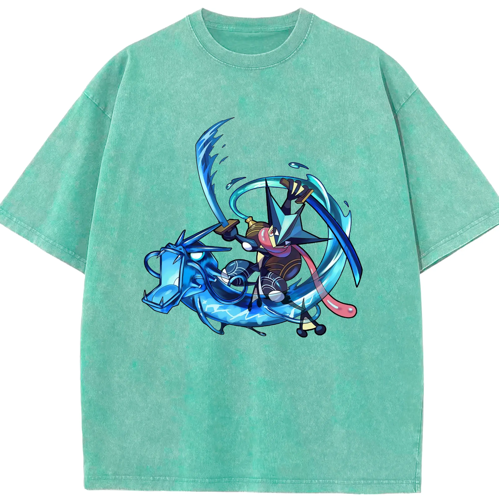Men's Pokémon Greninja tee - Washed Vintage Look 230g Cotton Oversized T-Shirt With Front Heat Transfer Print – Soft, Lightweight, Stylish Fit – Comfortable Casual Wear For Sports & Everyday Use