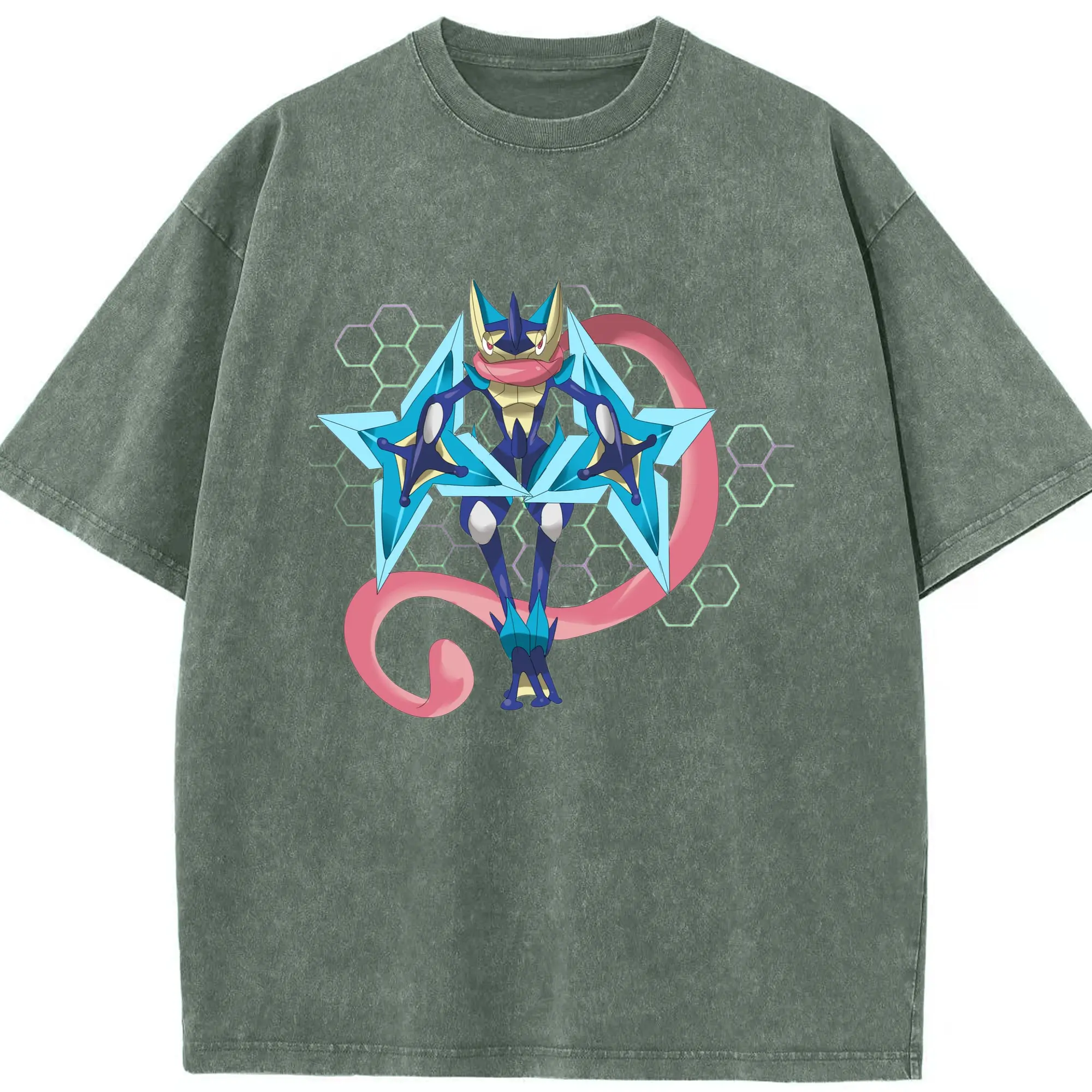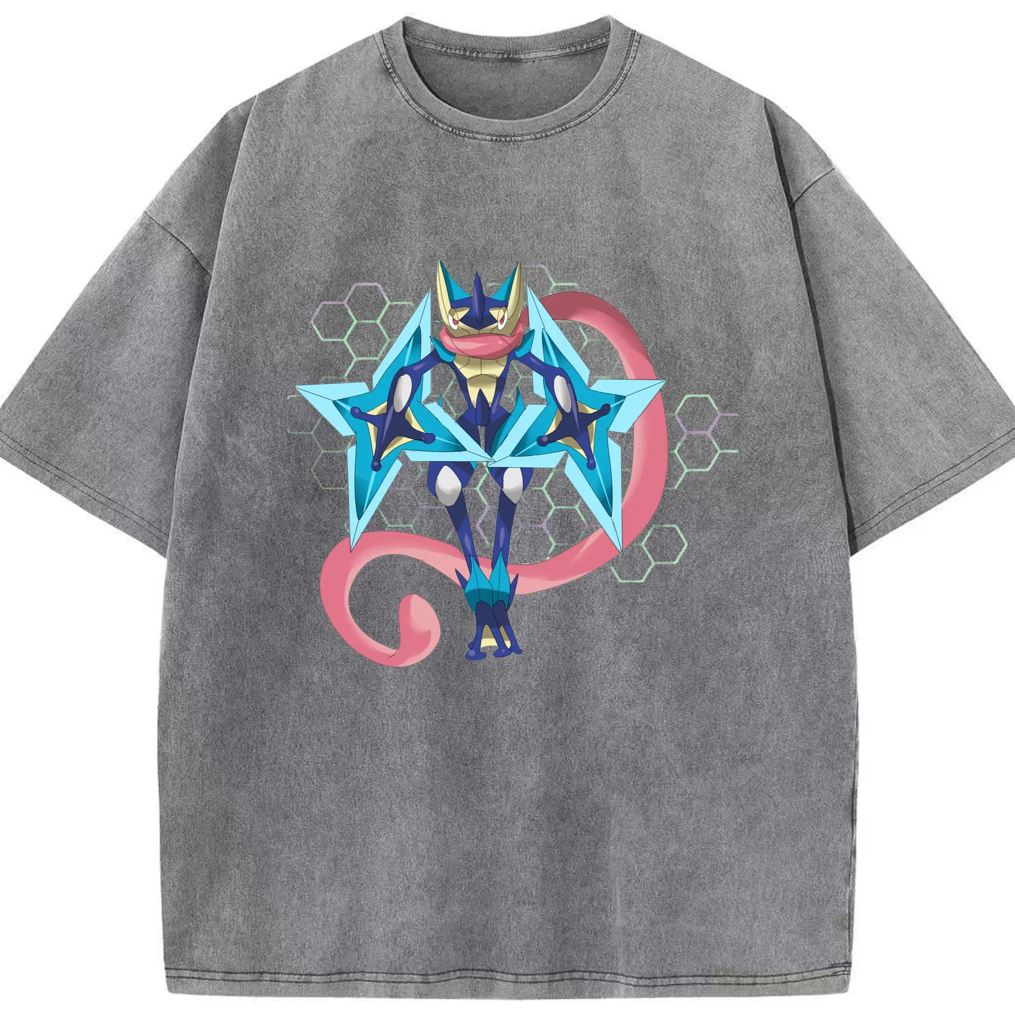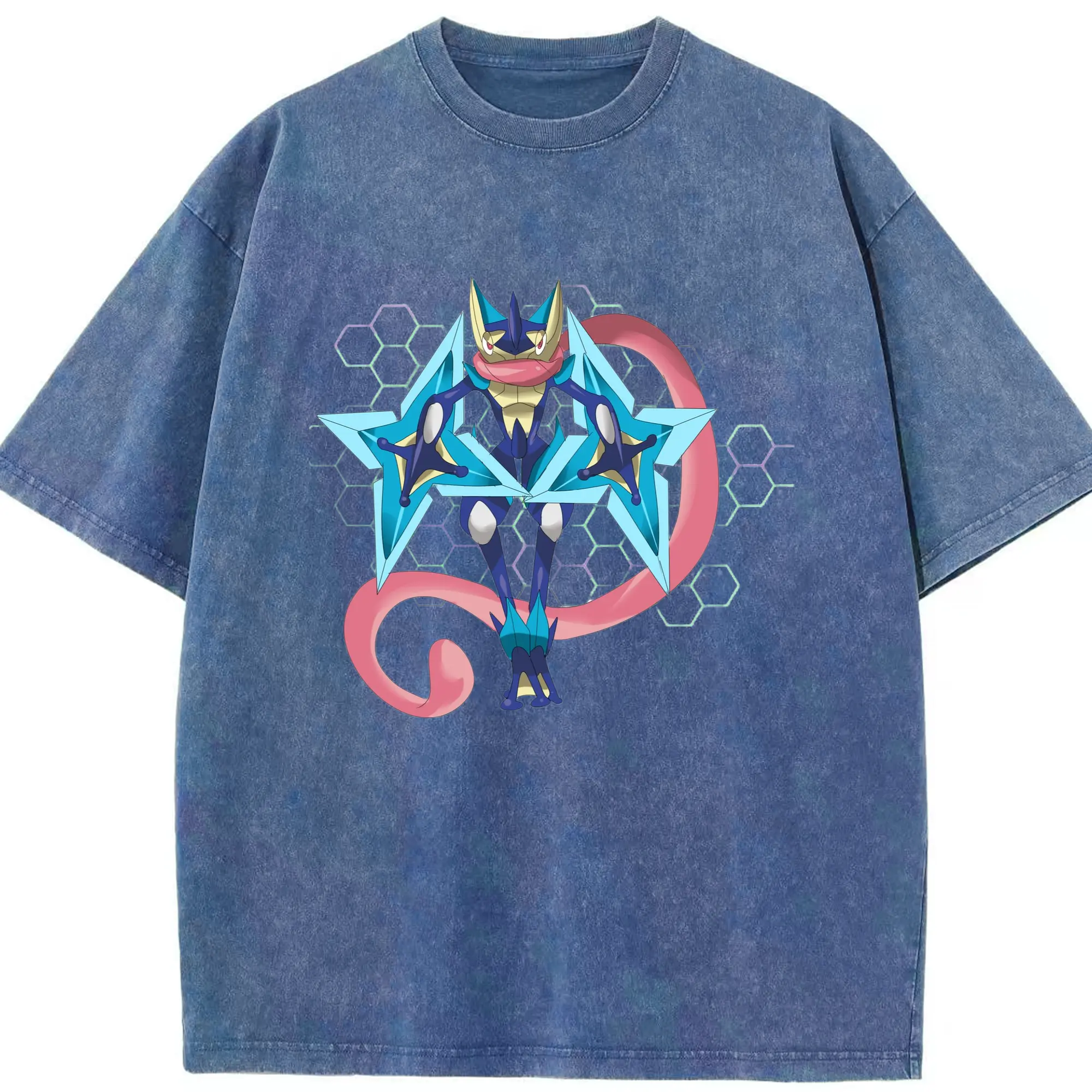 Men's Pokémon Greninja t-shirt - Washed Vintage Look 230g Cotton Oversized T-Shirt With Front Heat Transfer Print – Soft, Lightweight, Stylish Fit – Comfortable Casual Wear For Sports & Everyday Use