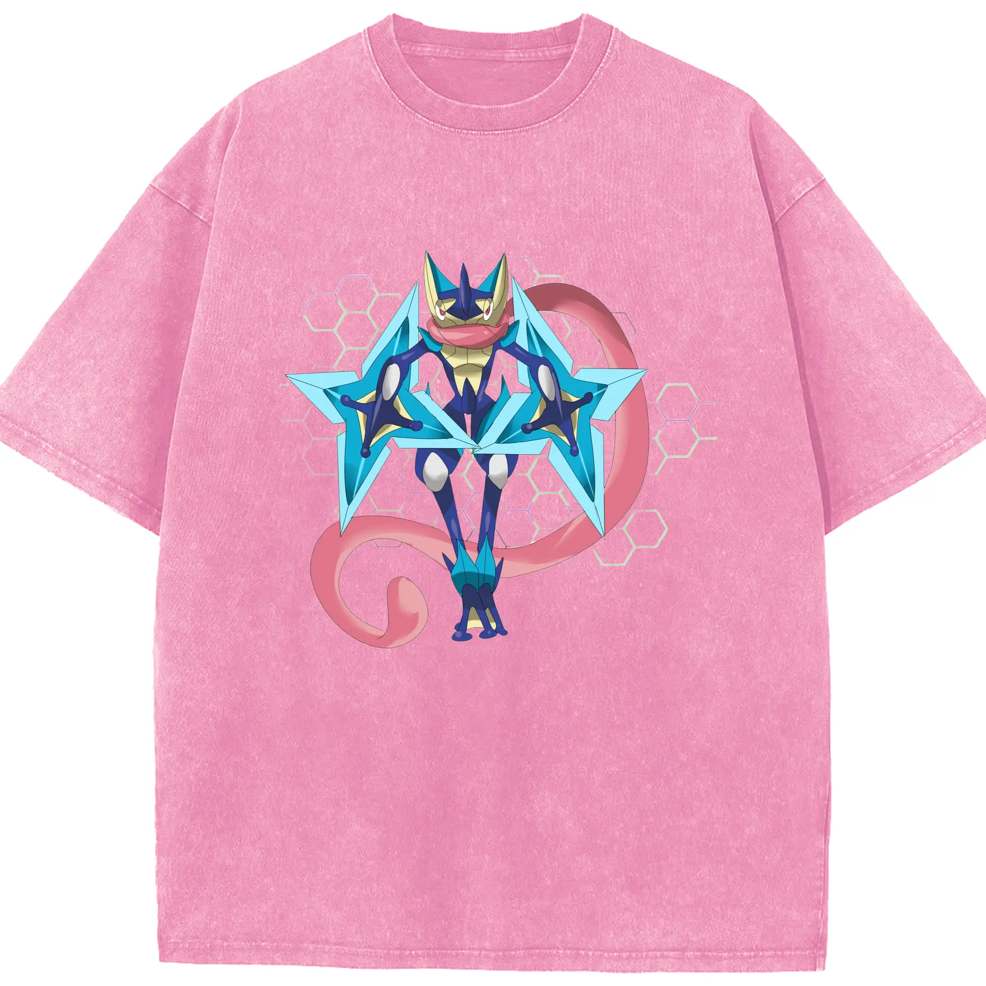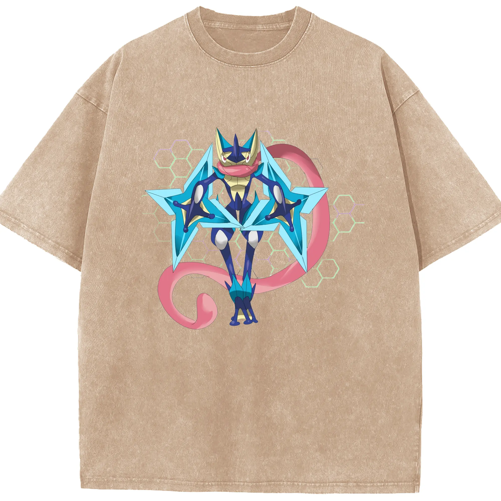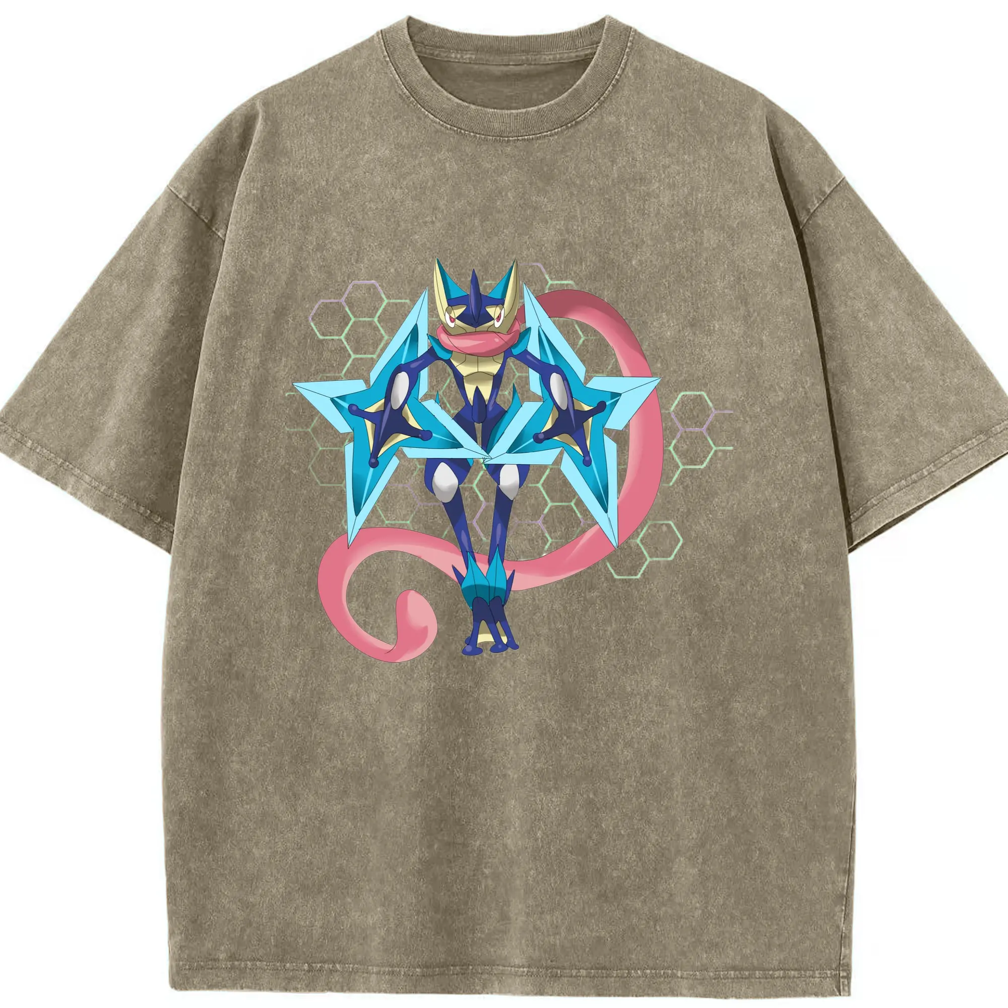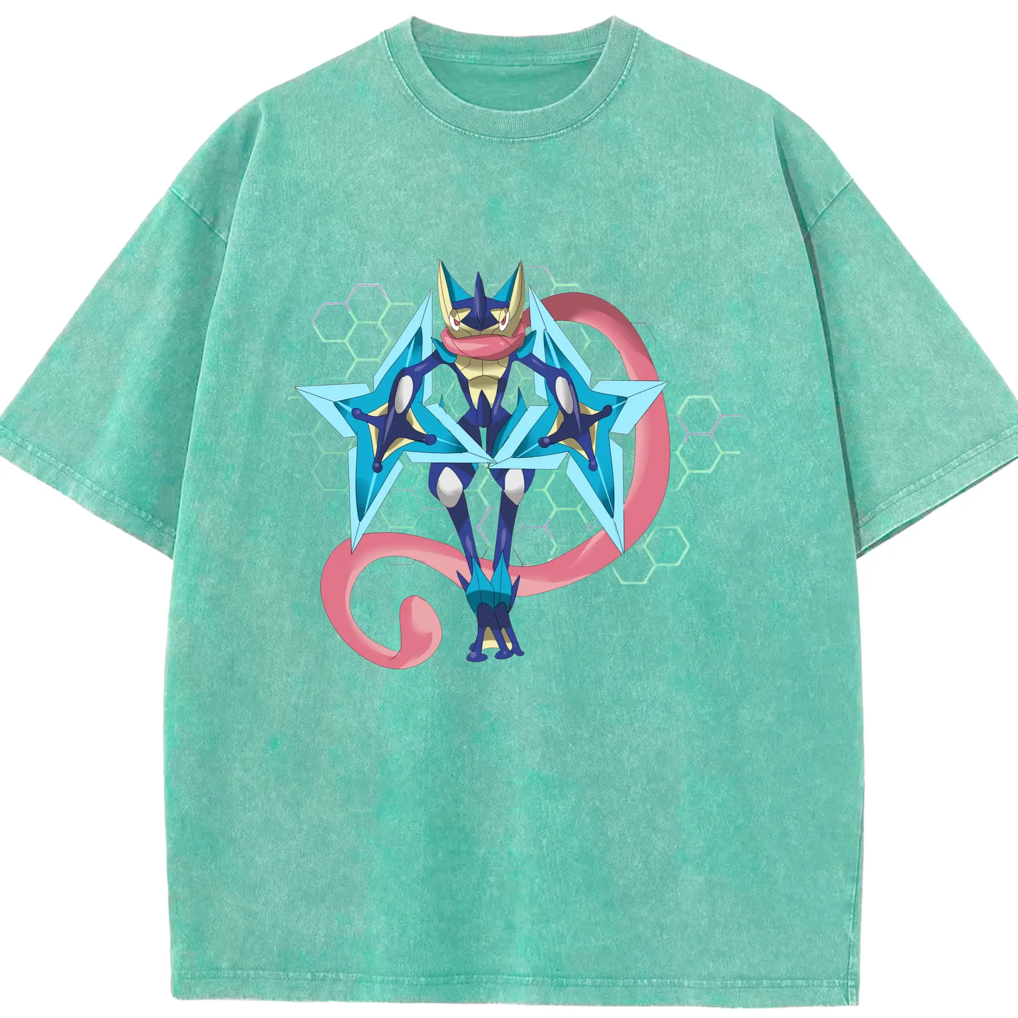 Men's Pokémon Greninja t-shirt - Washed Vintage Look 230g Cotton Oversized T-Shirt With Front Heat Transfer Print – Soft, Lightweight, Stylish Fit – Comfortable Casual Wear For Sports & Everyday Use
