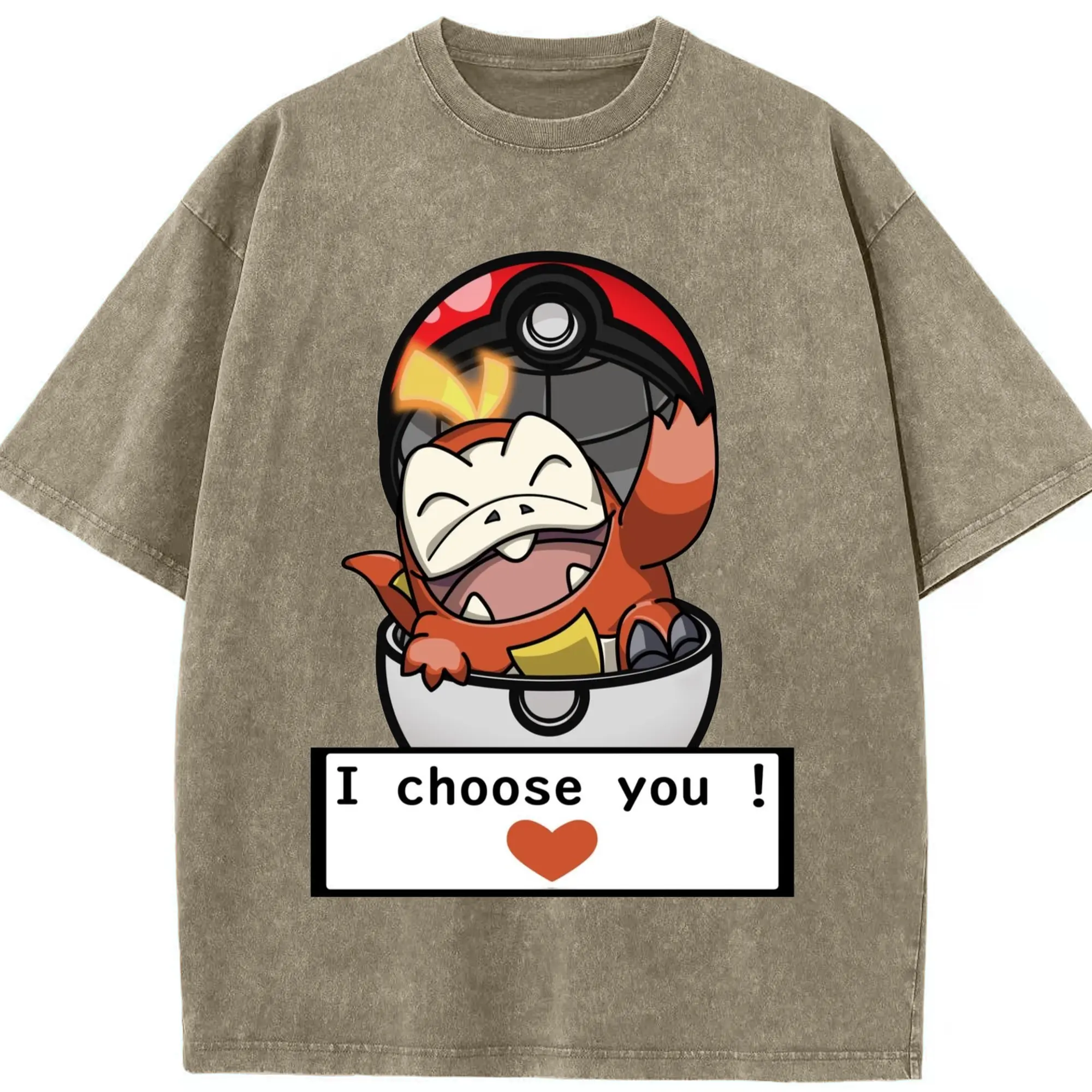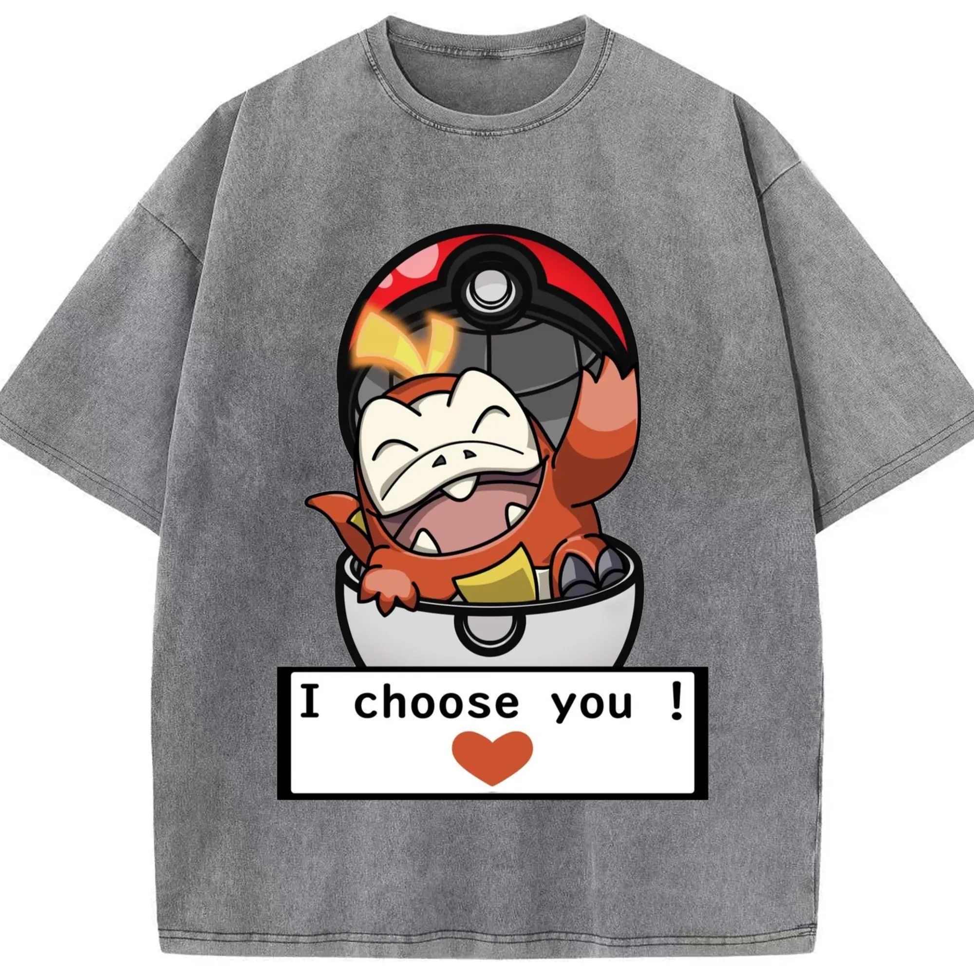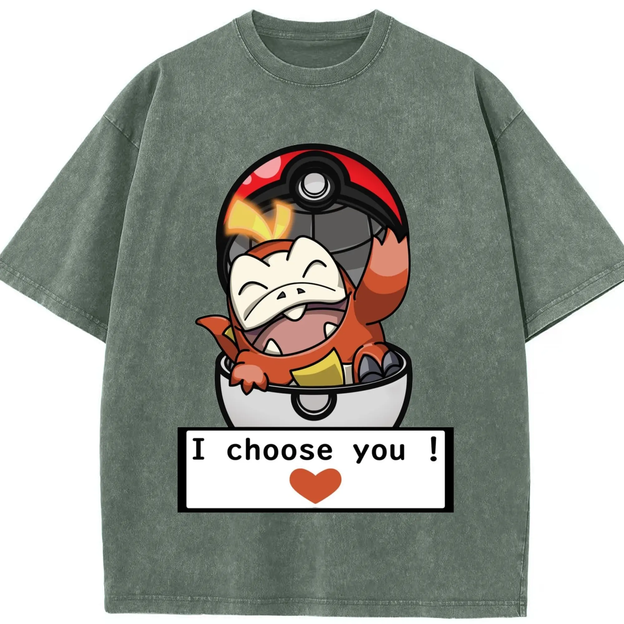 Men's Pokemon Fuecoco Tee - Washed Vintage Look 230g Cotton Oversized T-Shirt With Front Heat Transfer Print – Soft, Lightweight, Stylish Fit – Comfortable Casual Wear For Sports & Everyday Use