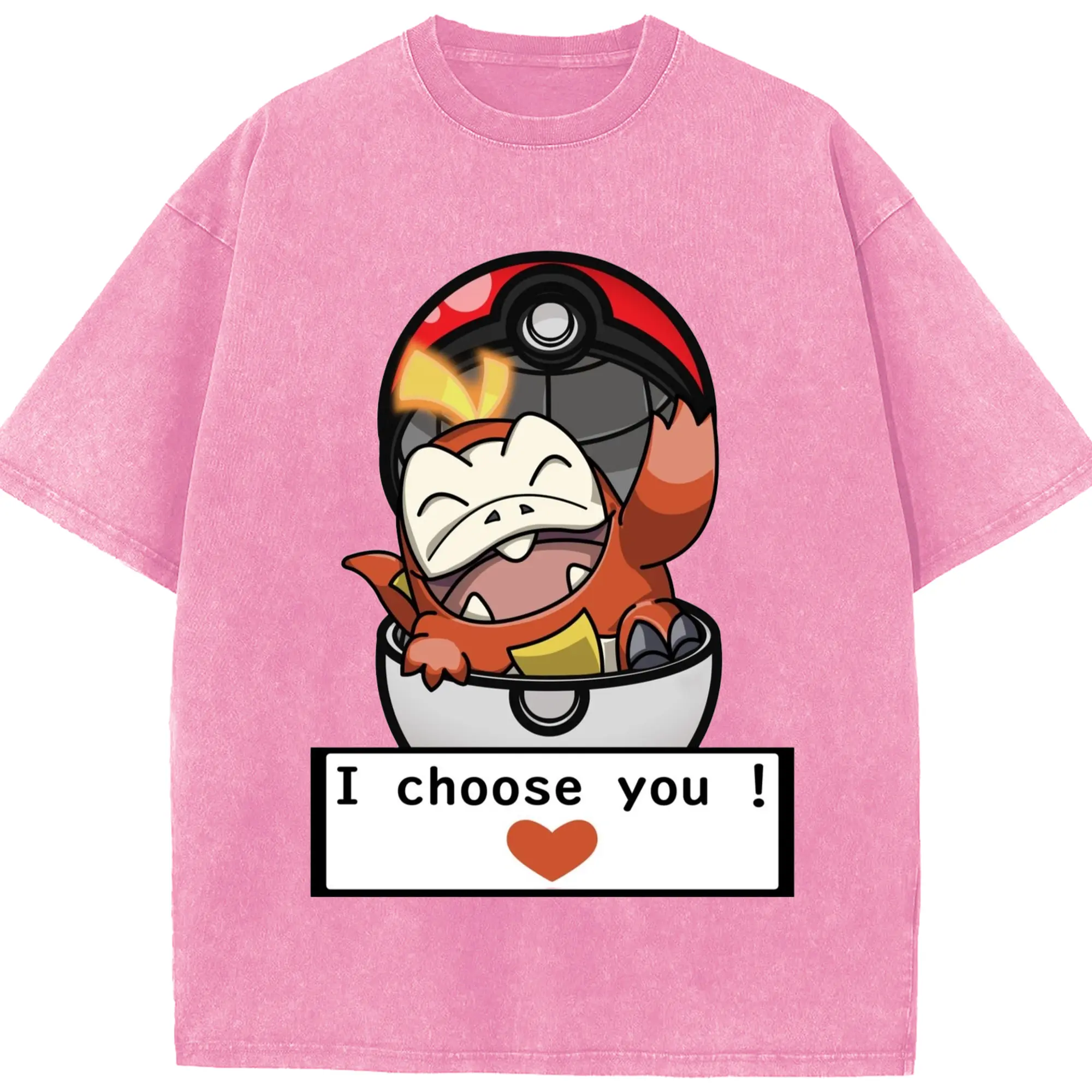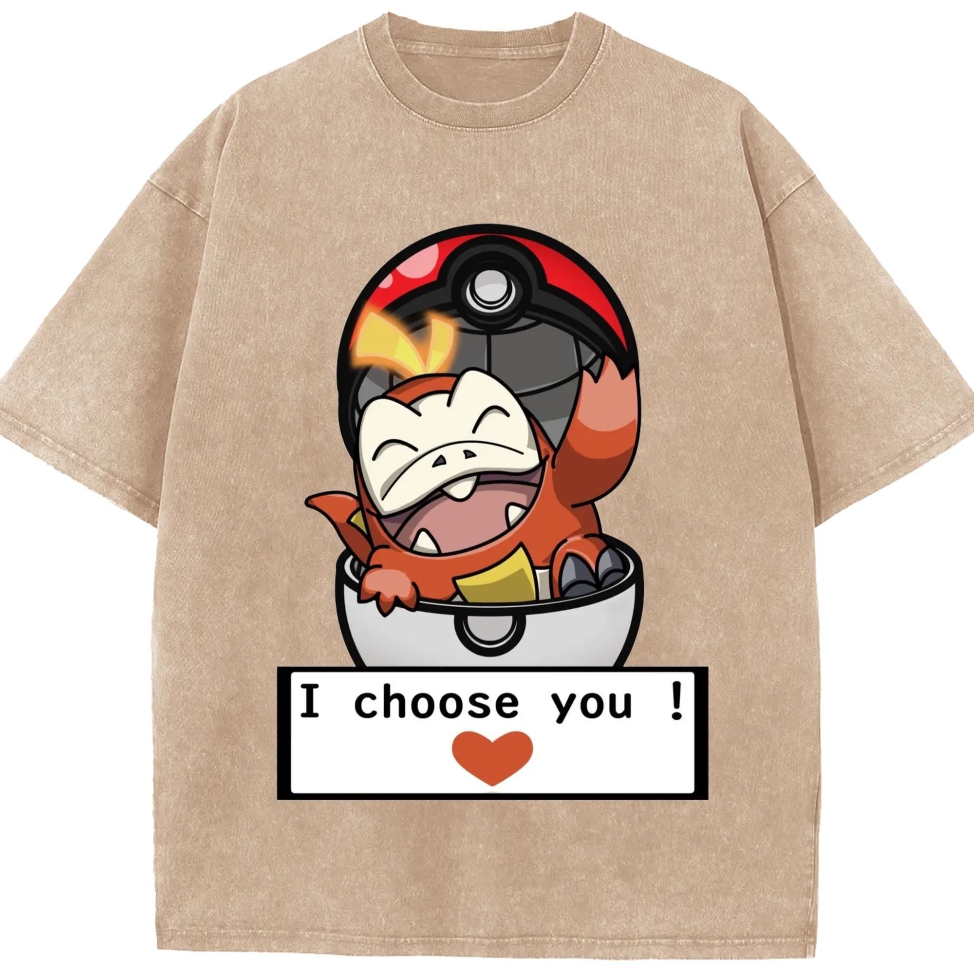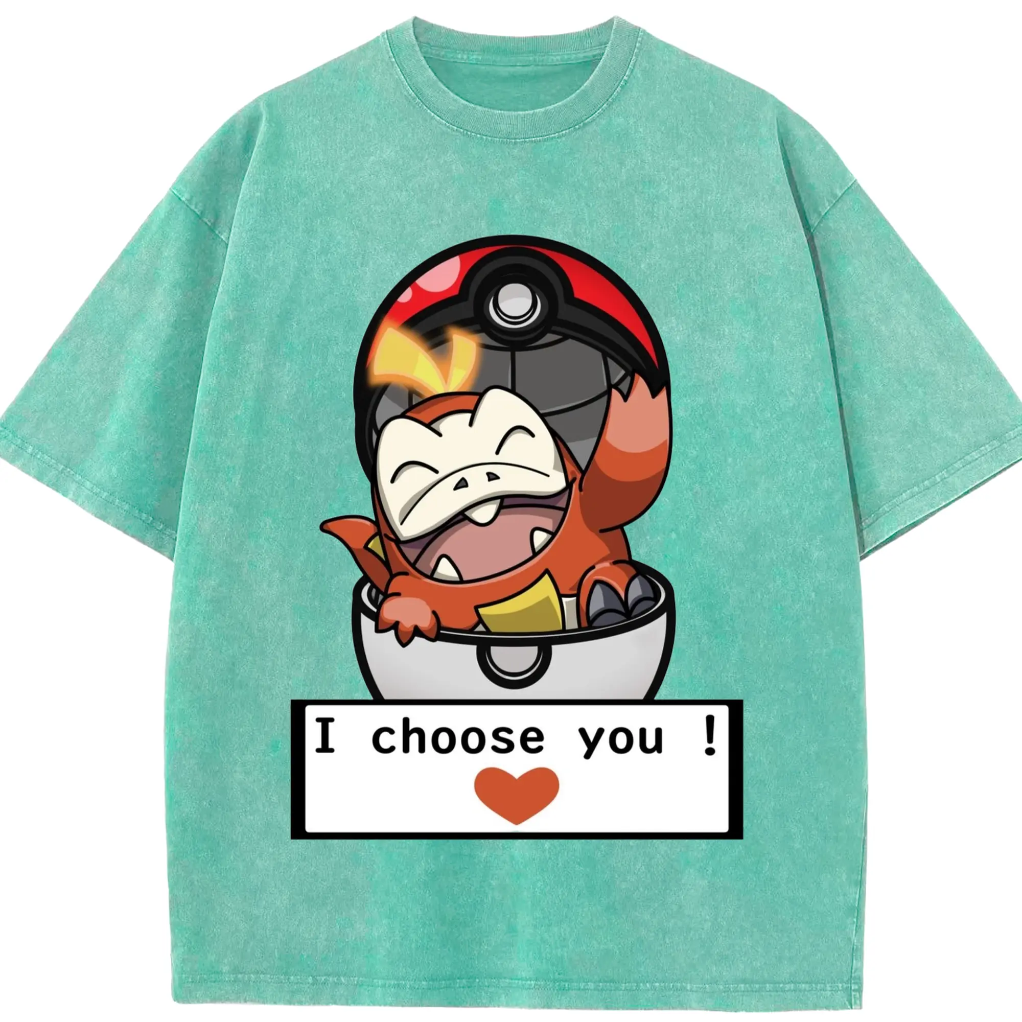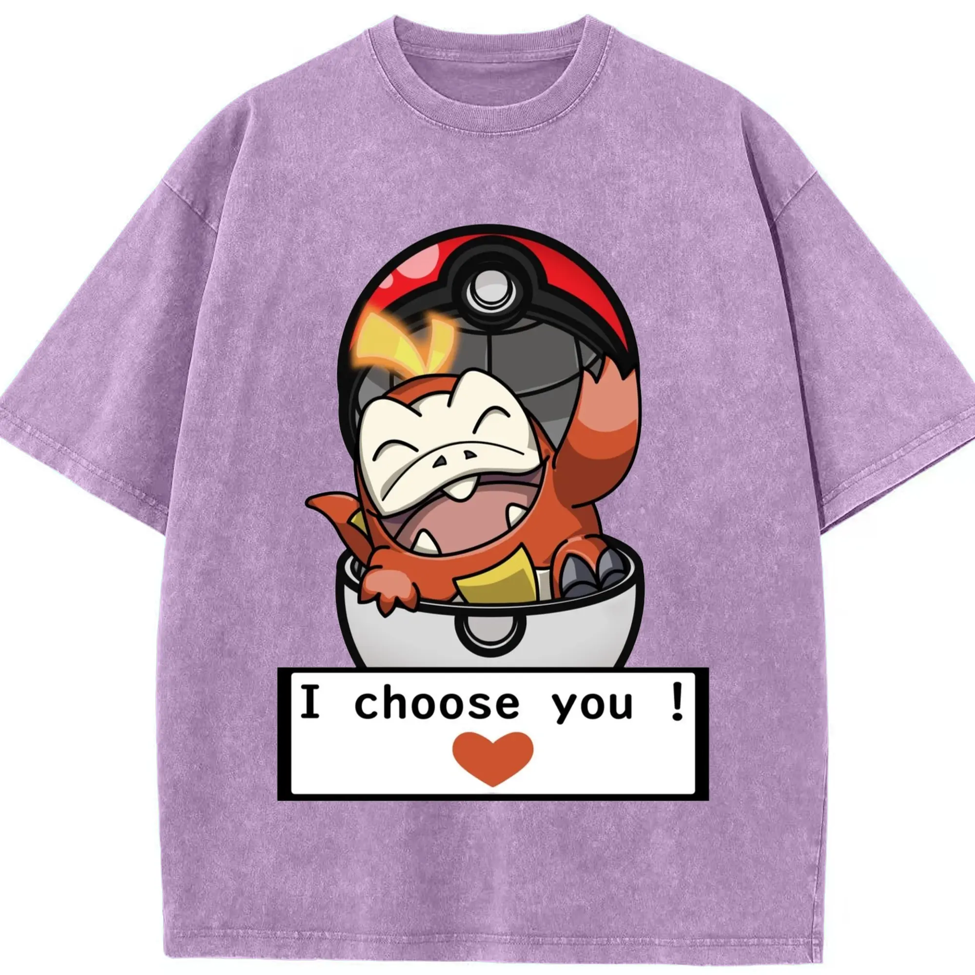 Men's Pokemon Fuecoco Tee - Washed Vintage Look 230g Cotton Oversized T-Shirt With Front Heat Transfer Print – Soft, Lightweight, Stylish Fit – Comfortable Casual Wear For Sports & Everyday Use