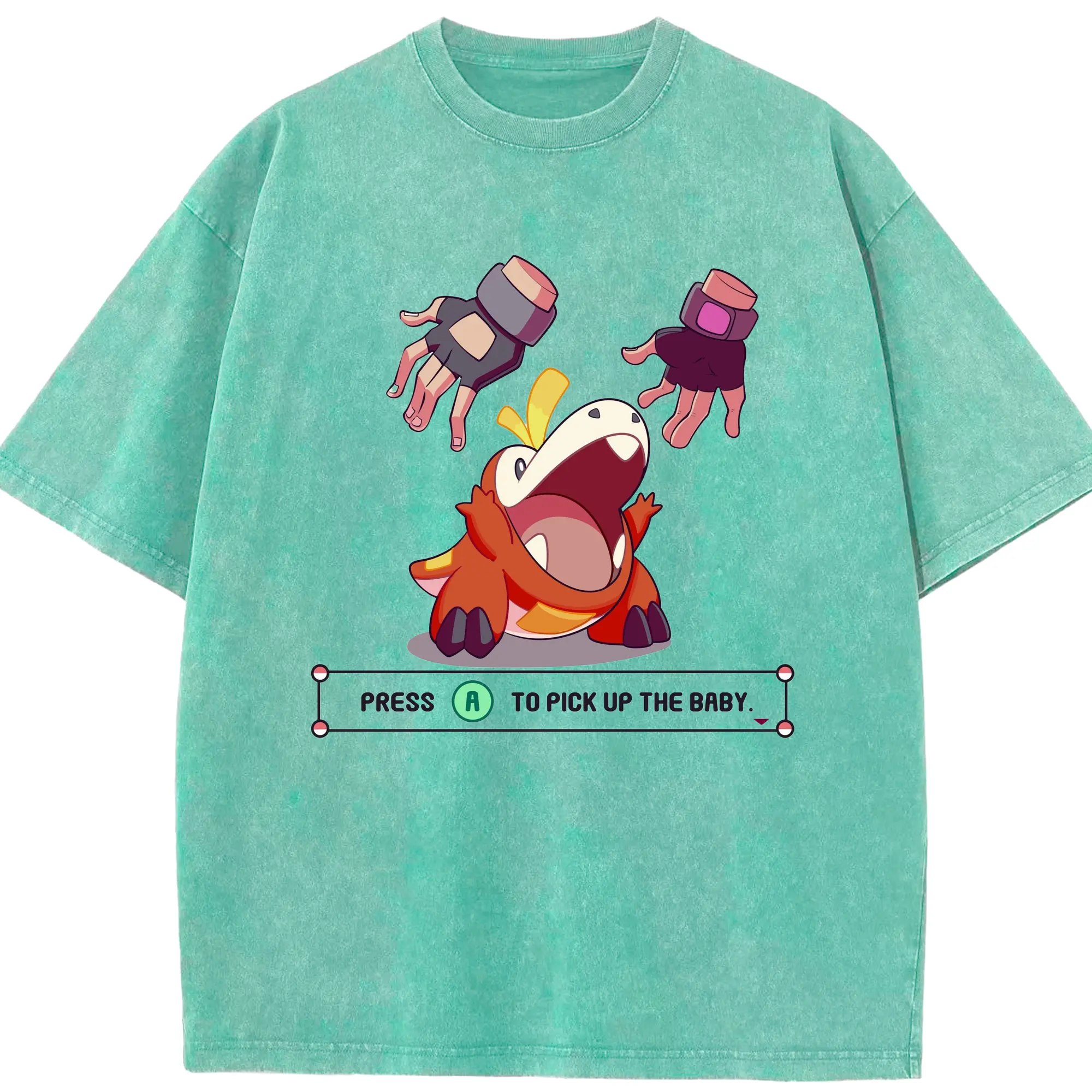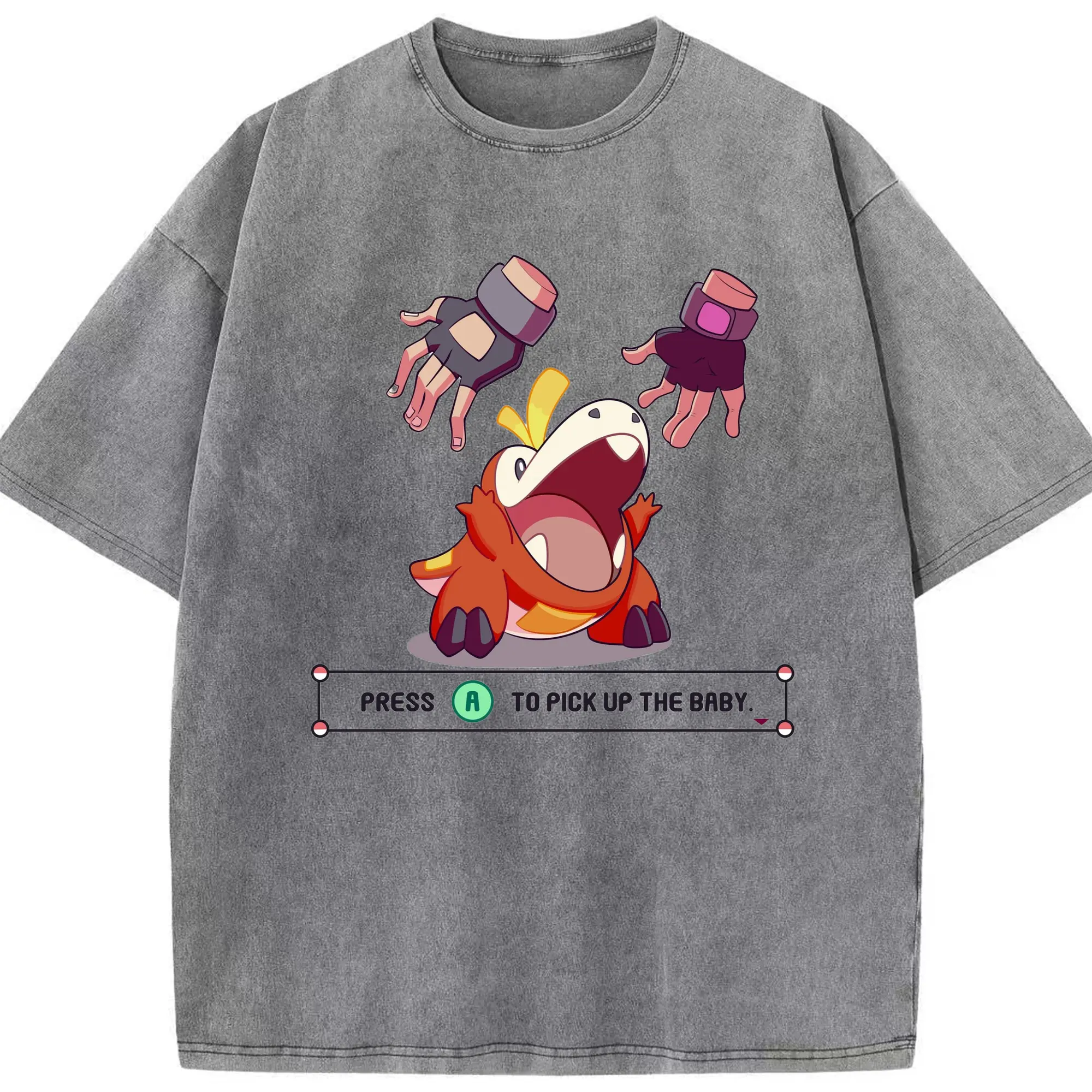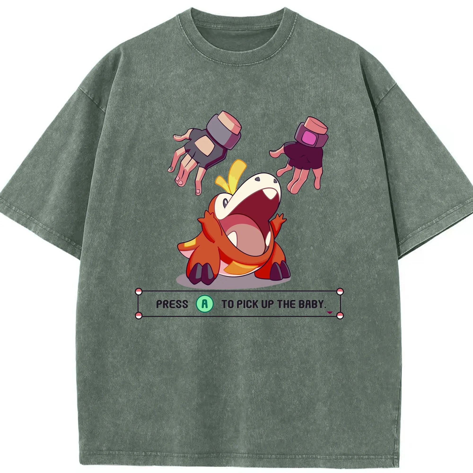 Men's Pokemon Fuecoco T-Shirt - Washed Vintage Look 230g Cotton Oversized T-Shirt With Front Heat Transfer Print – Soft, Lightweight, Stylish Fit – Comfortable Casual Wear For Sports & Everyday Use