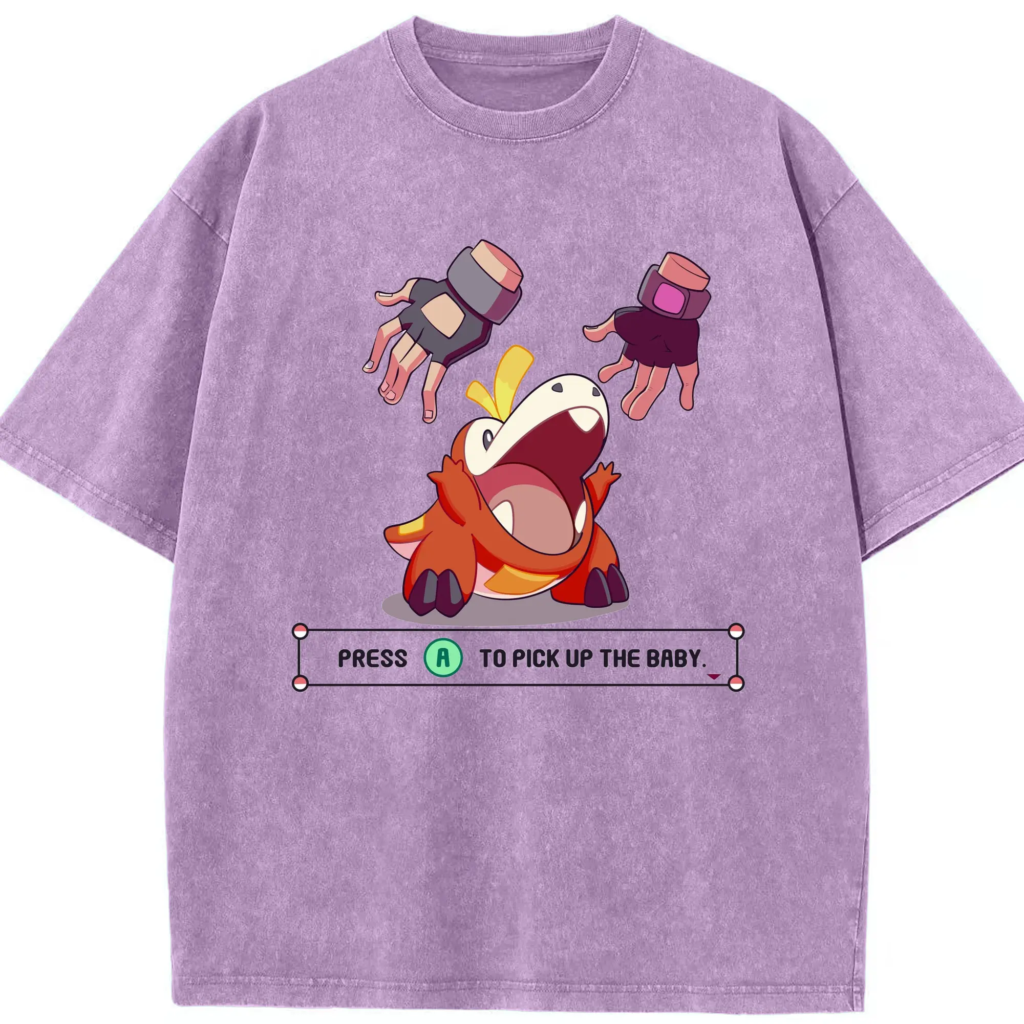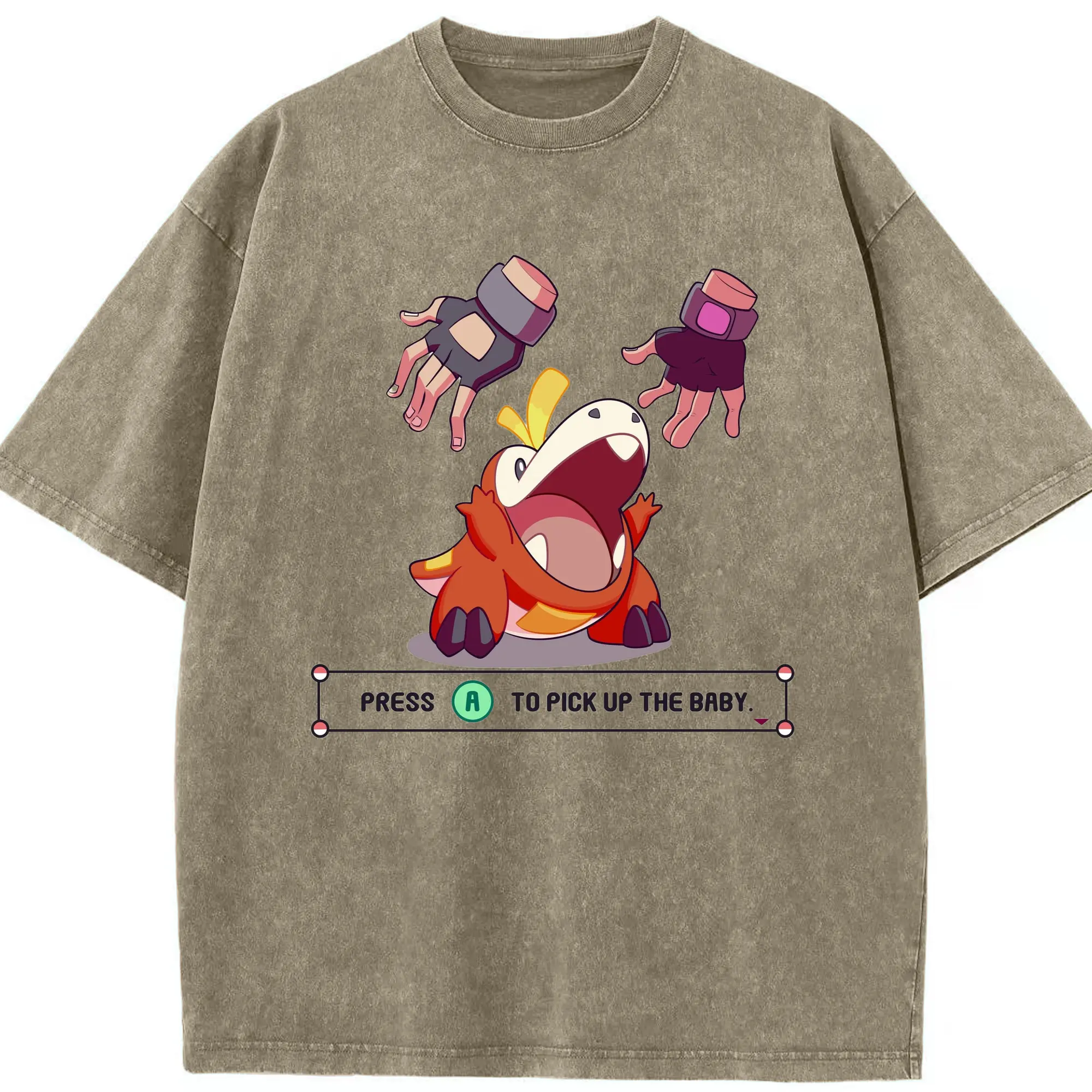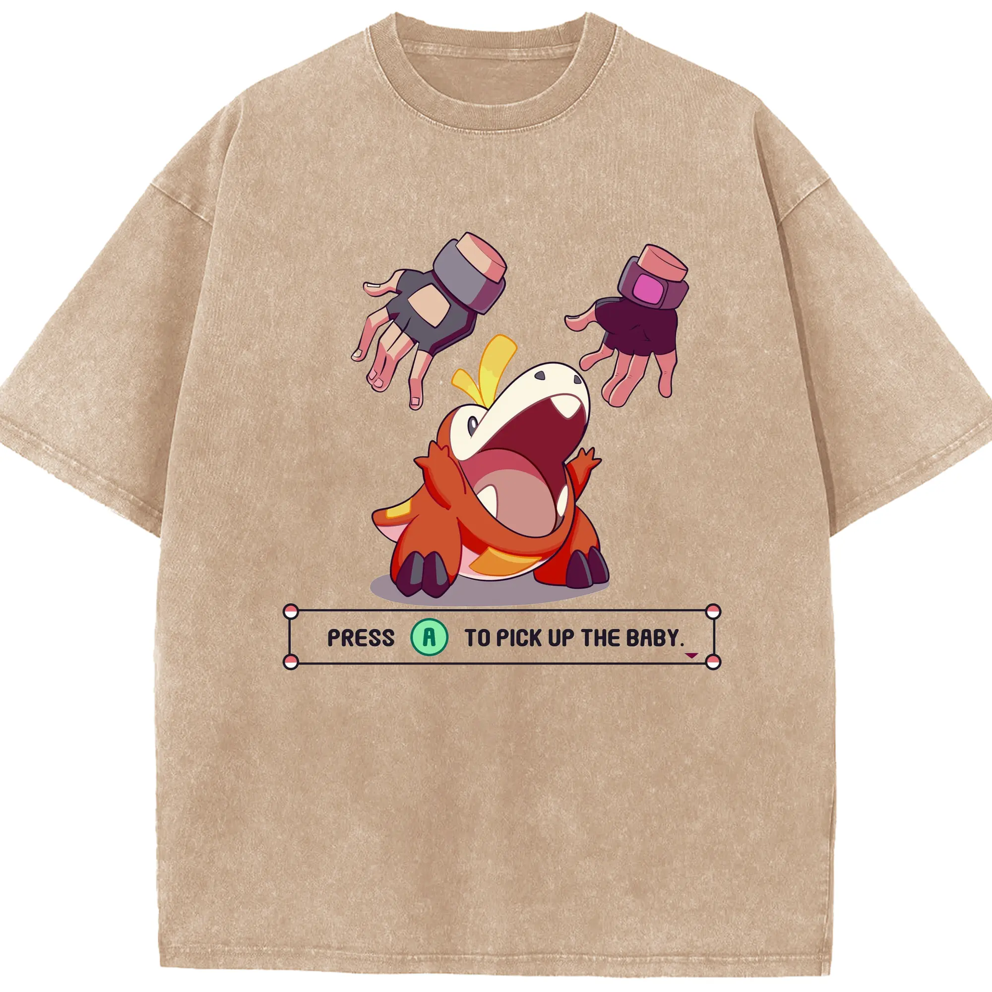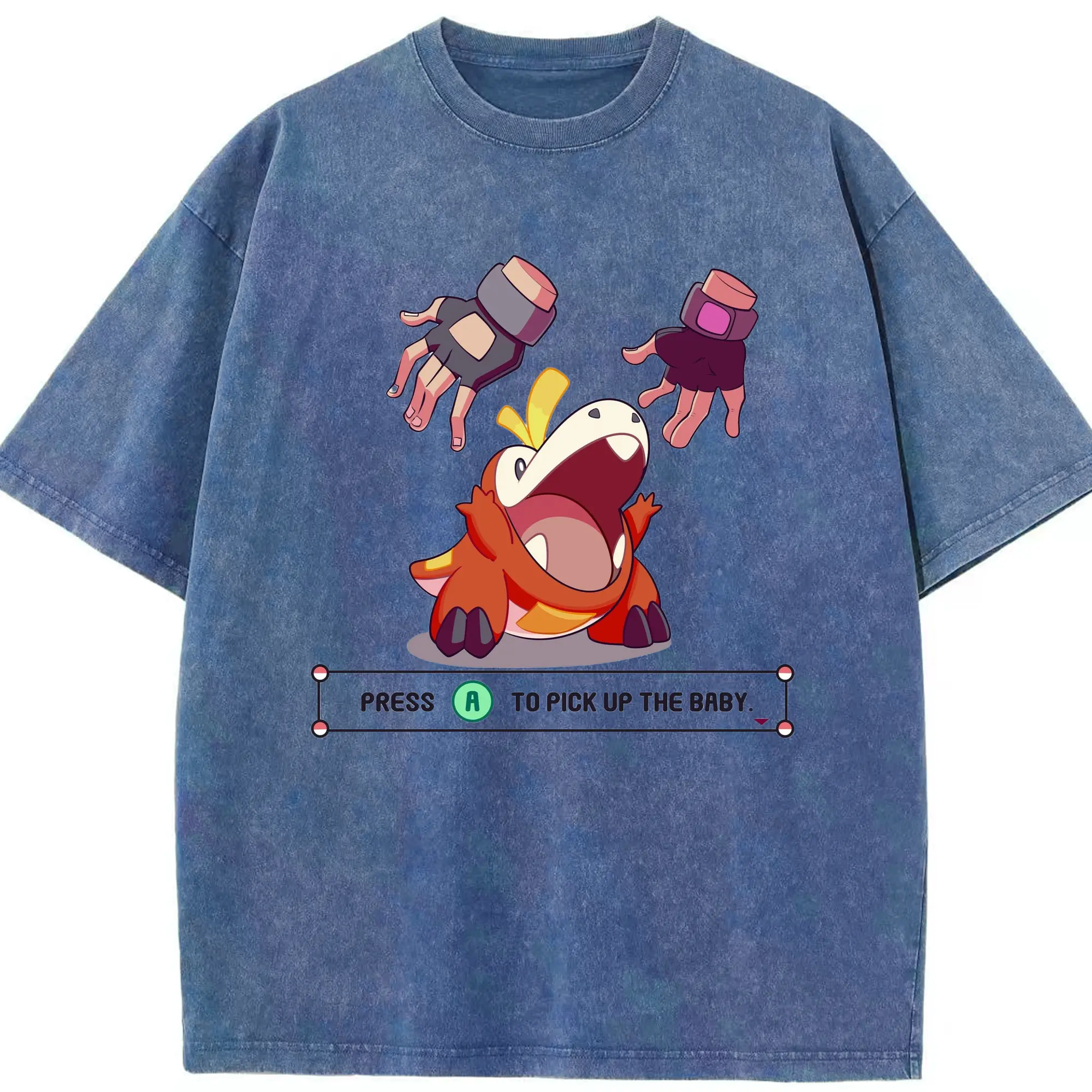 Men's Pokemon Fuecoco T-Shirt - Washed Vintage Look 230g Cotton Oversized T-Shirt With Front Heat Transfer Print – Soft, Lightweight, Stylish Fit – Comfortable Casual Wear For Sports & Everyday Use