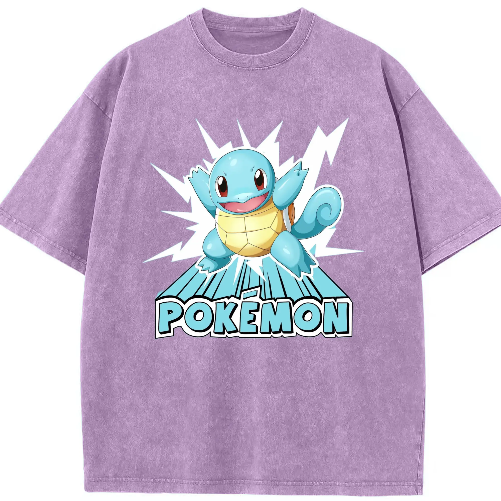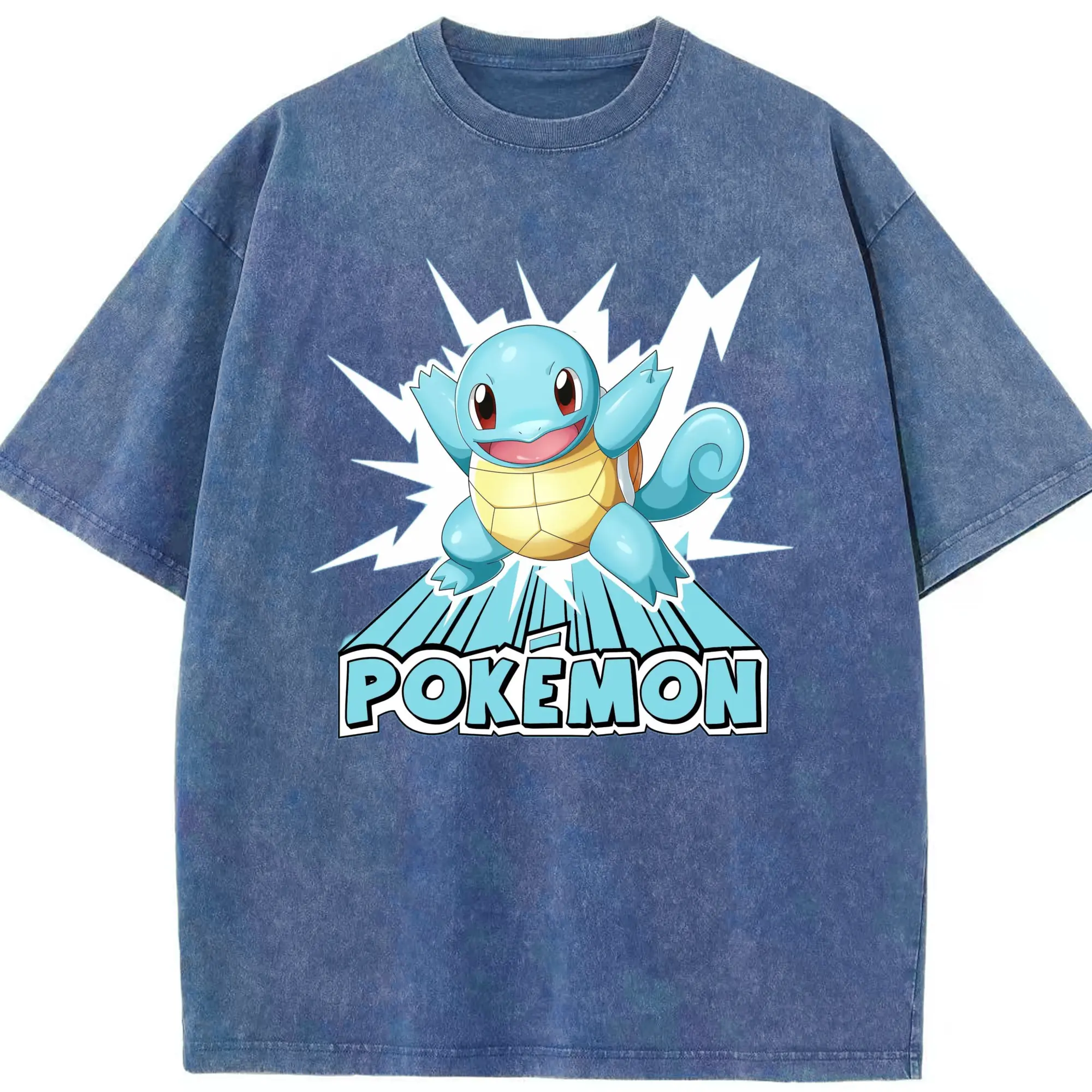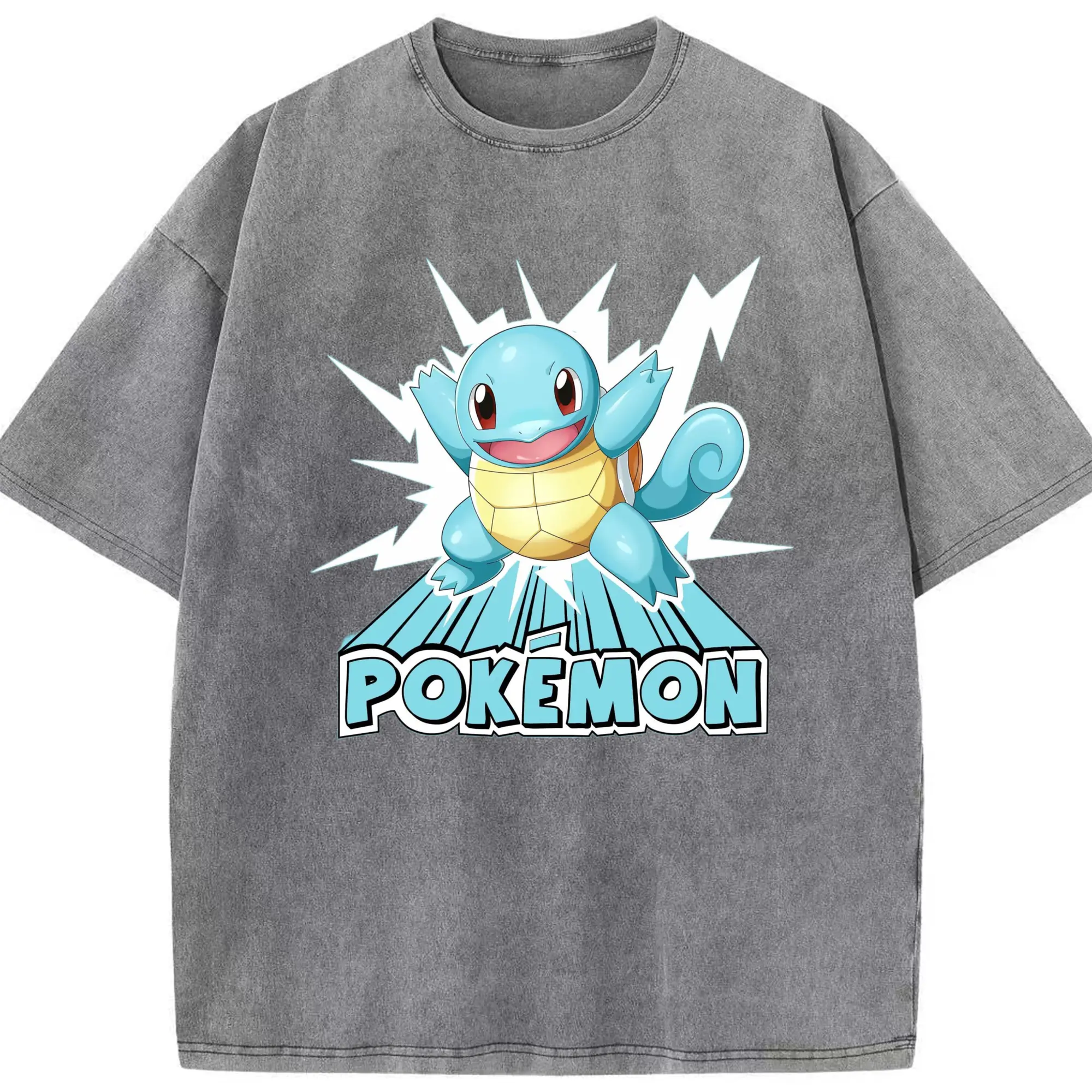 Men's Squirtle Graphic T-Shirt - Washed Vintage Look 230g Cotton Oversized T-Shirt With Front Heat Transfer Print – Soft, Lightweight, Stylish Fit – Comfortable Casual Wear For Sports & Everyday Use