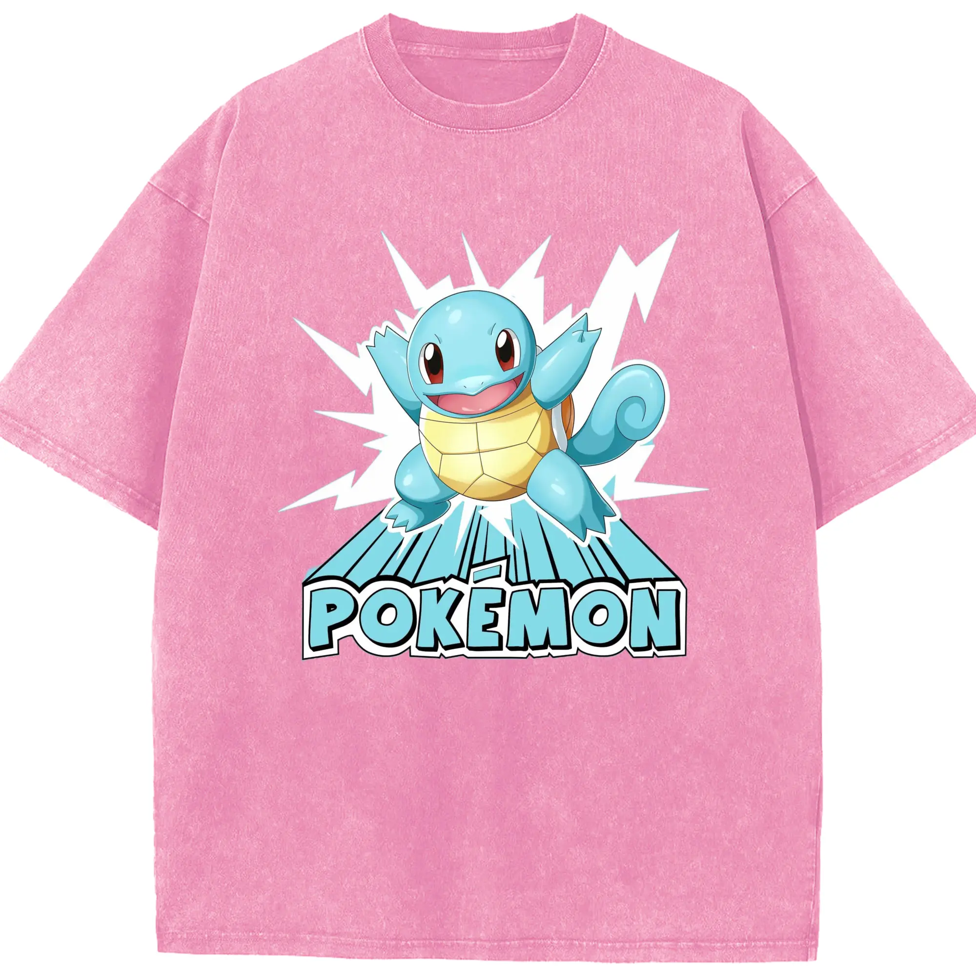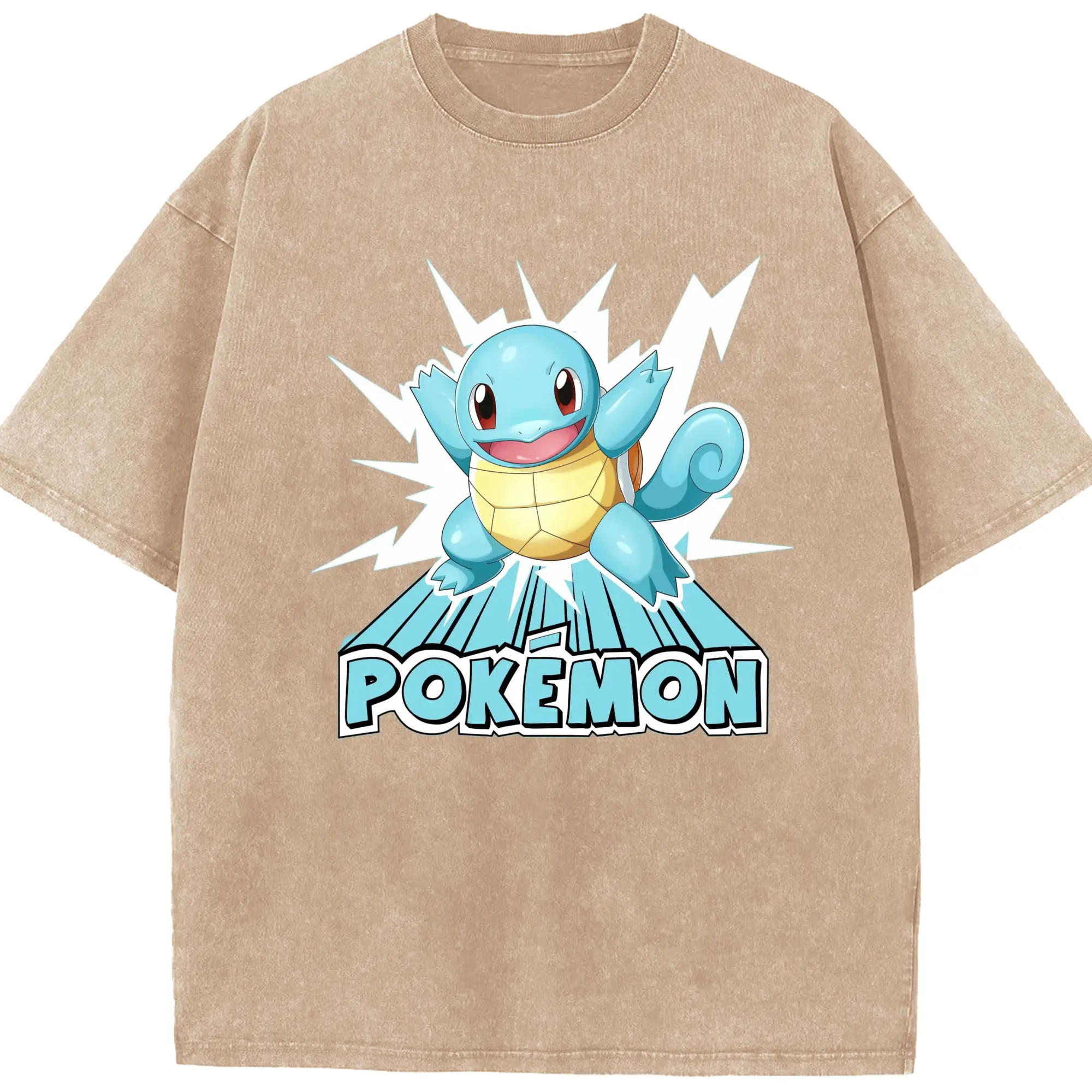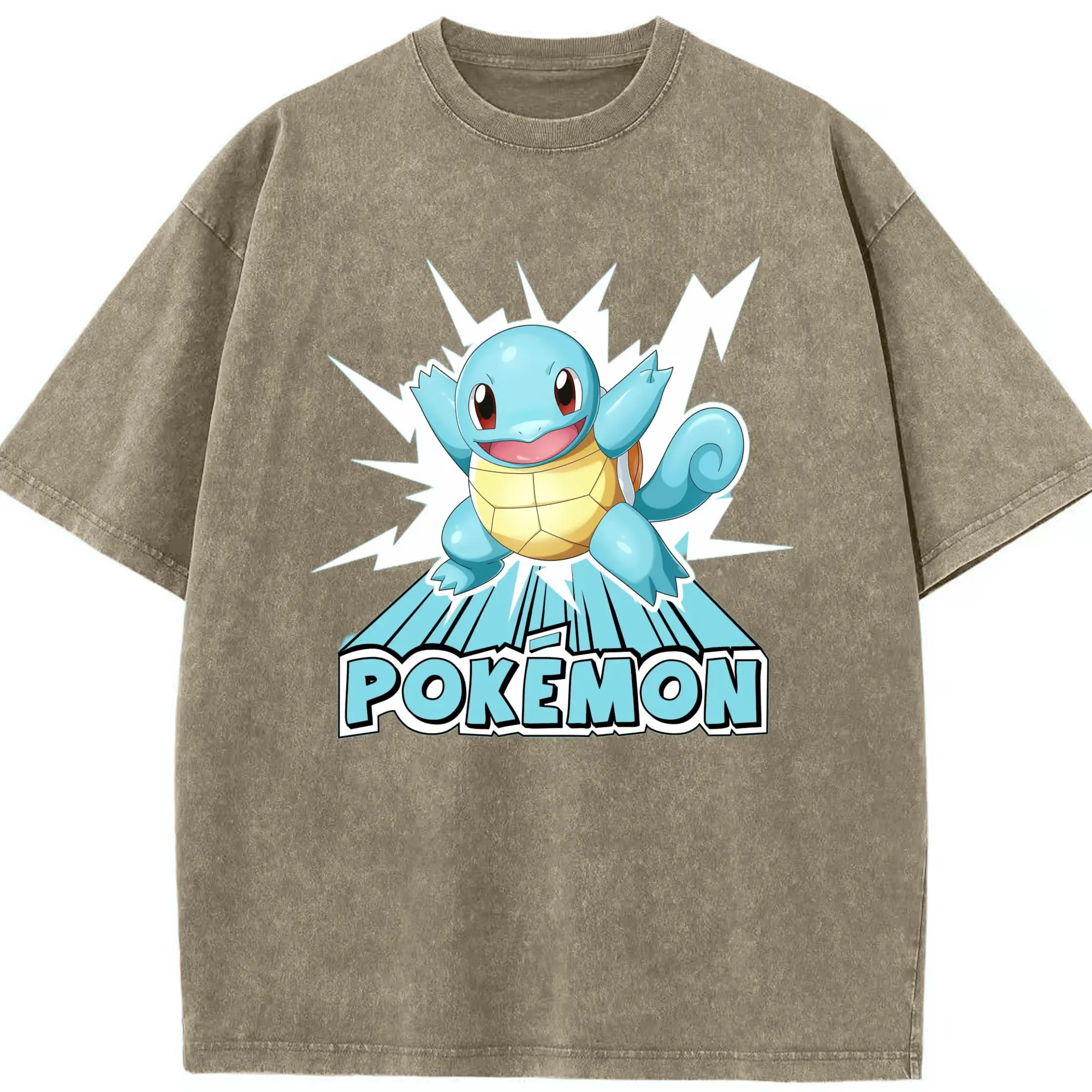 Men's Squirtle Graphic T-Shirt - Washed Vintage Look 230g Cotton Oversized T-Shirt With Front Heat Transfer Print – Soft, Lightweight, Stylish Fit – Comfortable Casual Wear For Sports & Everyday Use