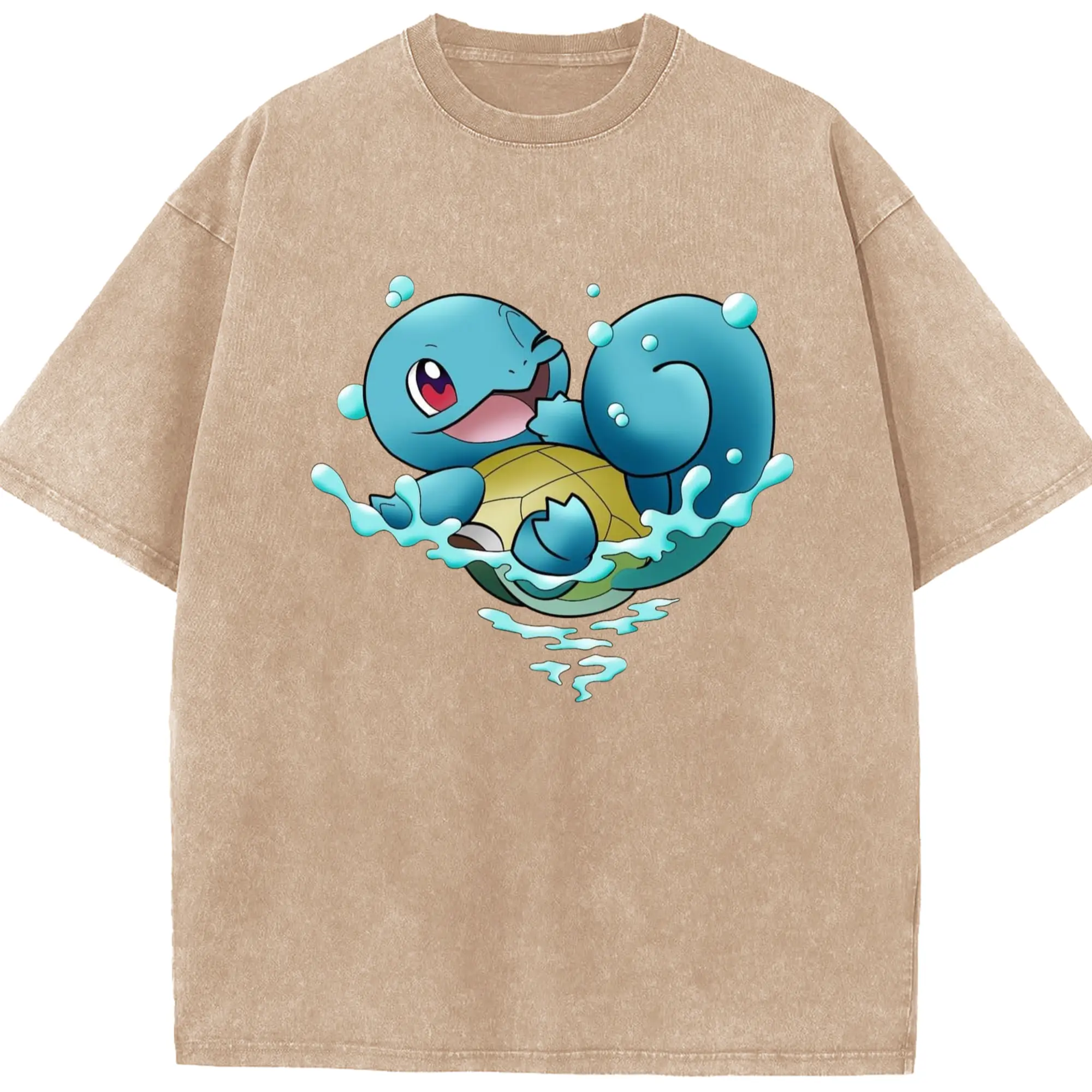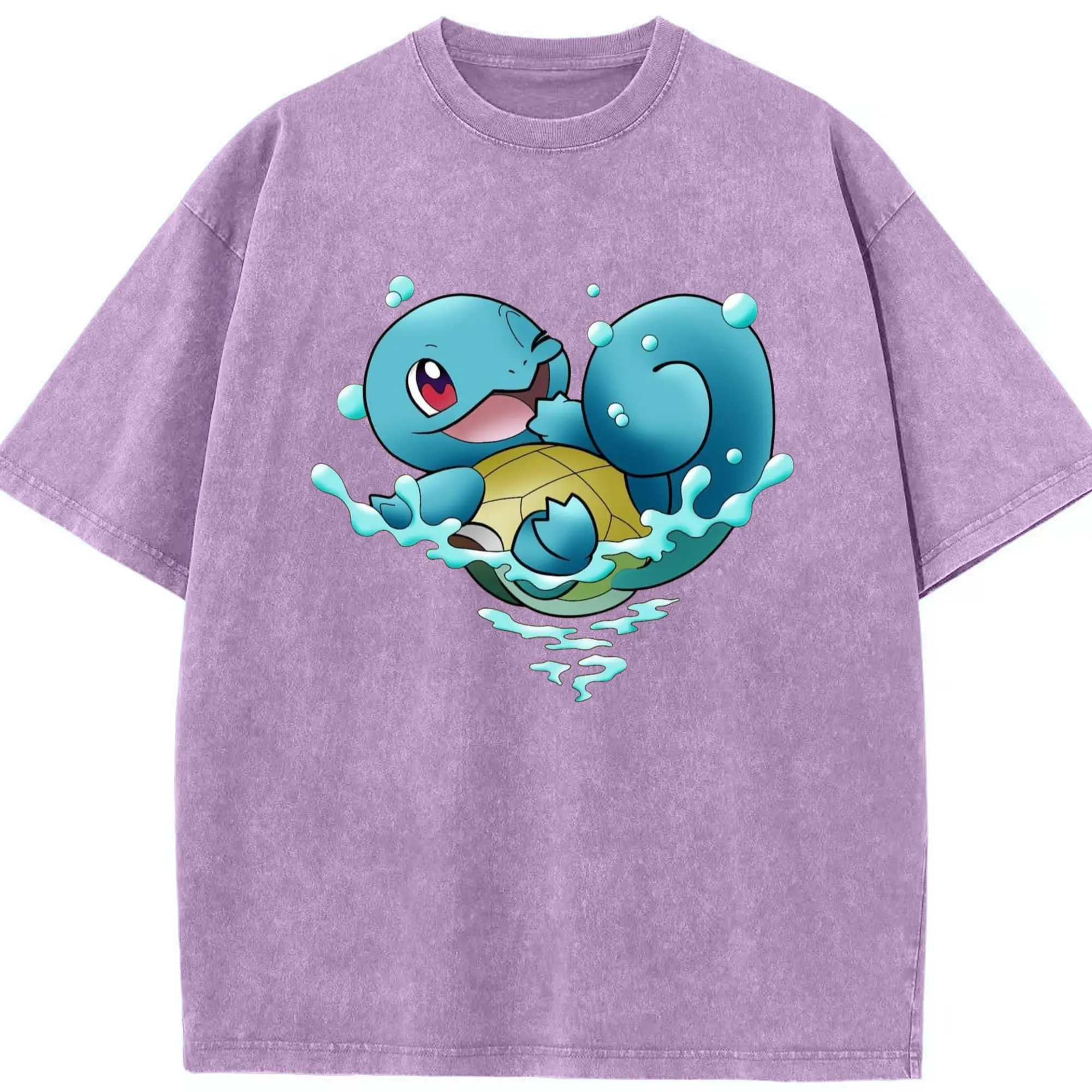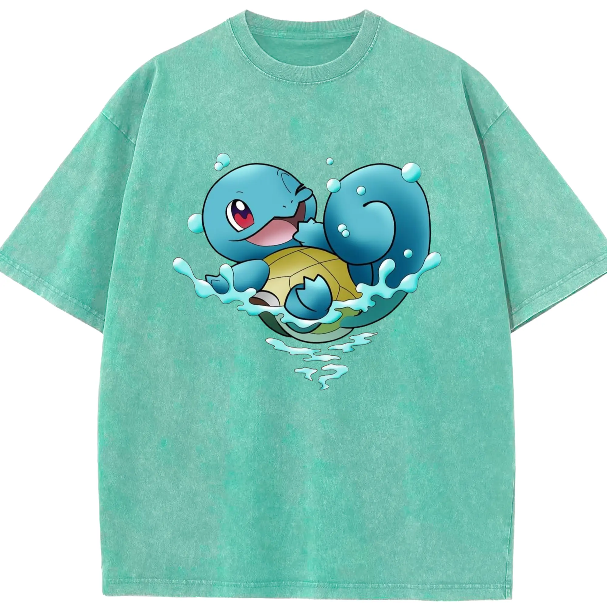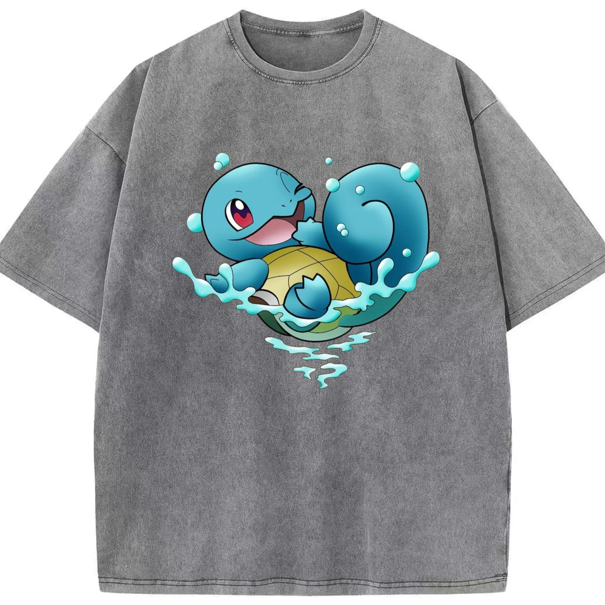 Men's Squirtle T-Shirt - Washed Vintage Look 230g Cotton Oversized T-Shirt With Front Heat Transfer Print – Soft, Lightweight, Stylish Fit – Comfortable Casual Wear For Sports & Everyday Use