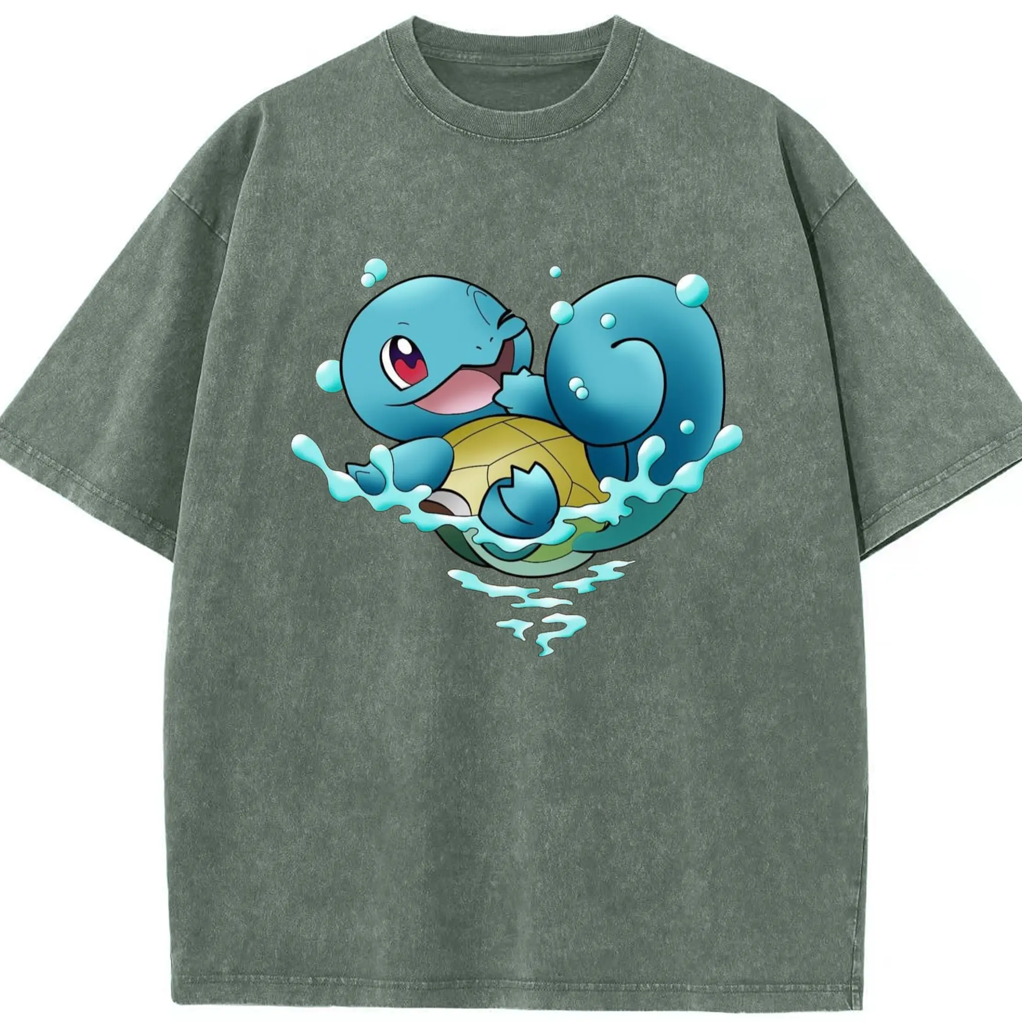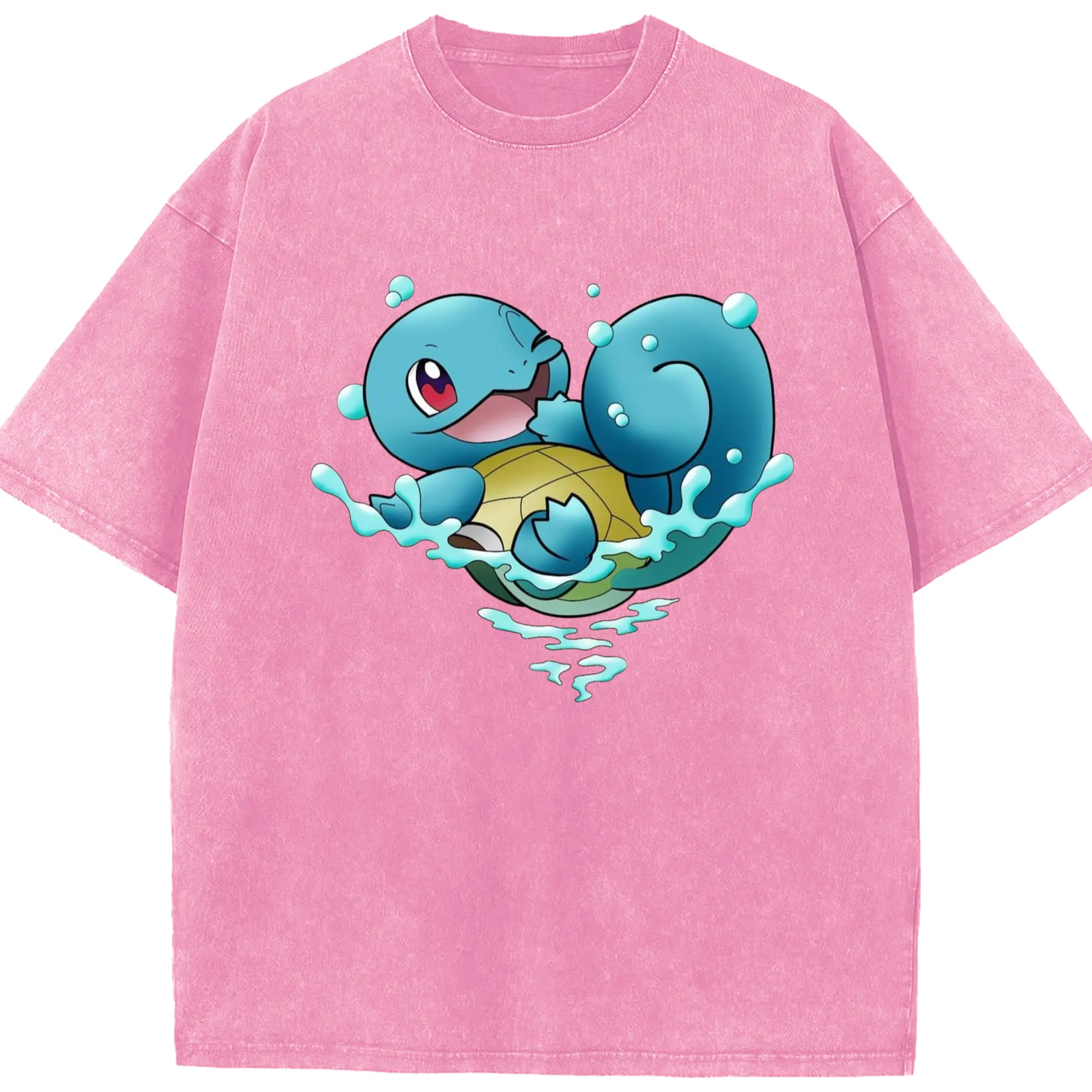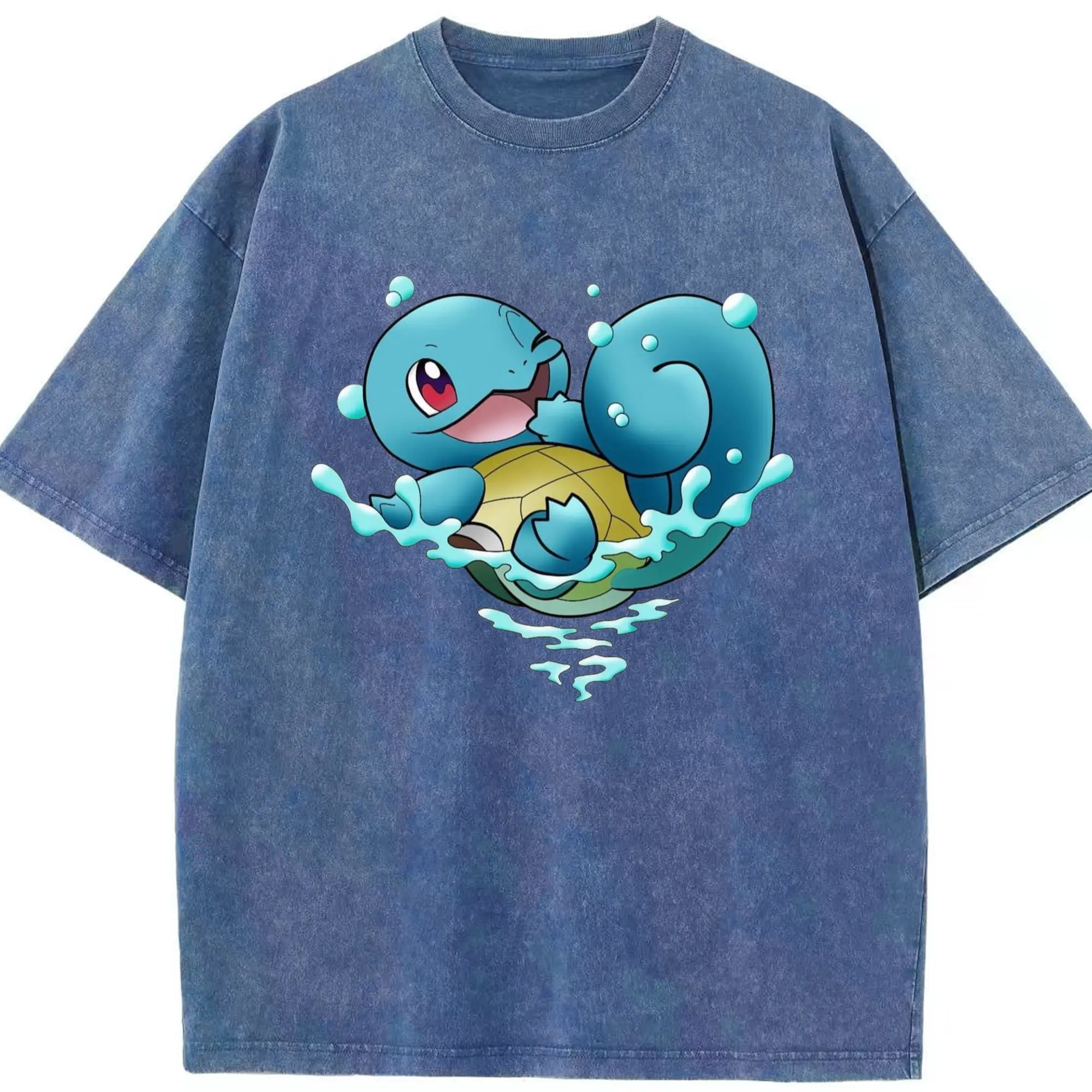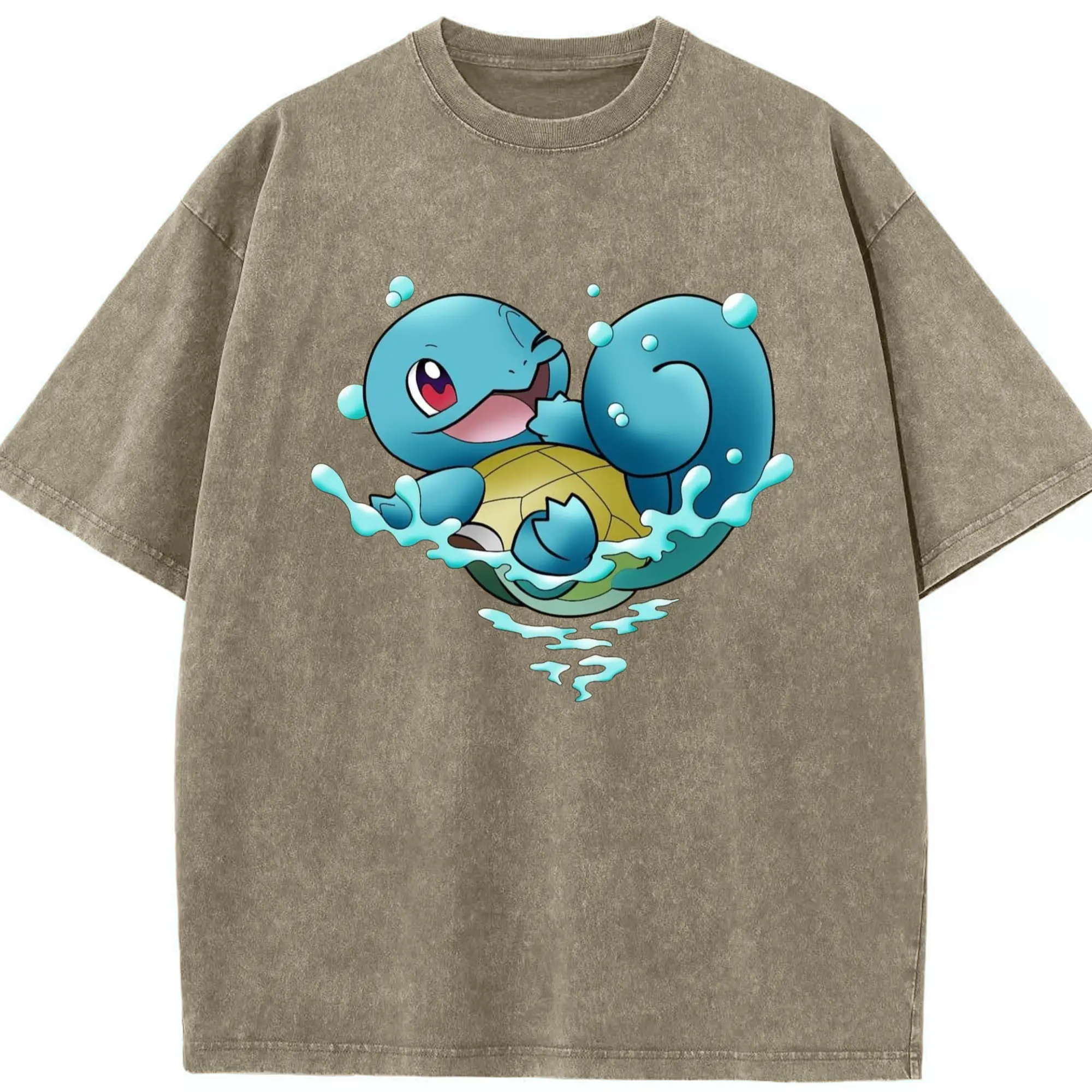 Men's Squirtle T-Shirt - Washed Vintage Look 230g Cotton Oversized T-Shirt With Front Heat Transfer Print – Soft, Lightweight, Stylish Fit – Comfortable Casual Wear For Sports & Everyday Use