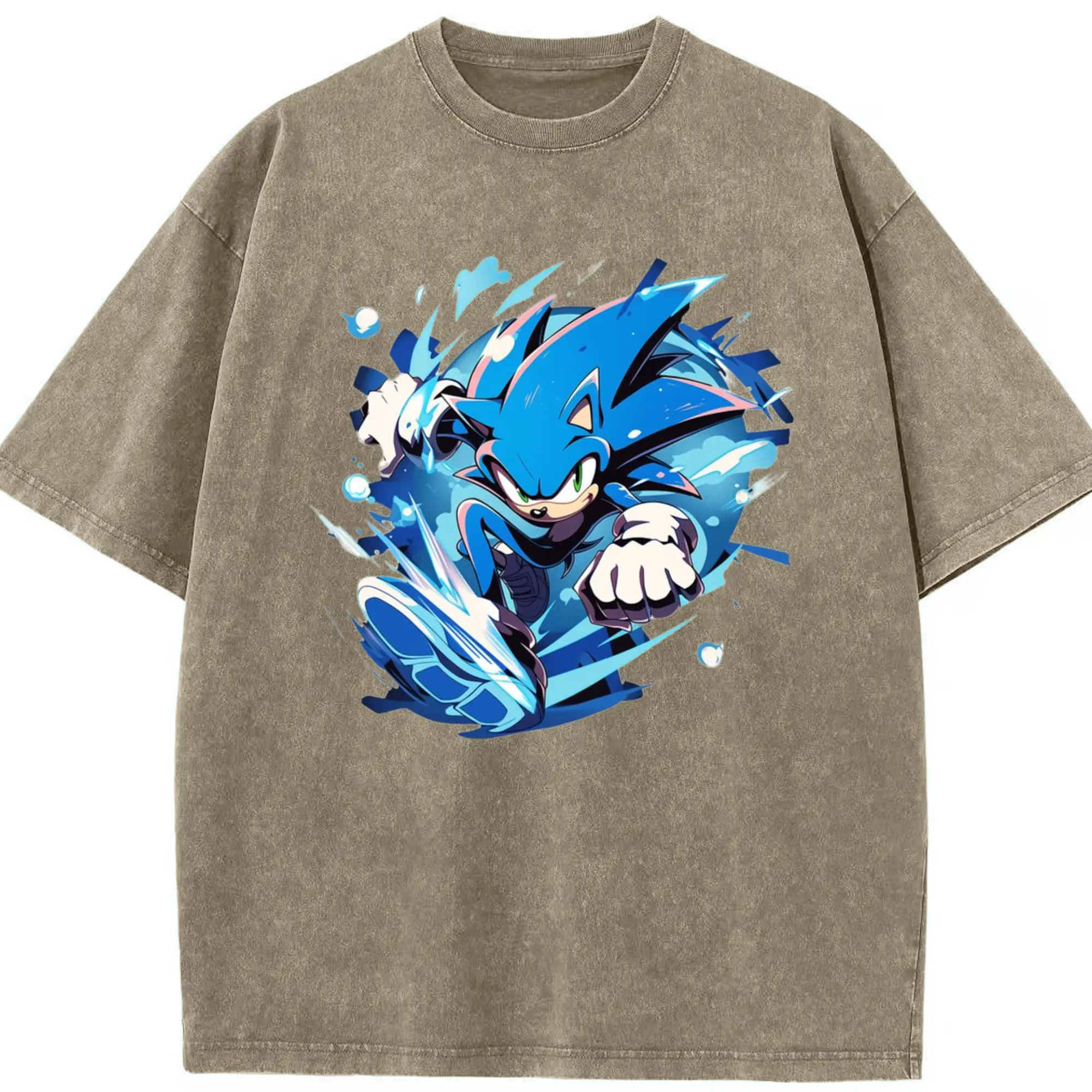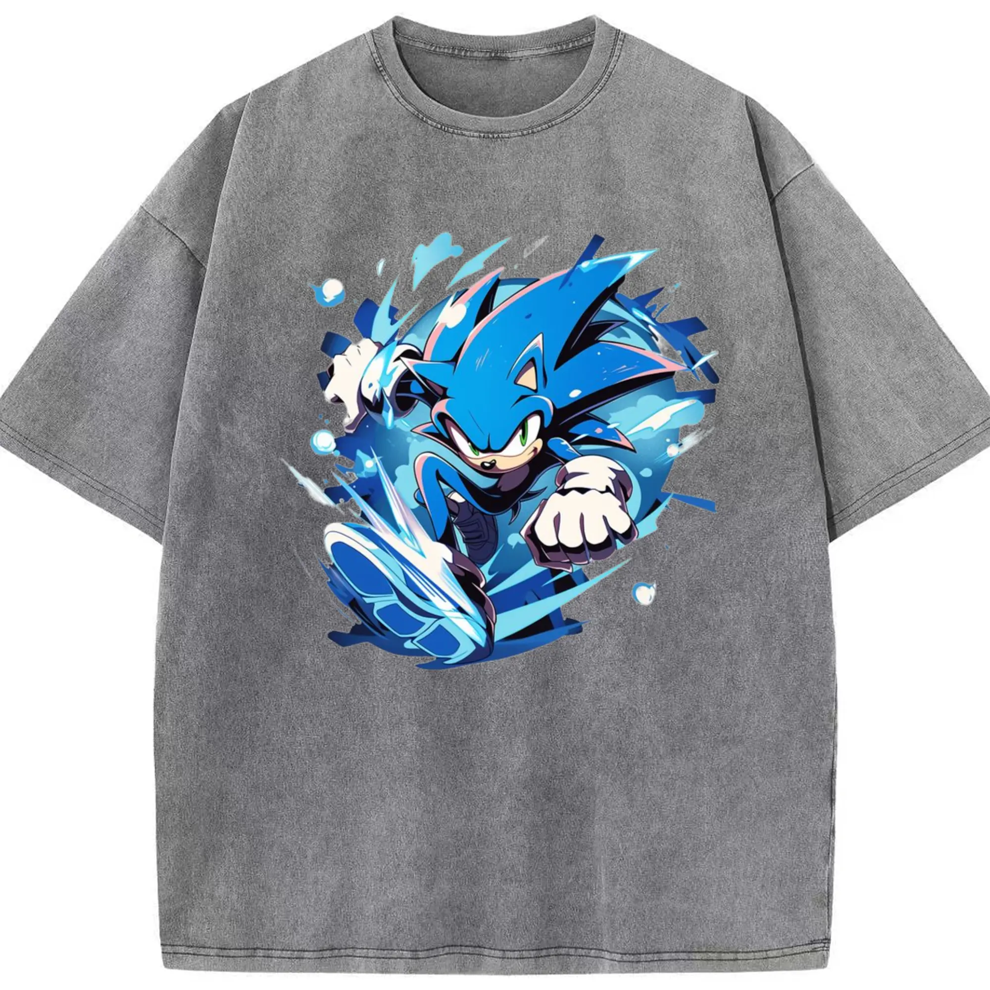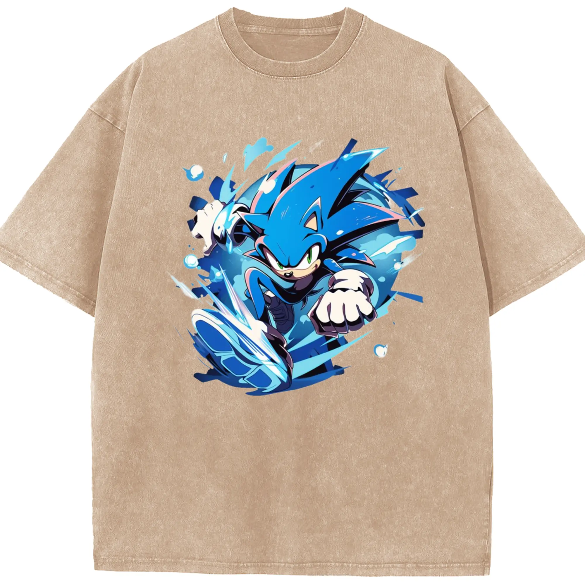 Men's Super Sonic printed t-shirt - Washed Vintage Look 230g Cotton Oversized T-Shirt With Front Heat Transfer Print – Soft, Lightweight, Stylish Fit – Comfortable Casual Wear For Sports & Everyday Use