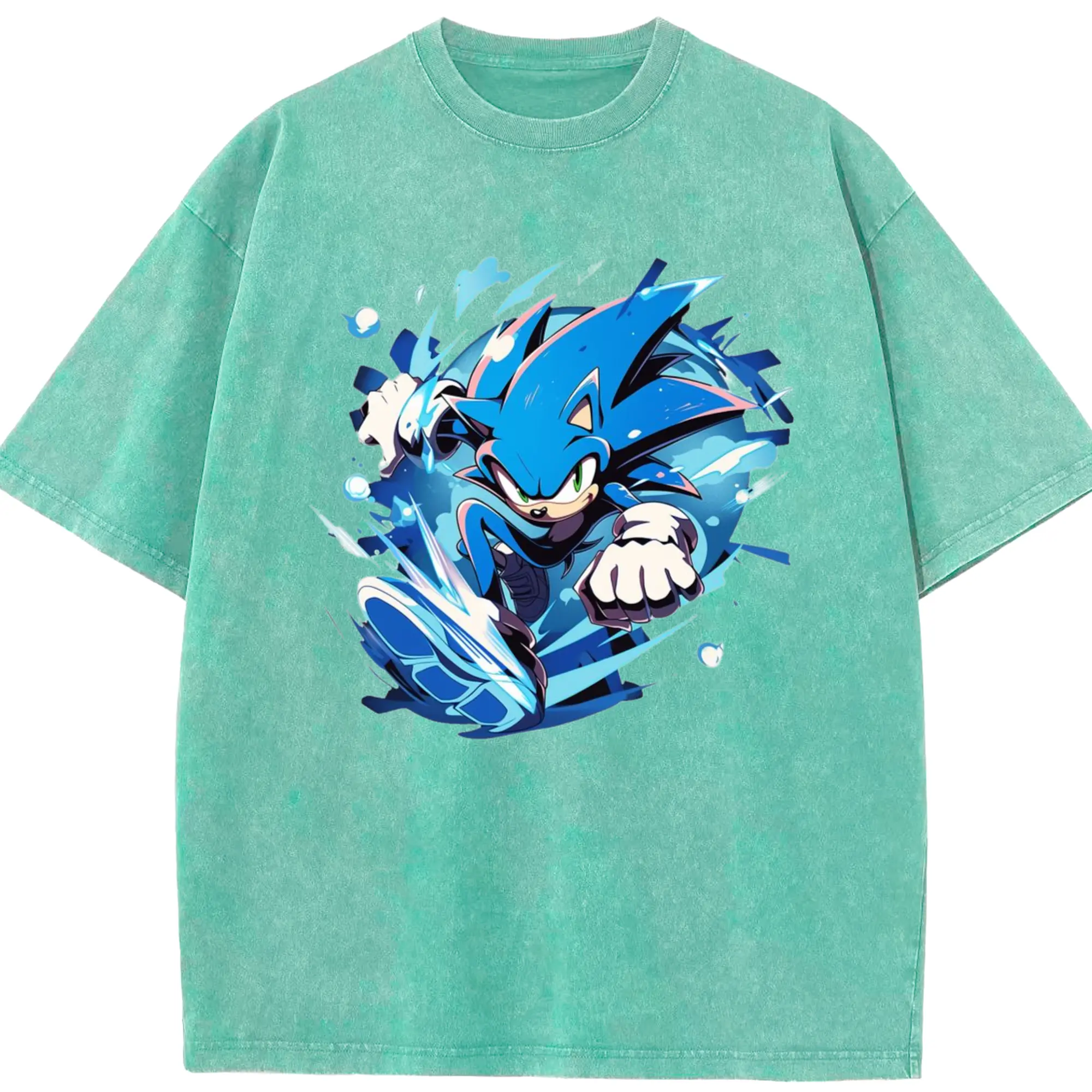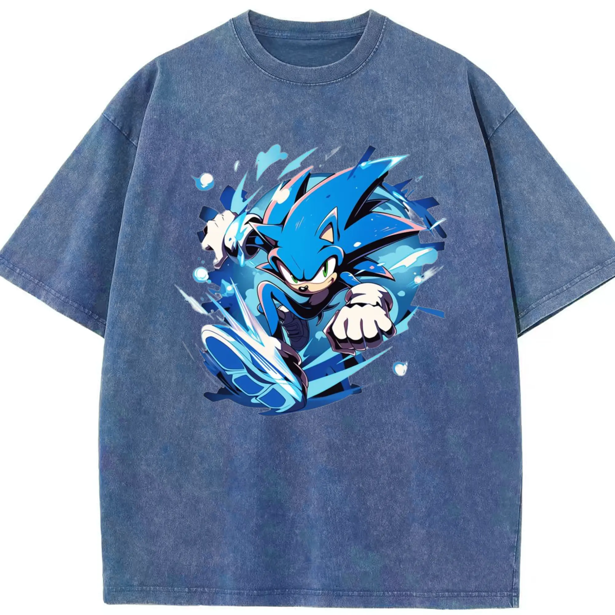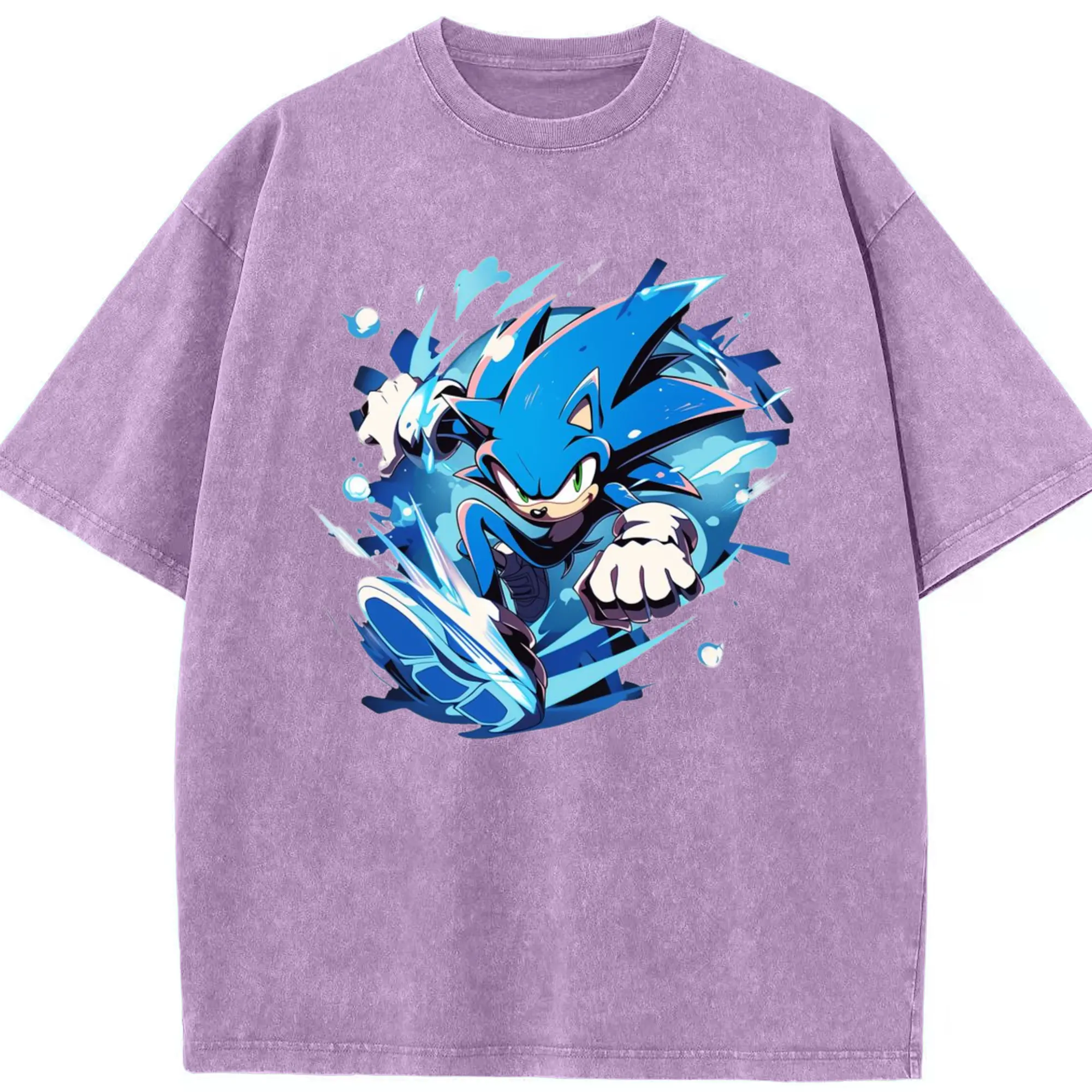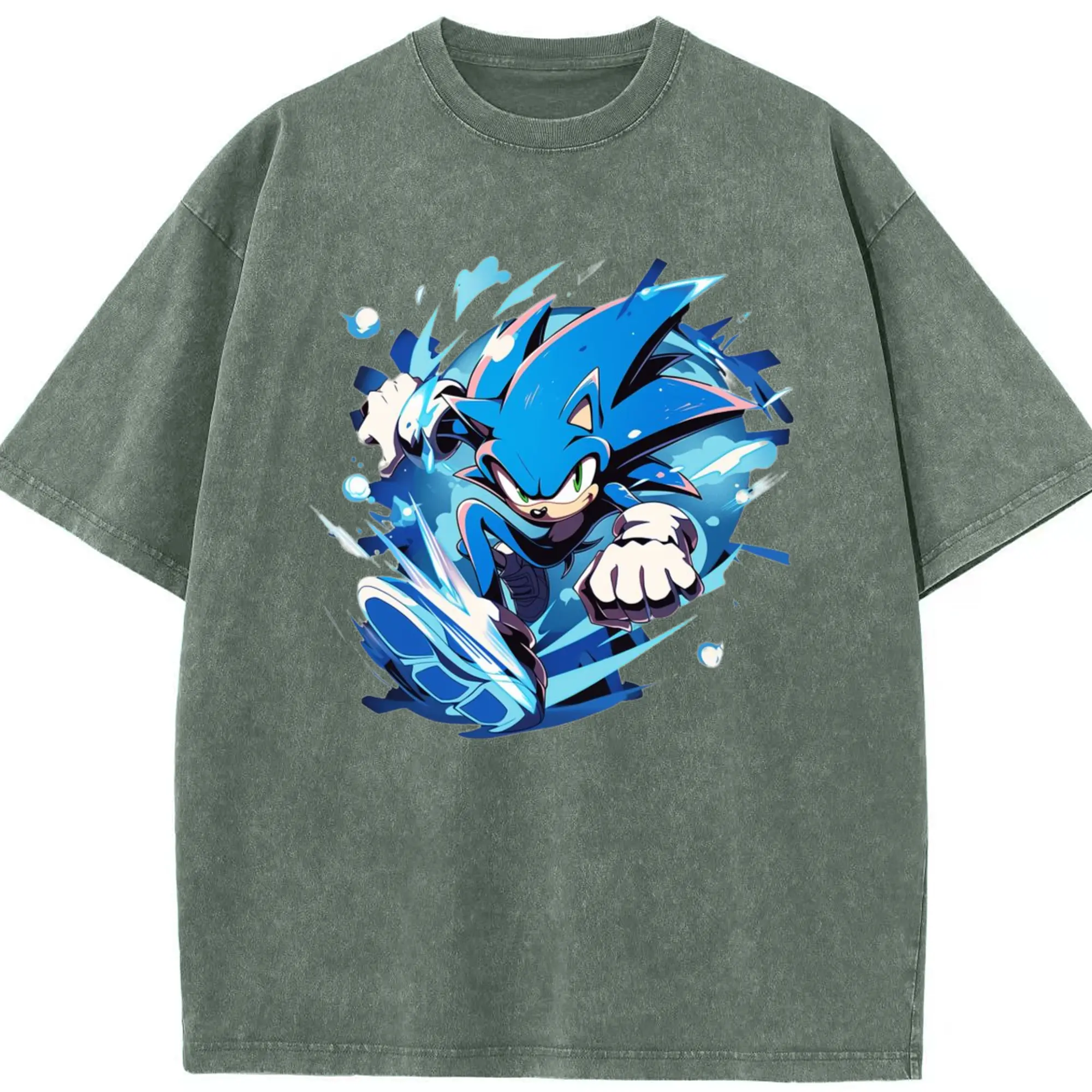 Men's Super Sonic printed t-shirt - Washed Vintage Look 230g Cotton Oversized T-Shirt With Front Heat Transfer Print – Soft, Lightweight, Stylish Fit – Comfortable Casual Wear For Sports & Everyday Use