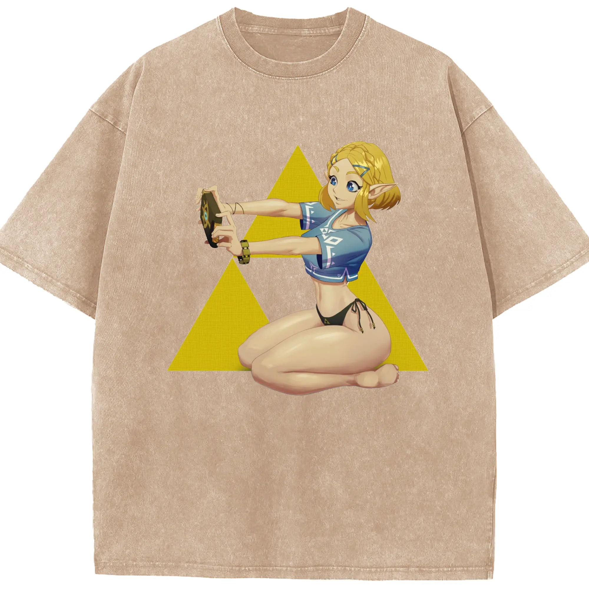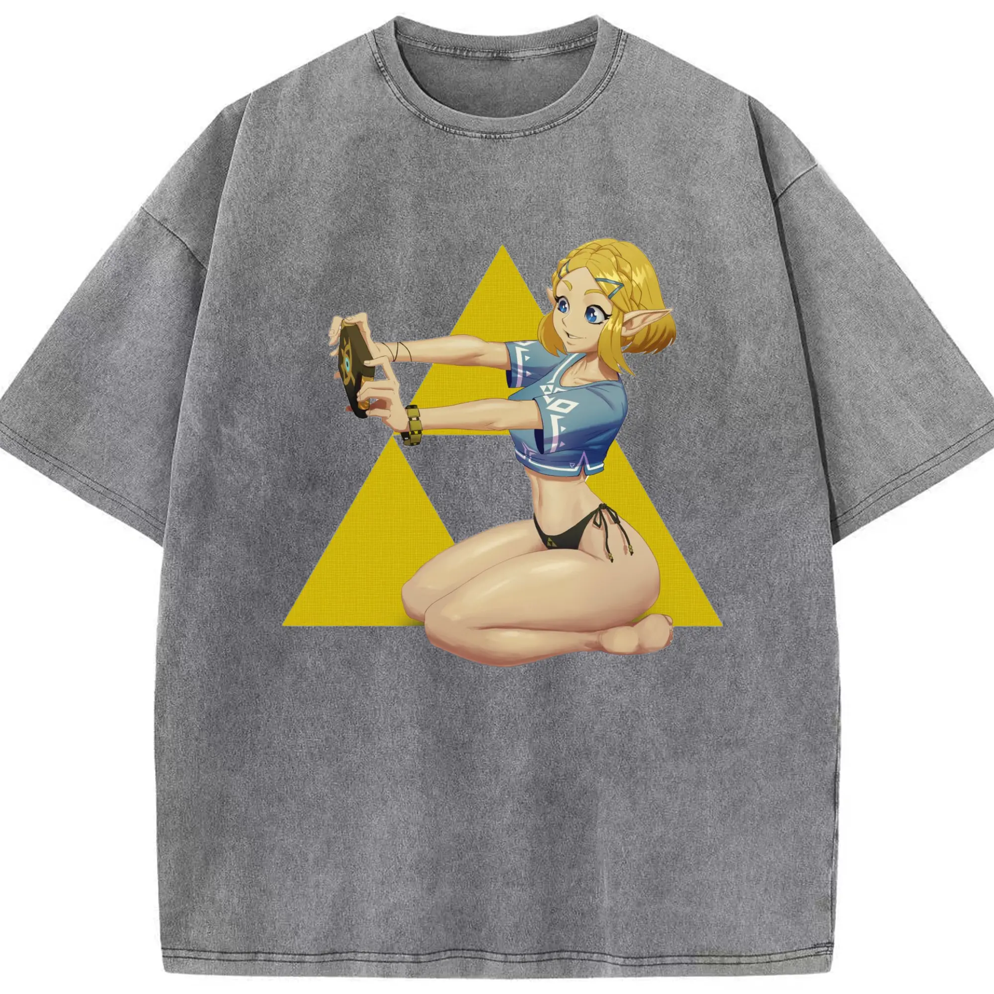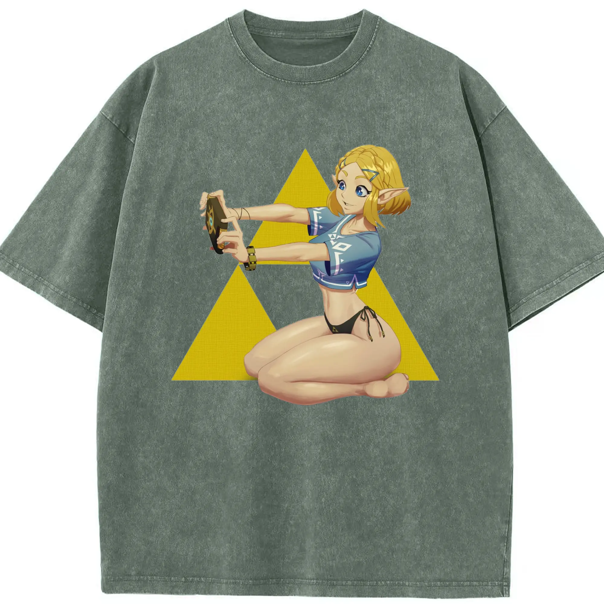 Men's the legend of zelda Princess Zelda tee - Washed Vintage Look 230g Cotton Oversized T-Shirt With Front Heat Transfer Print – Soft, Lightweight, Stylish Fit – Comfortable Casual Wear For Sports & Everyday Use